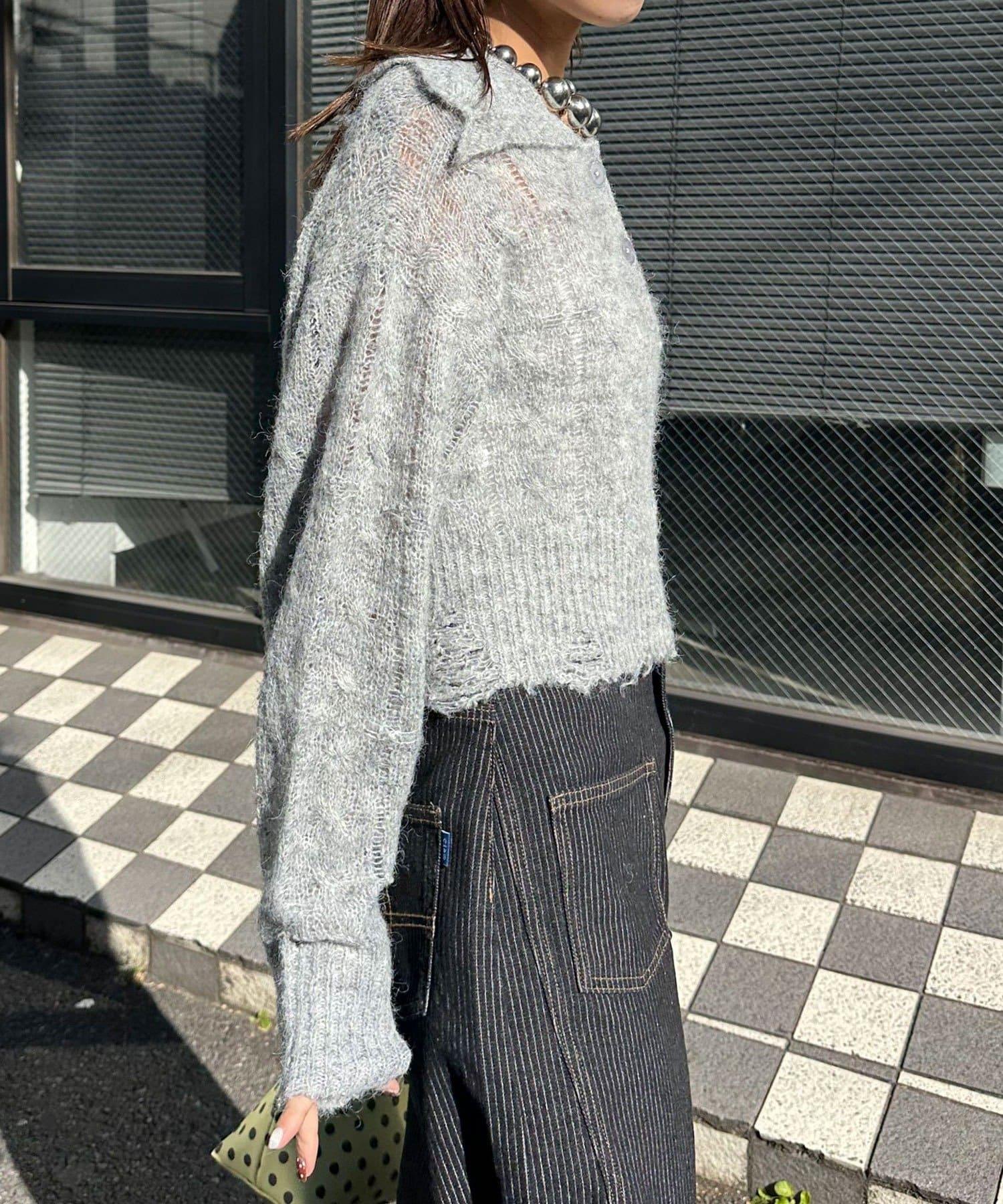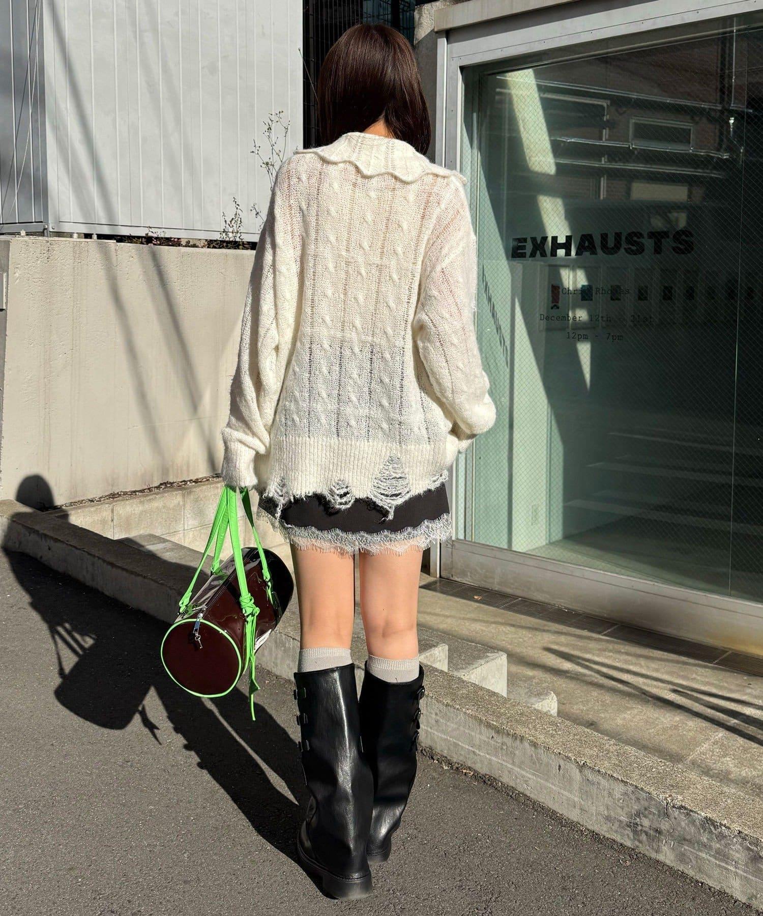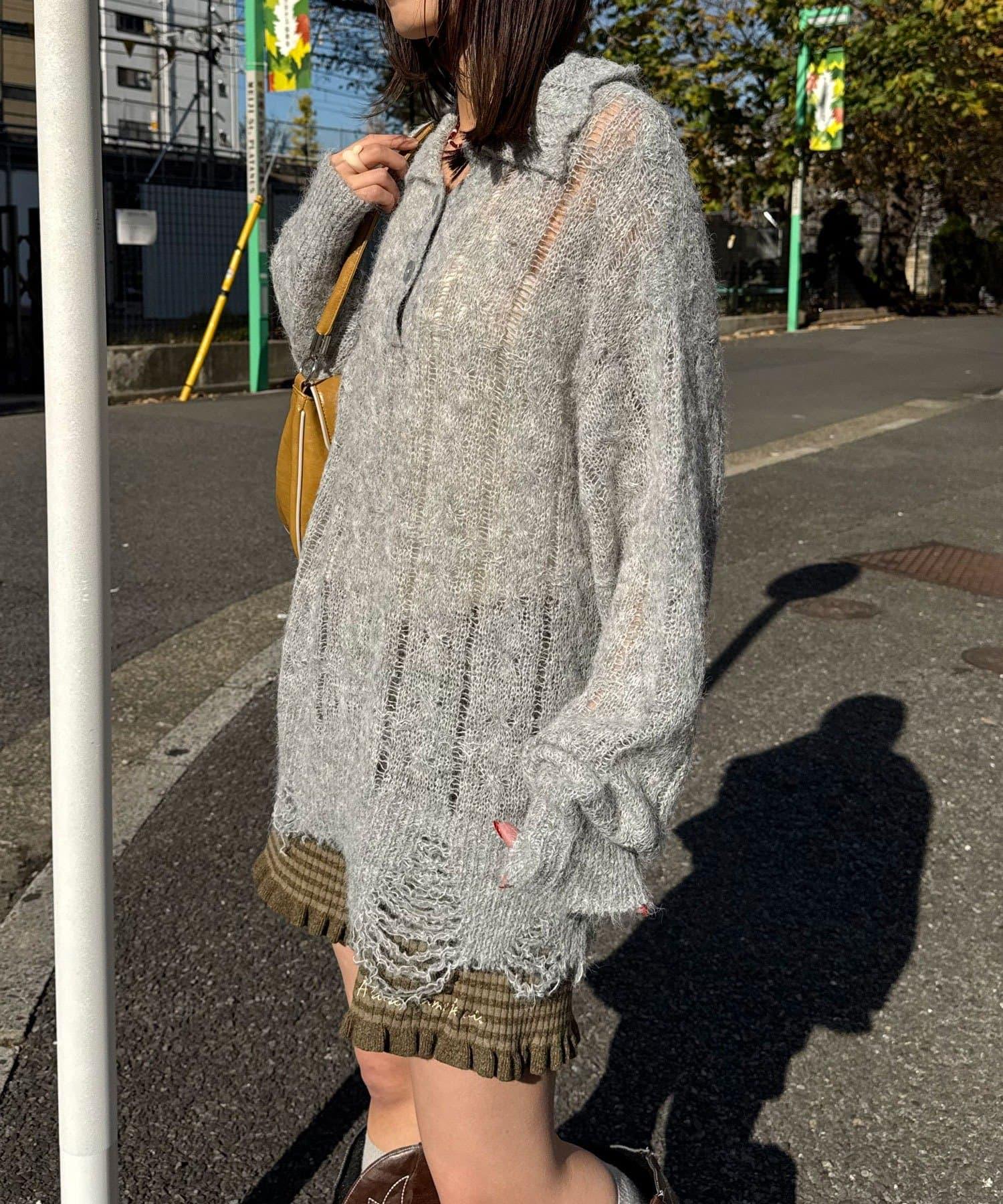 建議搭配迷你下裝,享受針織的透明感和長度之間的平衡。