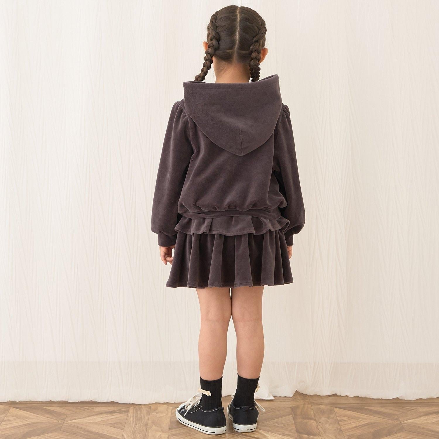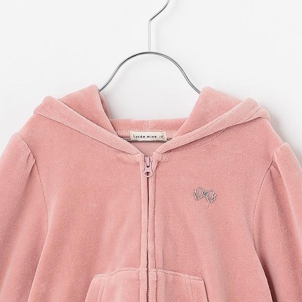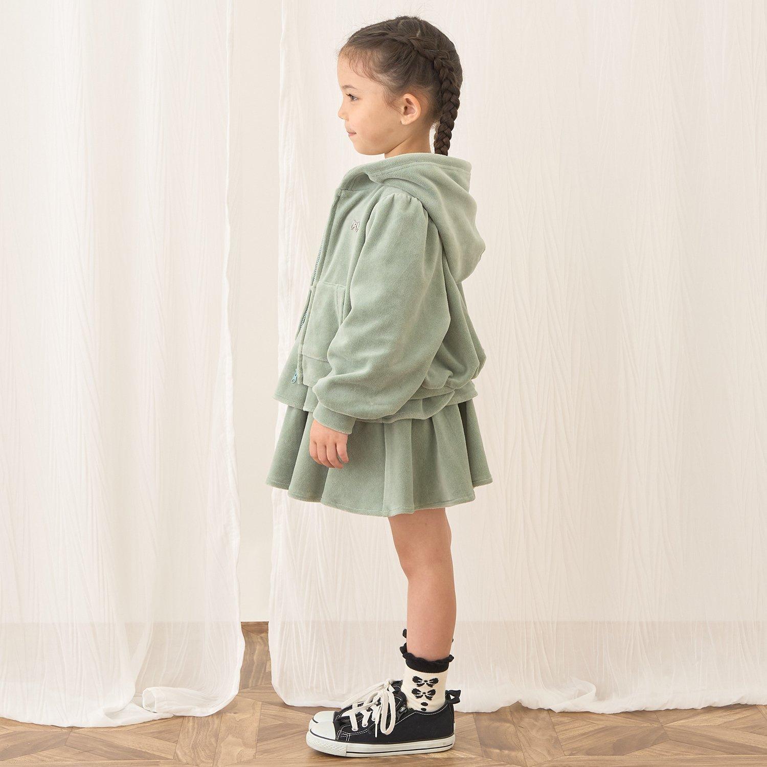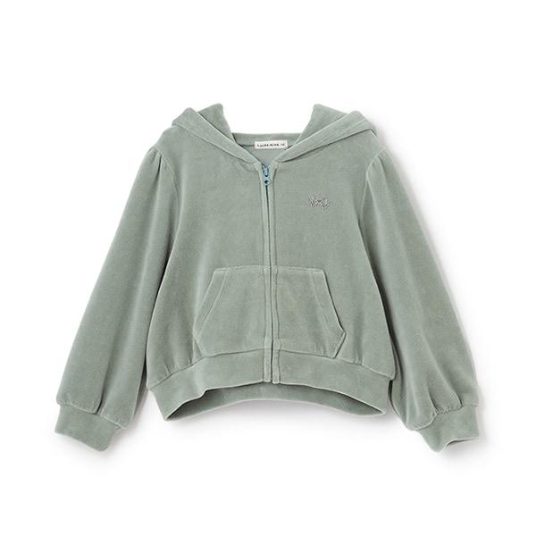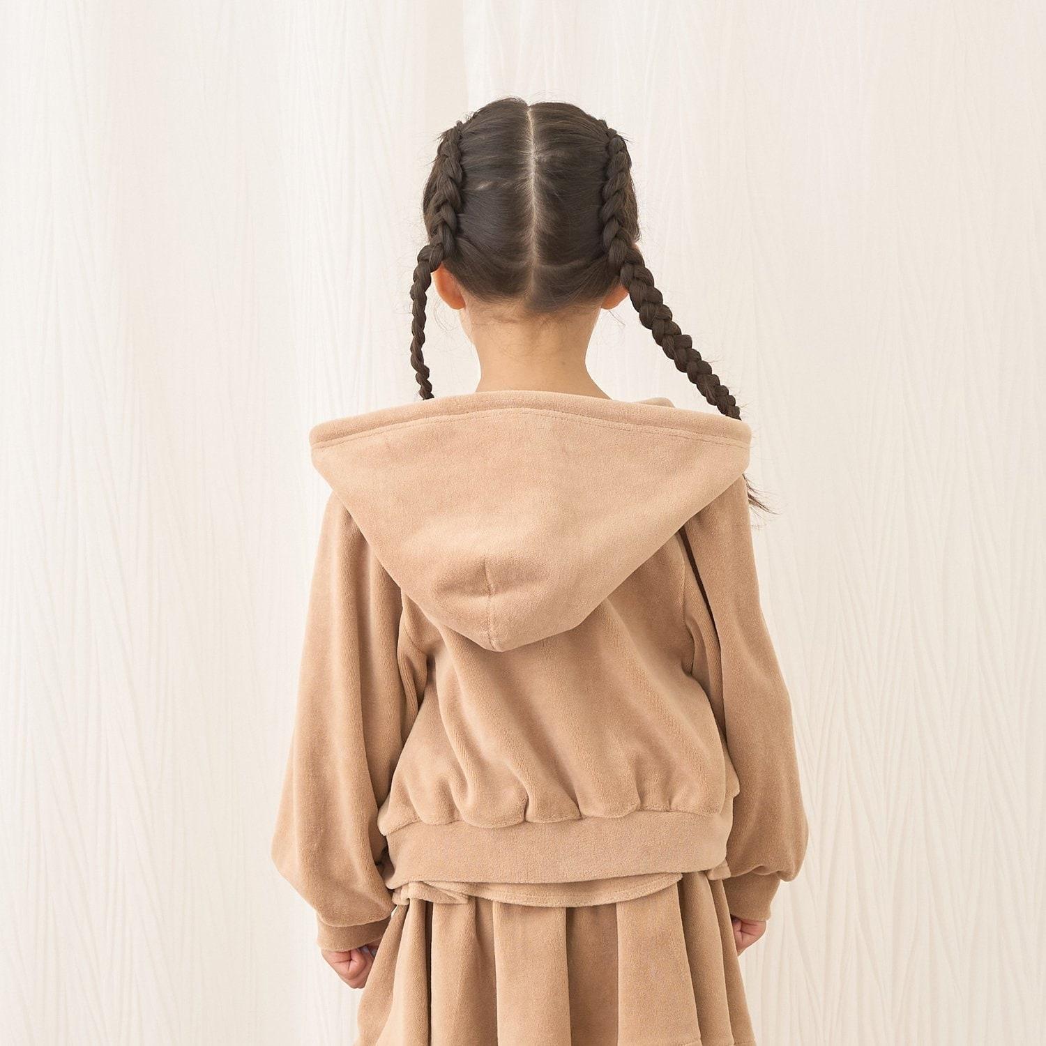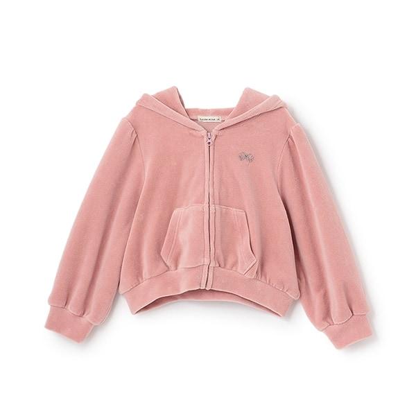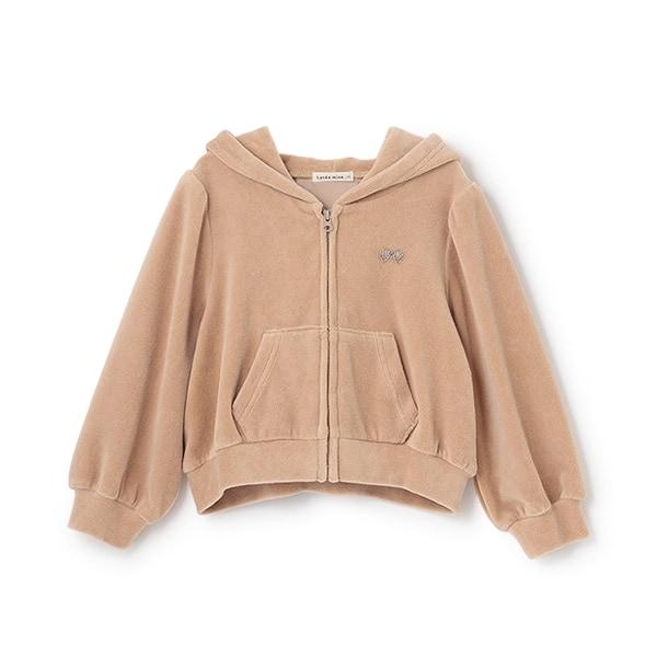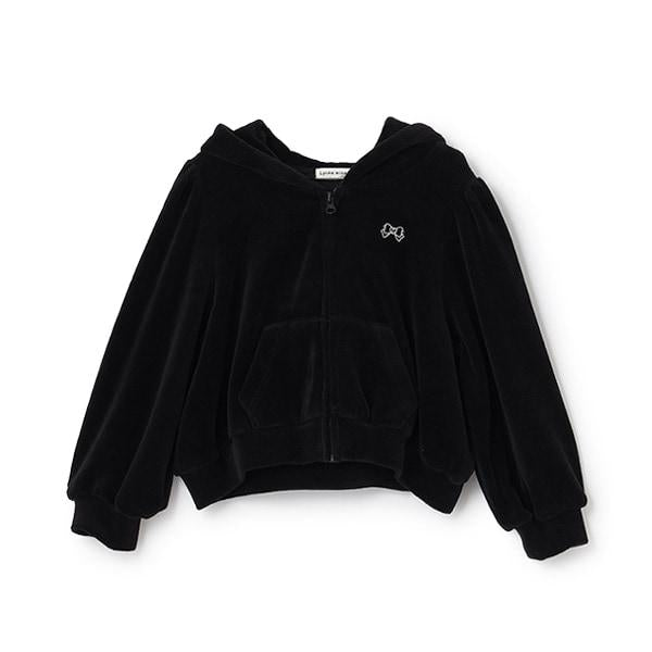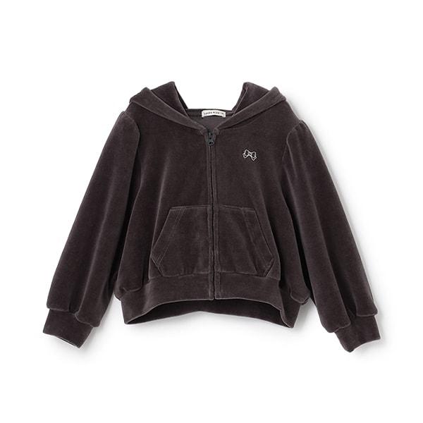 【柔軟天鵝絨】【可成套搭配】褶皺袖拉鍊連帽衫
