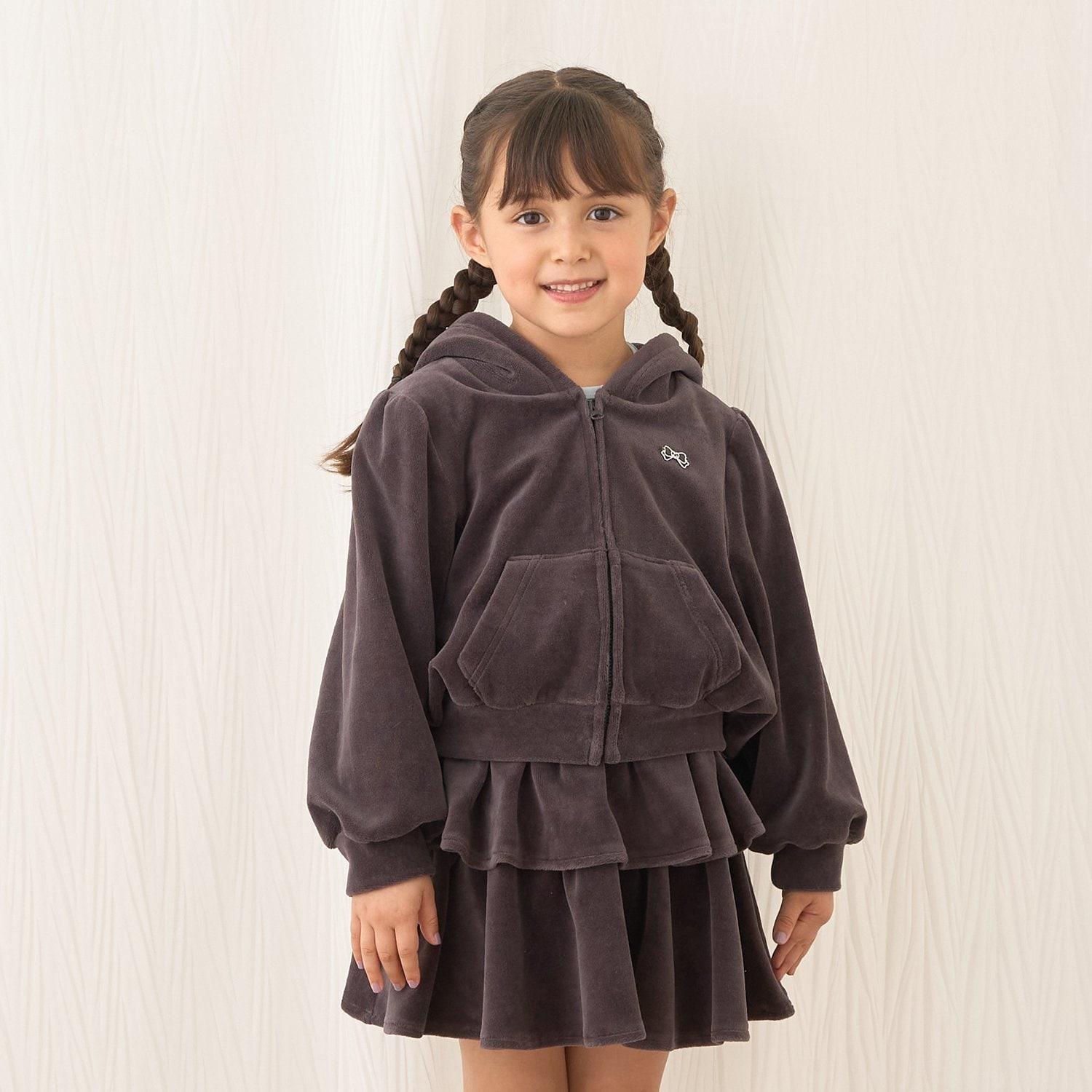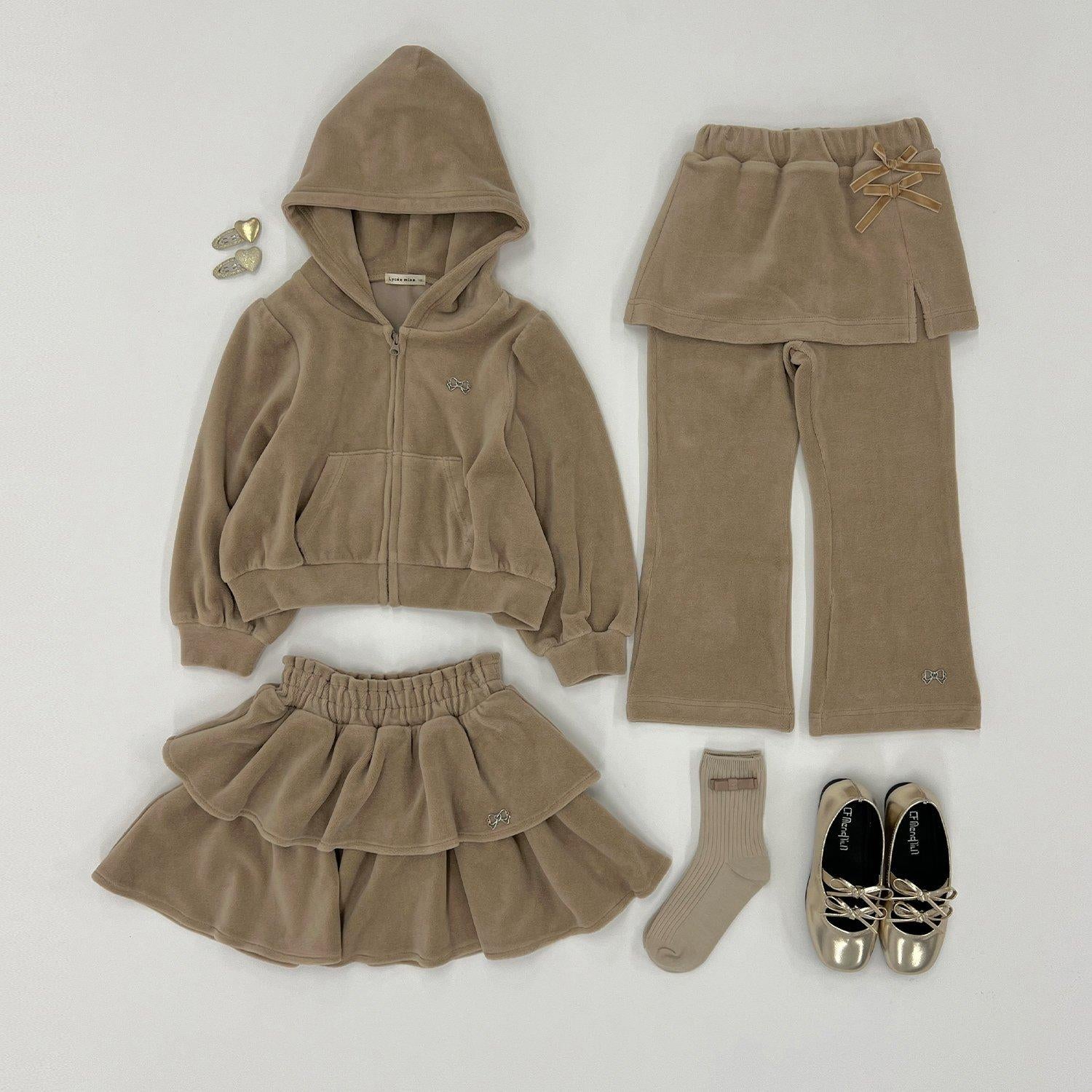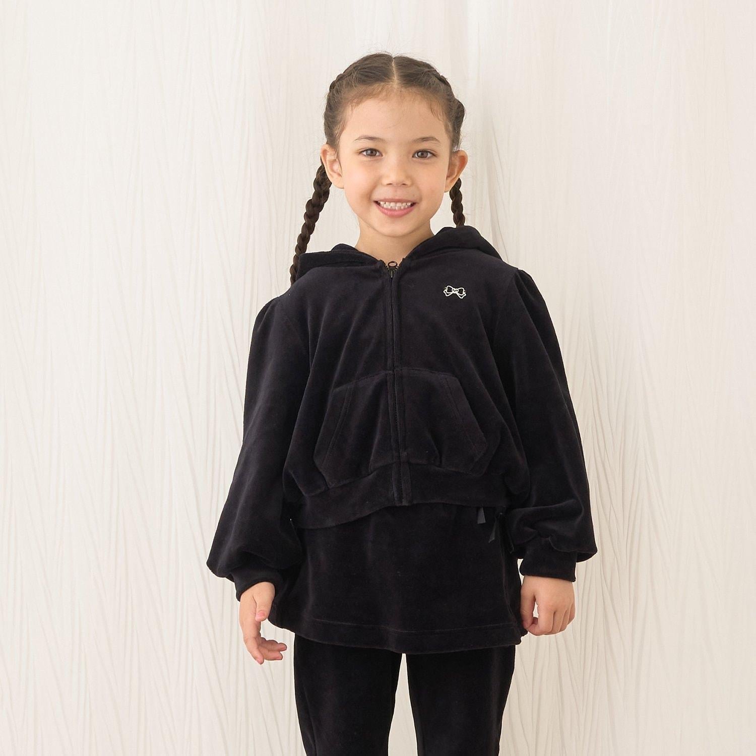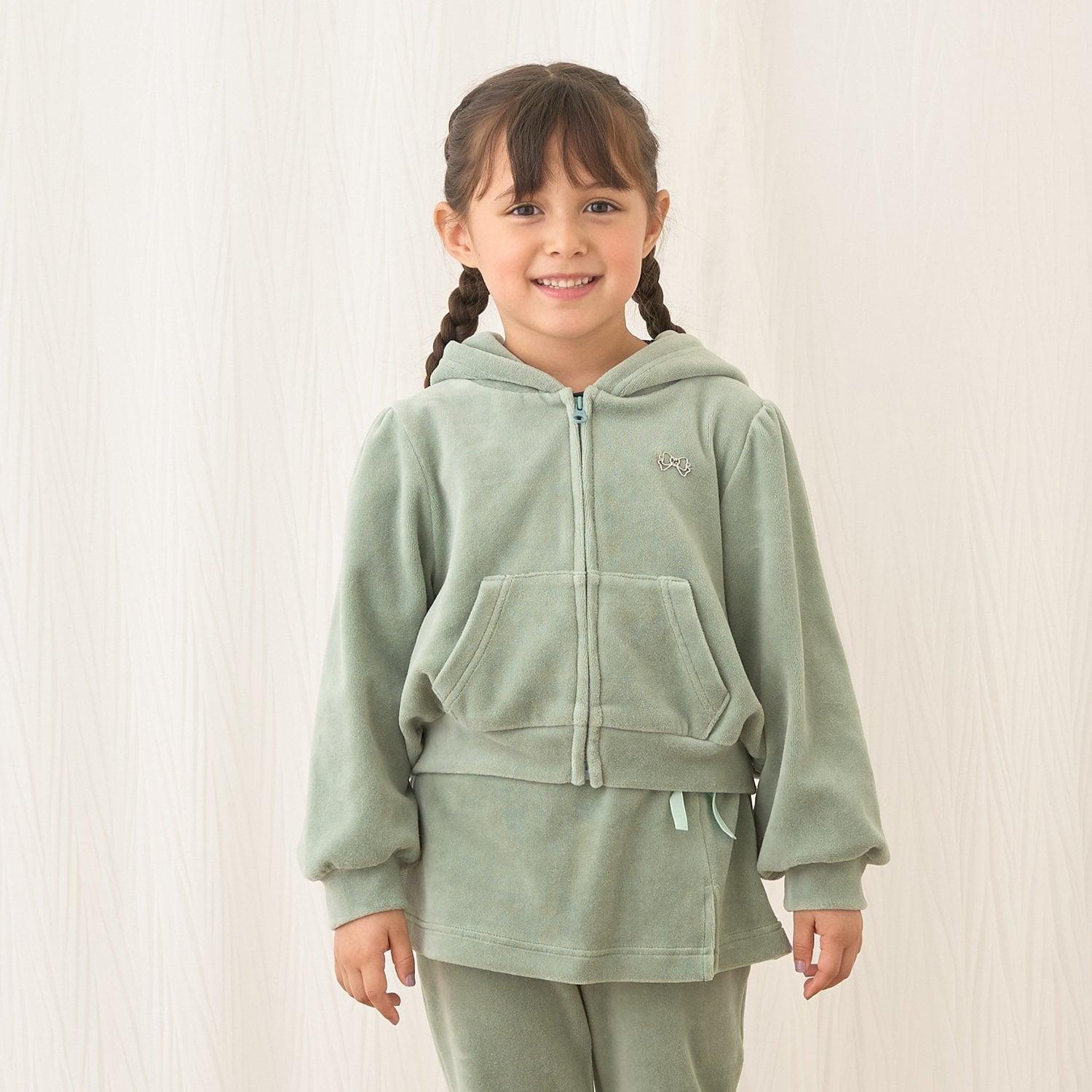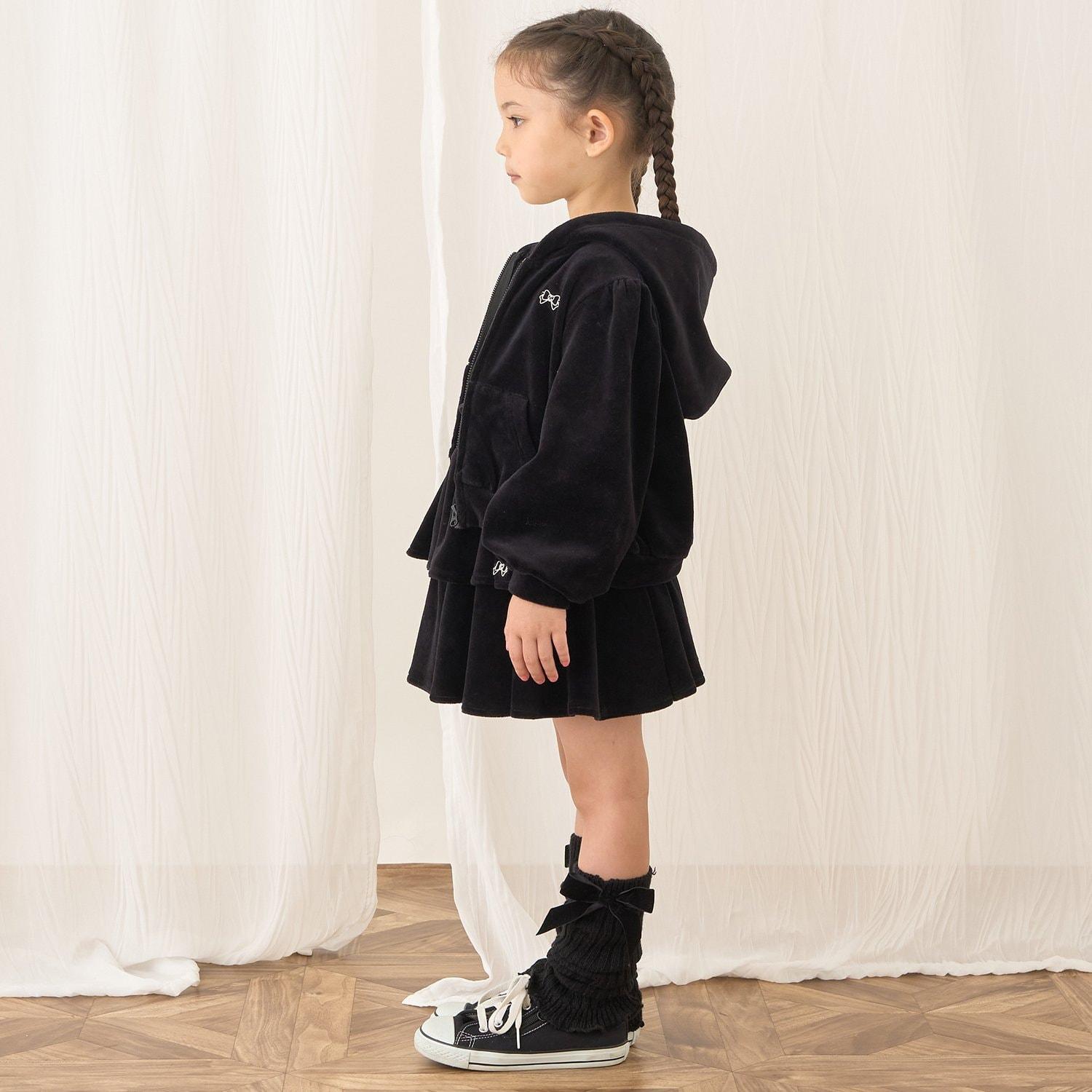 【柔軟天鵝絨】【可成套搭配】褶皺袖拉鍊連帽衫