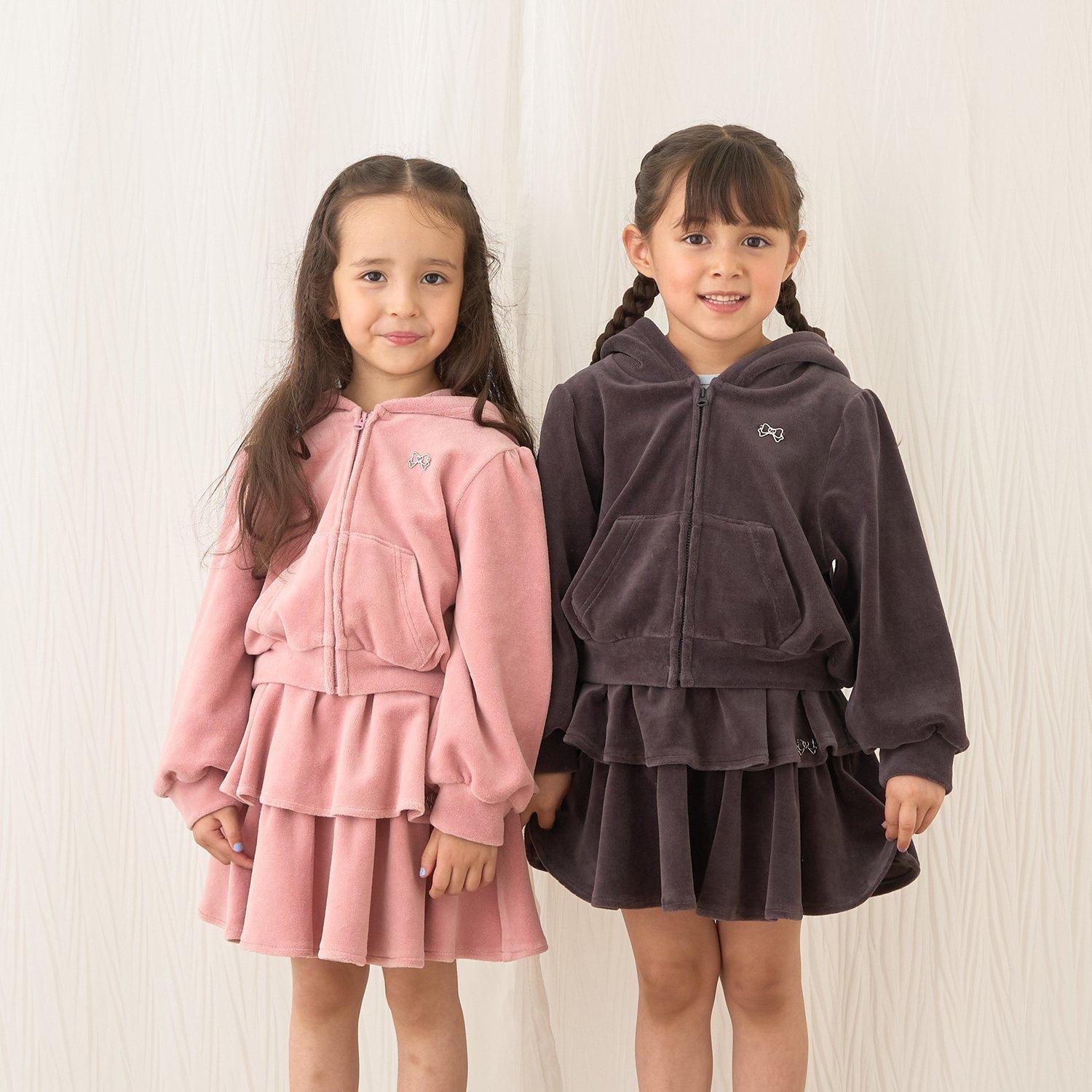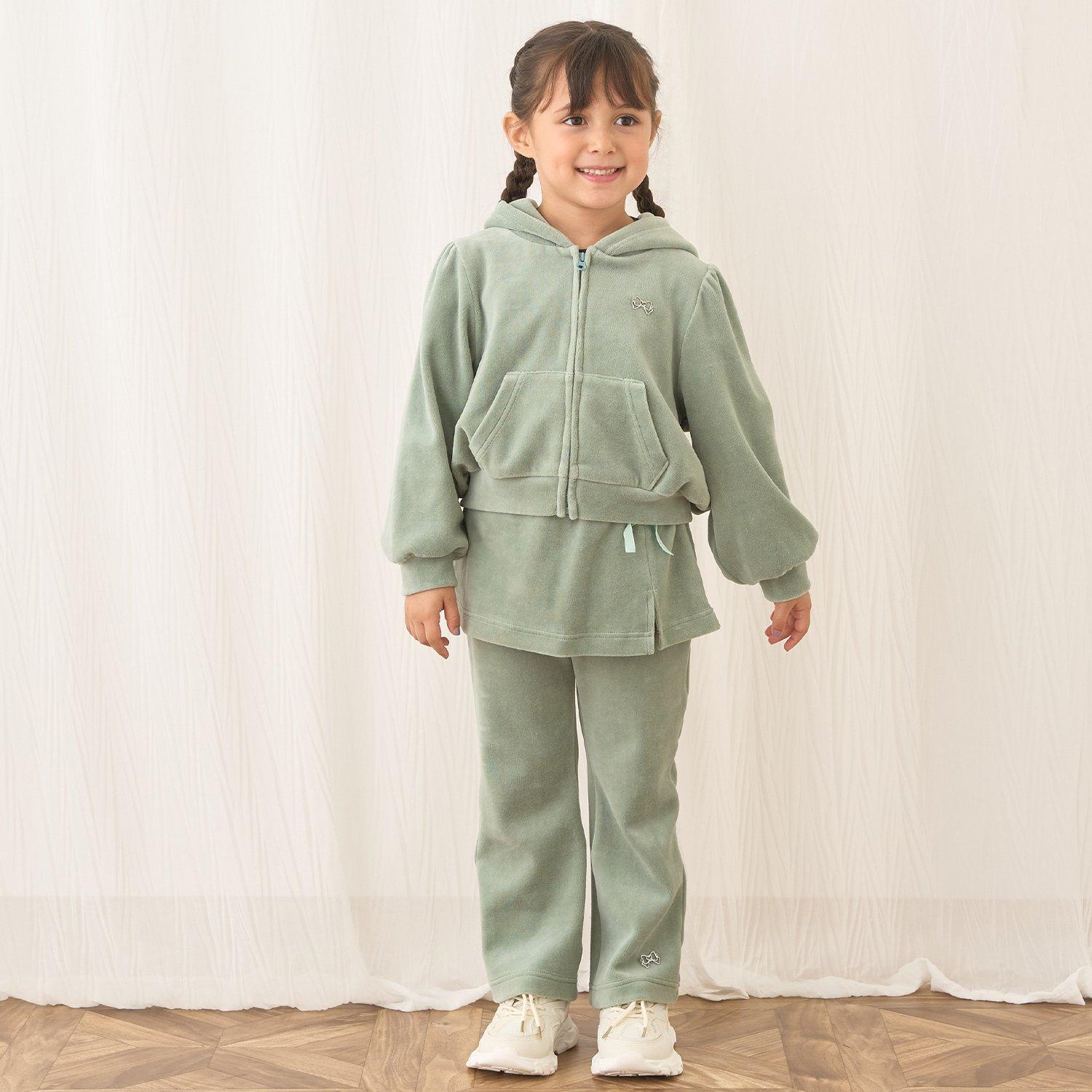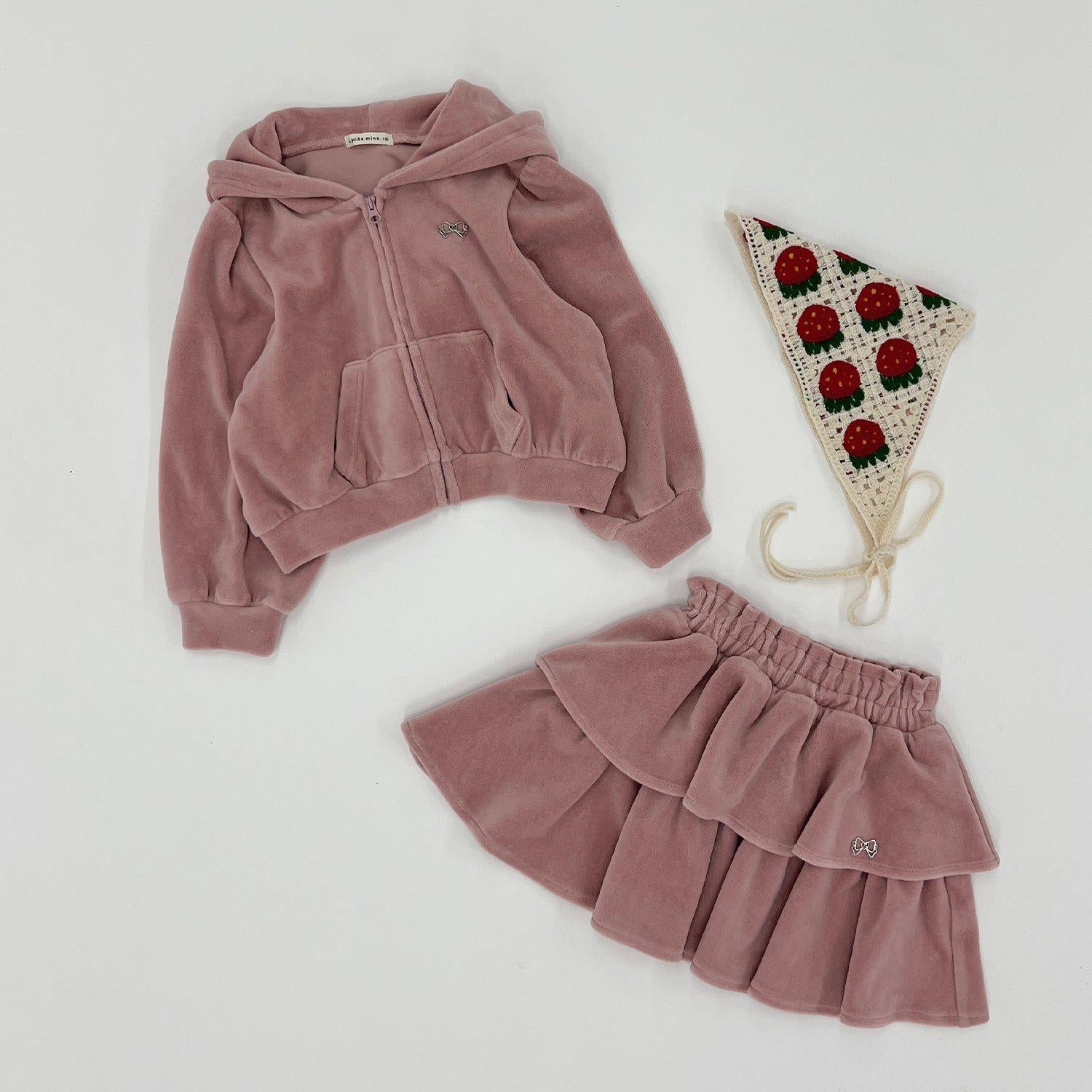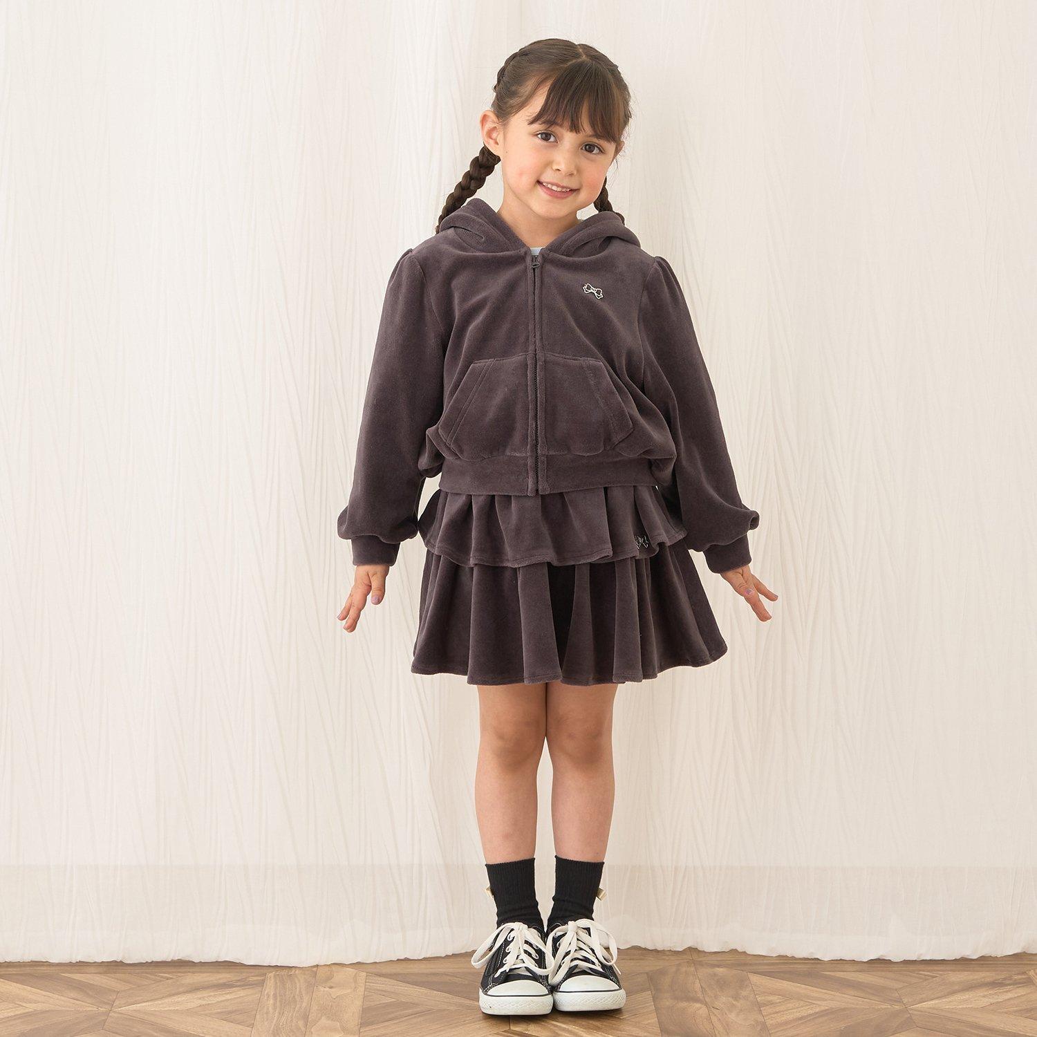 【柔軟天鵝絨】【可成套搭配】褶皺袖拉鍊連帽衫