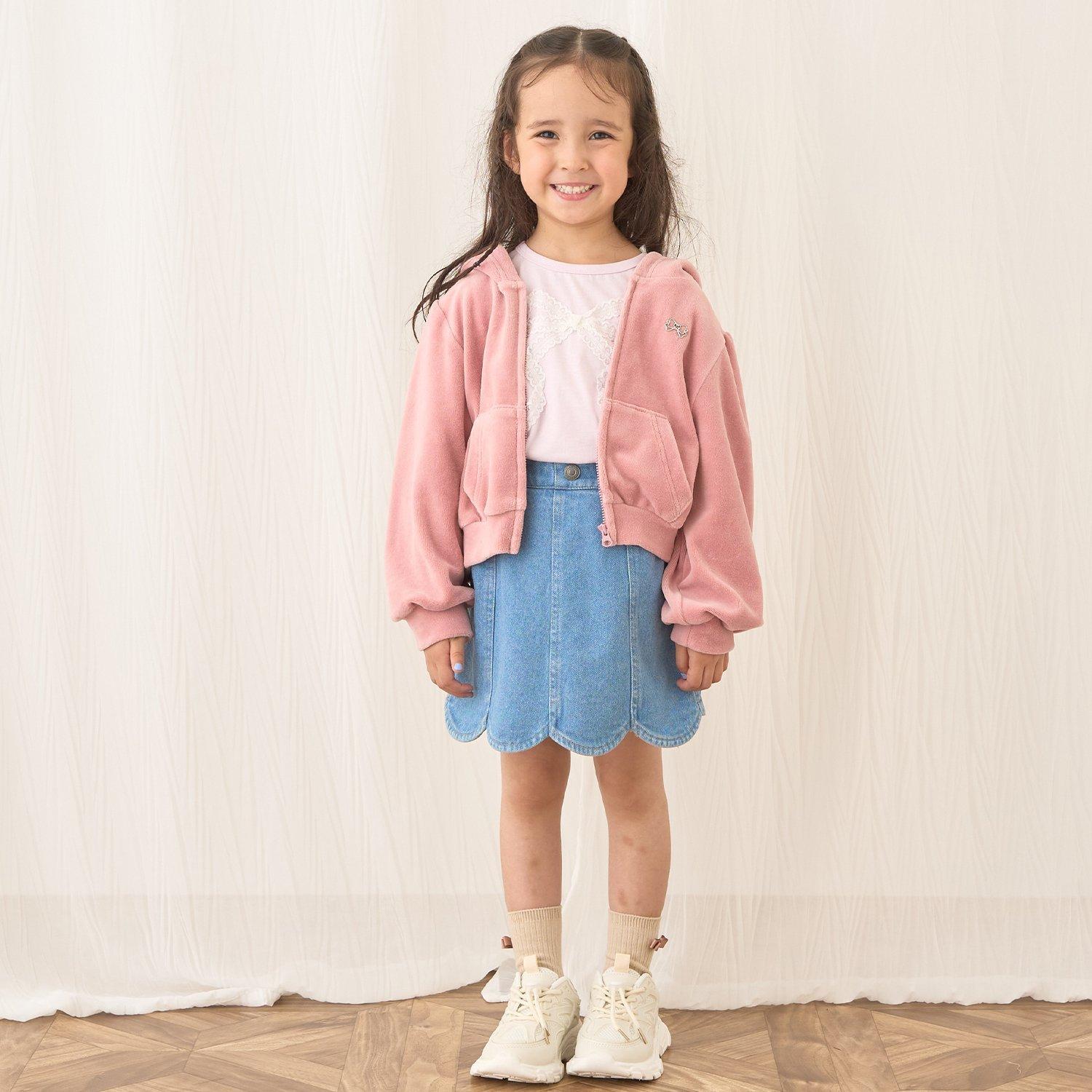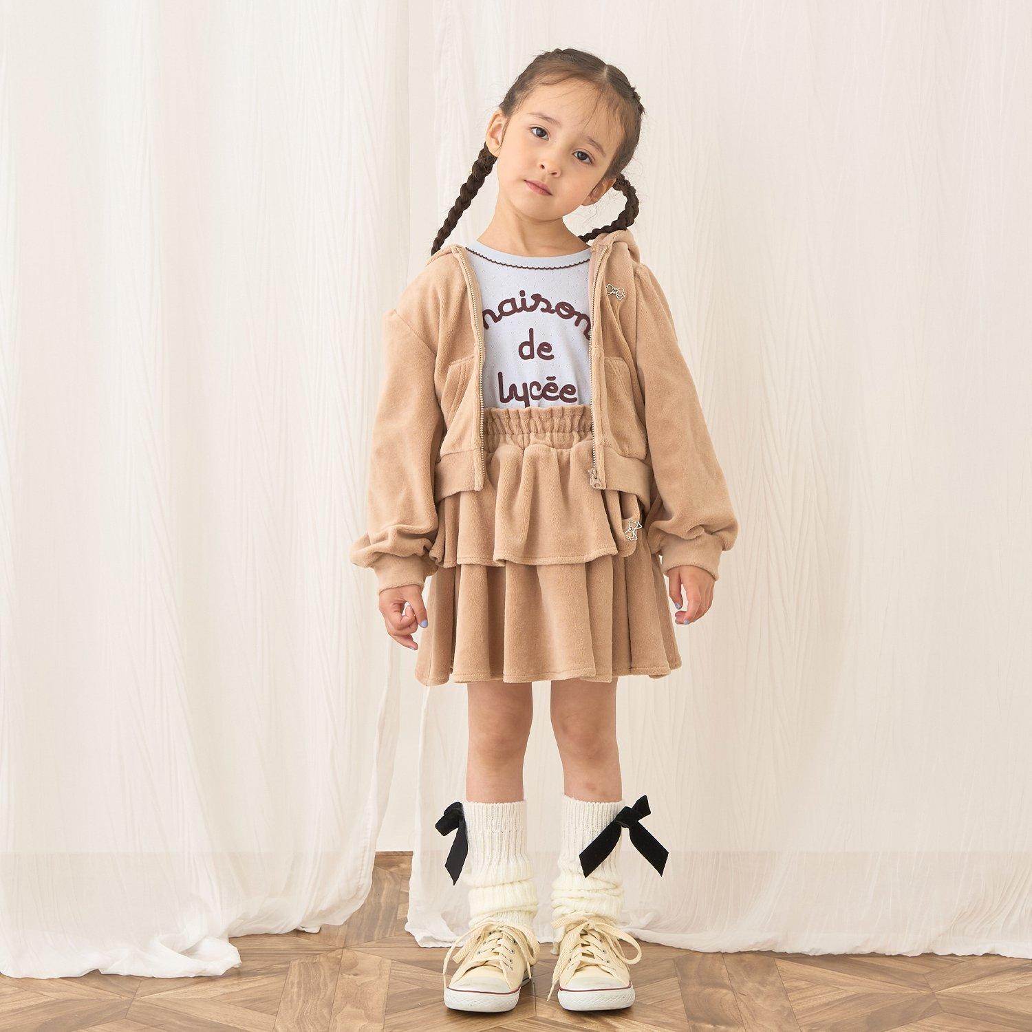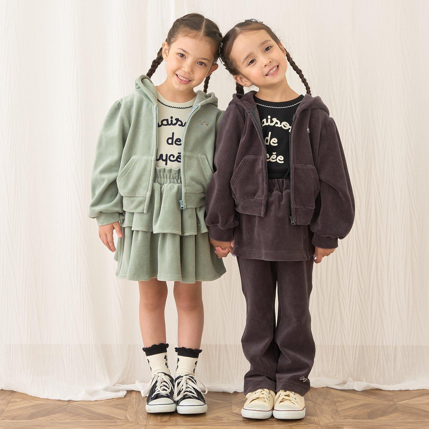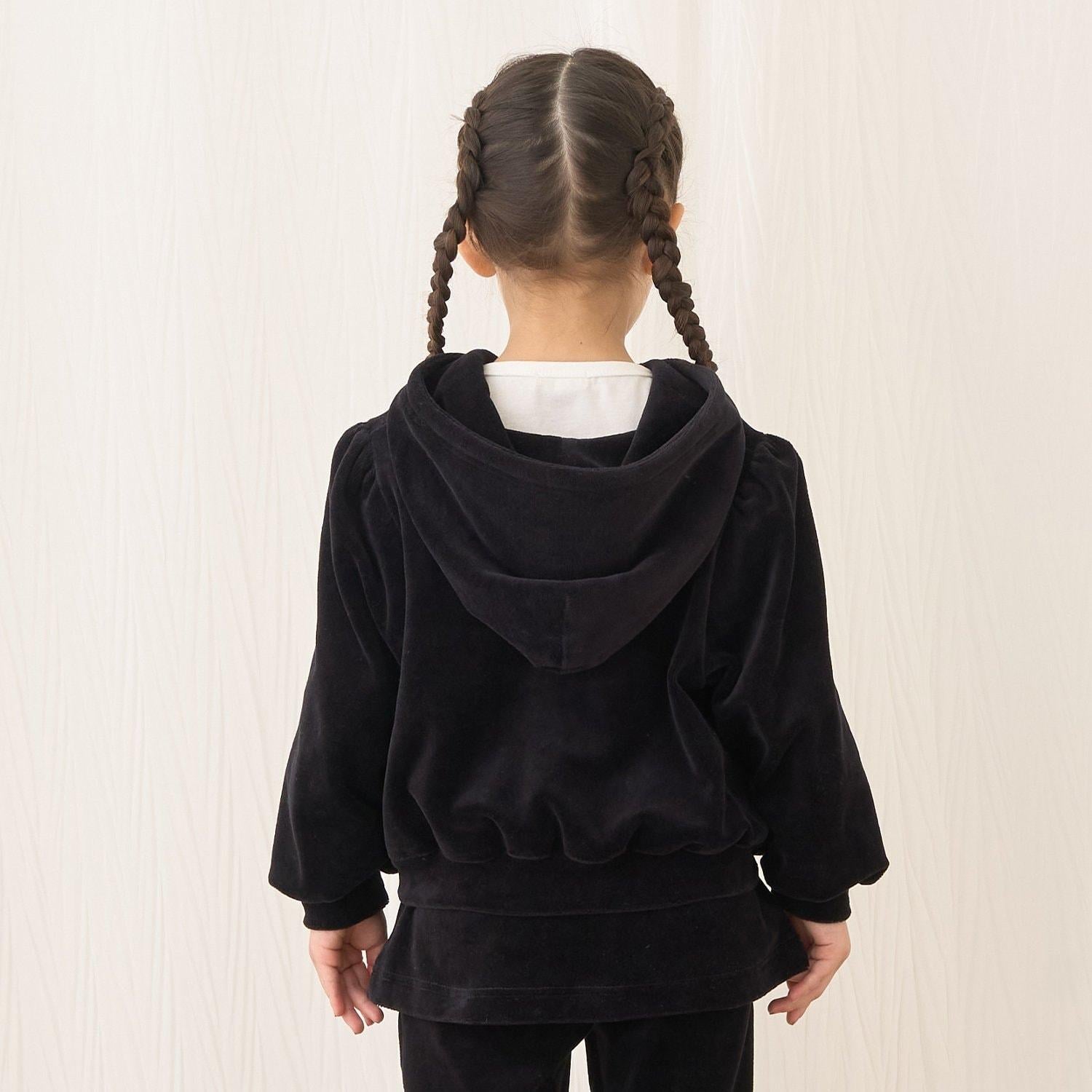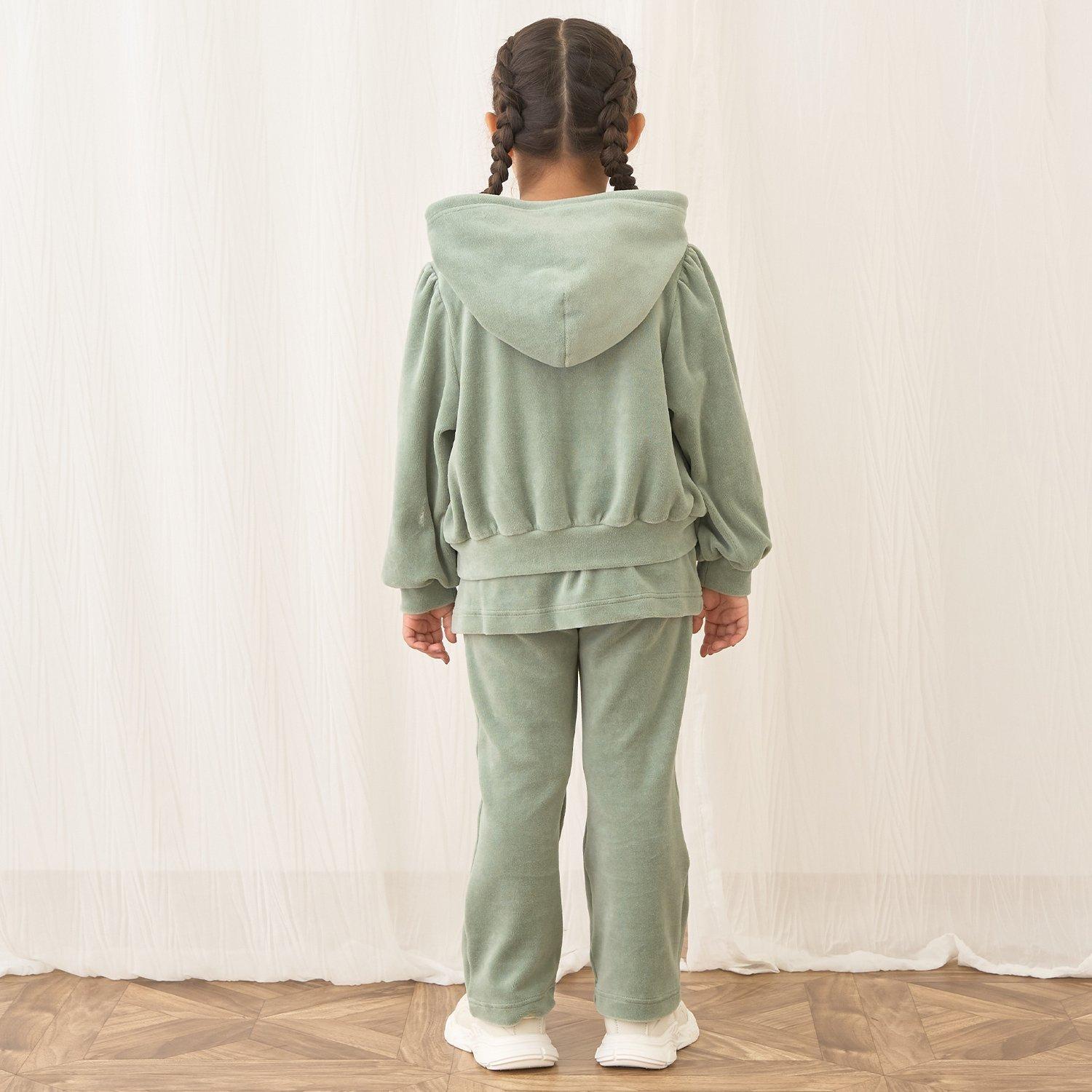 【柔軟天鵝絨】【可成套搭配】褶皺袖拉鍊連帽衫