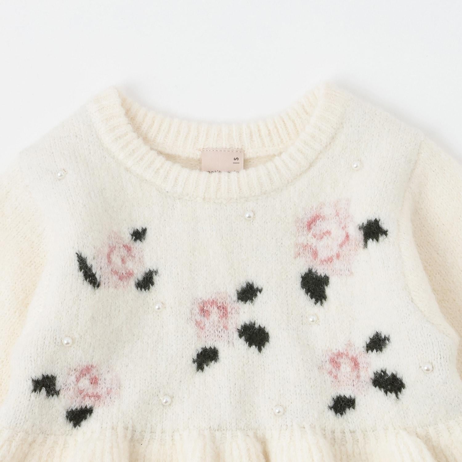 【柔軟蓬鬆/連結】花朵珍珠針織衫<可搭配套裝>