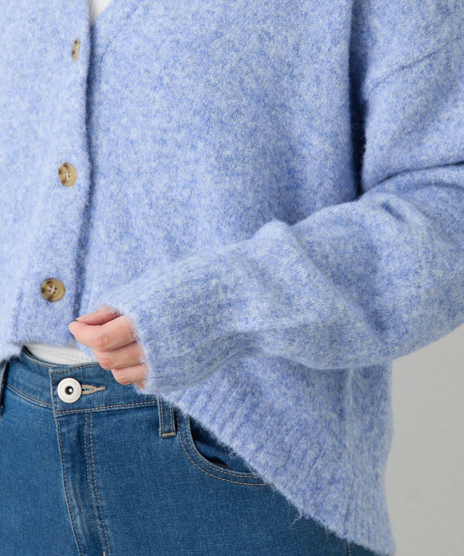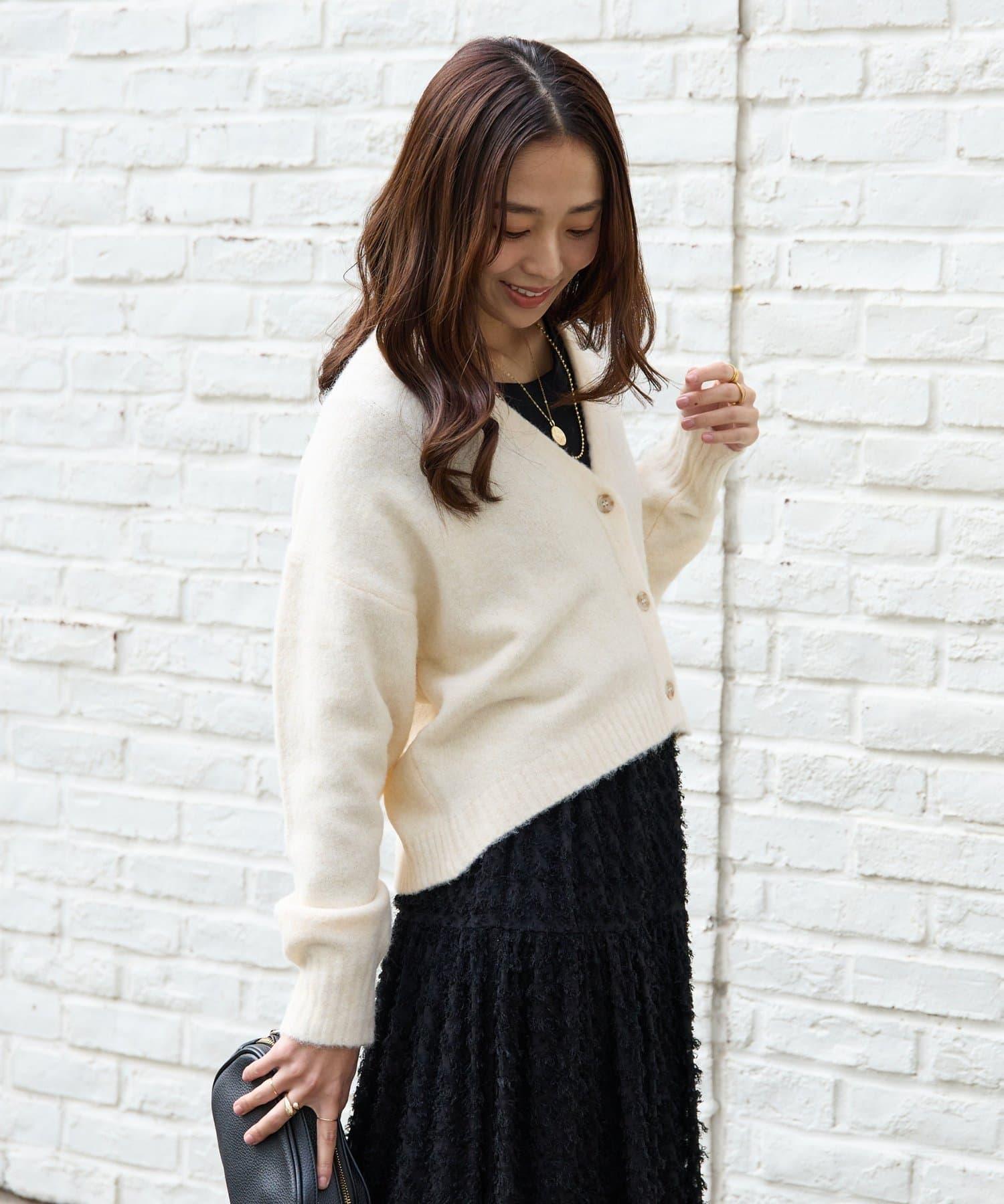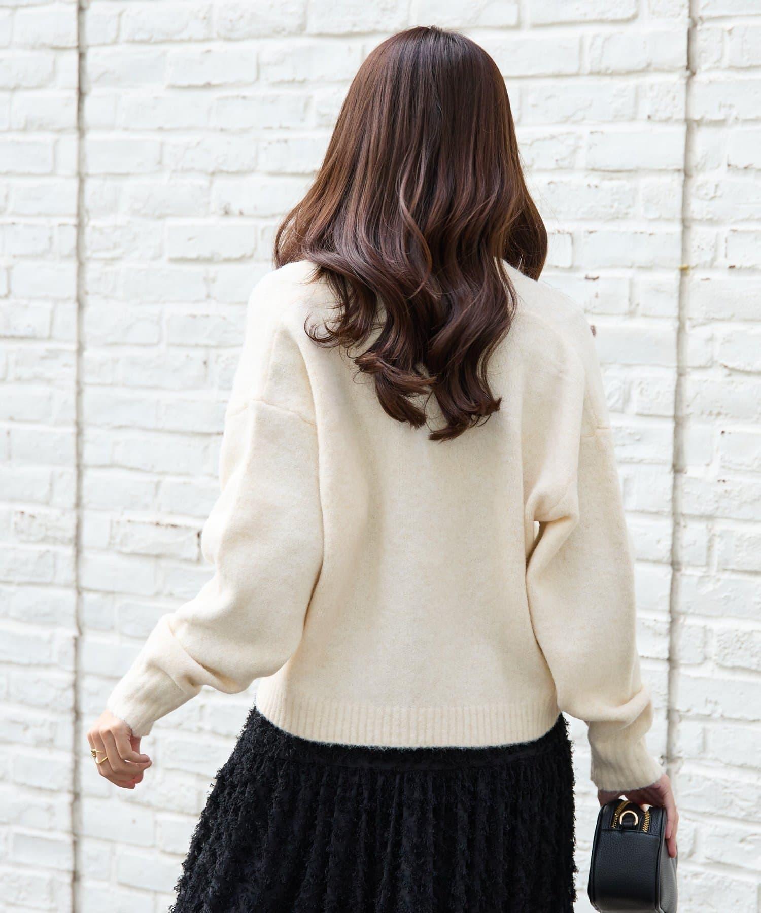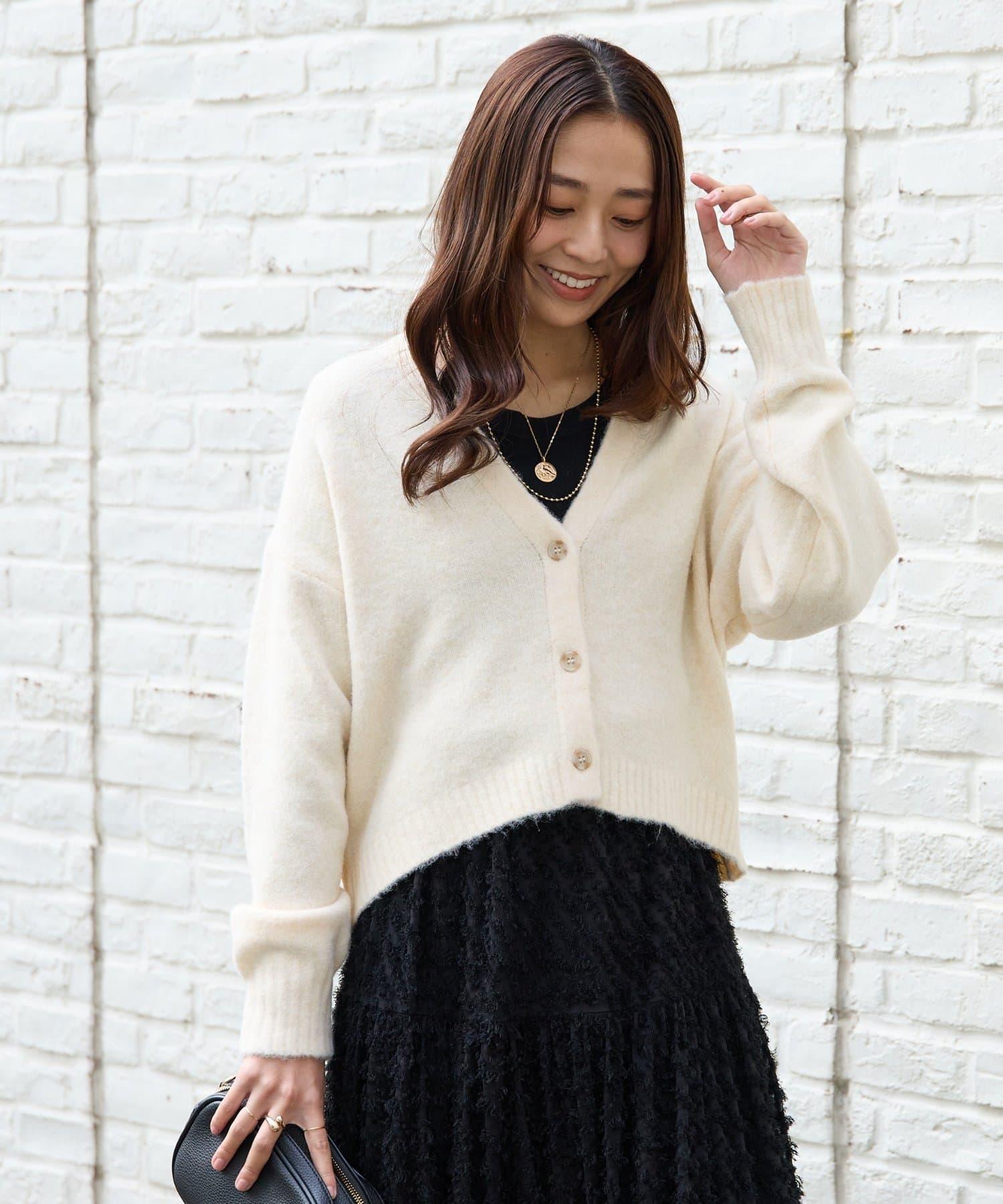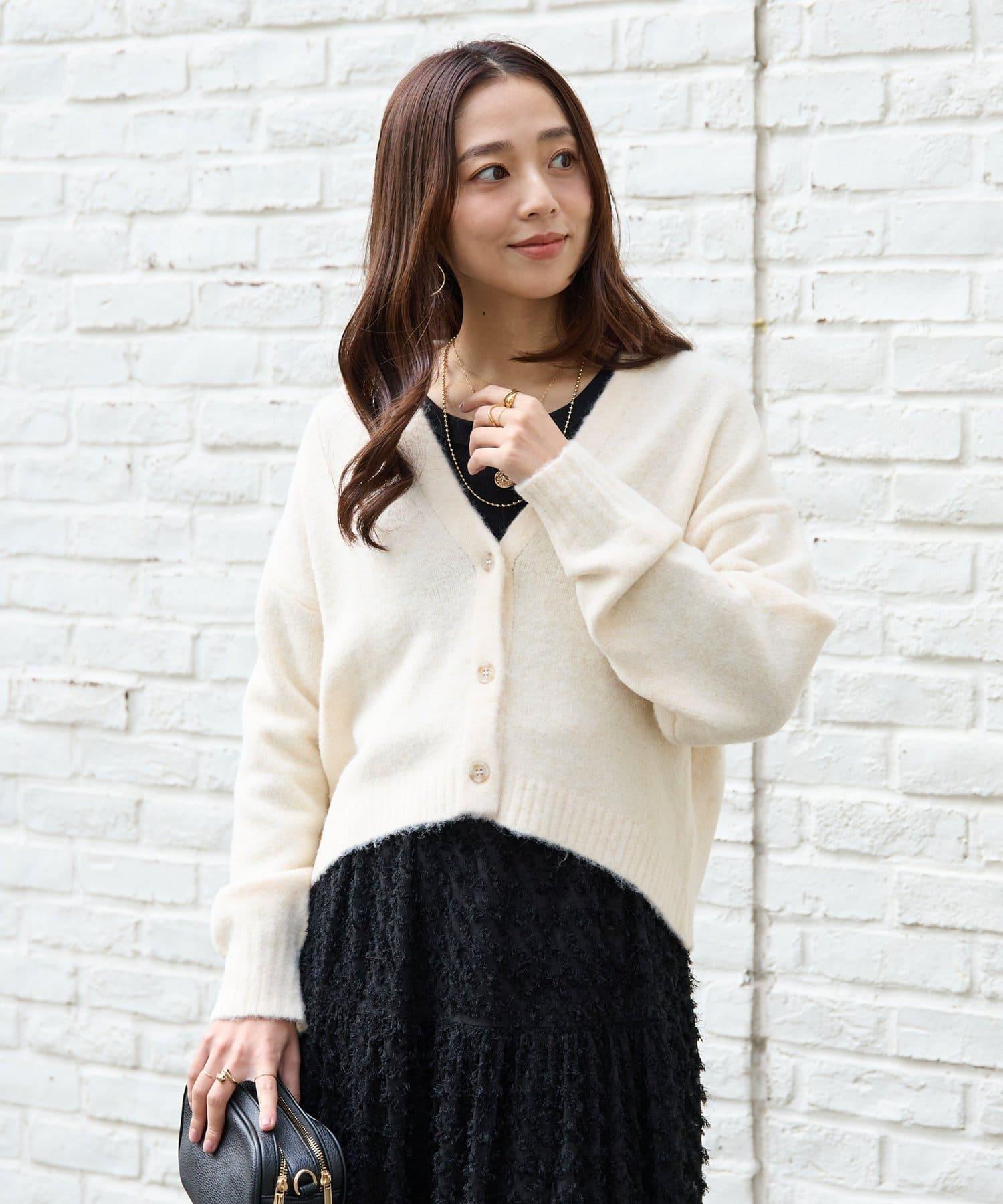 這款開衫採用蓬鬆的針織面料製成,讓人忍不住想一直撫摸它。