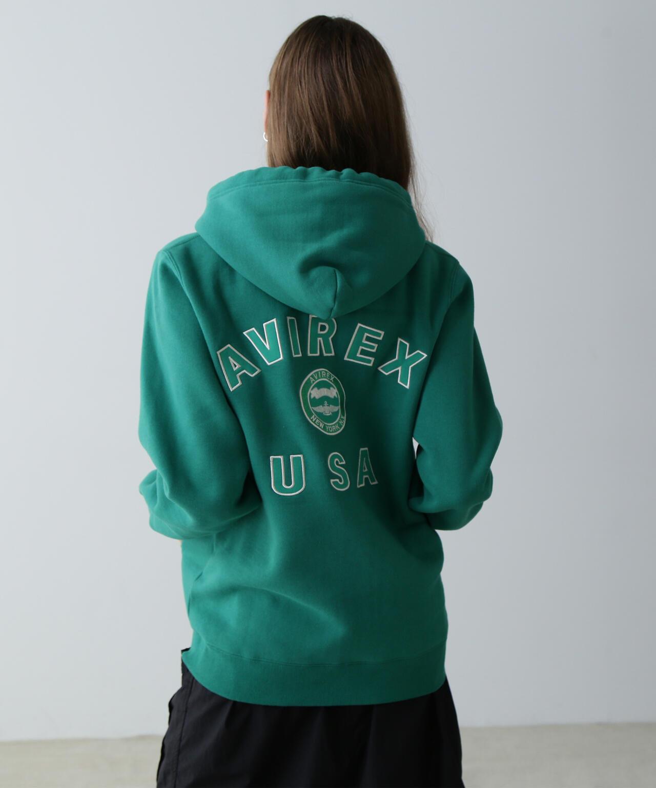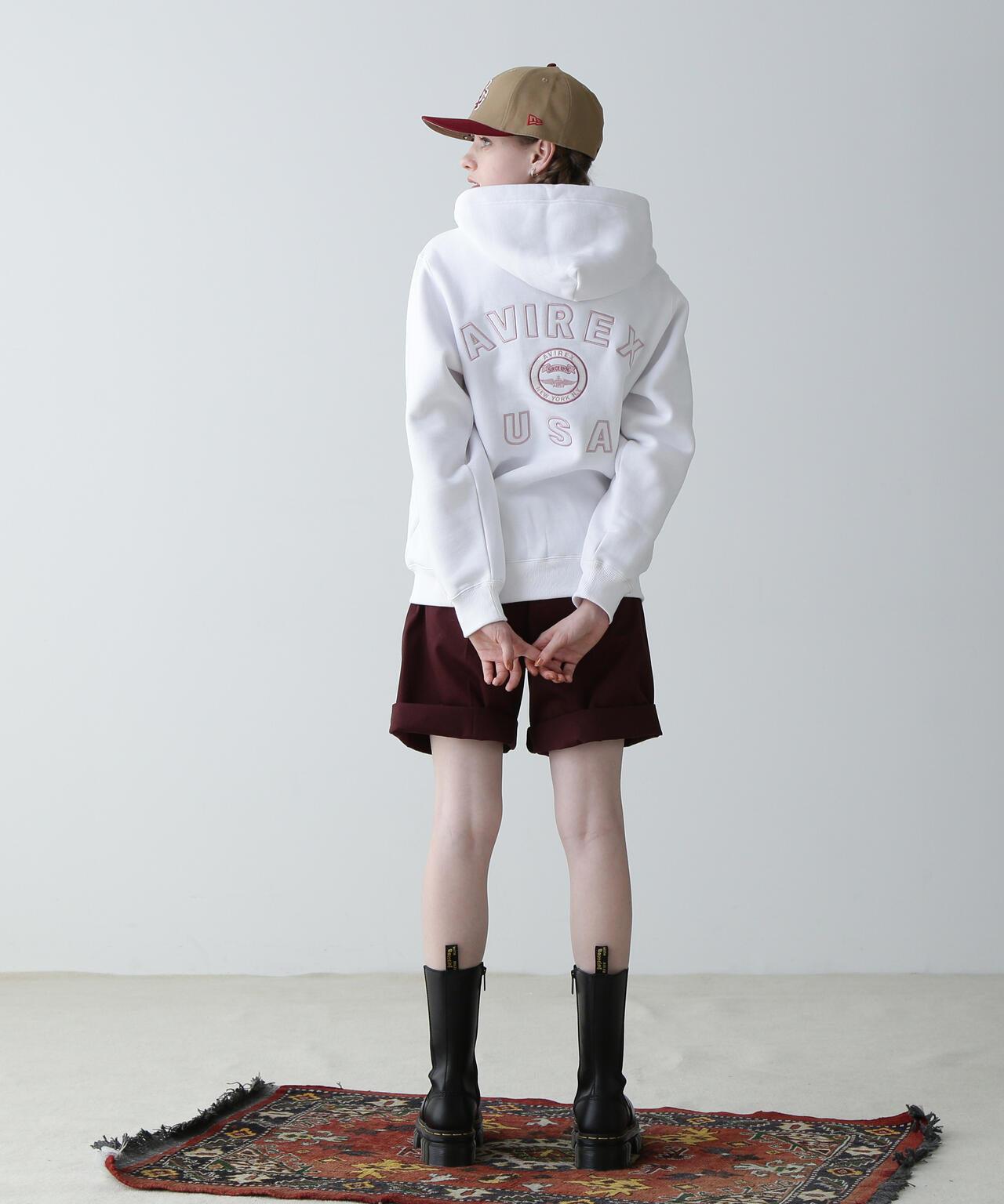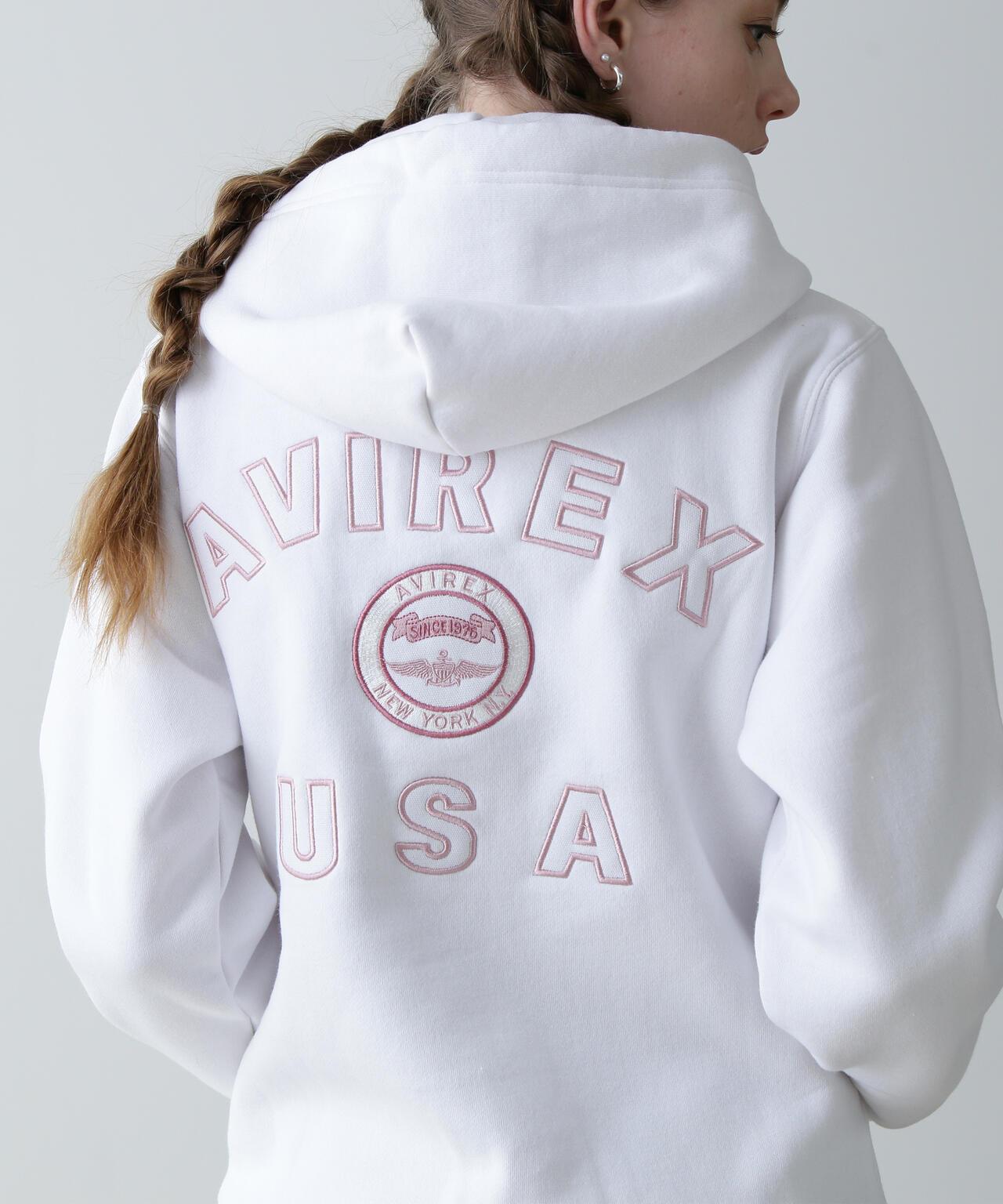 標準單品運動夾克衫上繡有 VARSITY 標誌,背面繡有 AVIREX 標準 VARSITY 皮革夾克的圖案。one piece 釋放主角風采的單品--從品牌的初學者到復讀生,one piece 都是不可或缺的標準單品。 推薦款式廓形寬鬆,但因為是為了女性穿著時的平衡感而製作,所以不會太男裝化,裙子也可以。是易於搭配的單品。也可作為輕便的編織物使用。相關商品7833932601: VARSITY LOGO SWEAT78349306