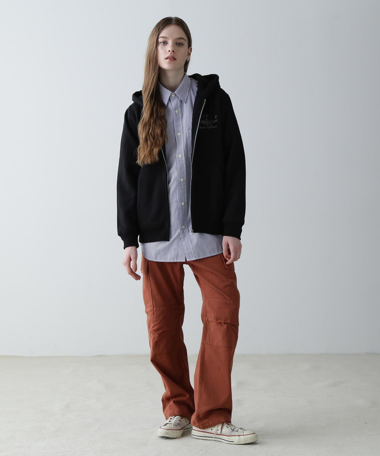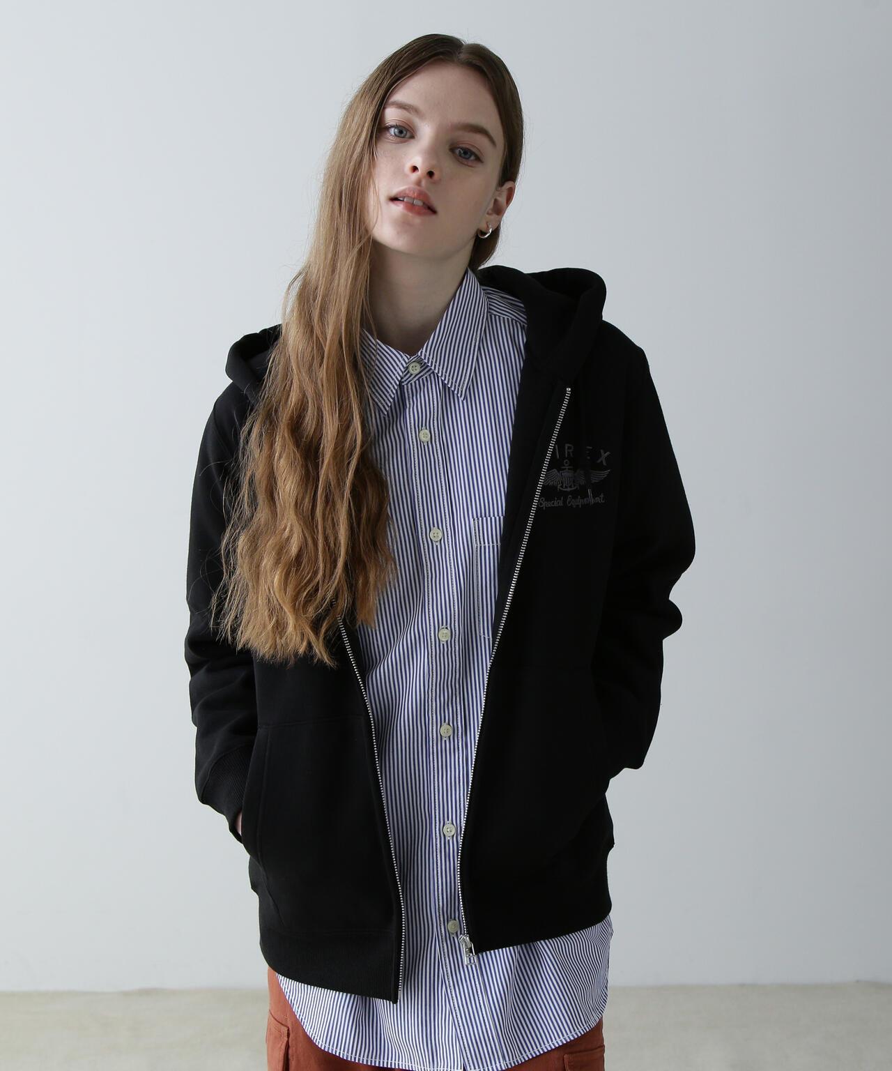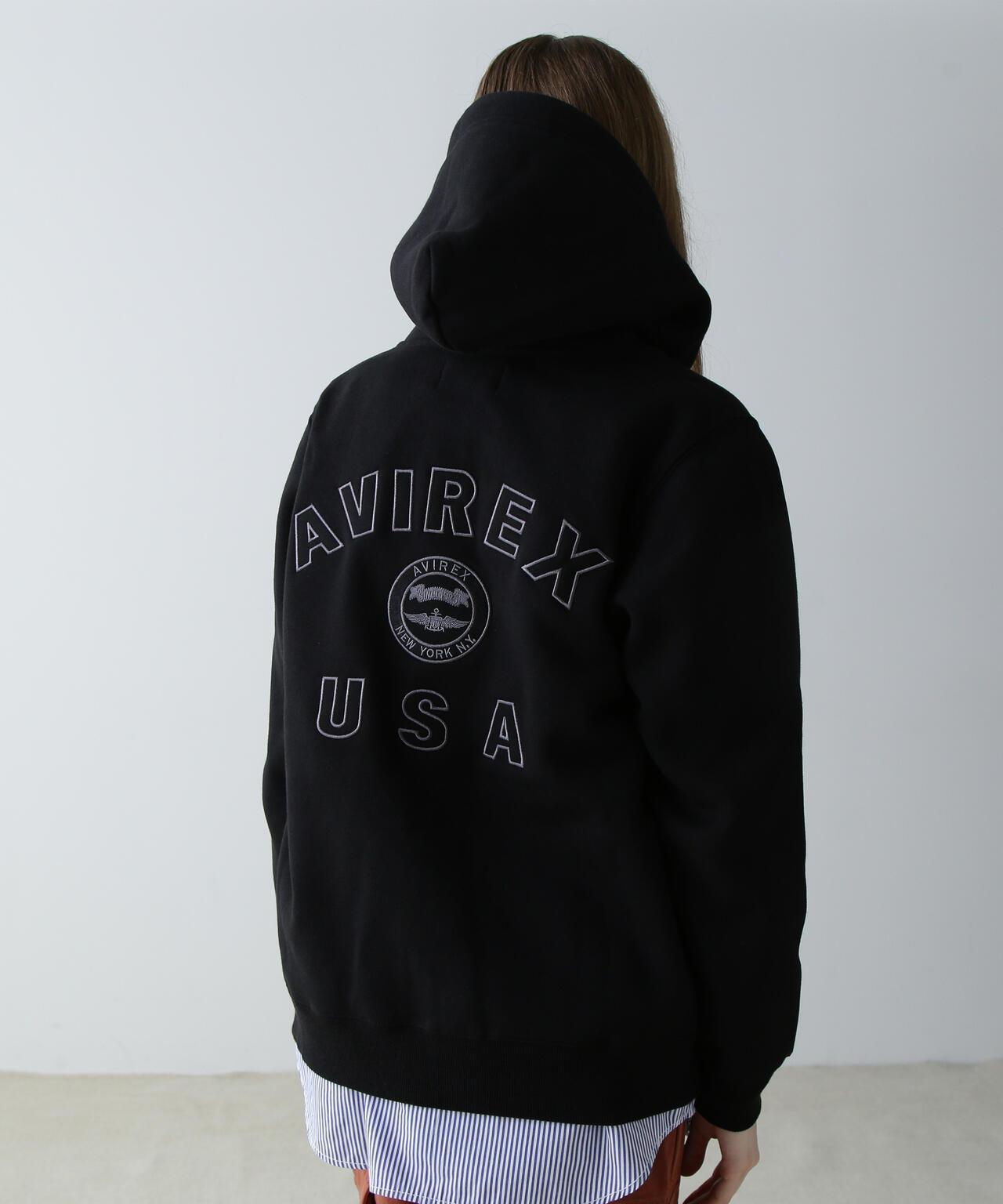 標準單品運動夾克衫上繡有 VARSITY 標誌,背面繡有 AVIREX 標準 VARSITY 皮革夾克的圖案。one piece 釋放主角風采的單品--從品牌的初學者到復讀生,one piece 都是不可或缺的標準單品。 推薦款式廓形寬鬆,但因為是為了女性穿著時的平衡感而製作,所以不會太男裝化,裙子也可以。是易於搭配的單品。也可作為輕便的編織物使用。相關商品7833932601: VARSITY LOGO SWEAT78349306