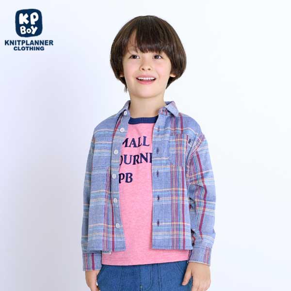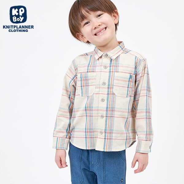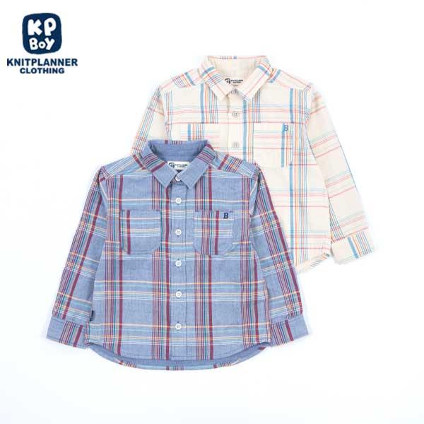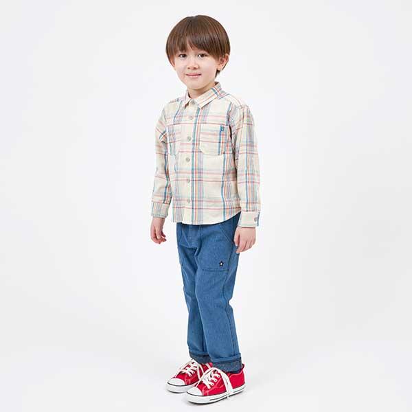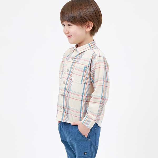 格子圖案長袖襯衫(100~130)
