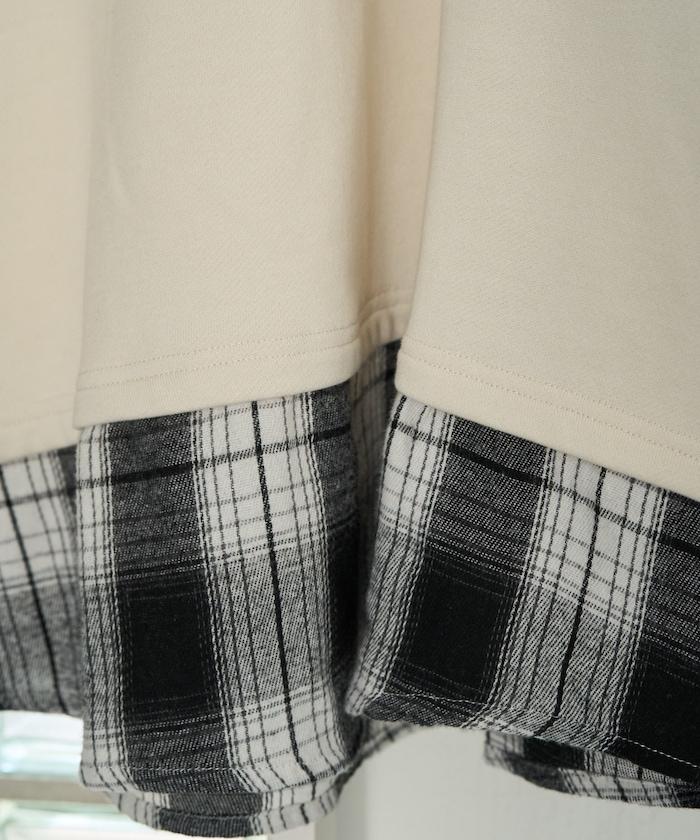 從下襬和袖口探出的格紋圖案更添造型亮點。