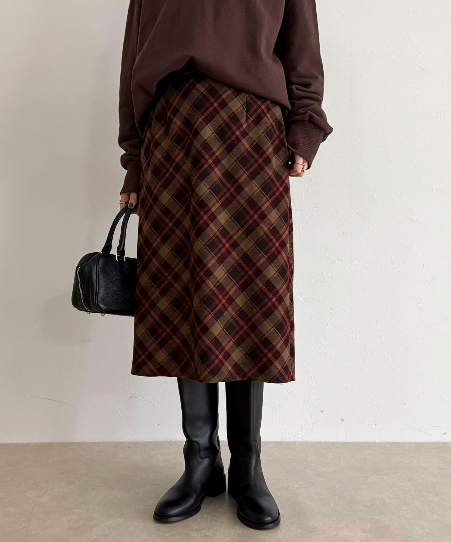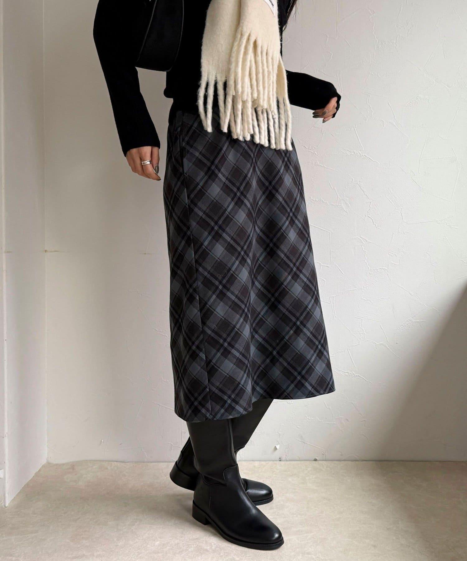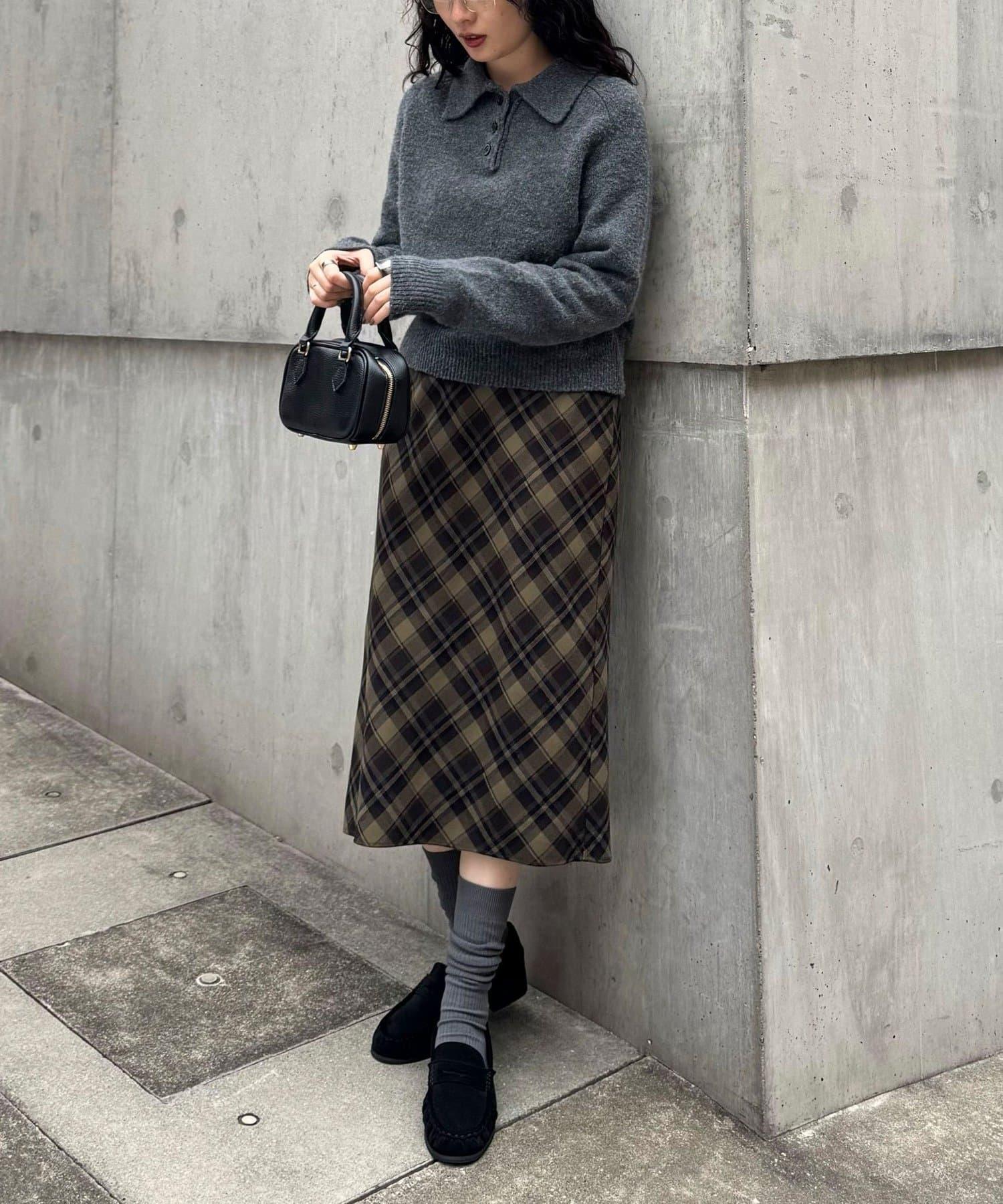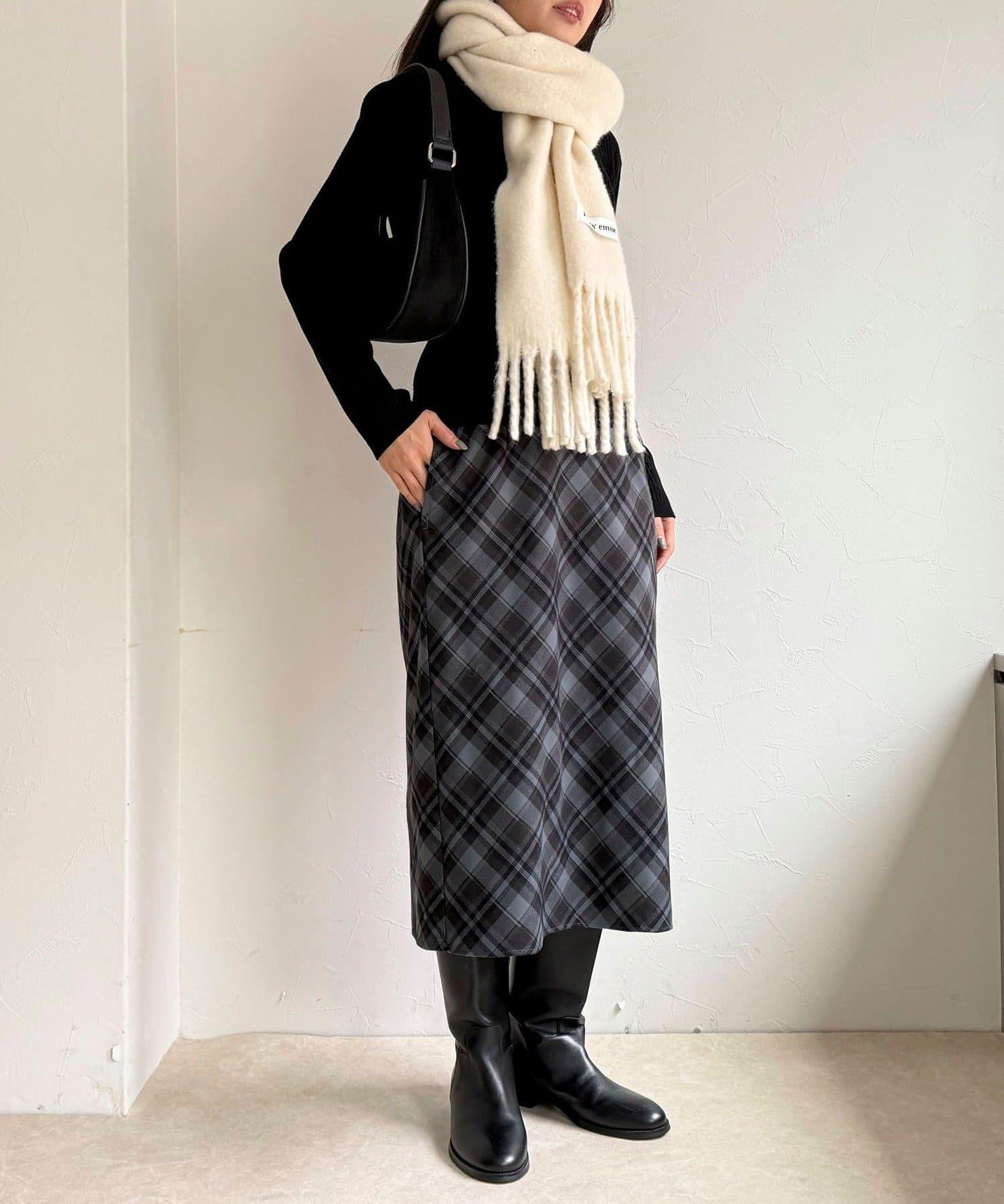 傳統格紋圖案的中長款半身裙,優雅而富有季節感。