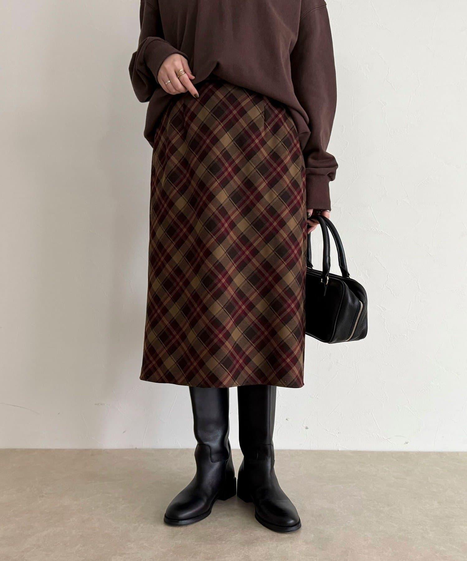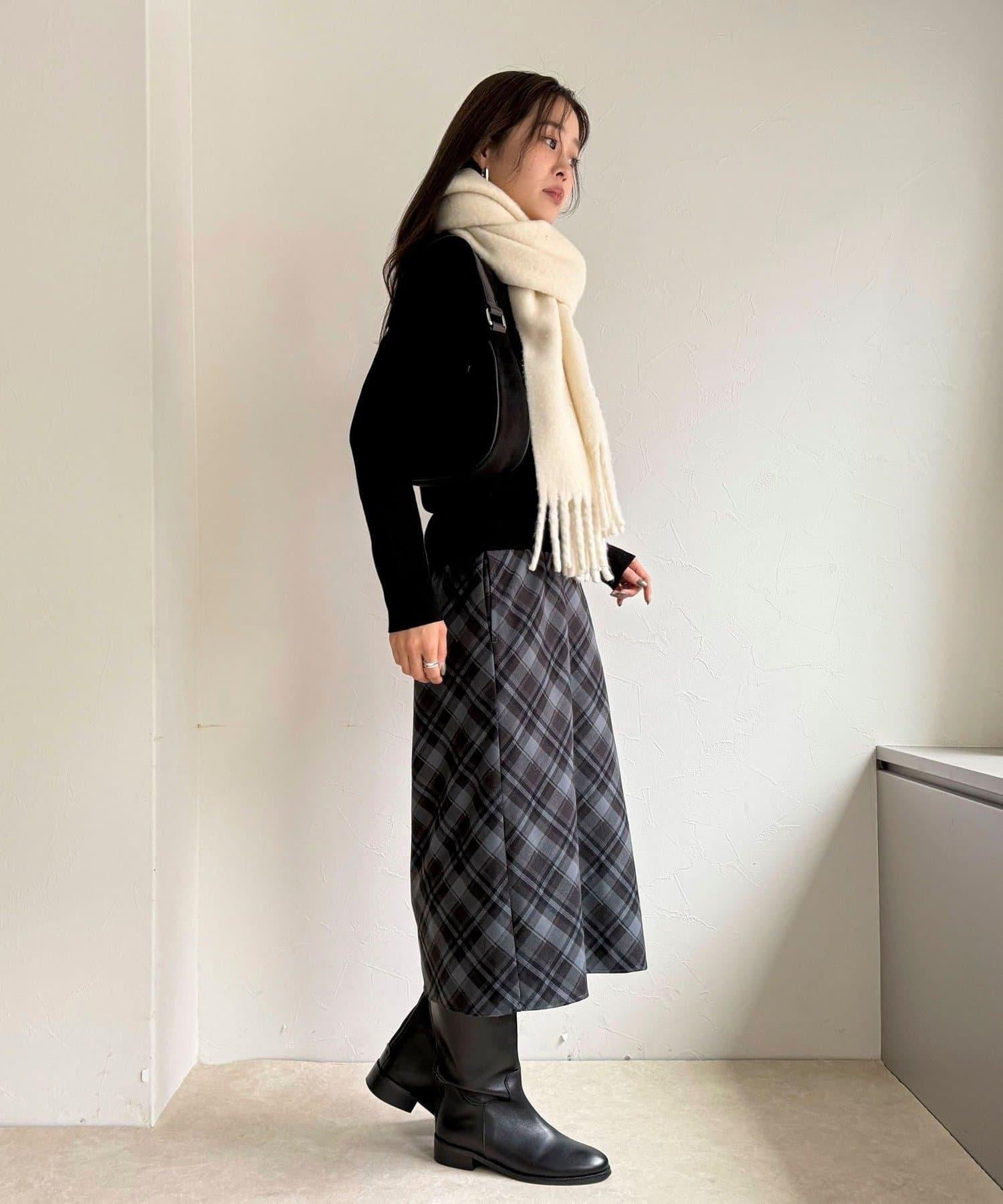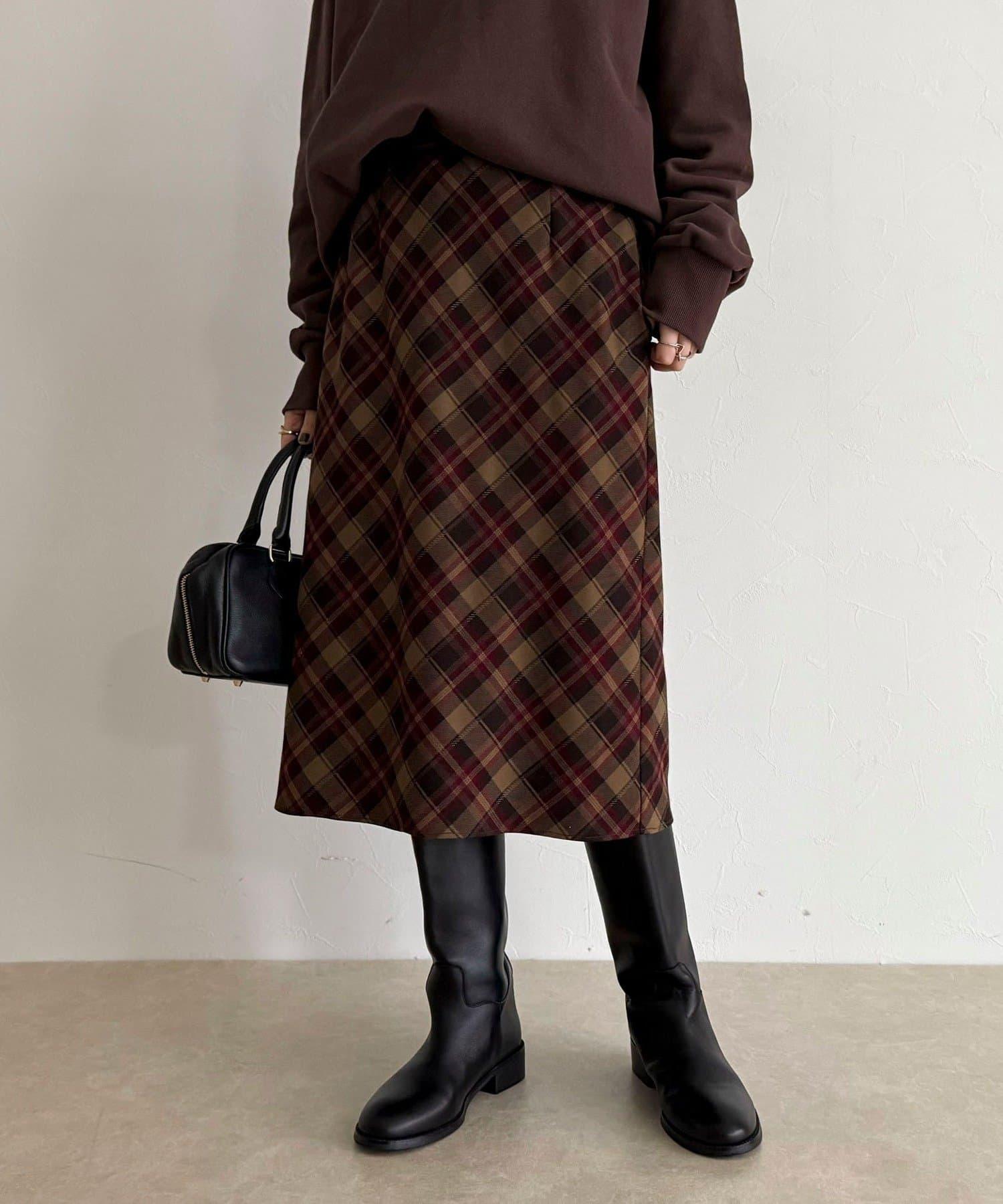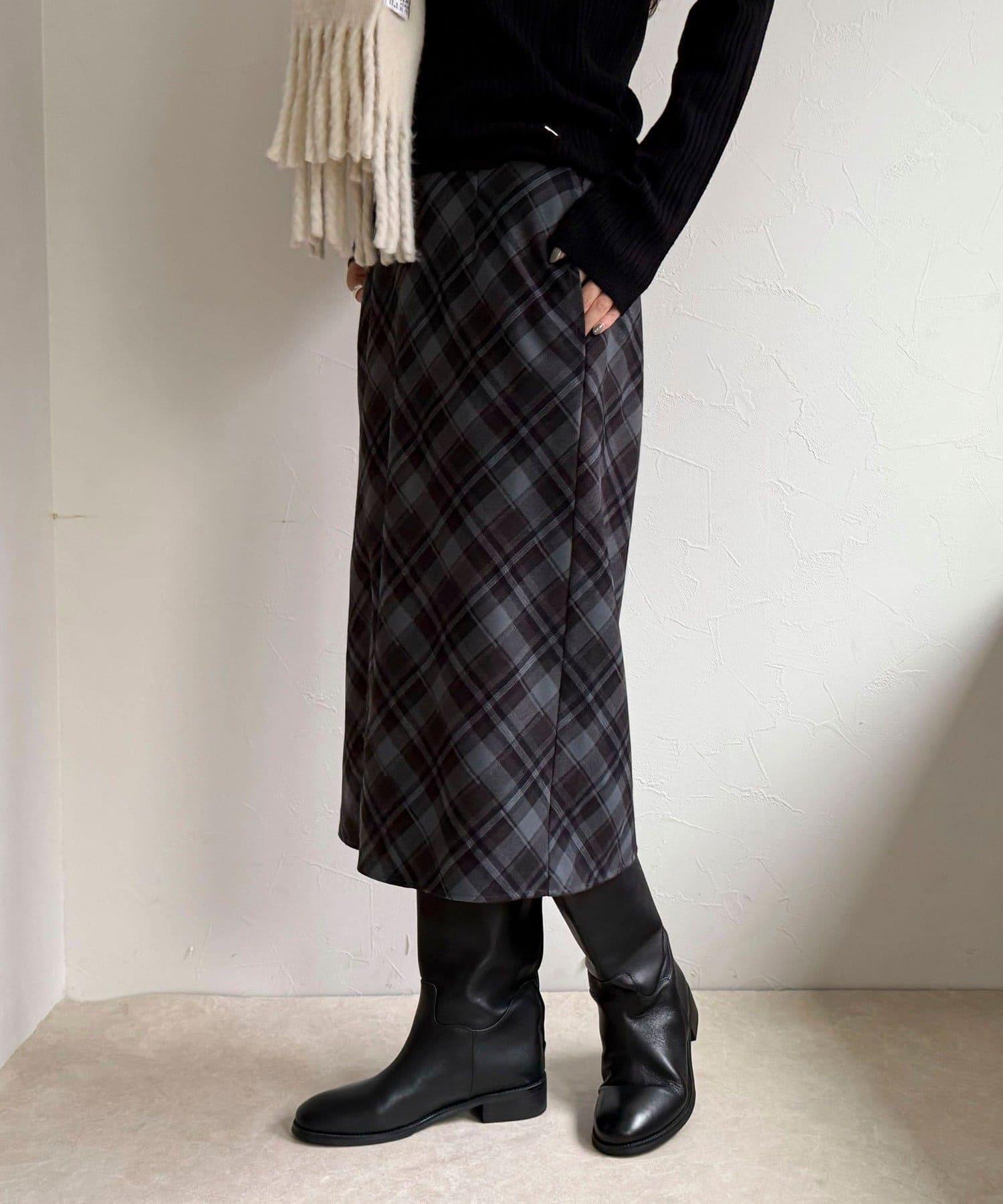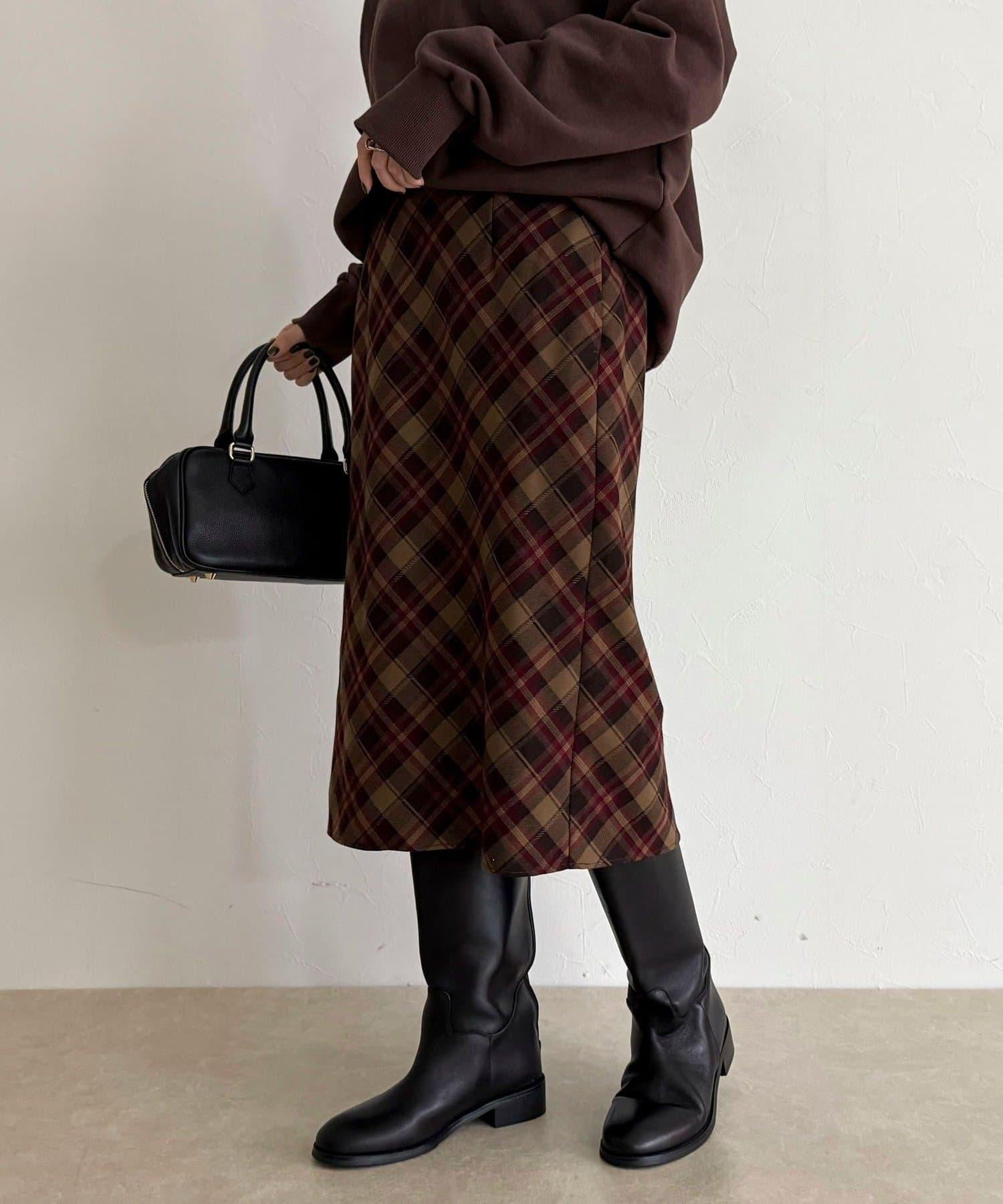 傳統格紋圖案的中長款半身裙,優雅而富有季節感。