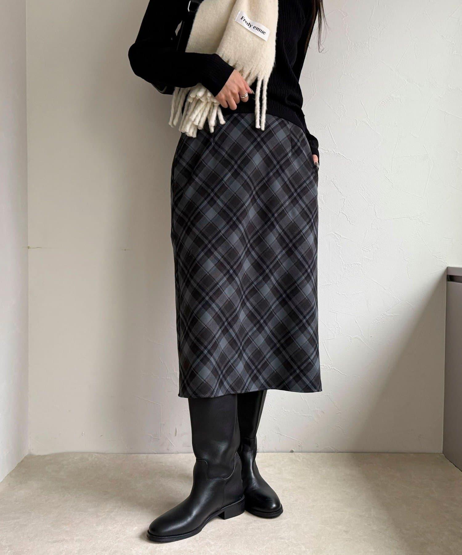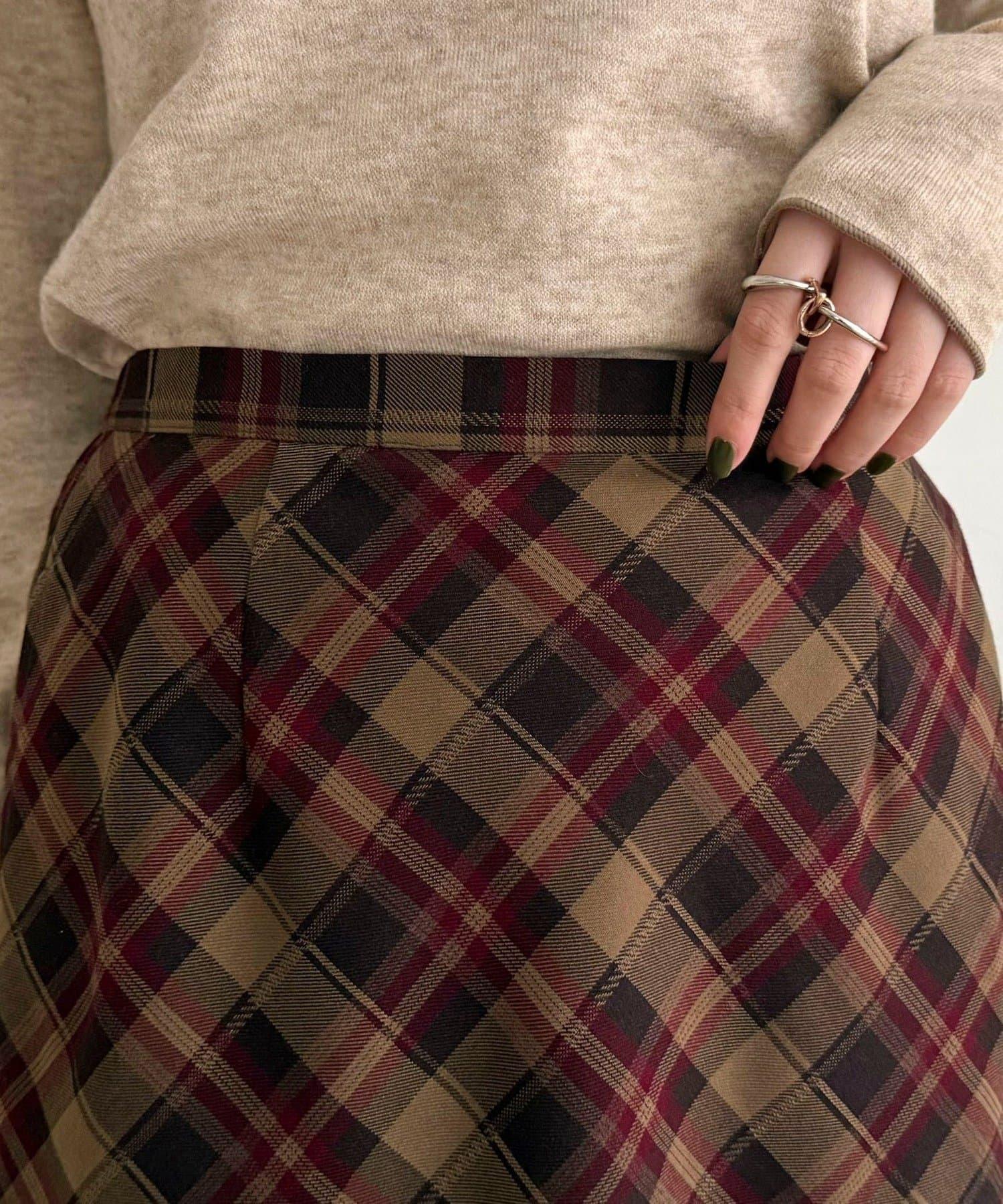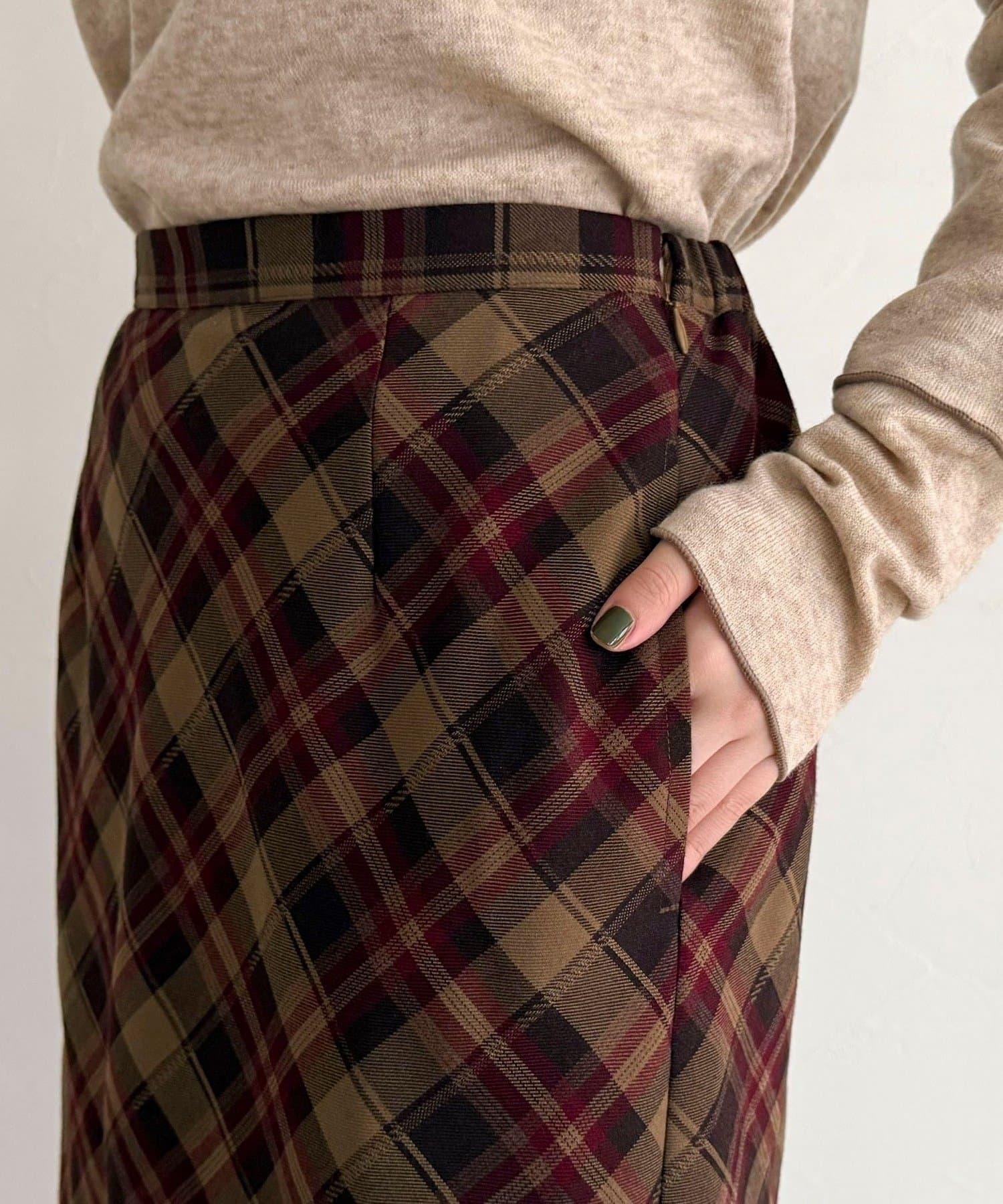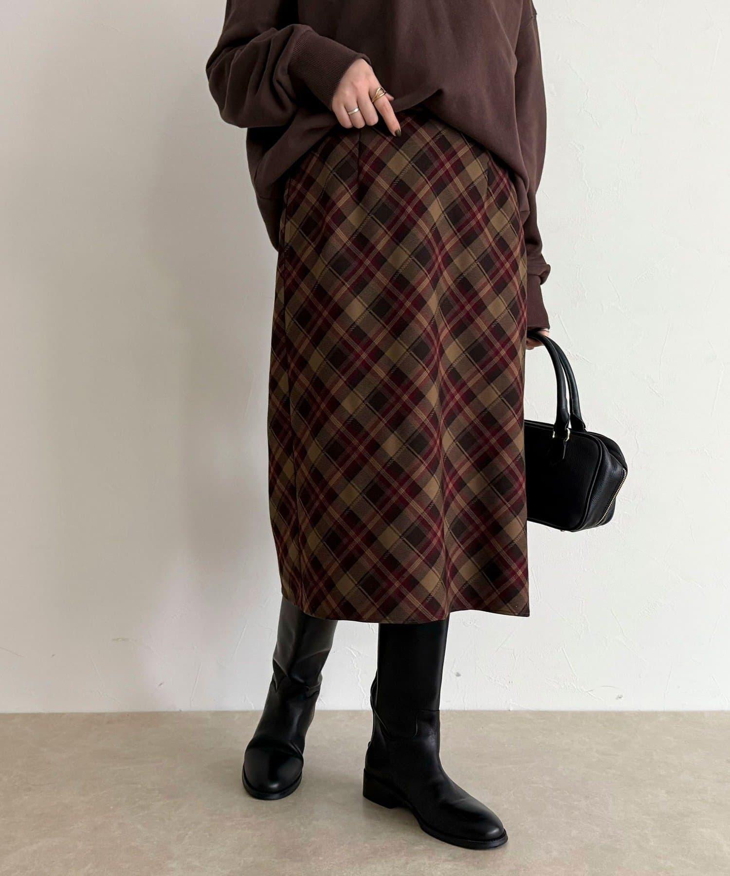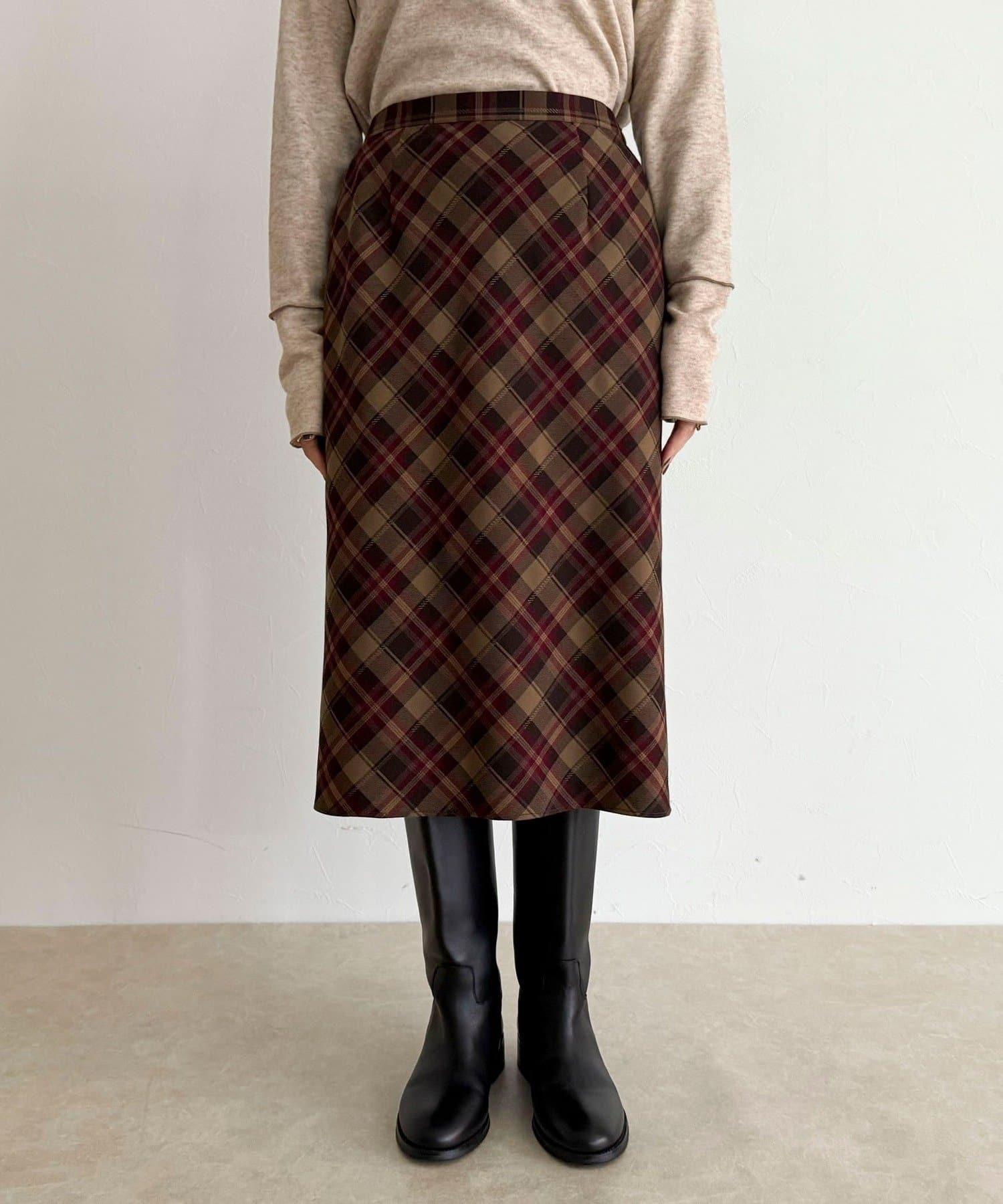 傳統格紋圖案的中長款半身裙,優雅而富有季節感。