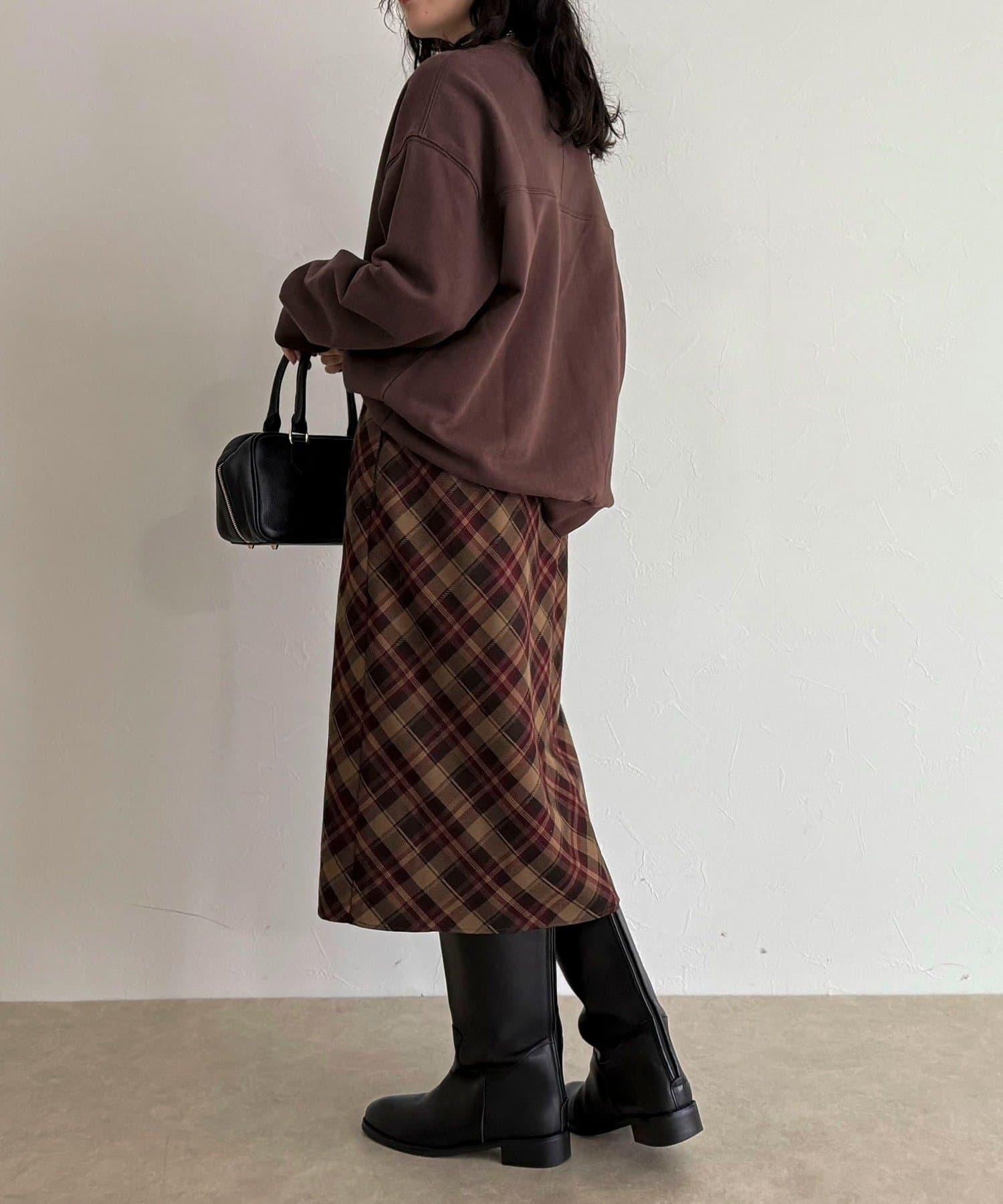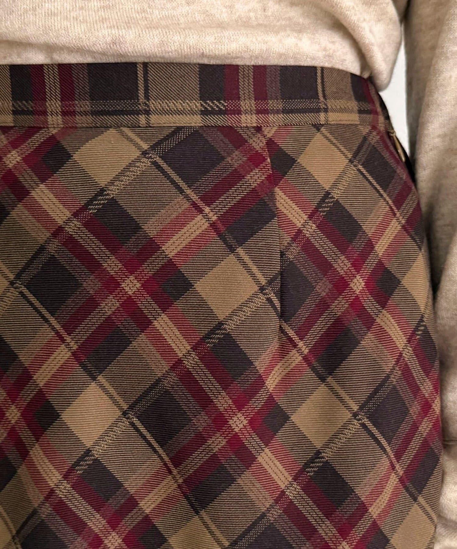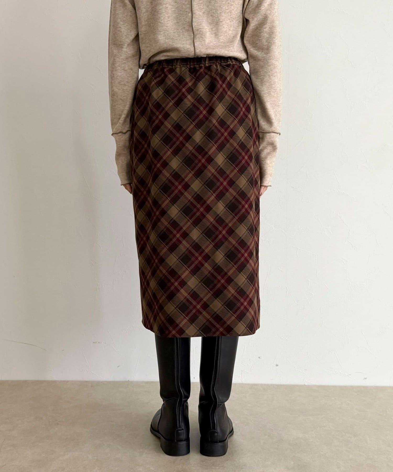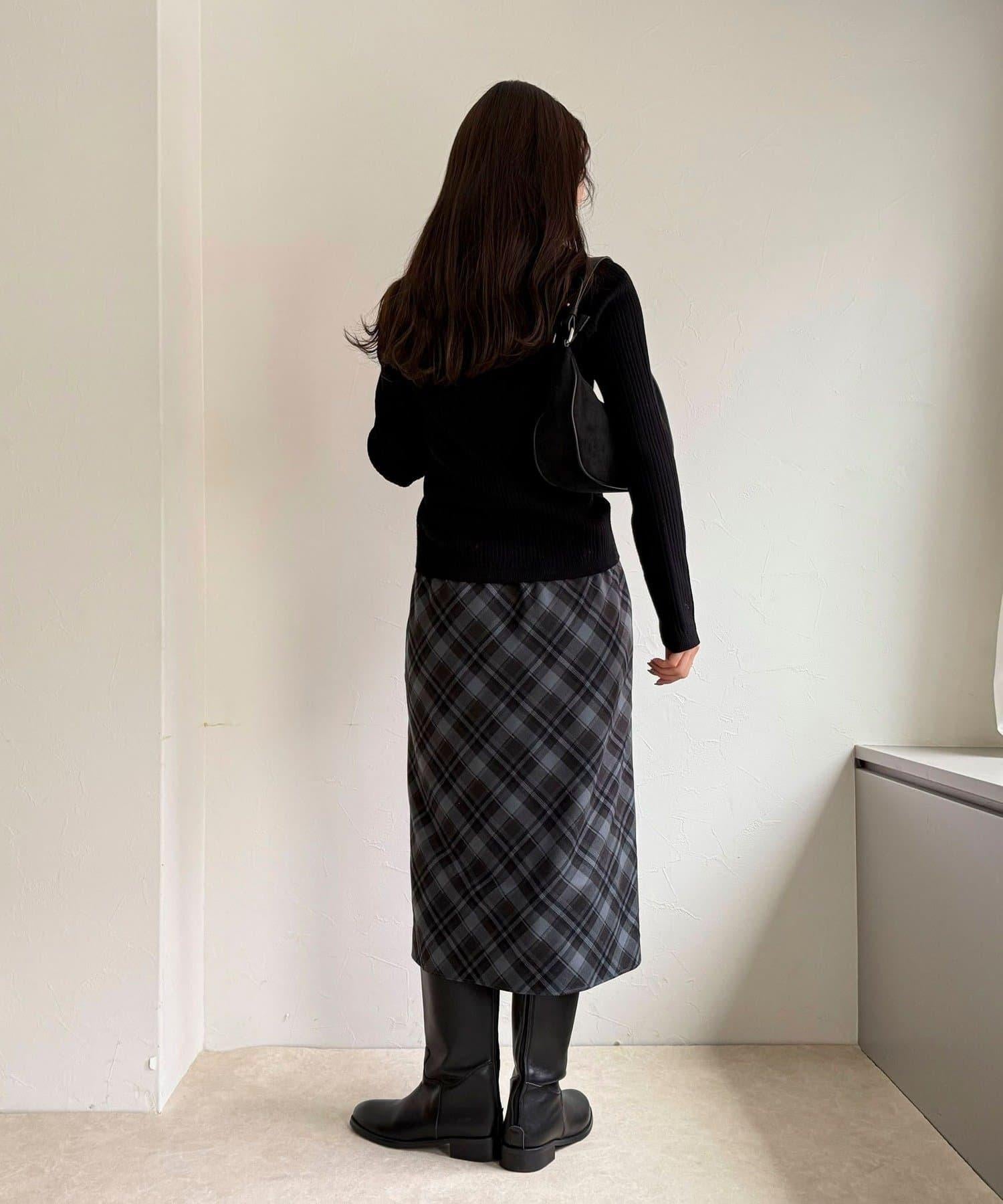 傳統格紋圖案的中長款半身裙,優雅而富有季節感。