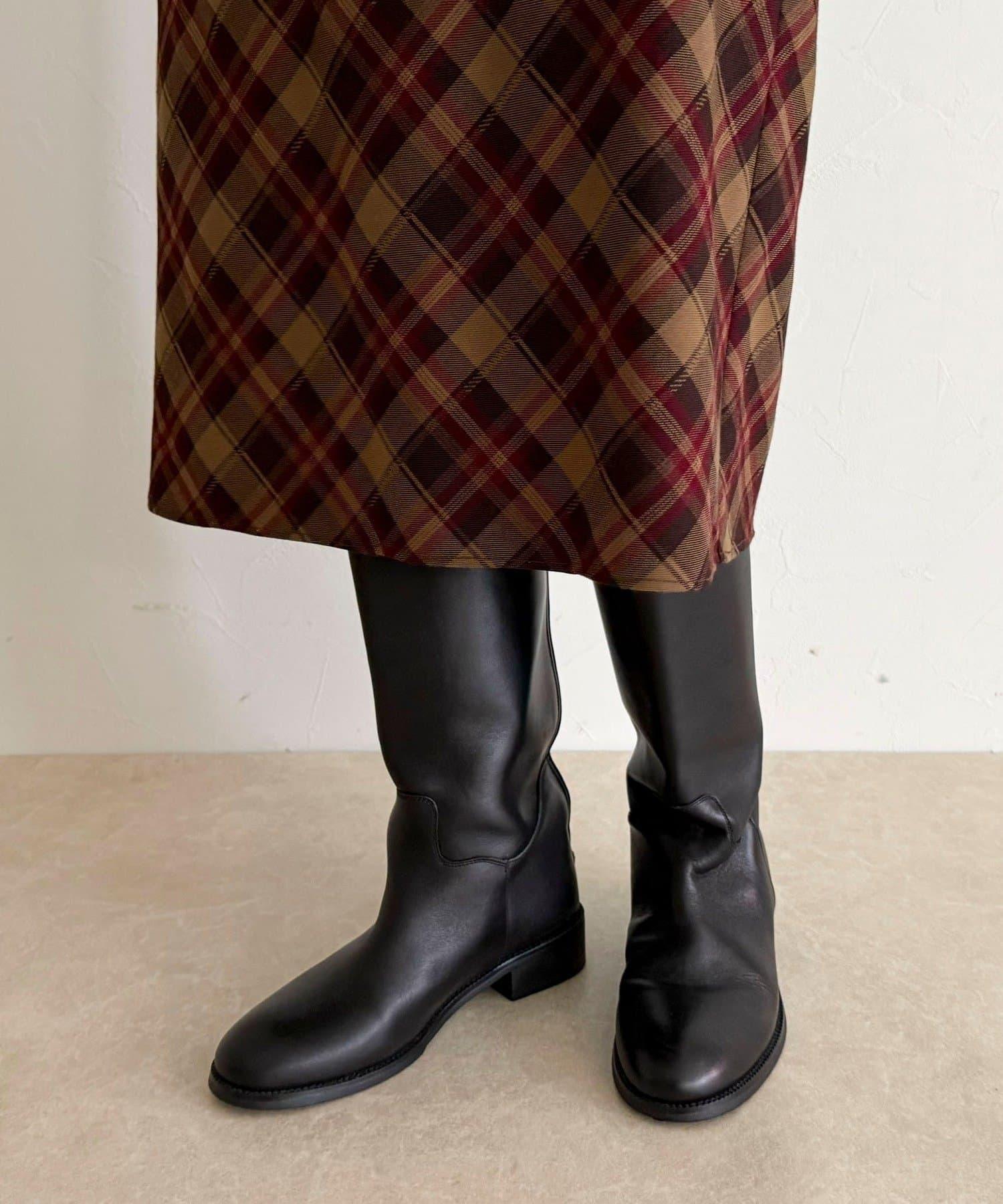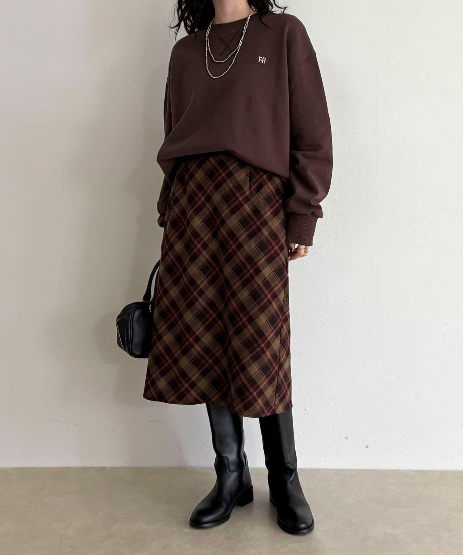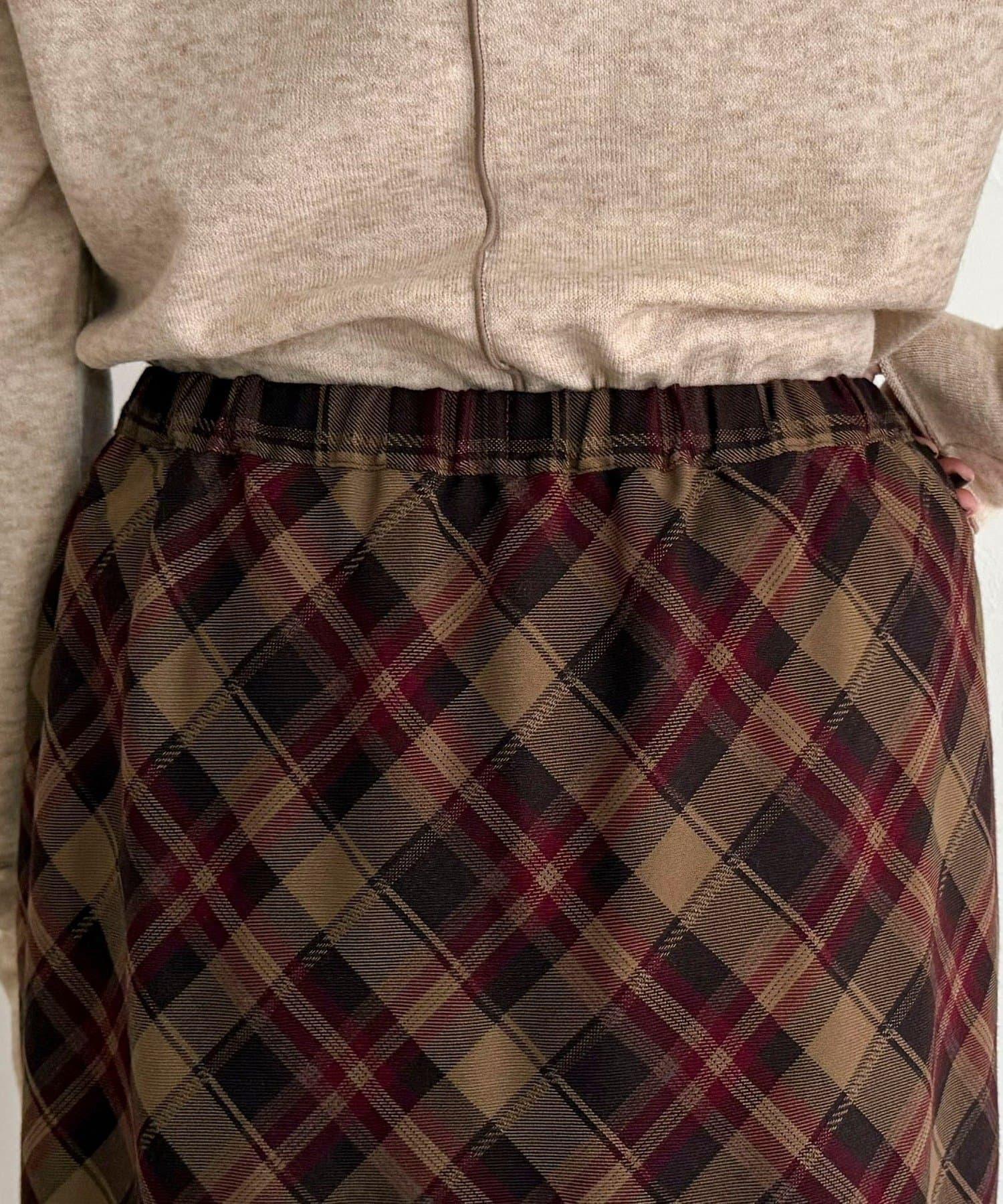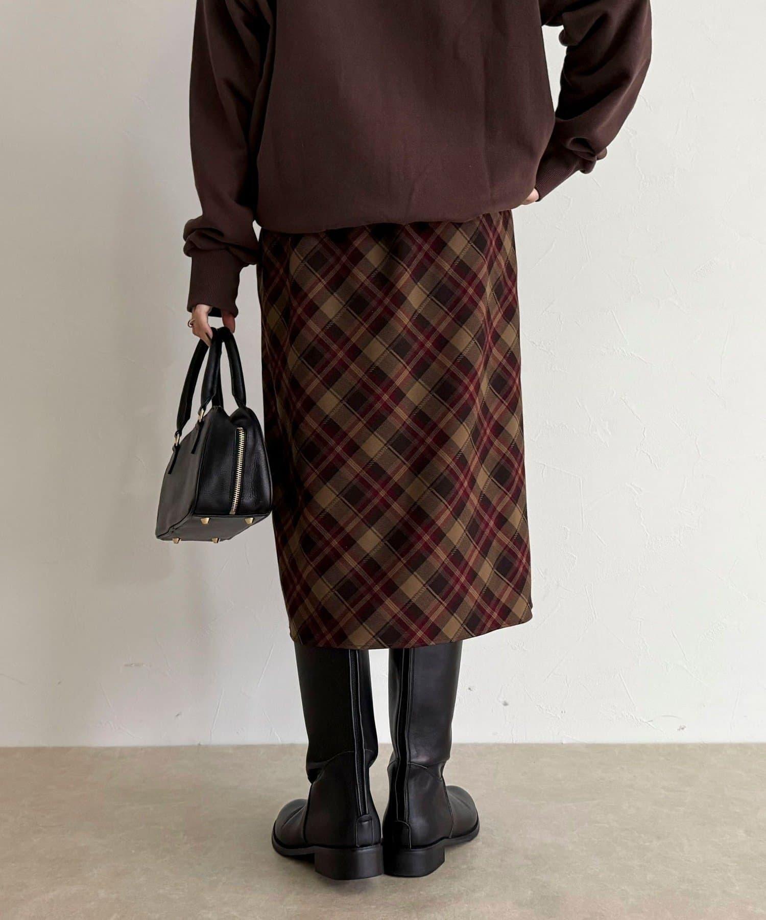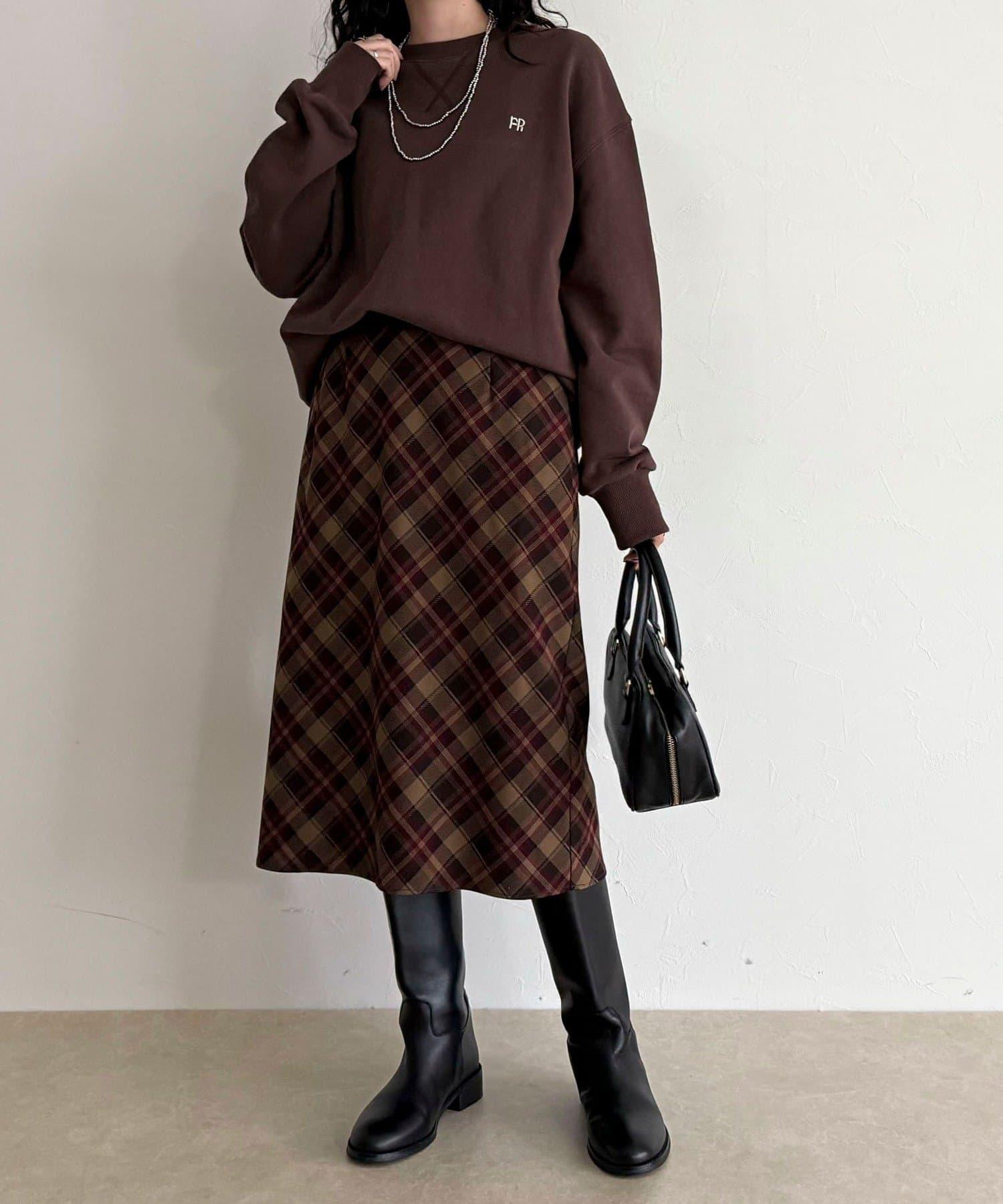 傳統格紋圖案的中長款半身裙,優雅而富有季節感。