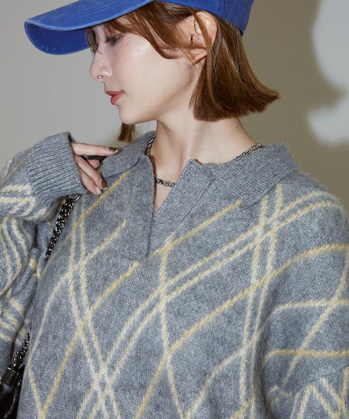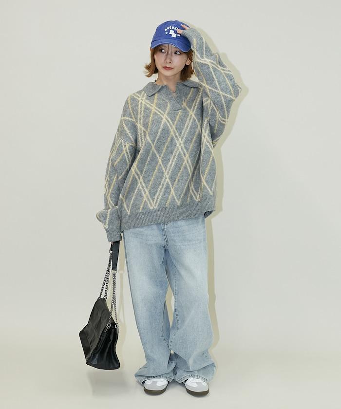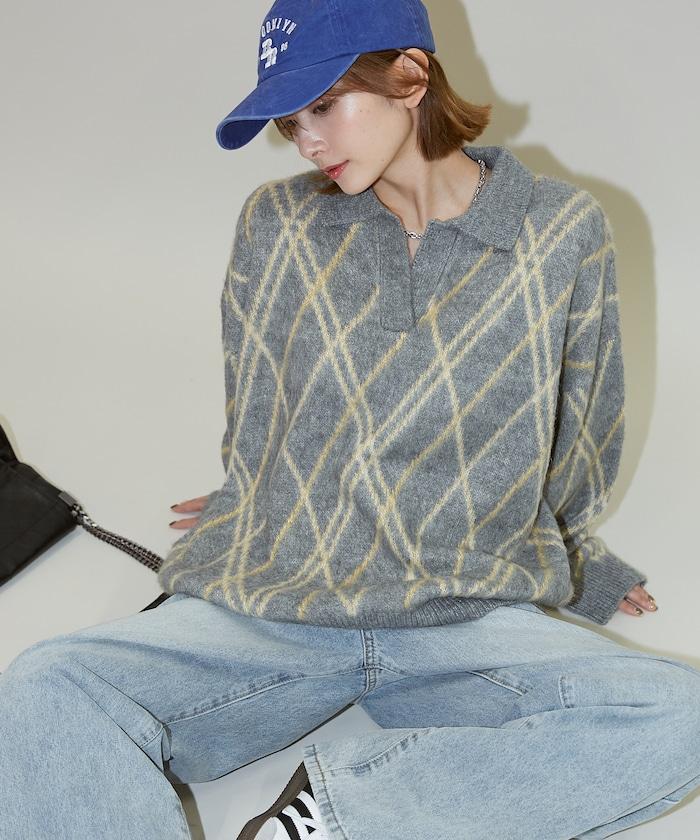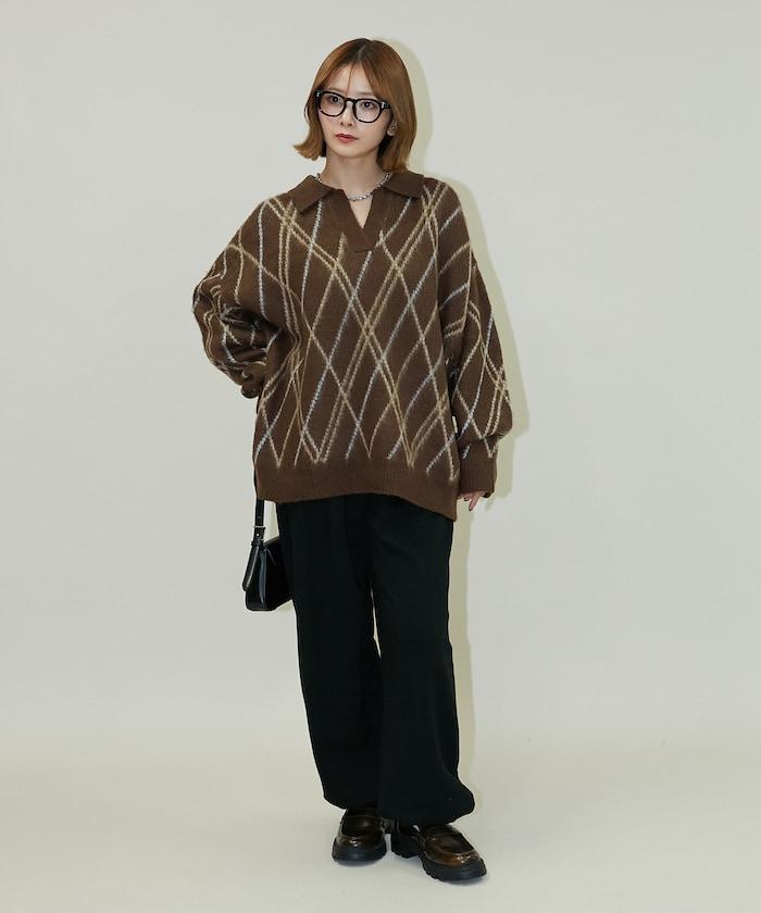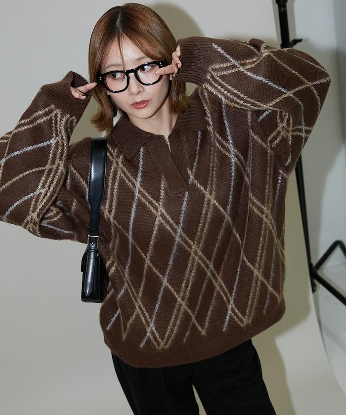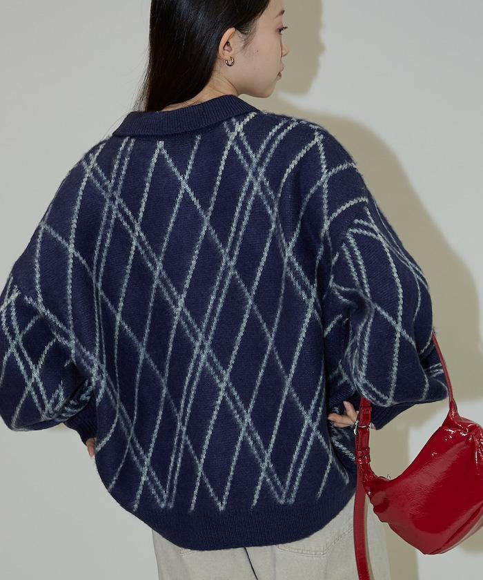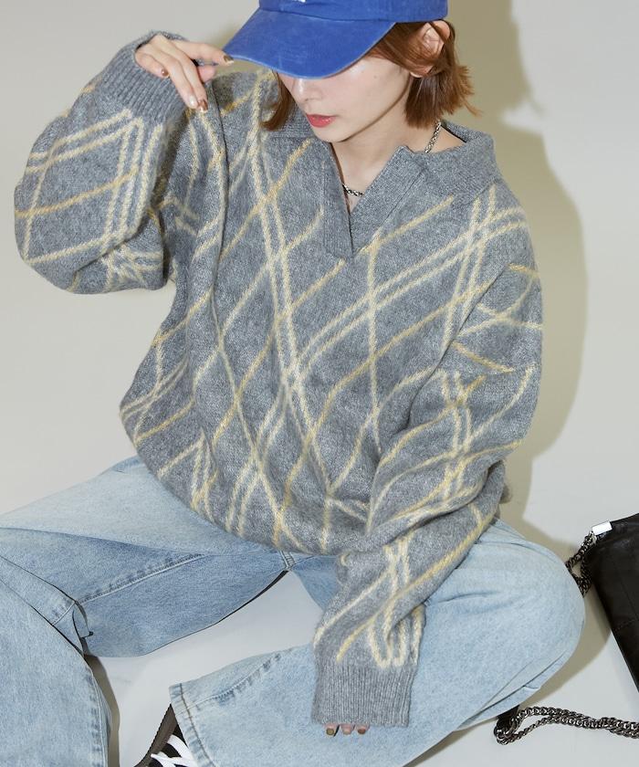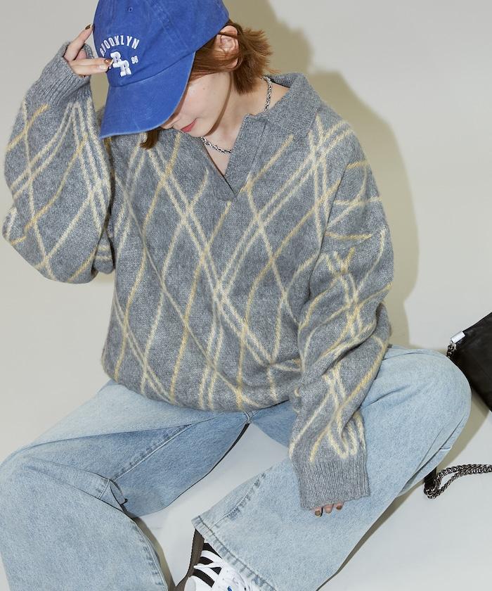 格紋船長針織衫,質地柔軟,設計寬鬆。