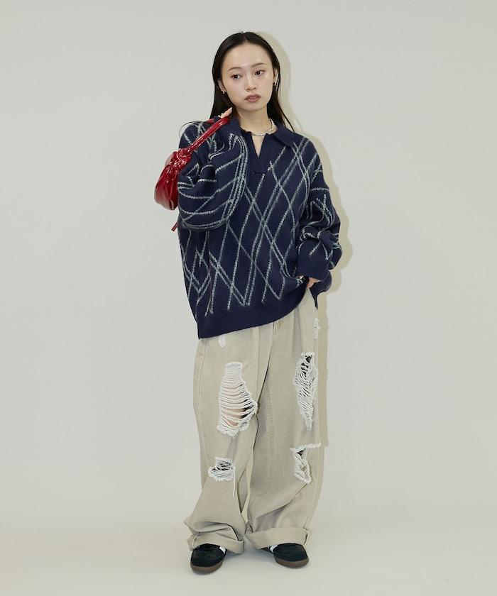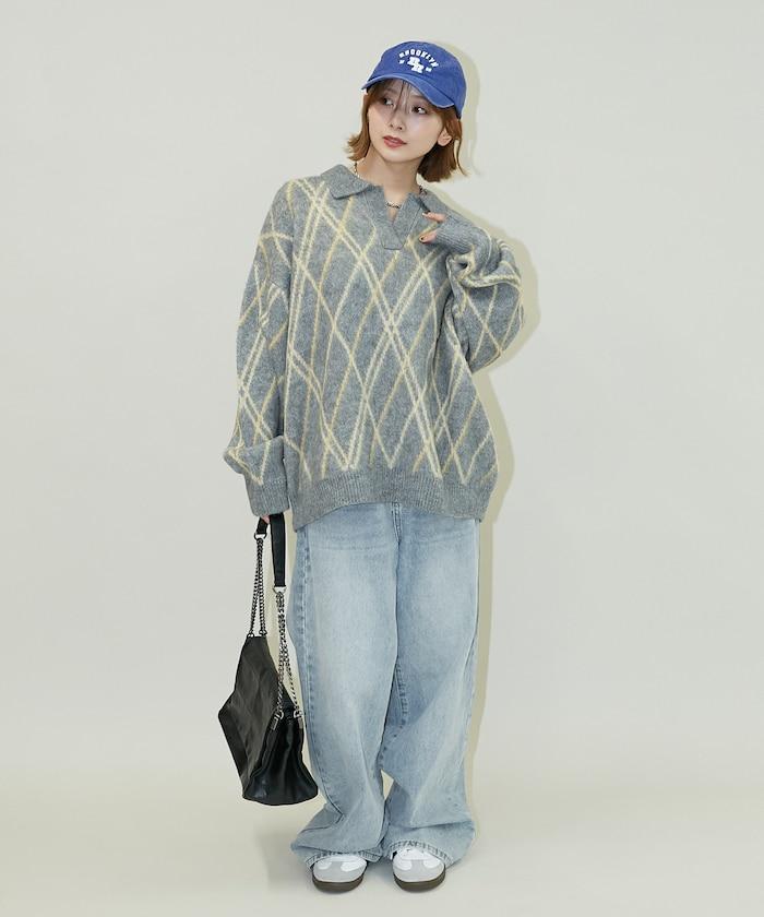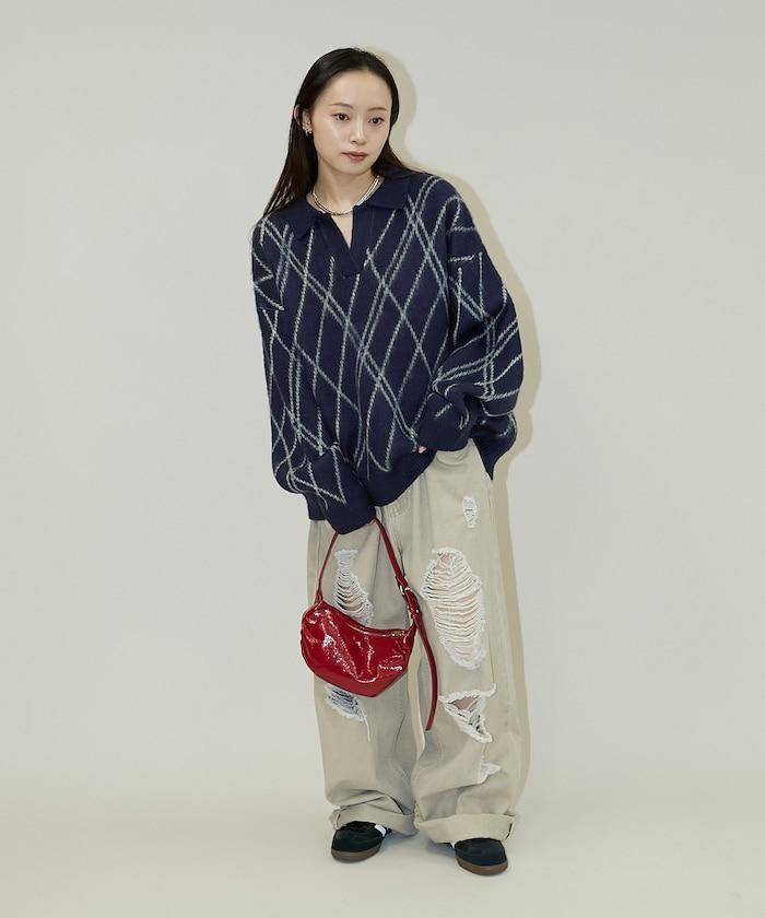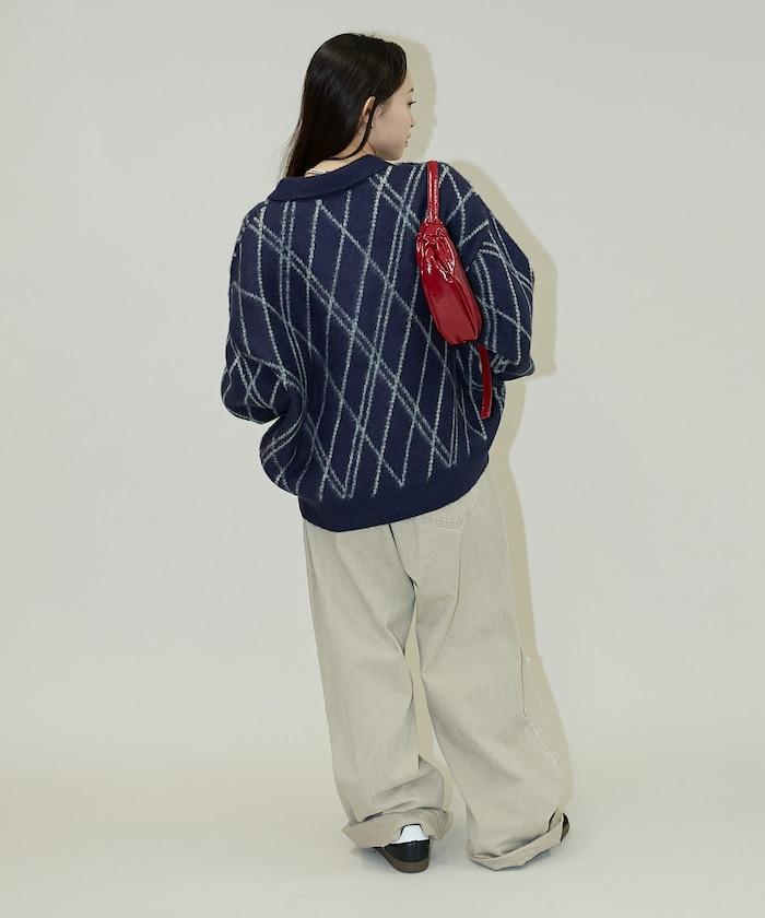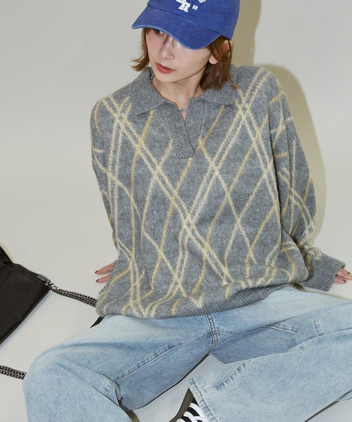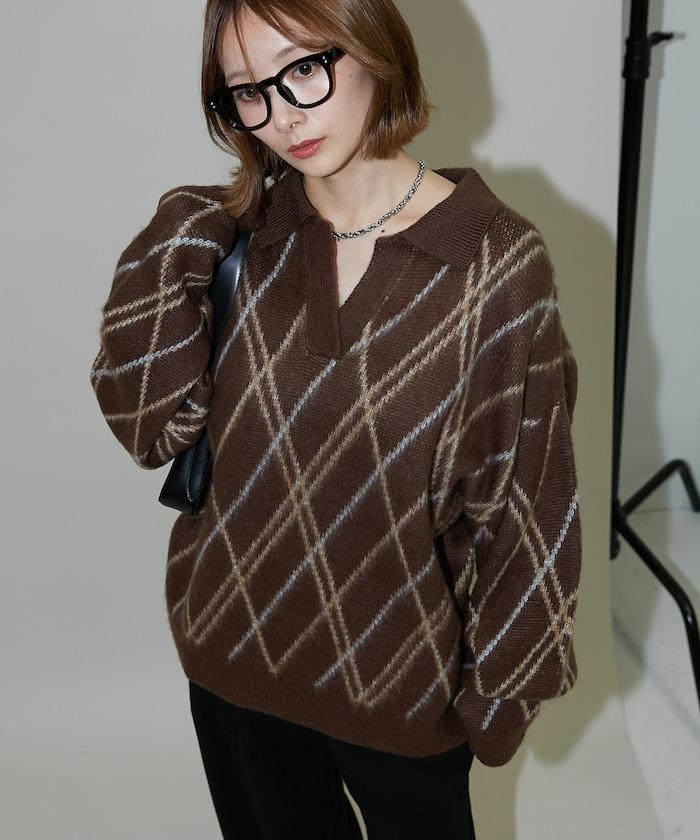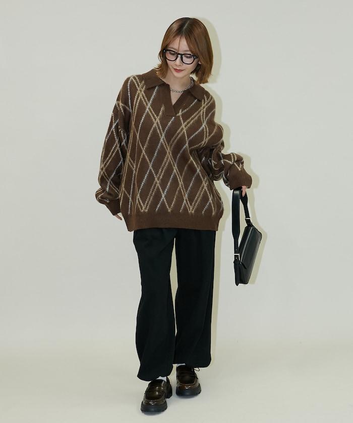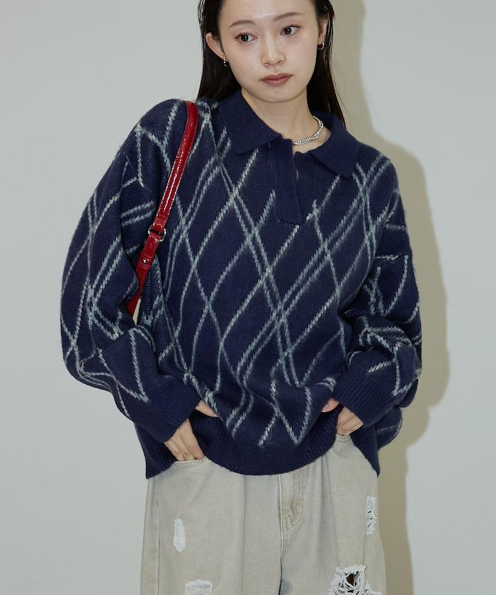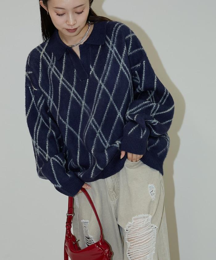格紋船長針織衫,質地柔軟,設計寬鬆。