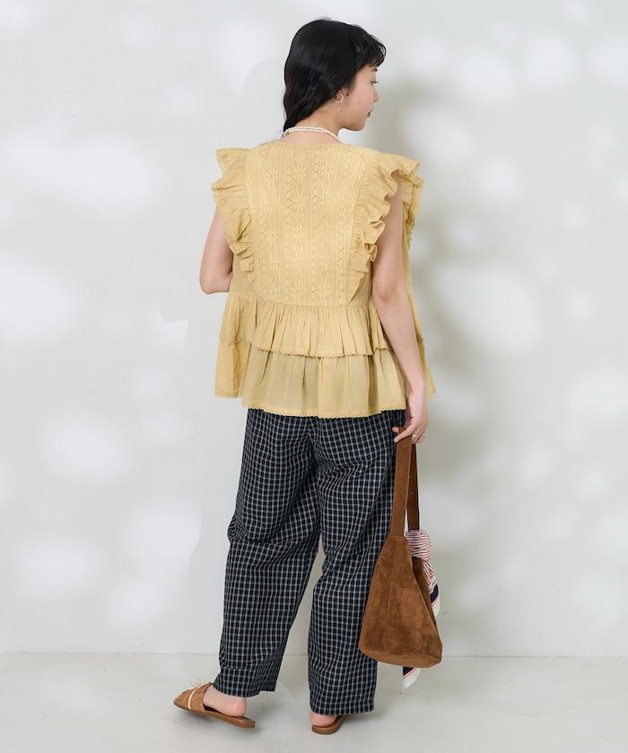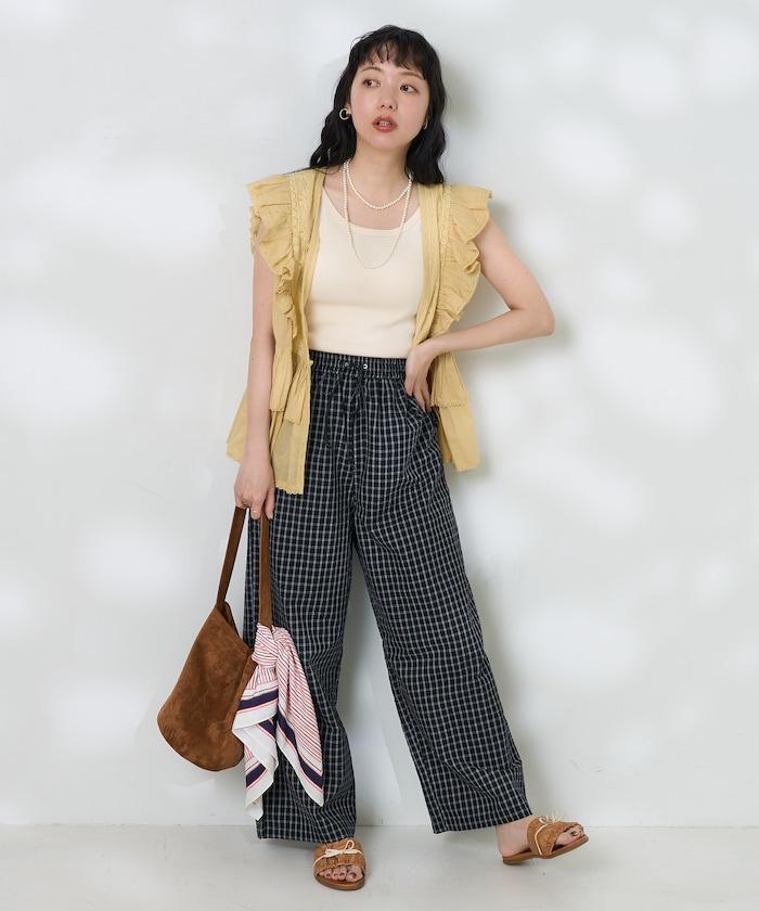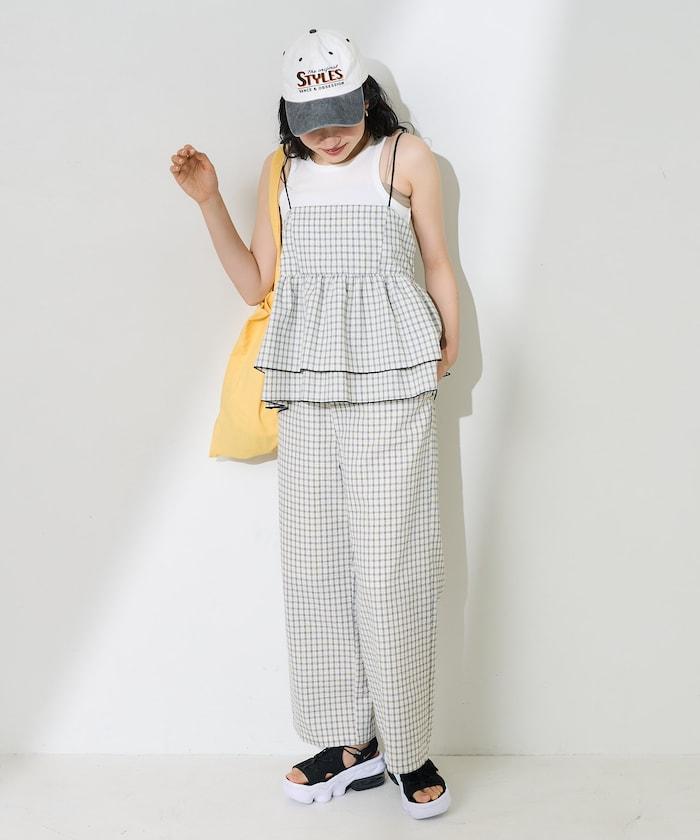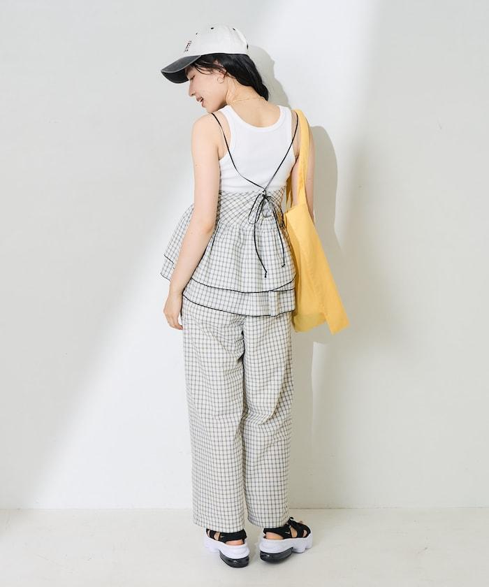 搭配同材質的半身裙(格紋吊帶半身裙/1106248900651)也很可愛。