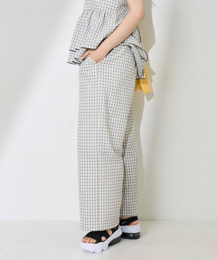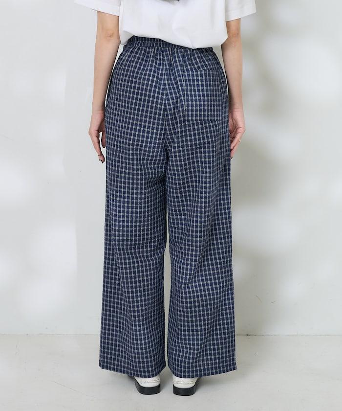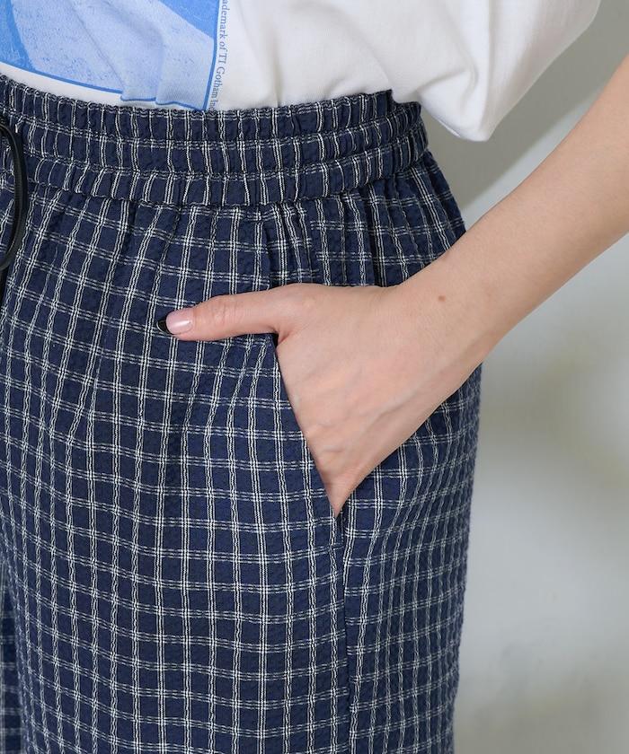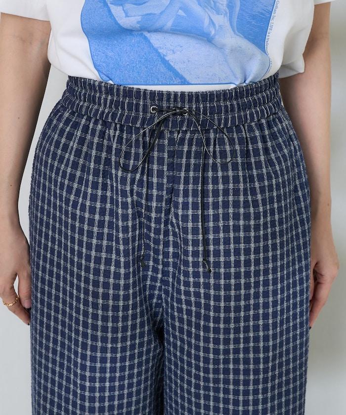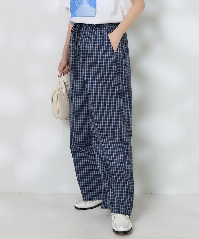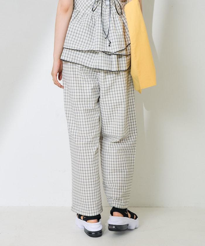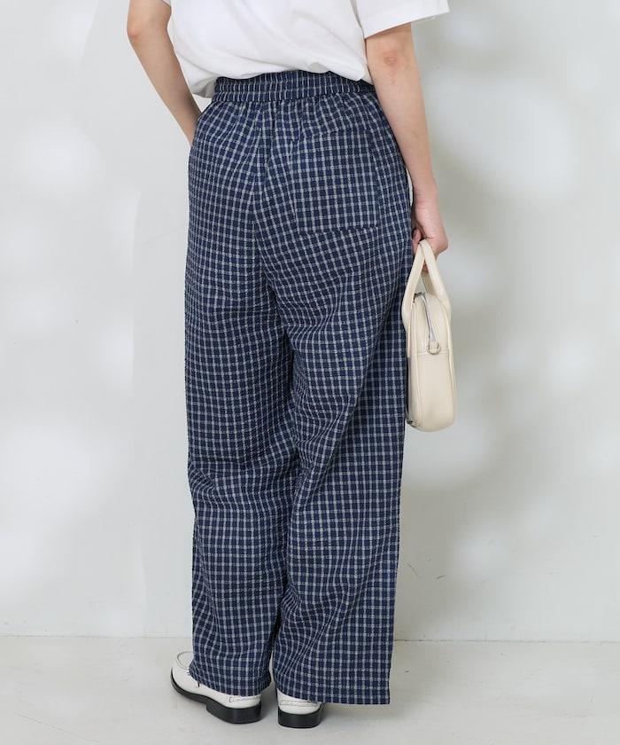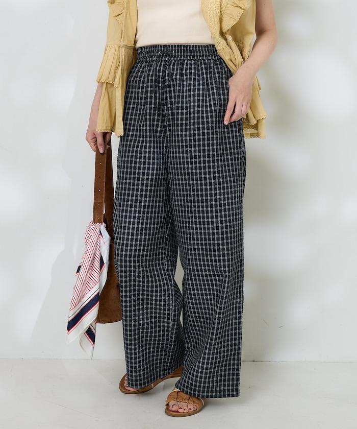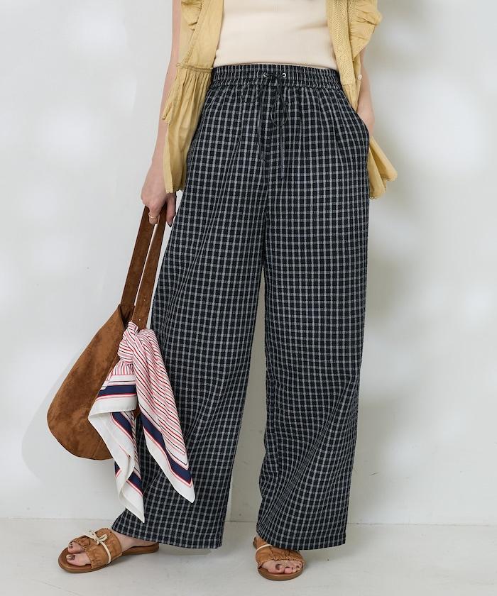 格紋長褲採用涼爽舒適的凹凸紋理面料製成。