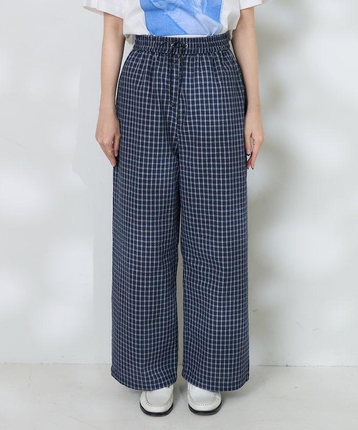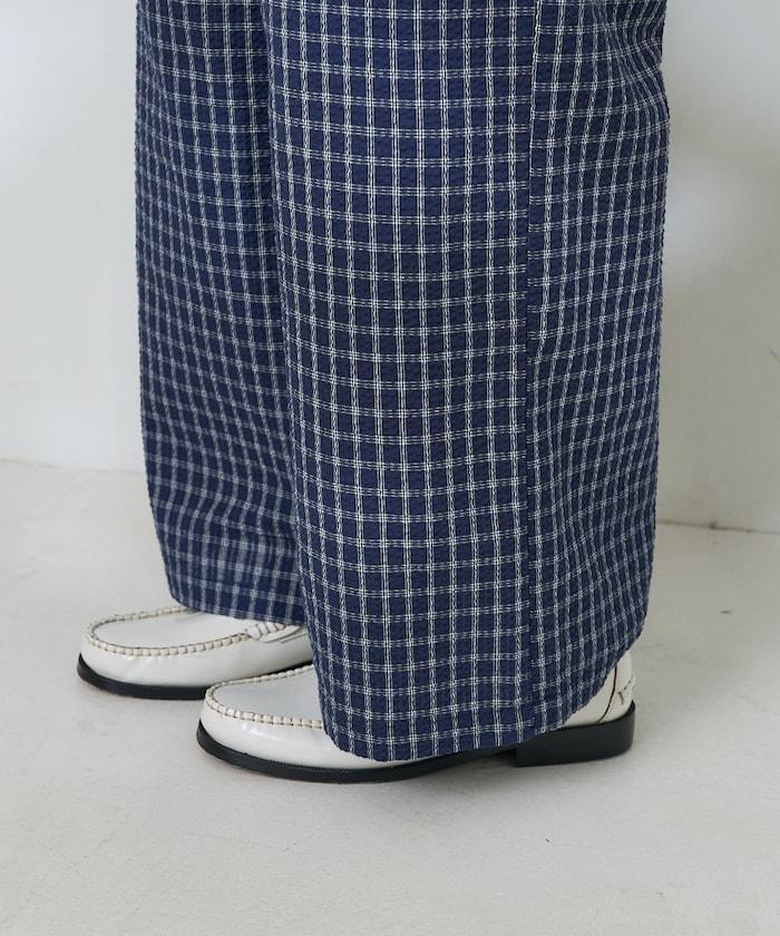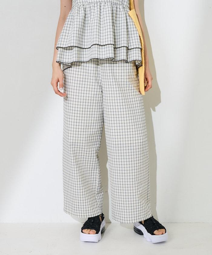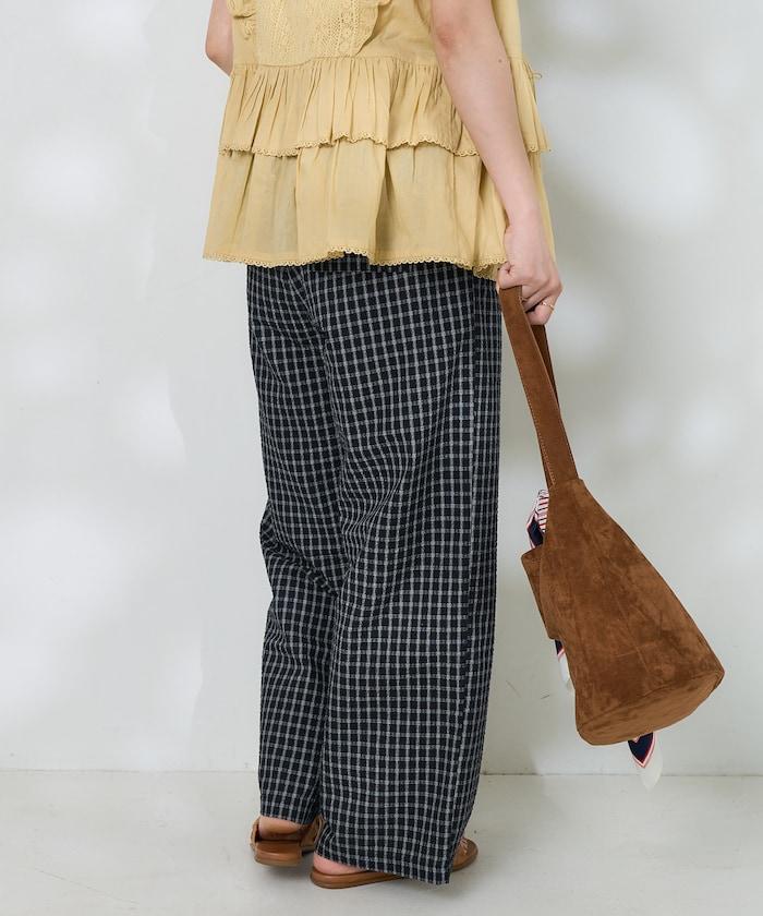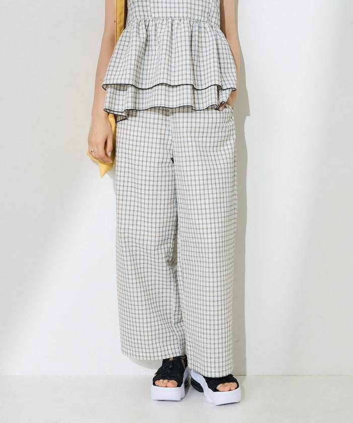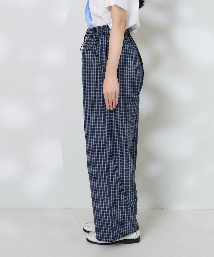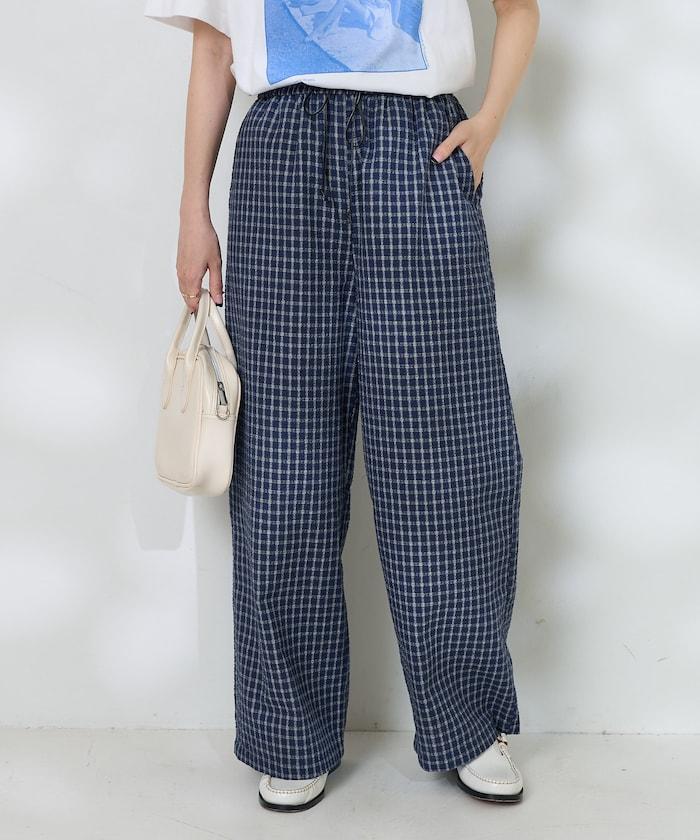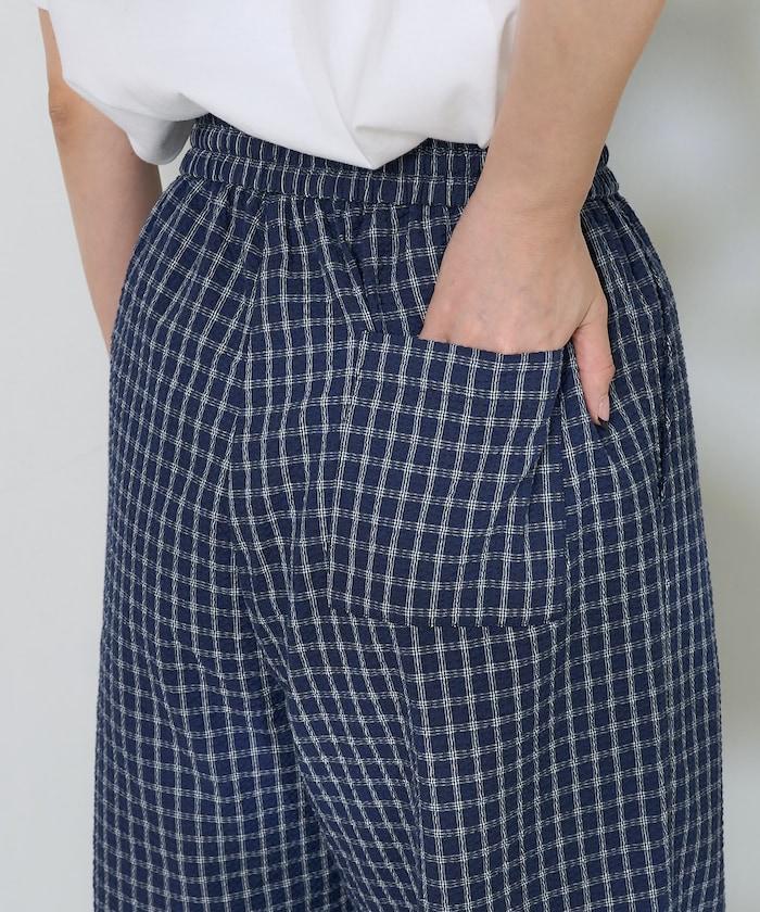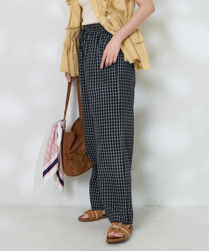 格紋長褲採用涼爽舒適的凹凸紋理面料製成。
