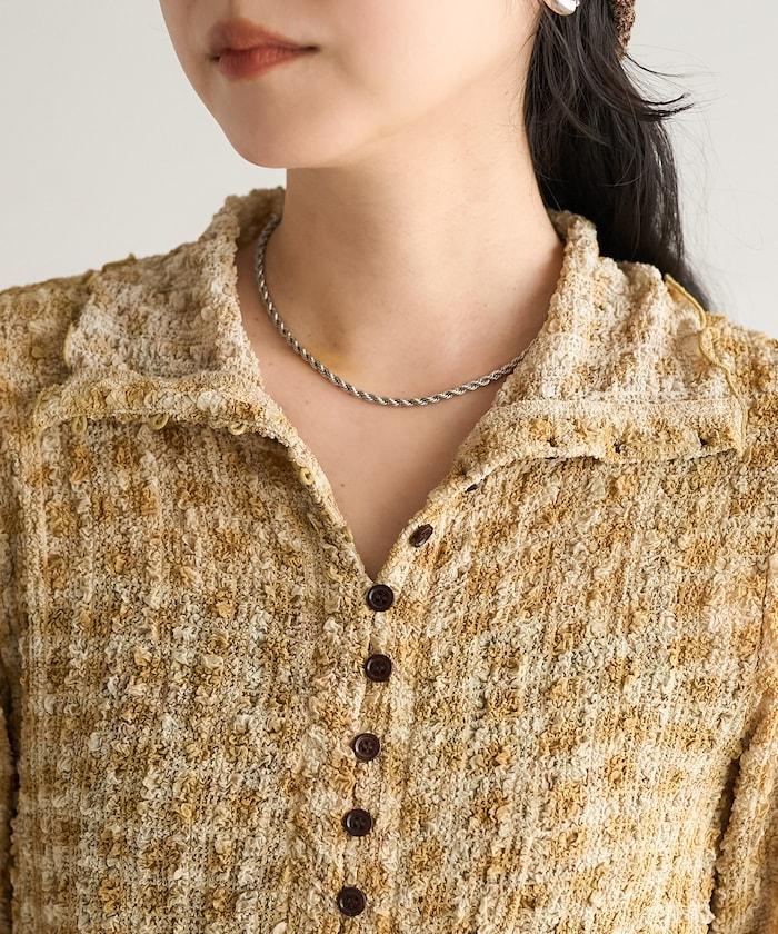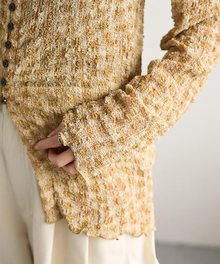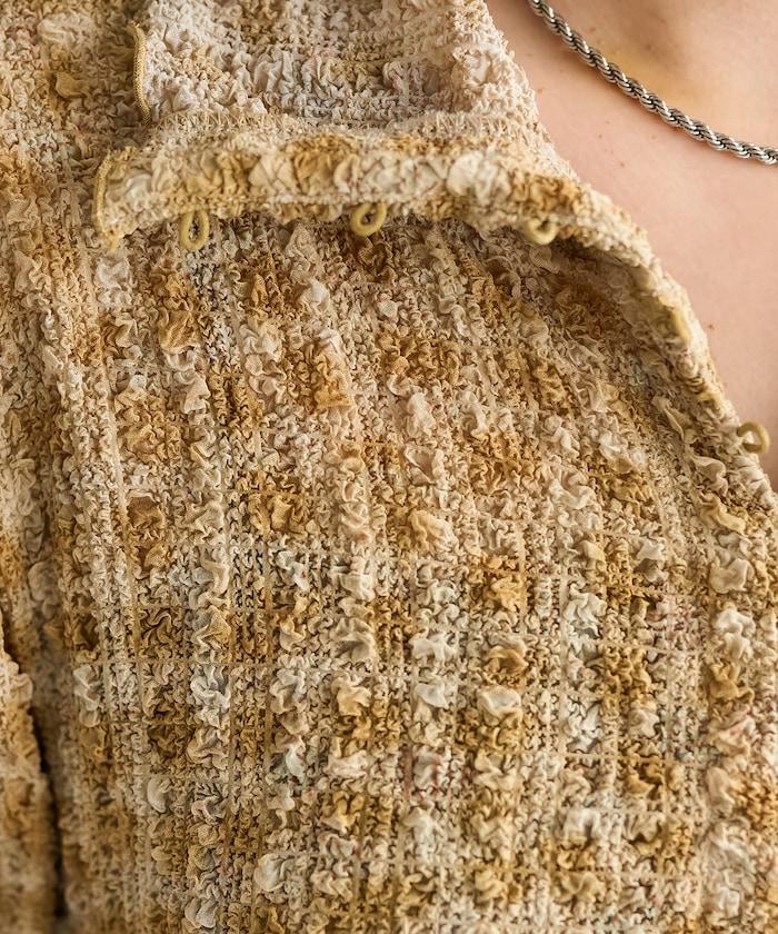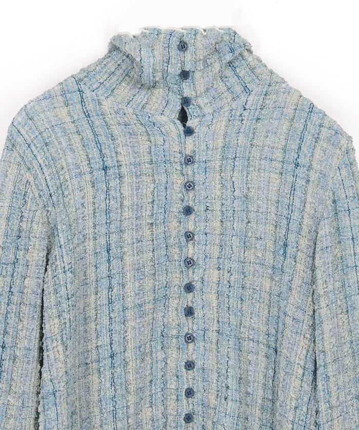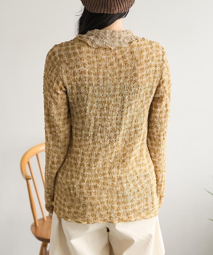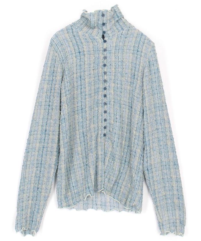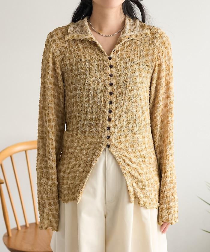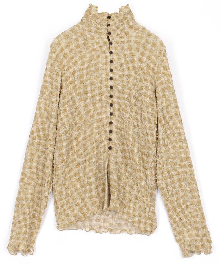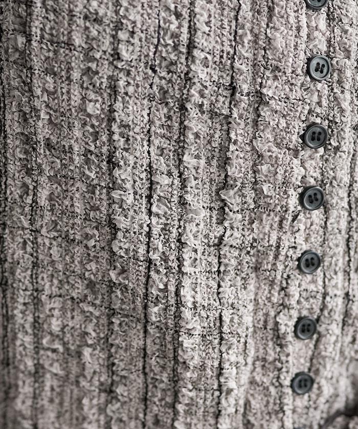 這款富有表現力的格紋上衣由凹凸不平的 "pokopoko "面料製成,引人注目。