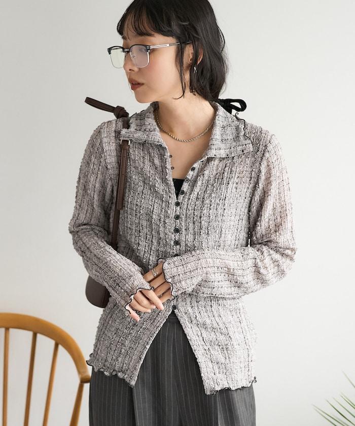 輕盈的透視感和立體感的面料為您的著裝增添了細微的變化,同時又適度地抑制了甜美感。