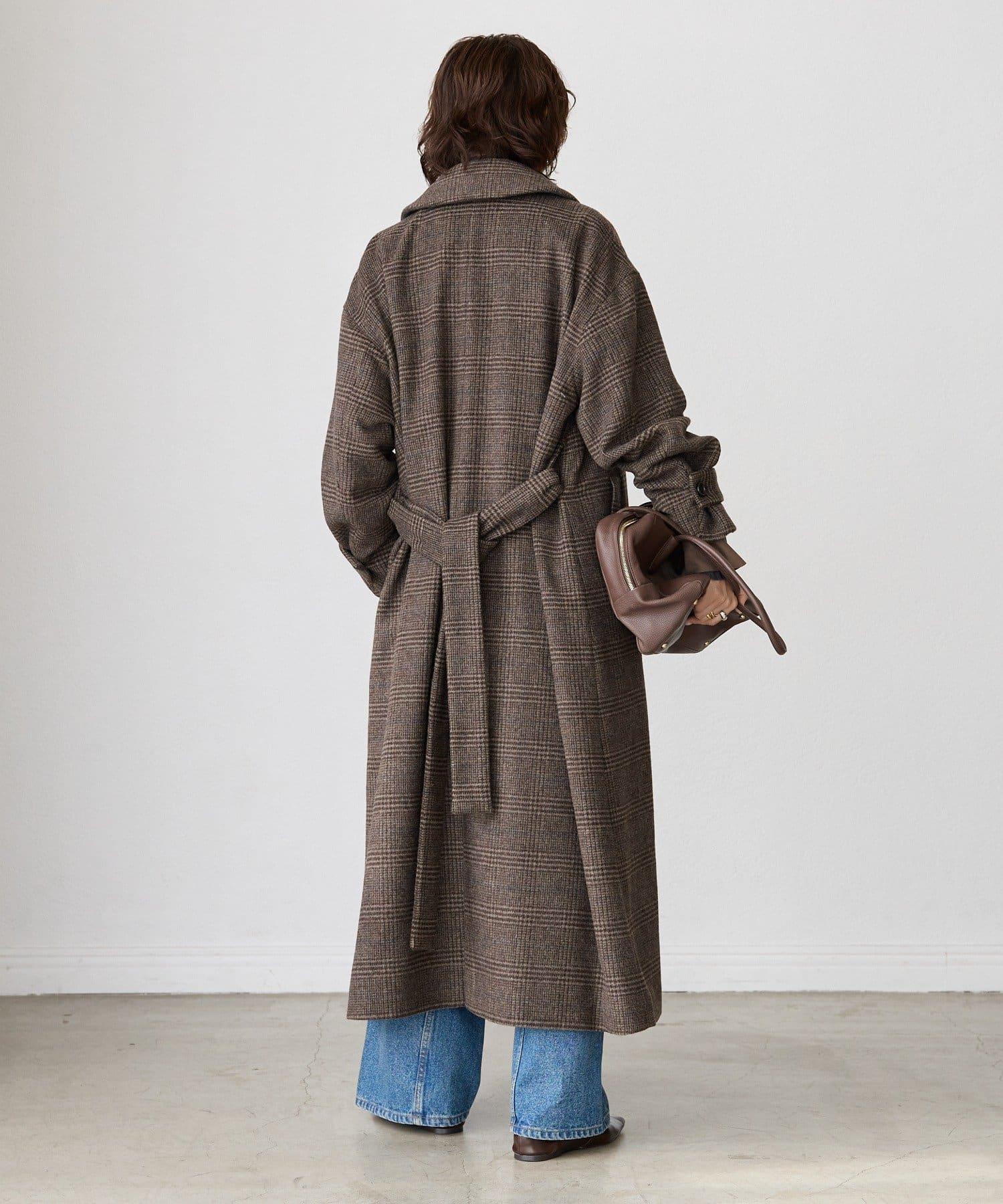 格紋單排扣大衣/預計10月下旬發貨