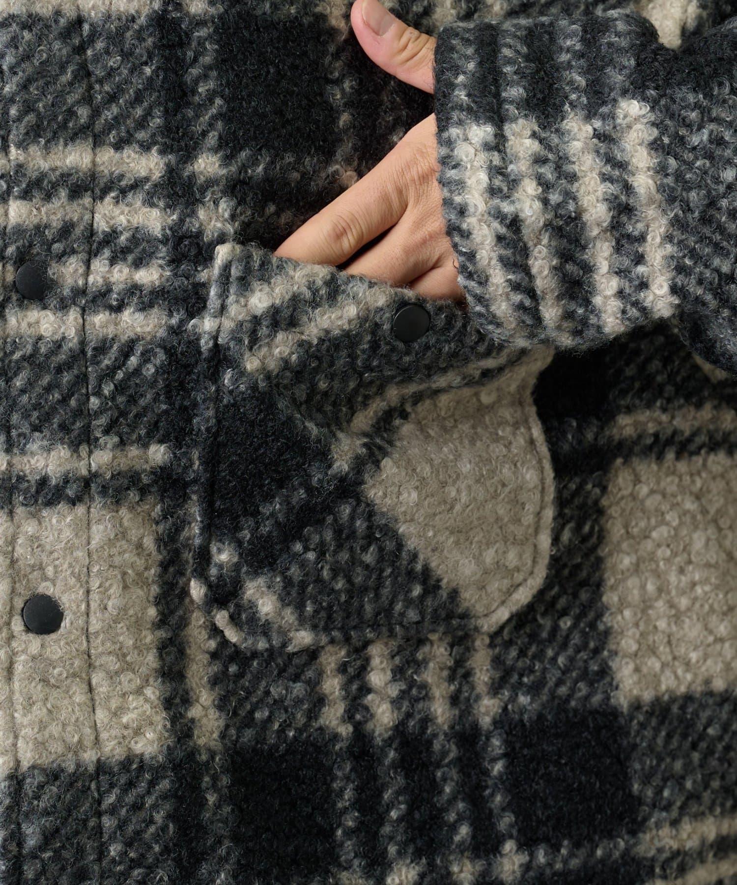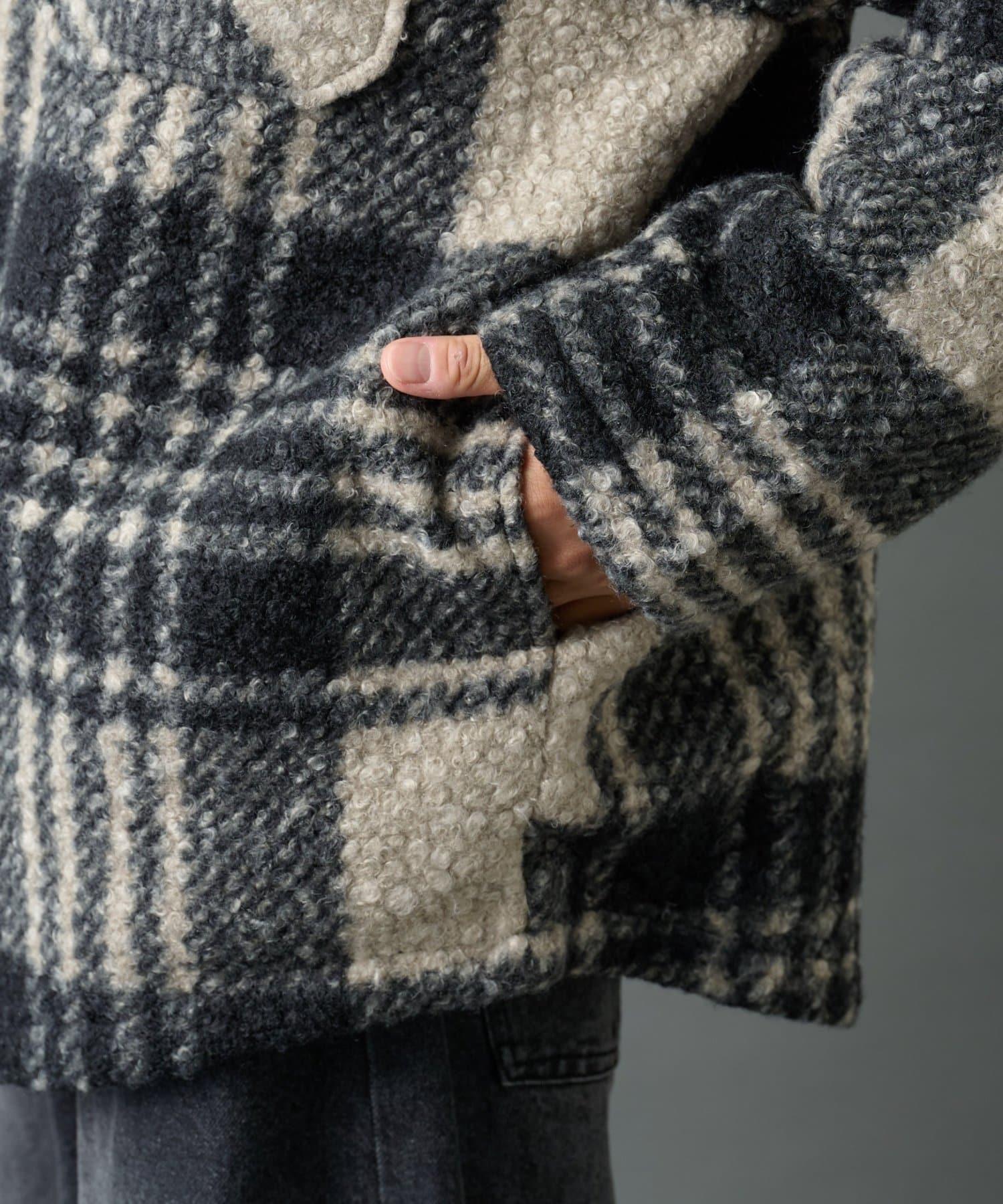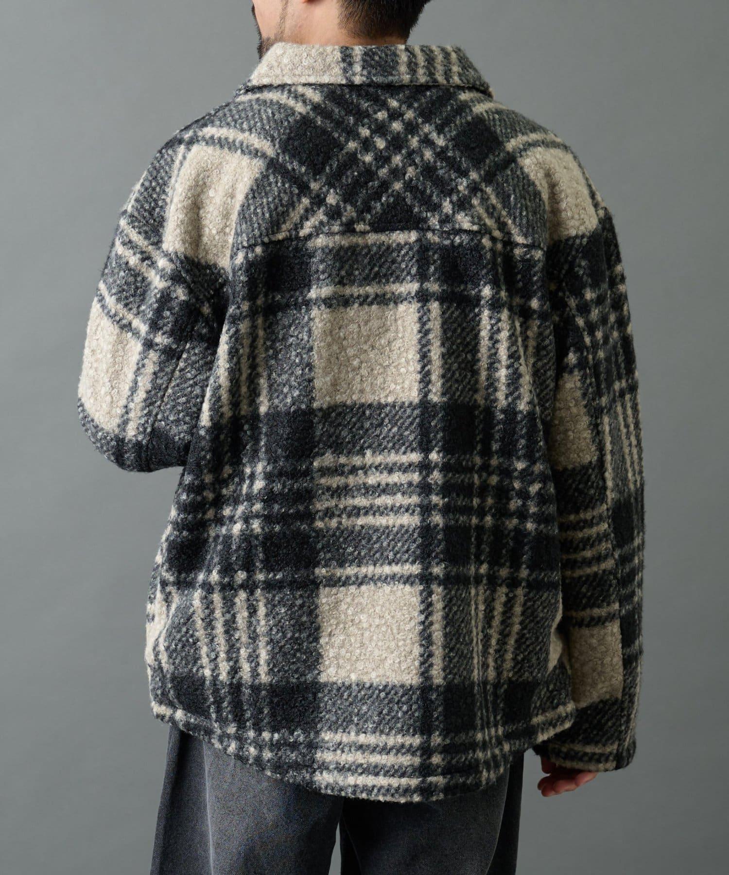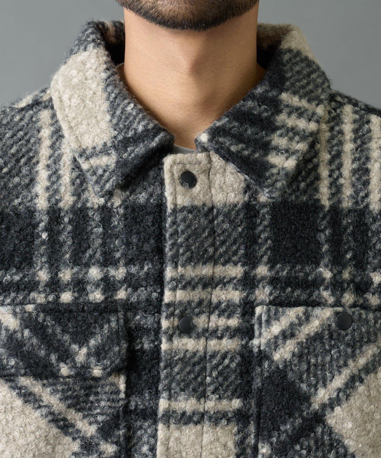 這款布克萊格紋夾克採用成熟的格紋圖案和按扣設計。