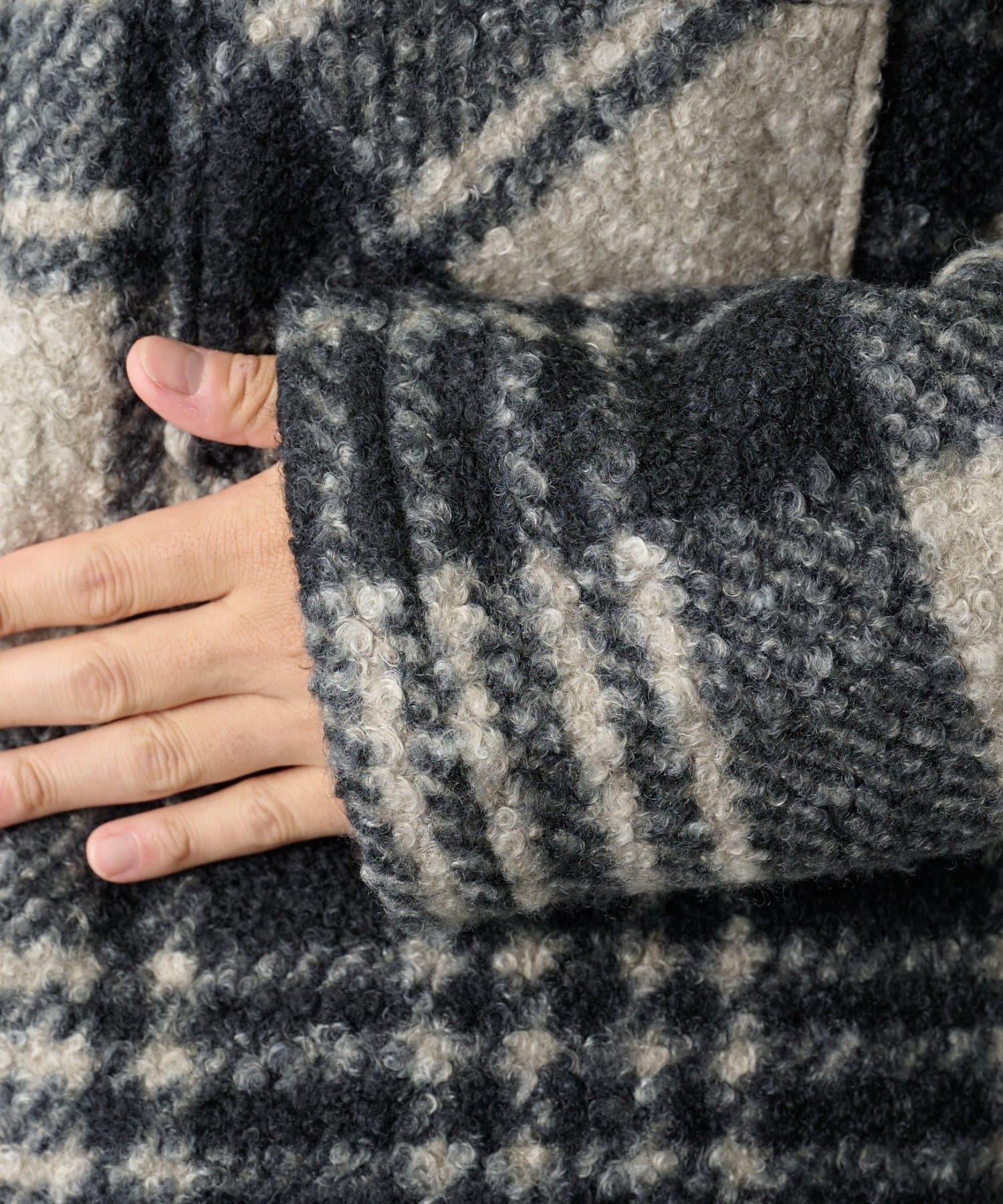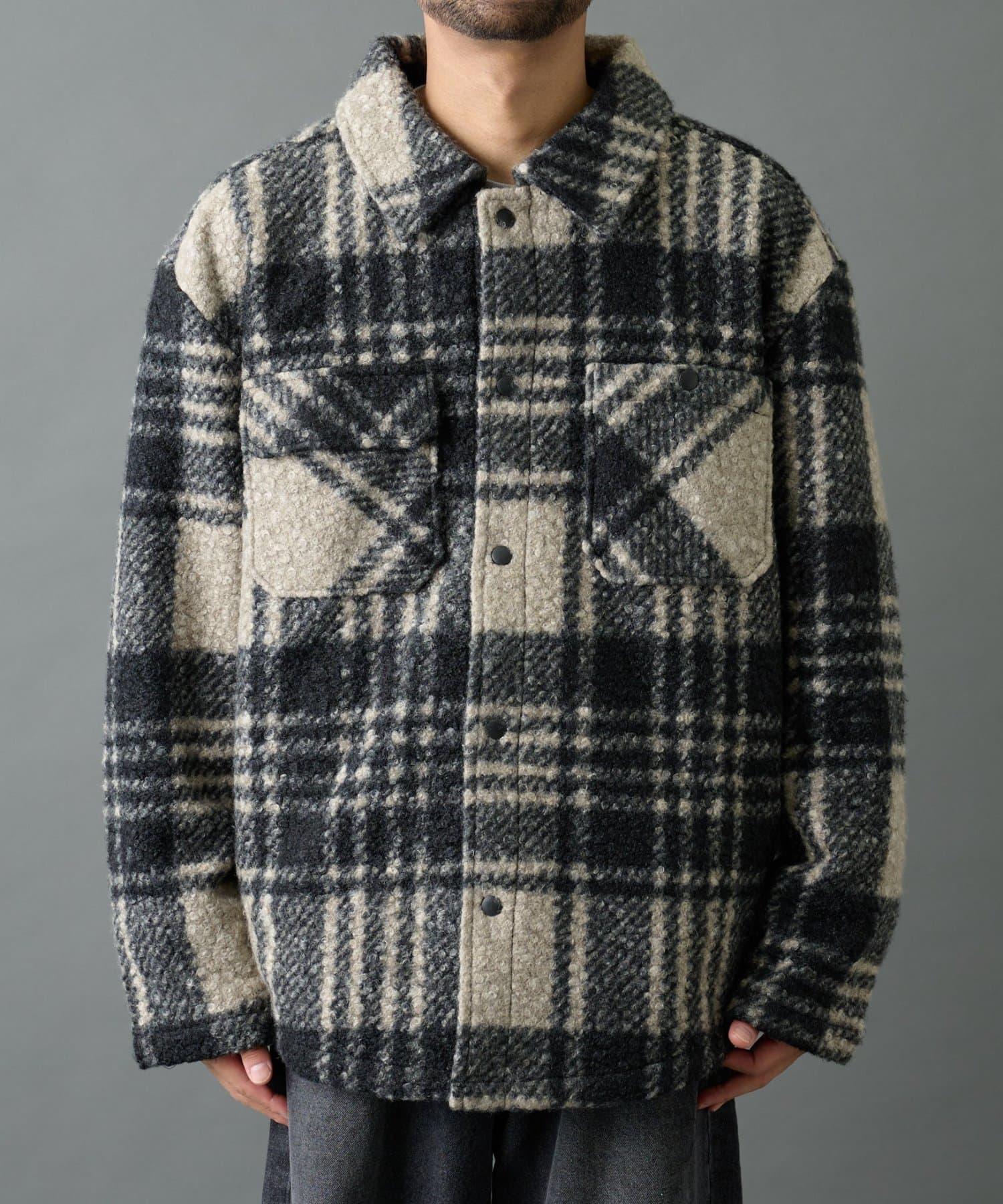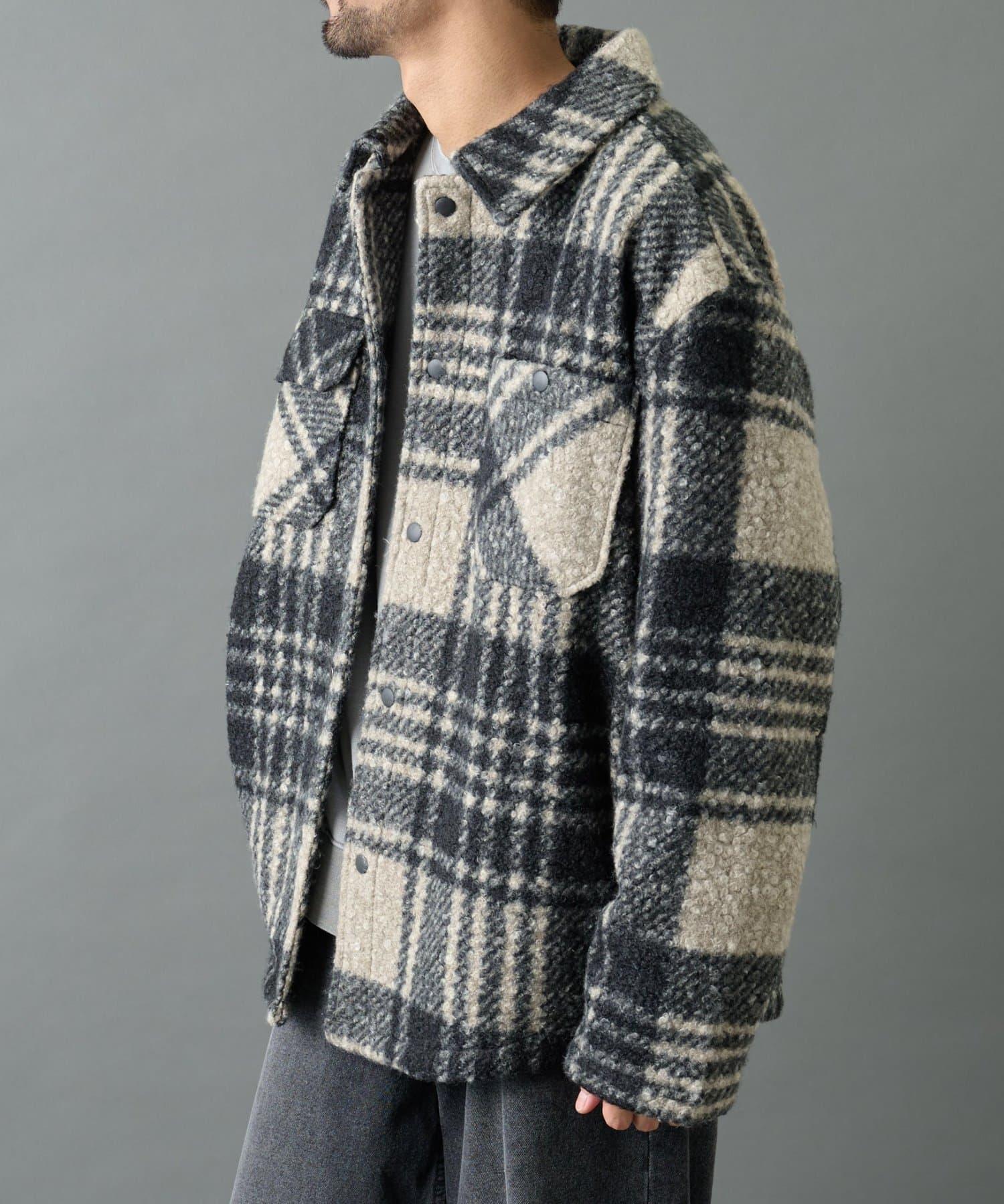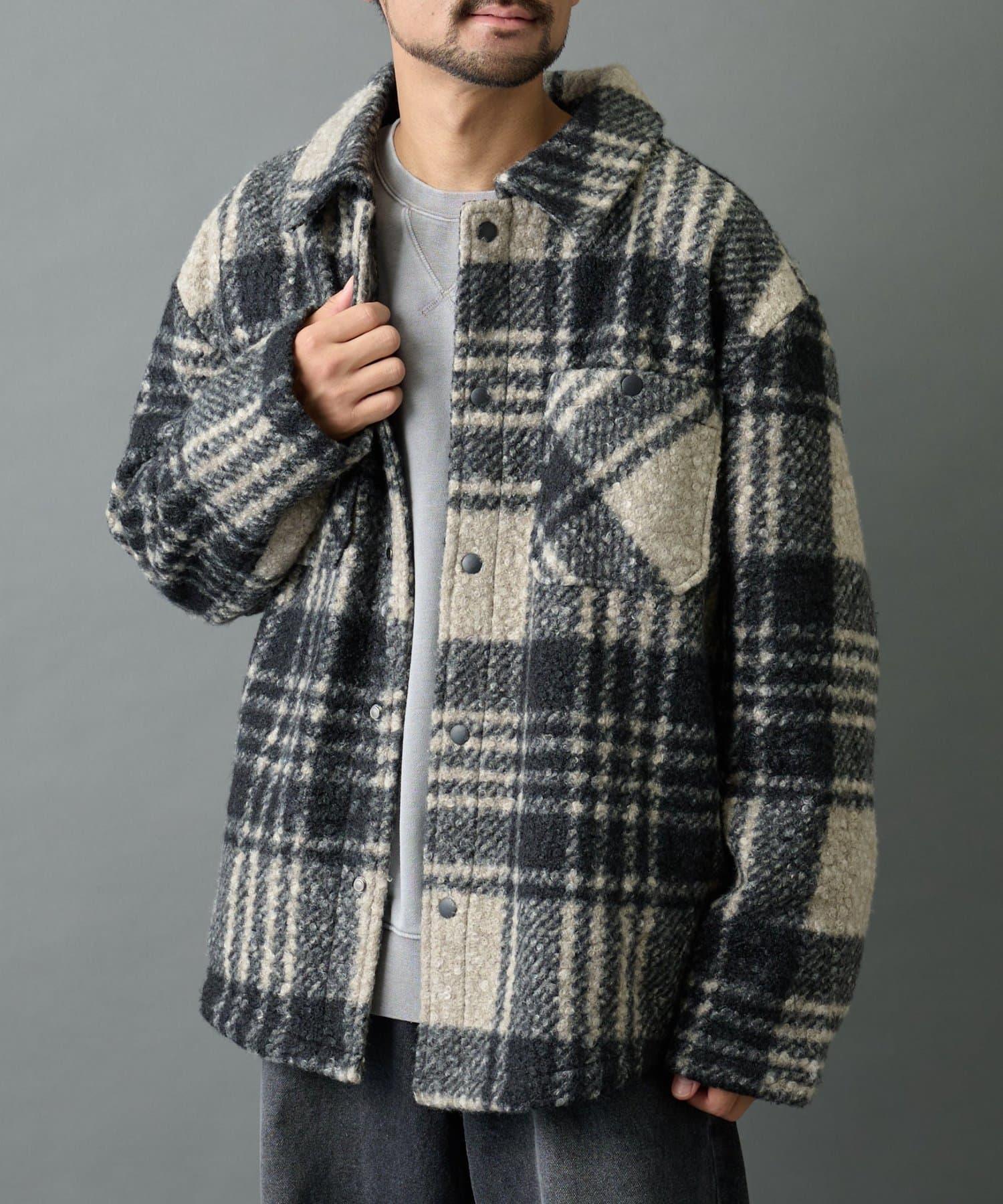 這款布克萊格紋夾克採用成熟的格紋圖案和按扣設計。