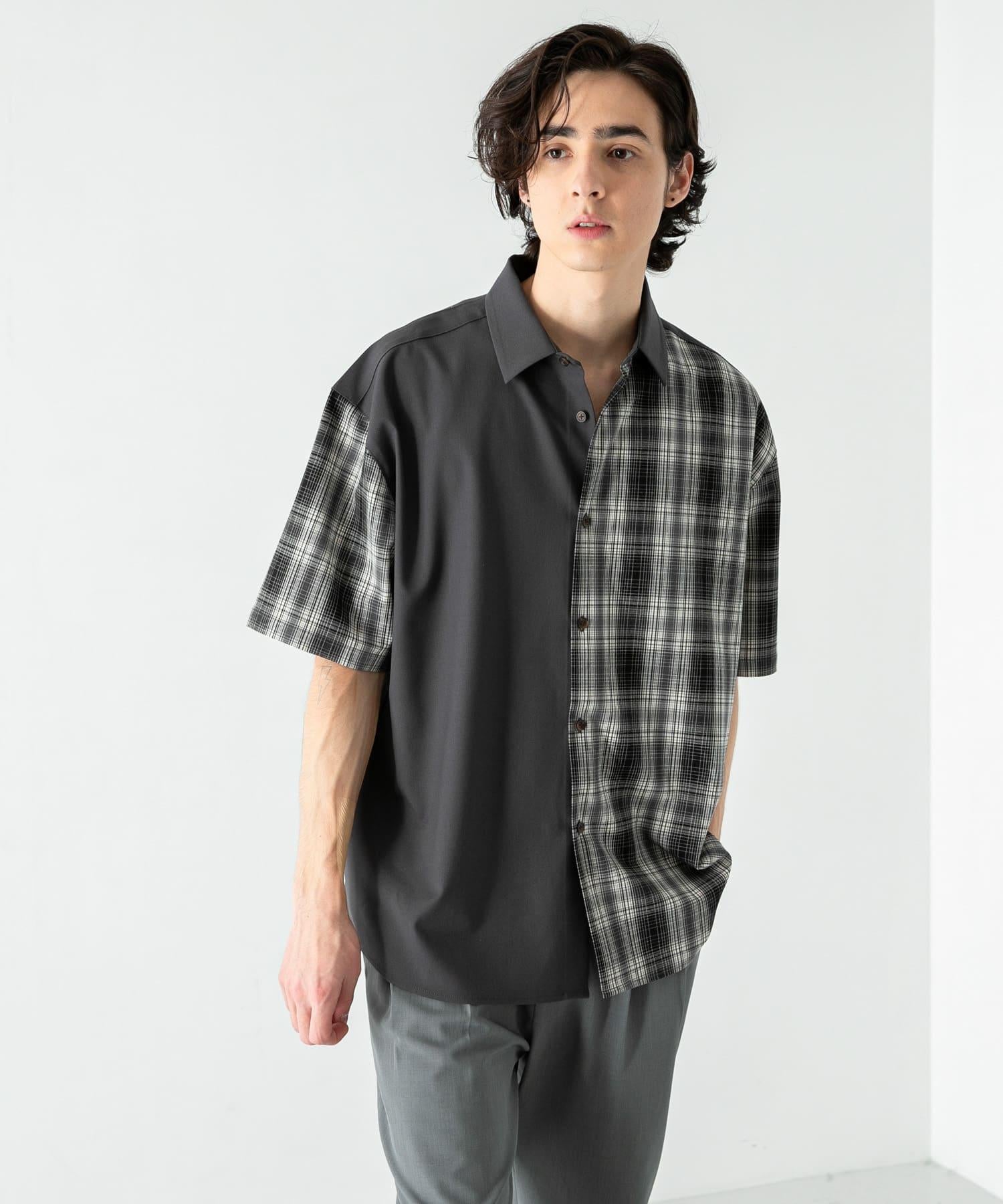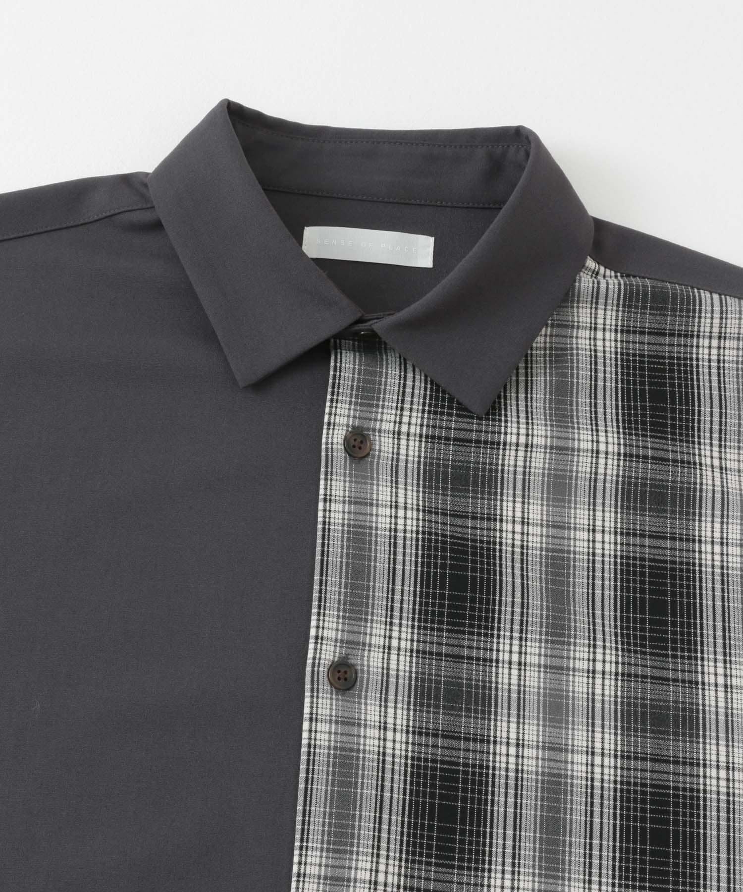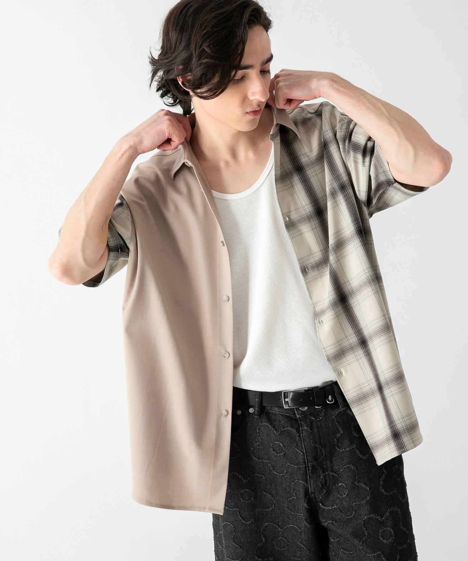 格紋寬鬆襯衫(五分袖)