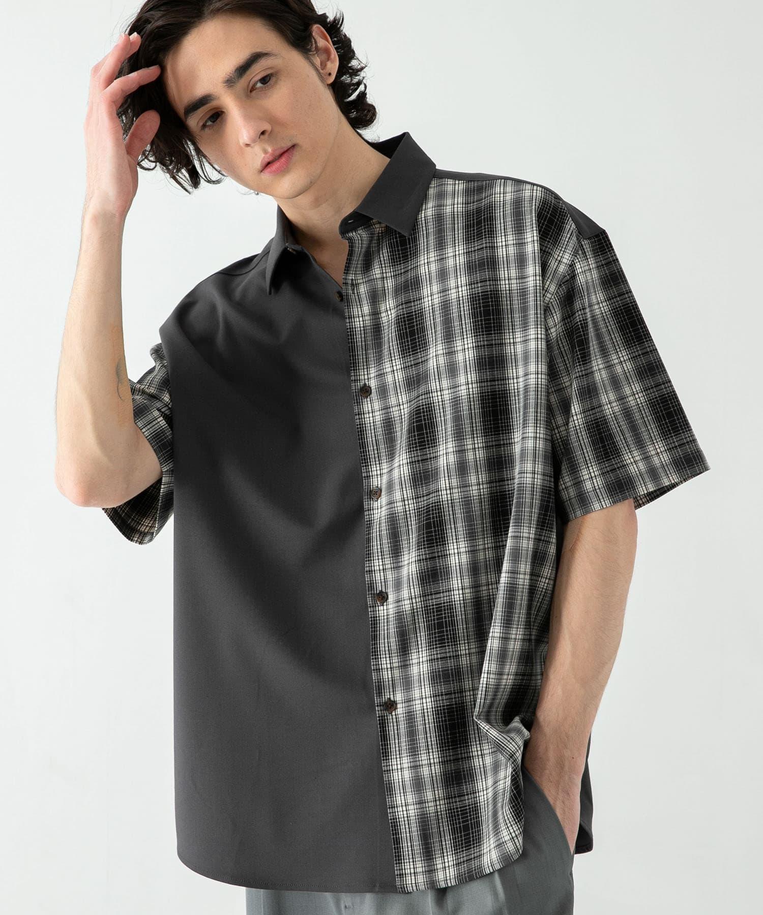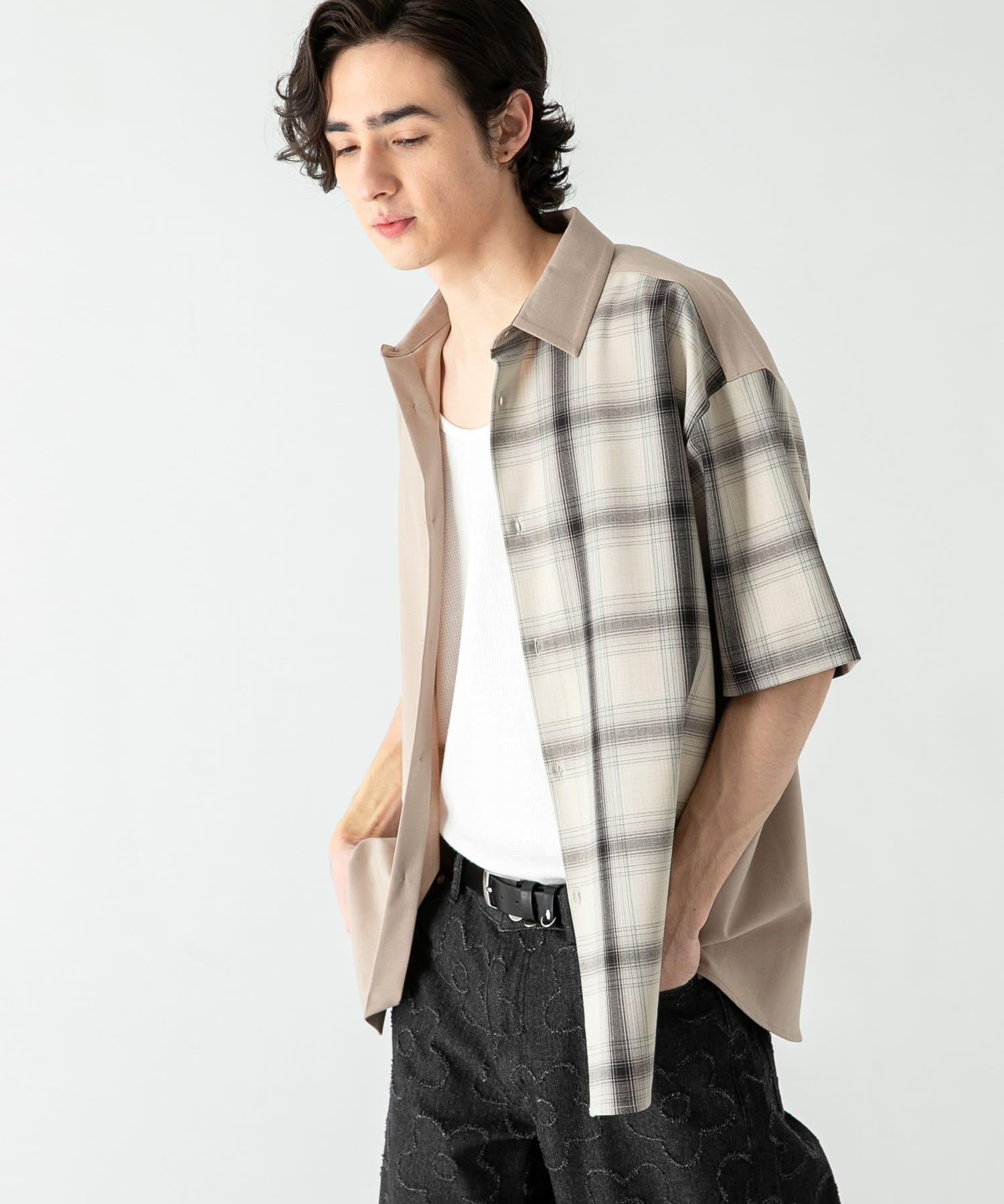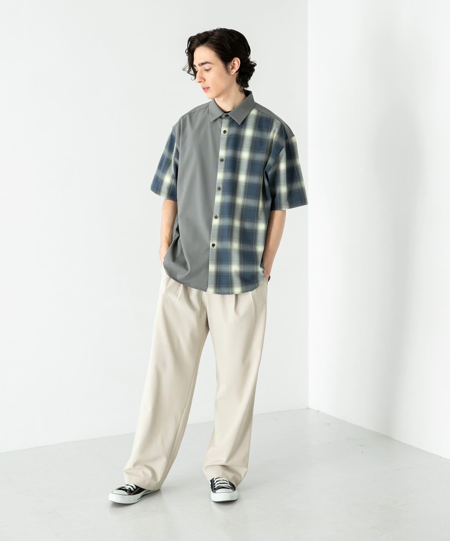 格紋寬鬆襯衫(五分袖)
