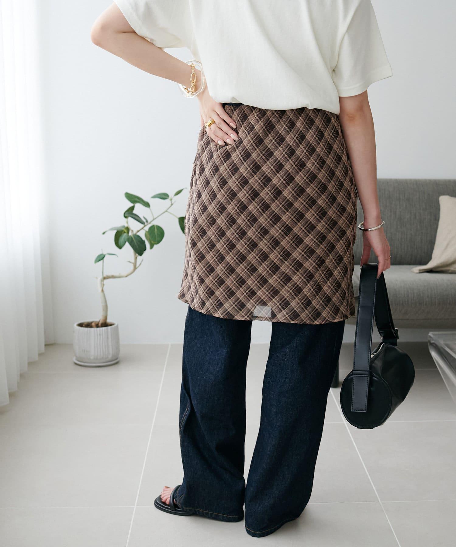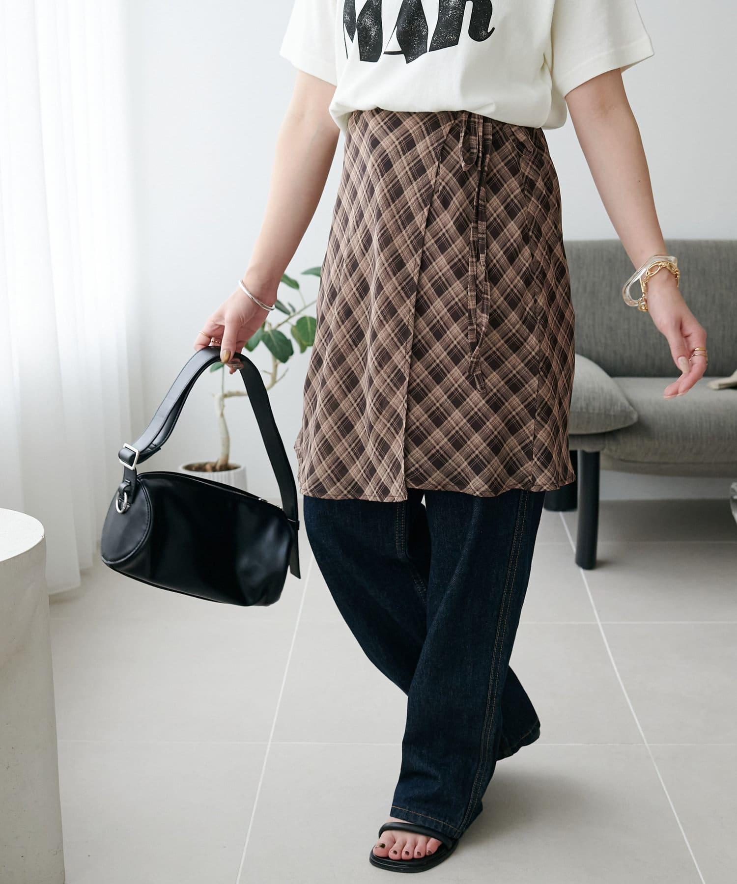 格紋層疊風設計裹身半身裙