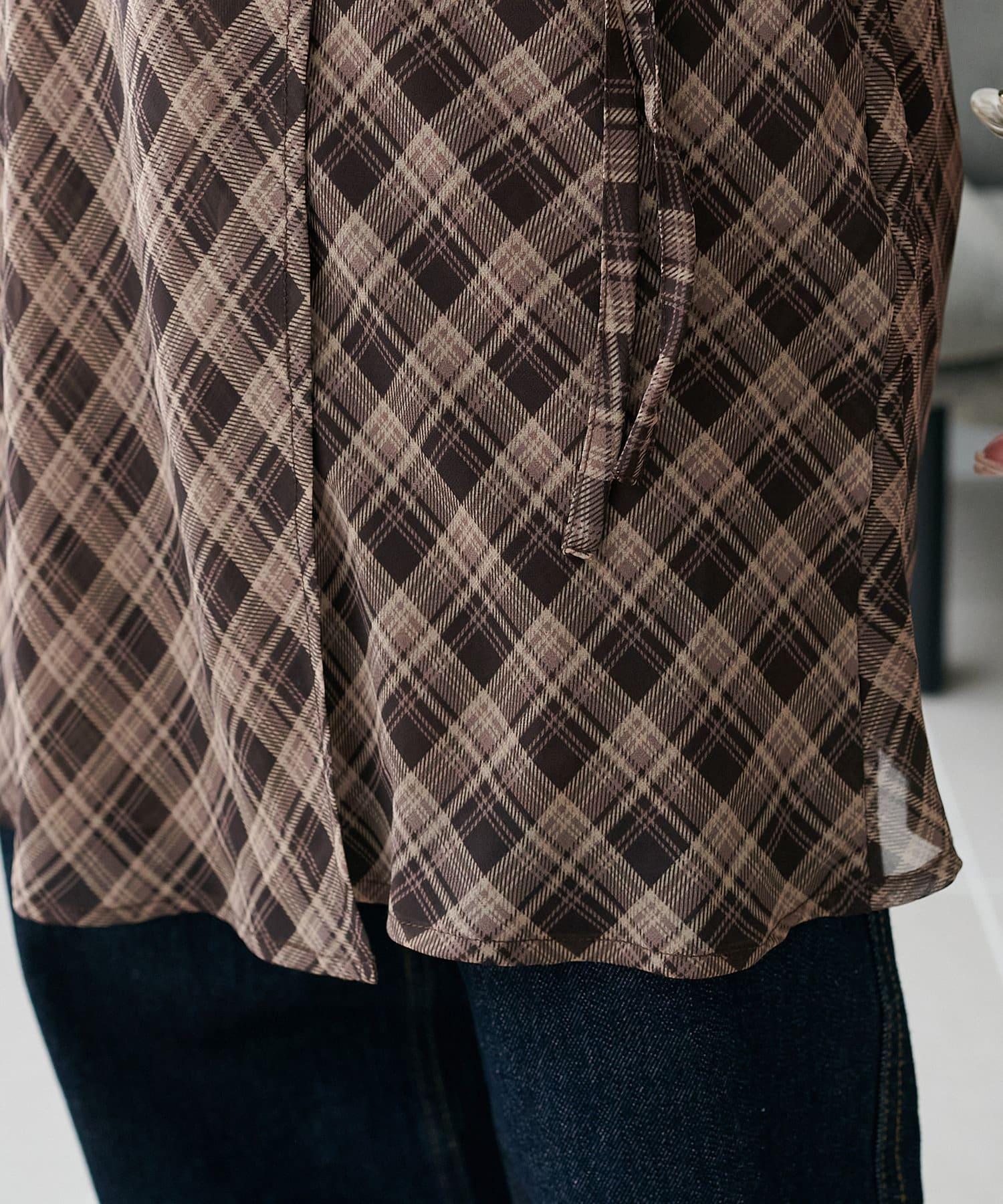 155 厘米員工:腰部的絲帶設計增添了適度而女性化的亮點!雖然是格紋圖案,但低調的顏色也能穿出成熟感。