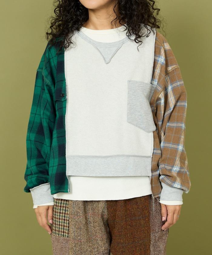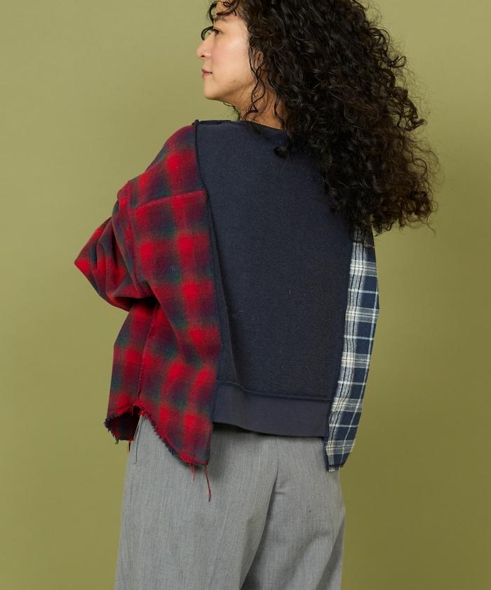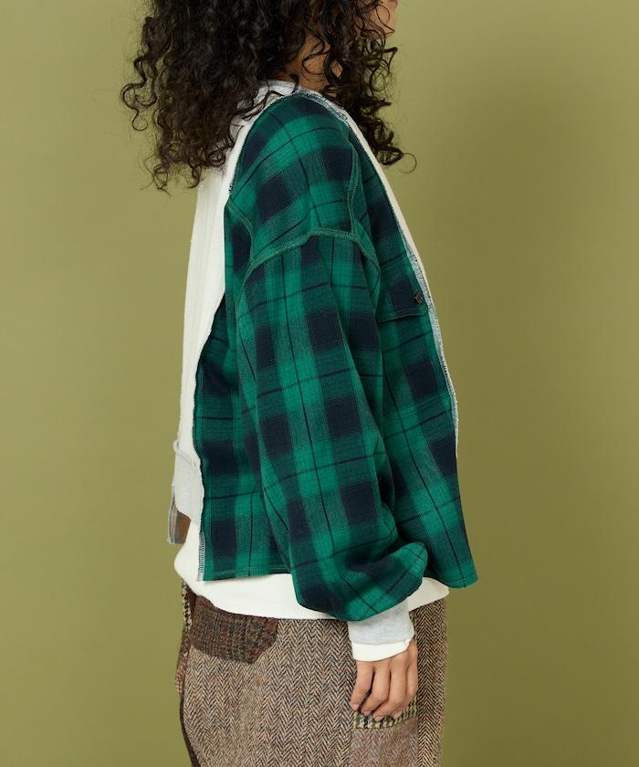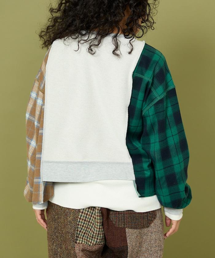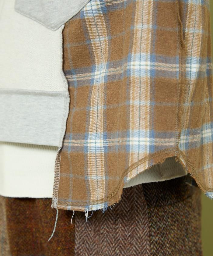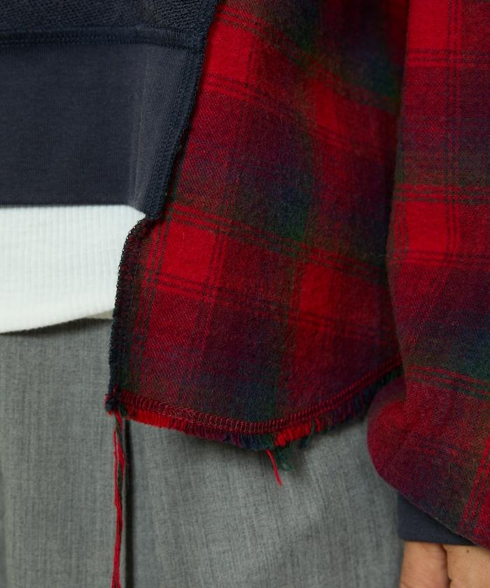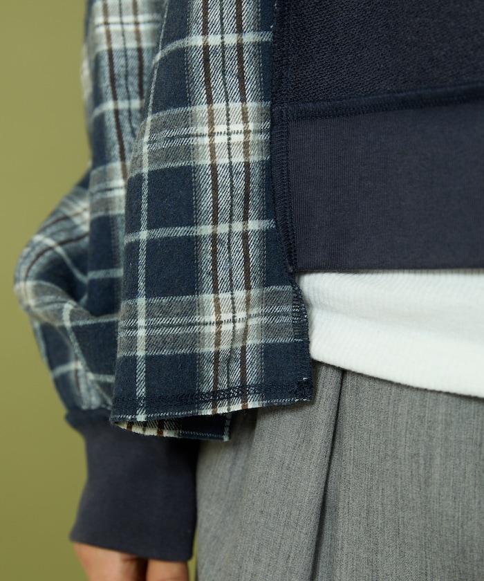 運動衫的正反面、袖口和口袋都保留了原樣,而兩側則結合了復古風格的法蘭絨襯衫。