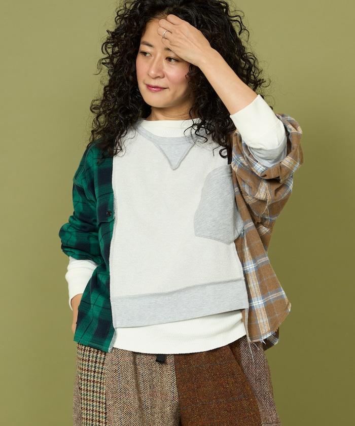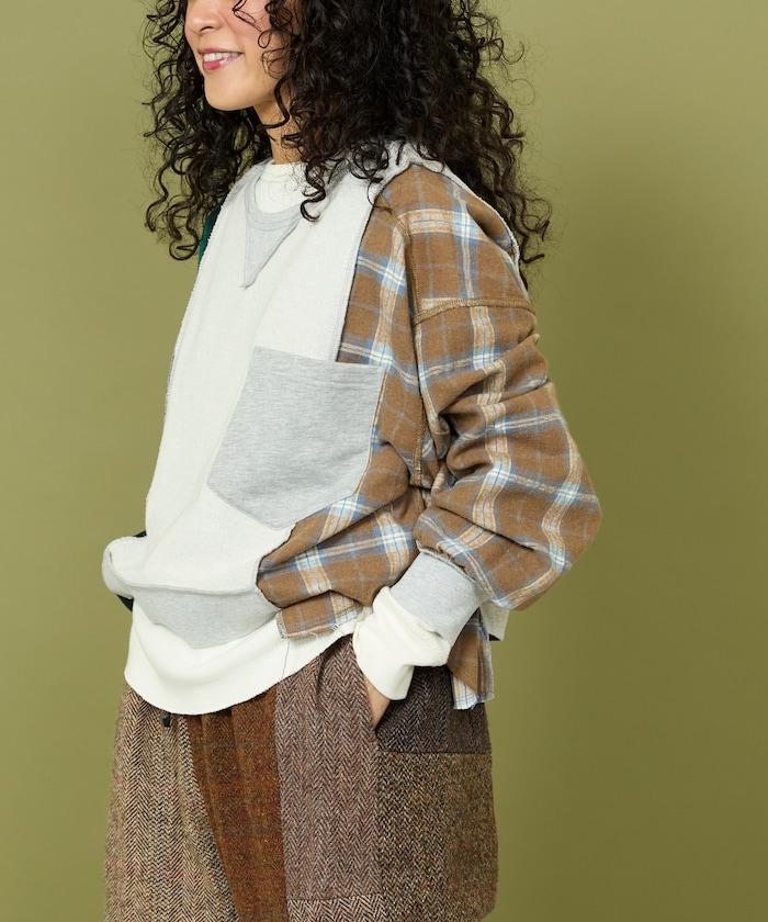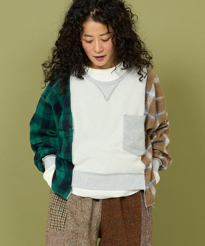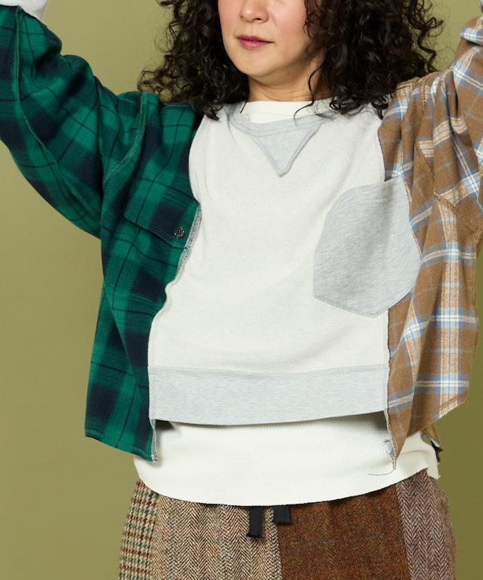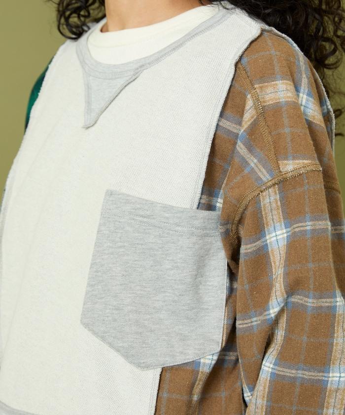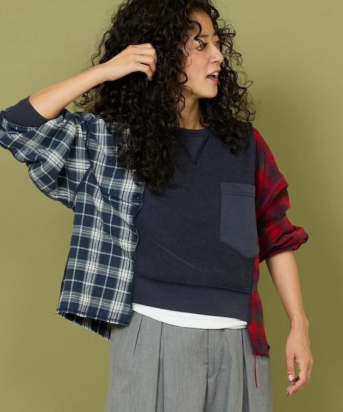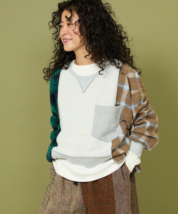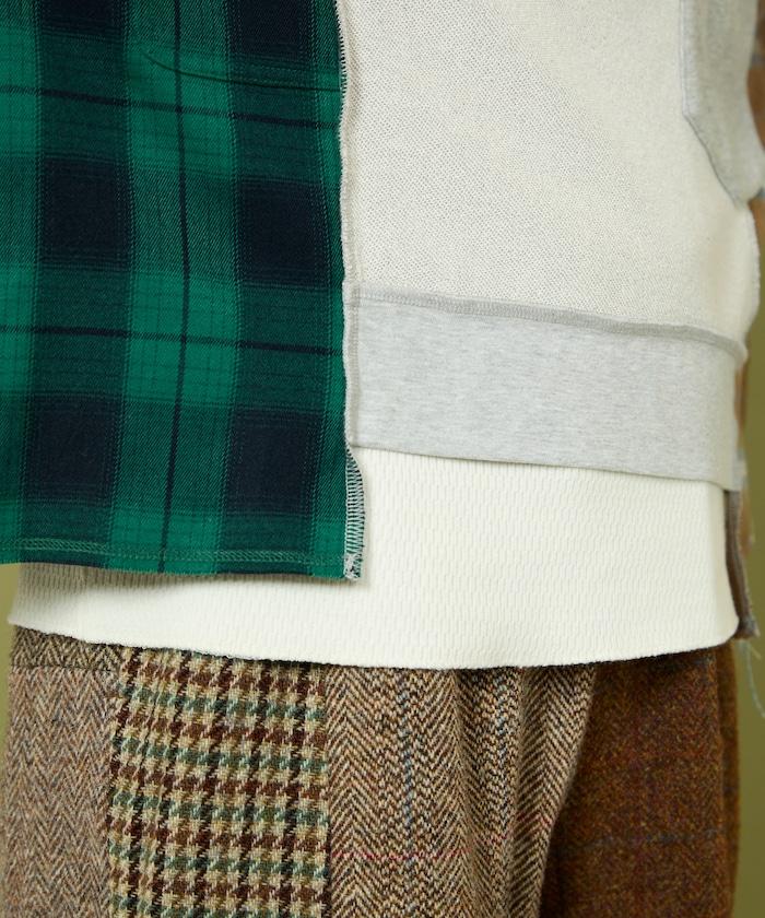 運動衫的正反面、袖口和口袋都保留了原樣,而兩側則結合了復古風格的法蘭絨襯衫。