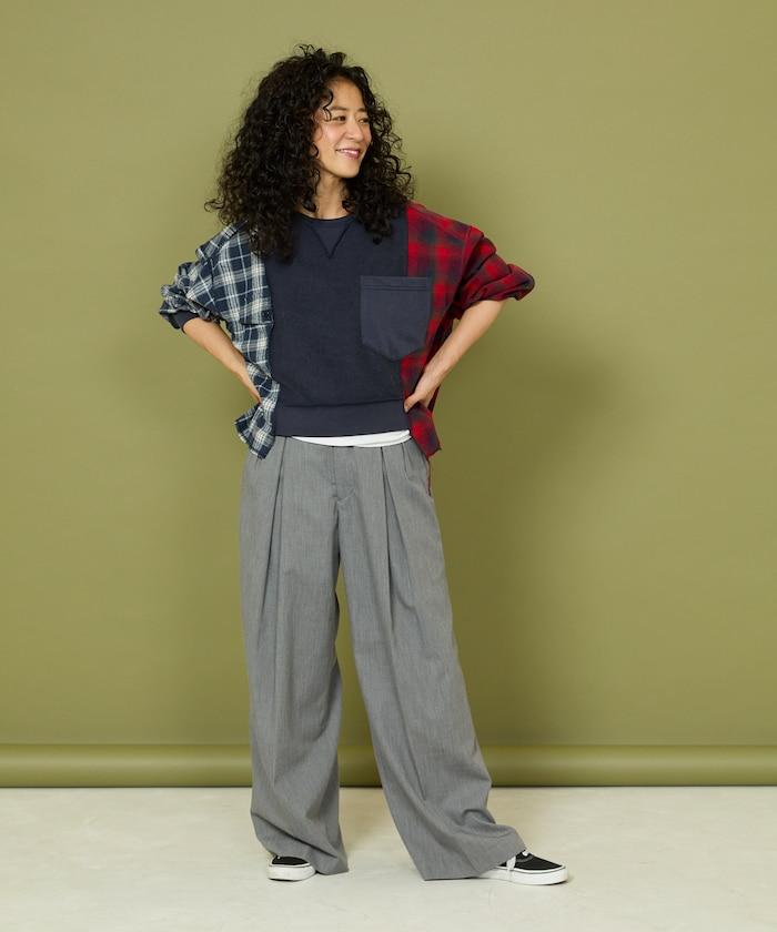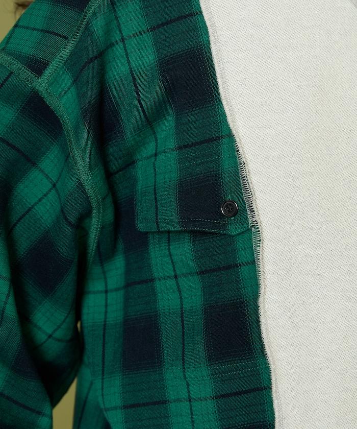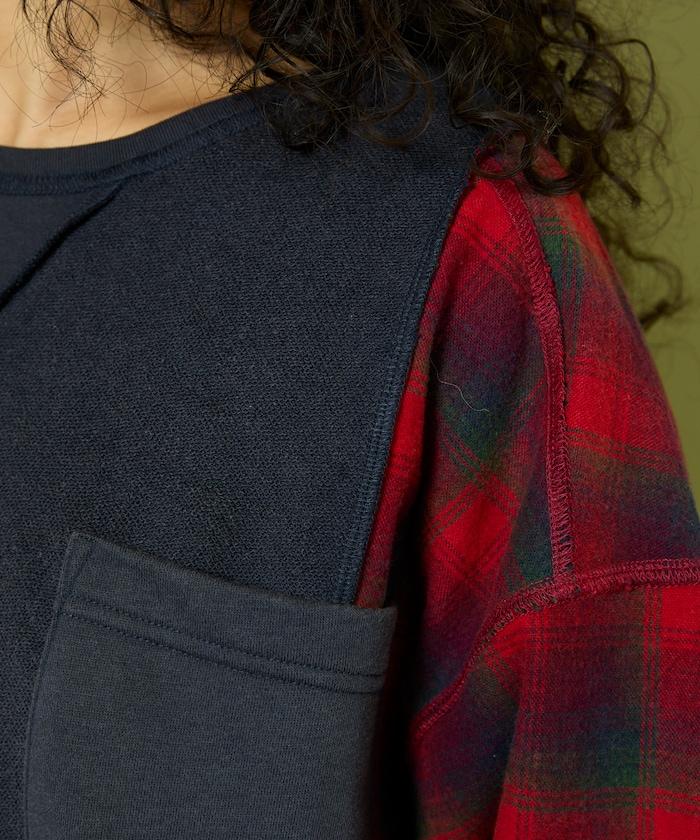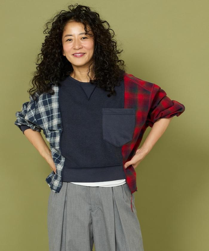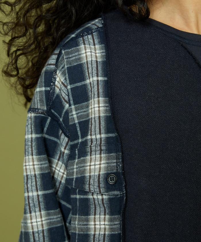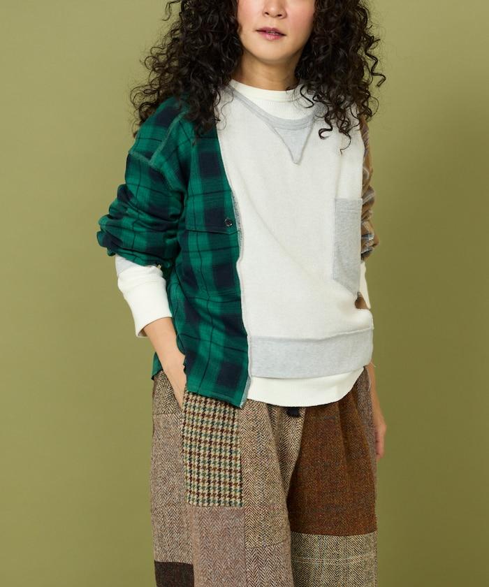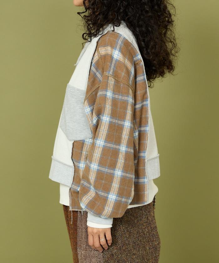 運動衫的正反面、袖口和口袋都保留了原樣,而兩側則結合了復古風格的法蘭絨襯衫。