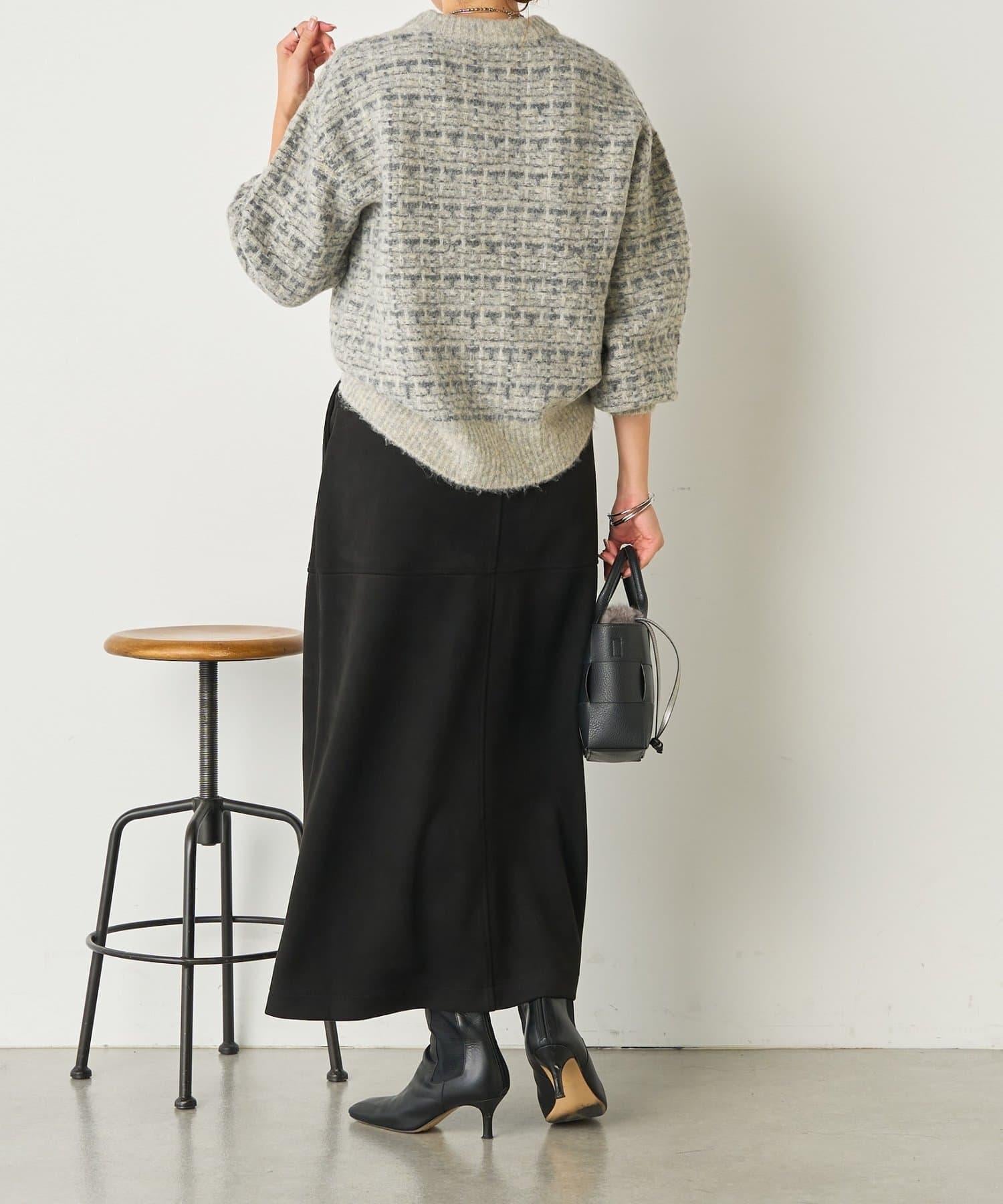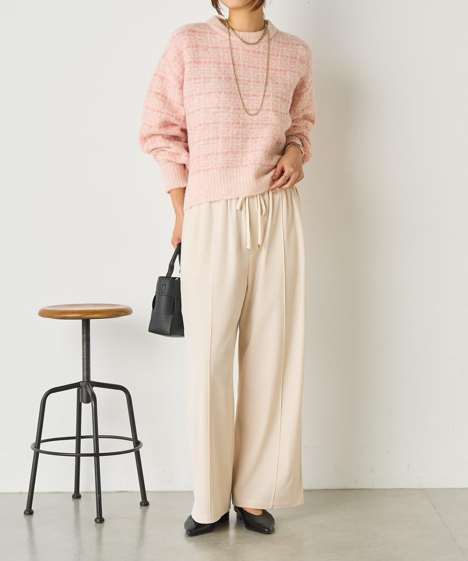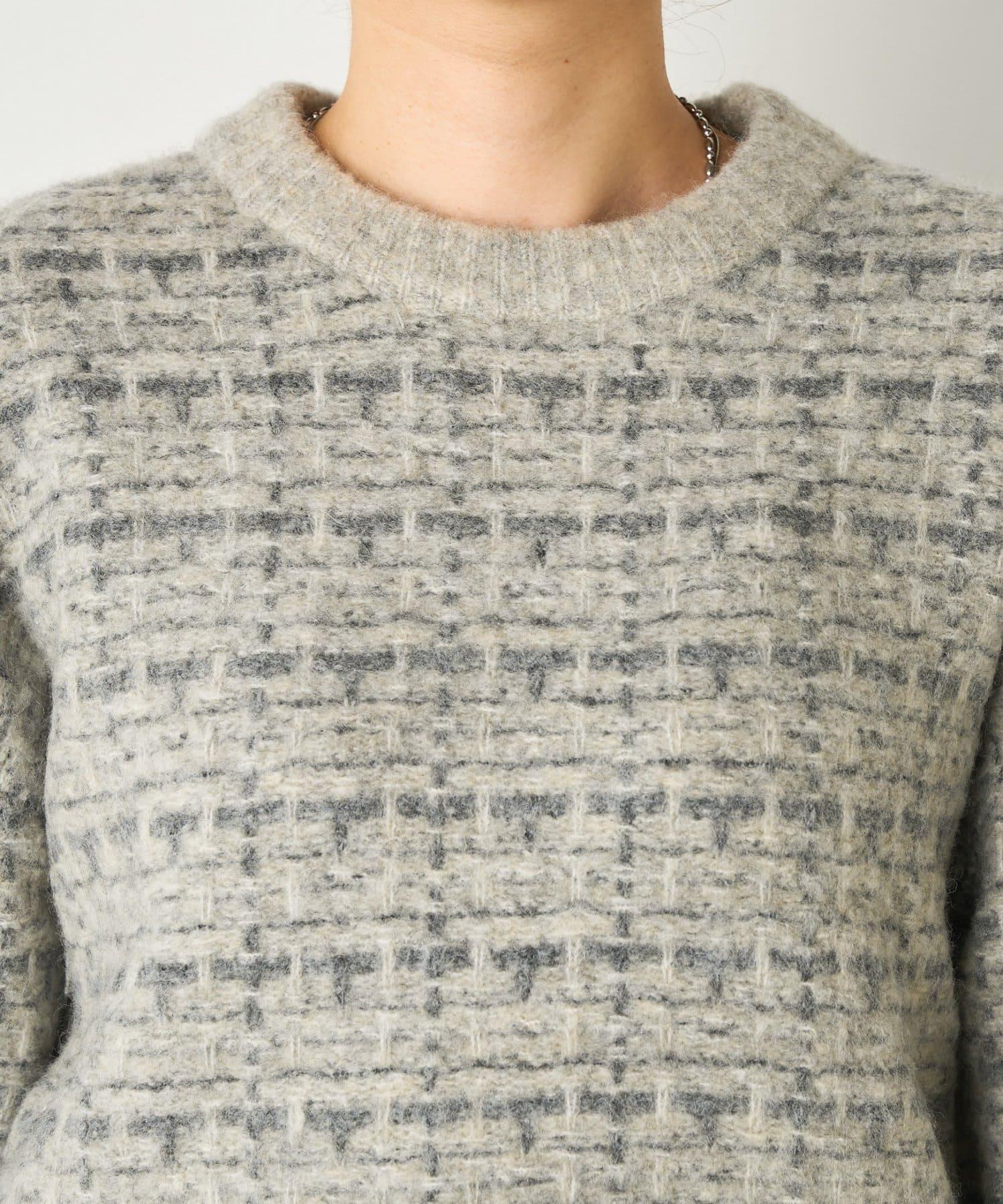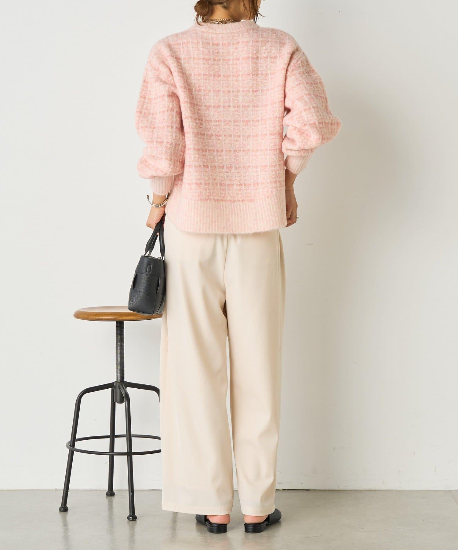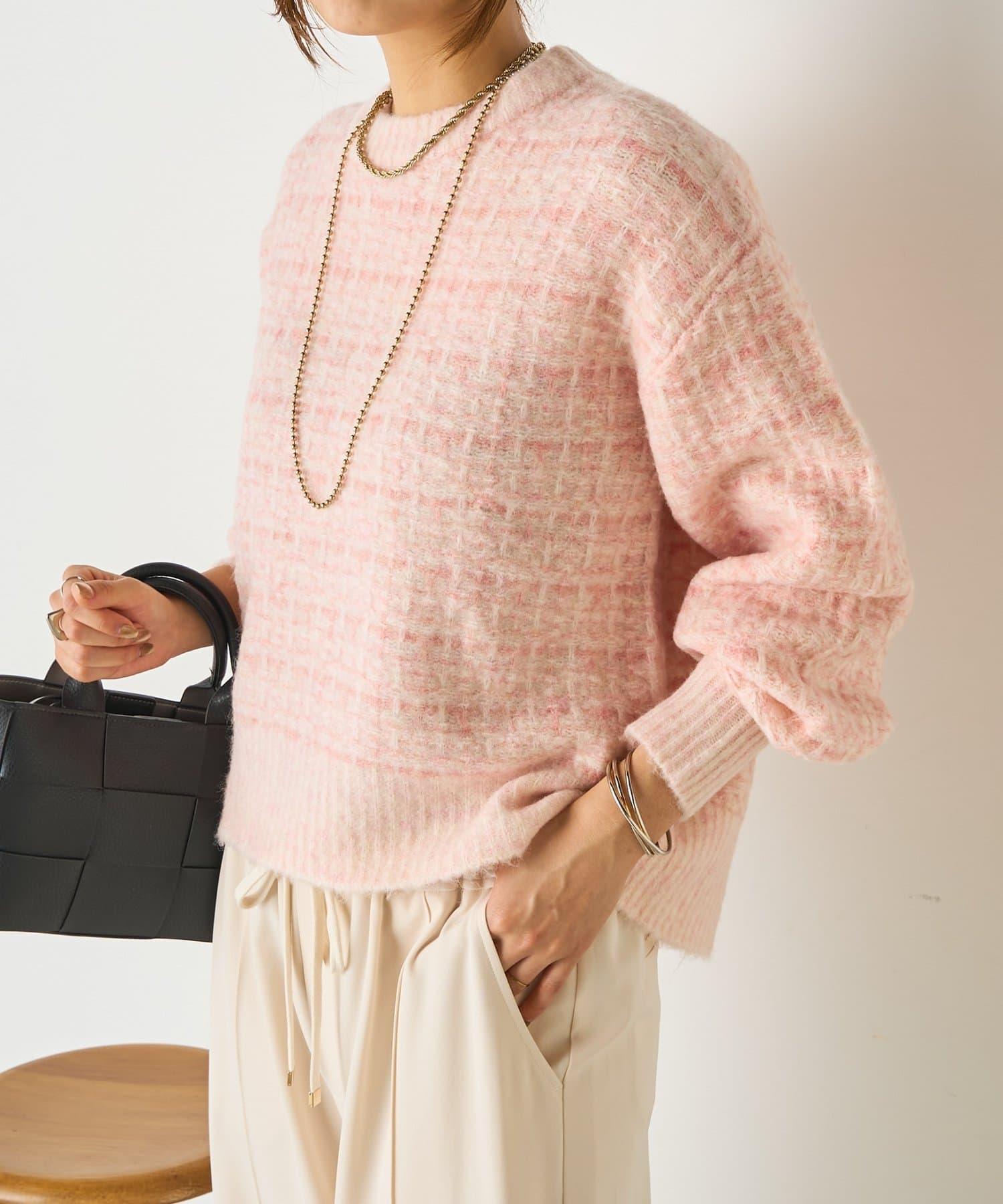 質地不均勻的針織面料非常搶眼,格子圓領針織面料。