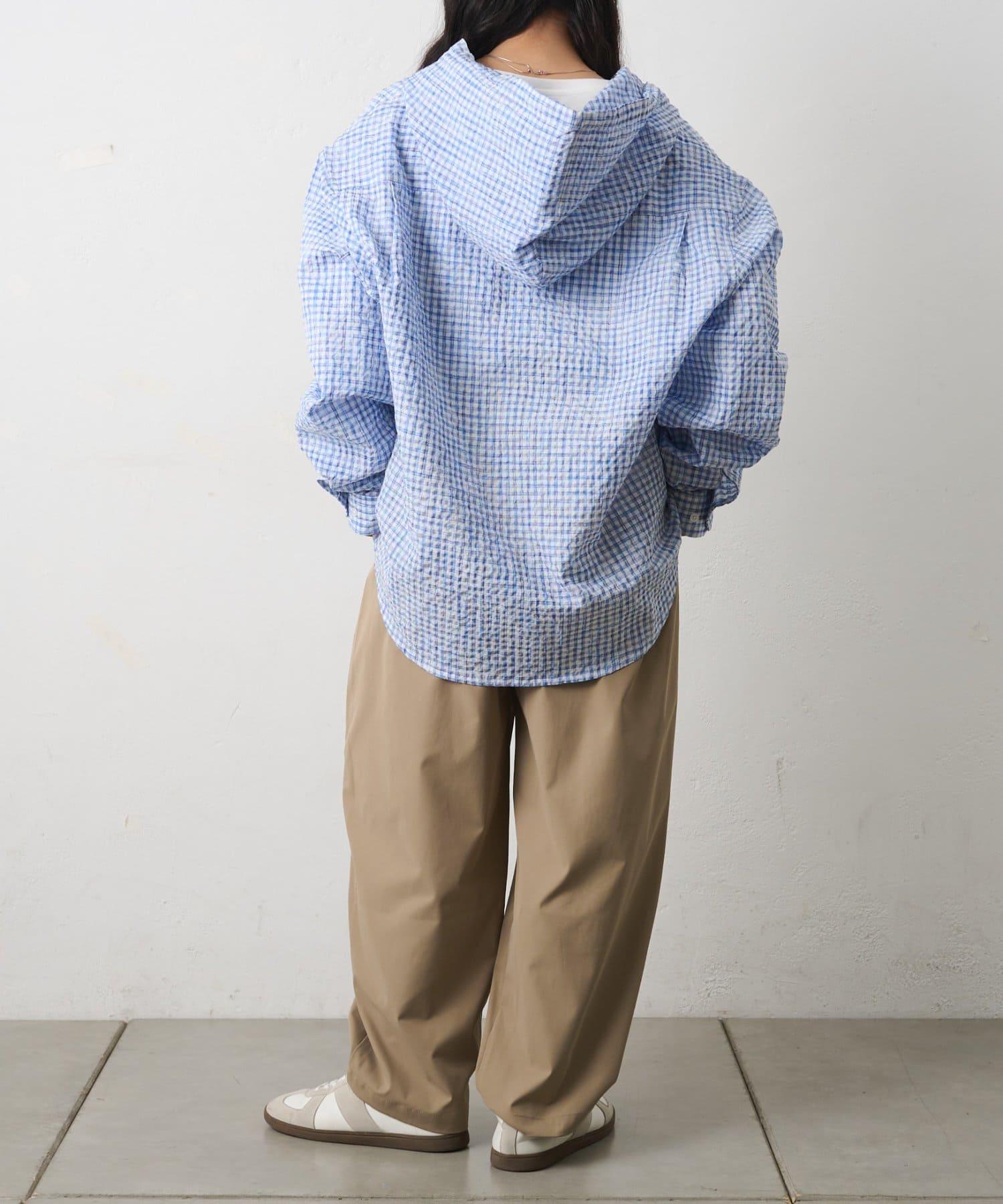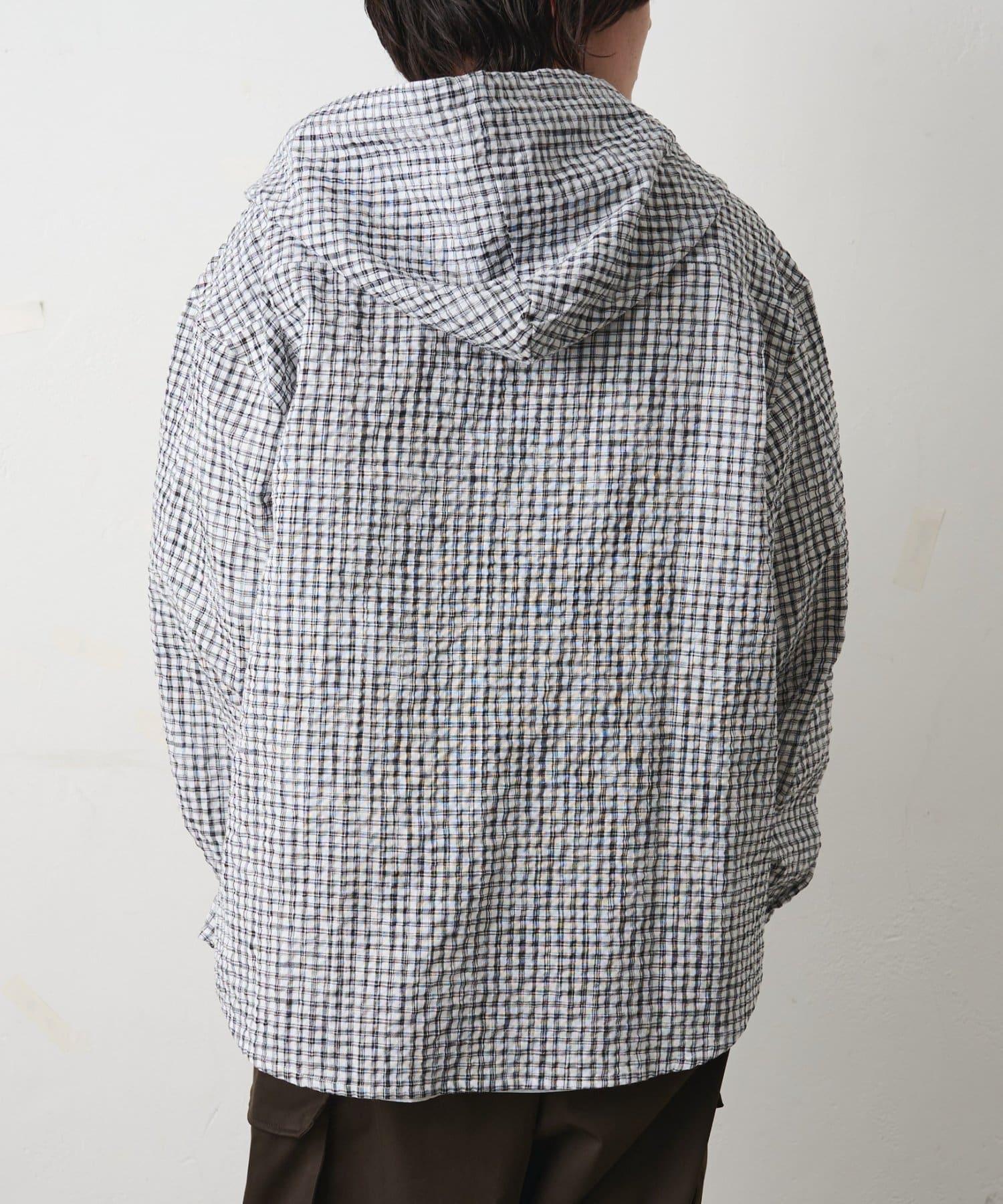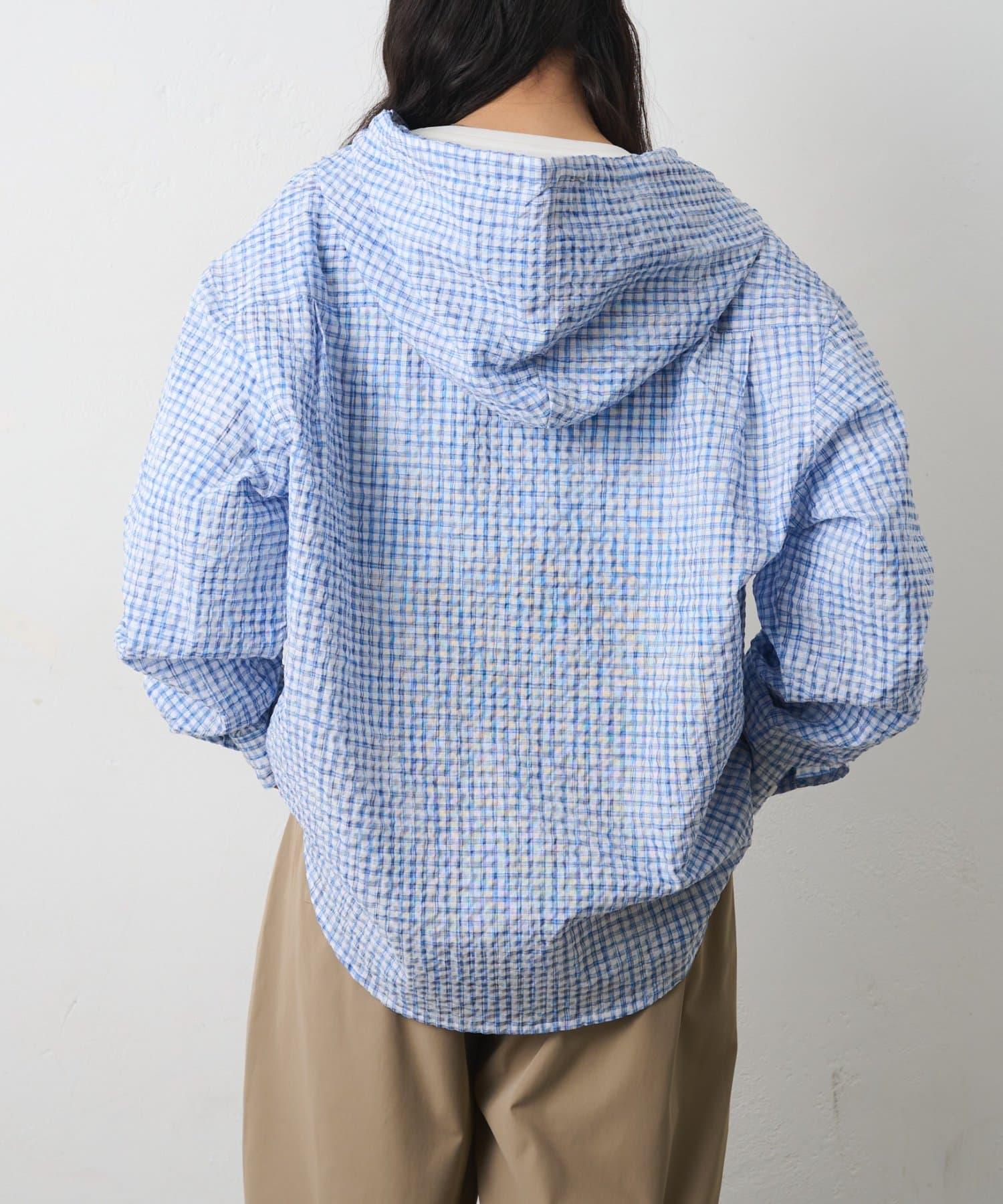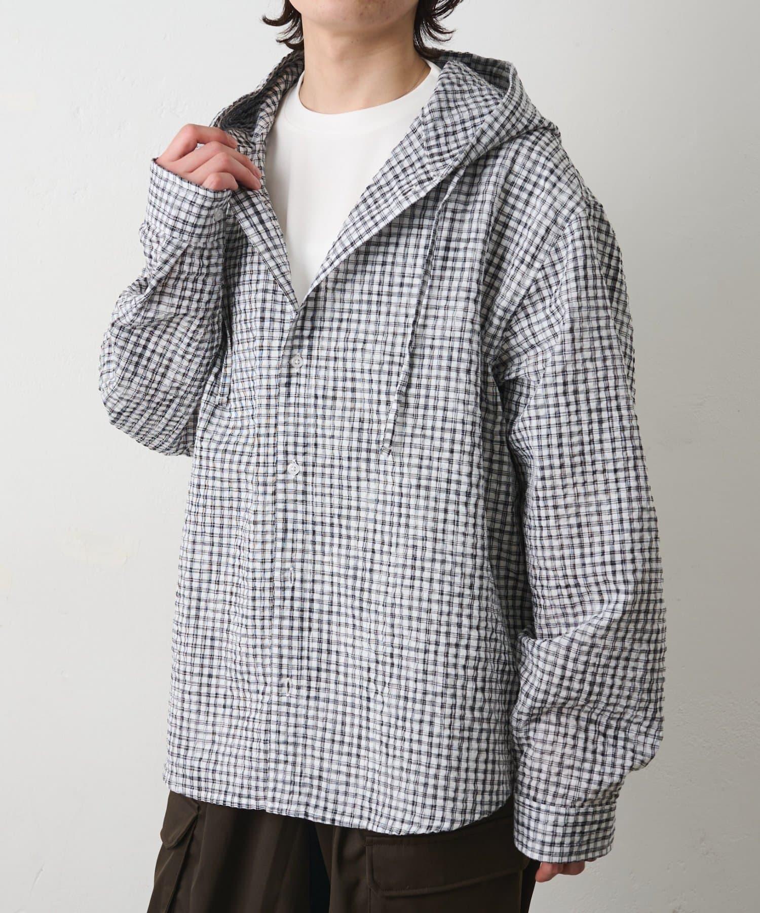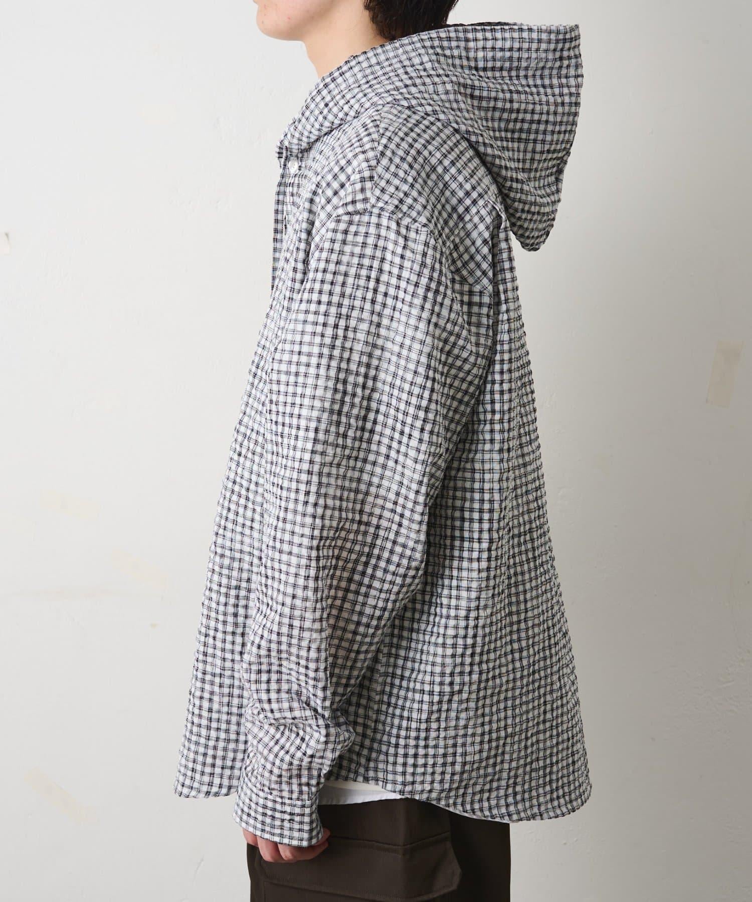 格紋泡泡紗 連帽襯衫