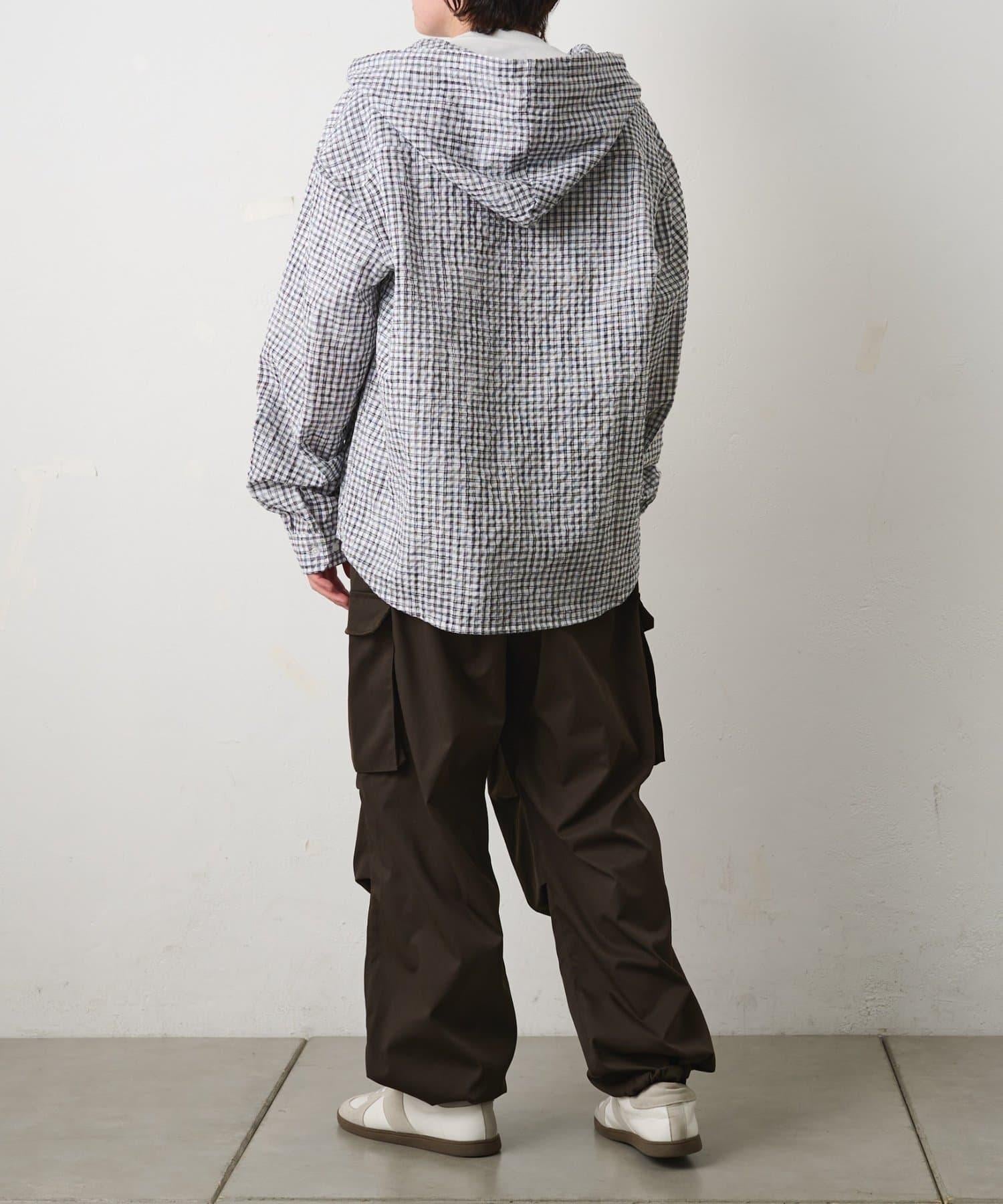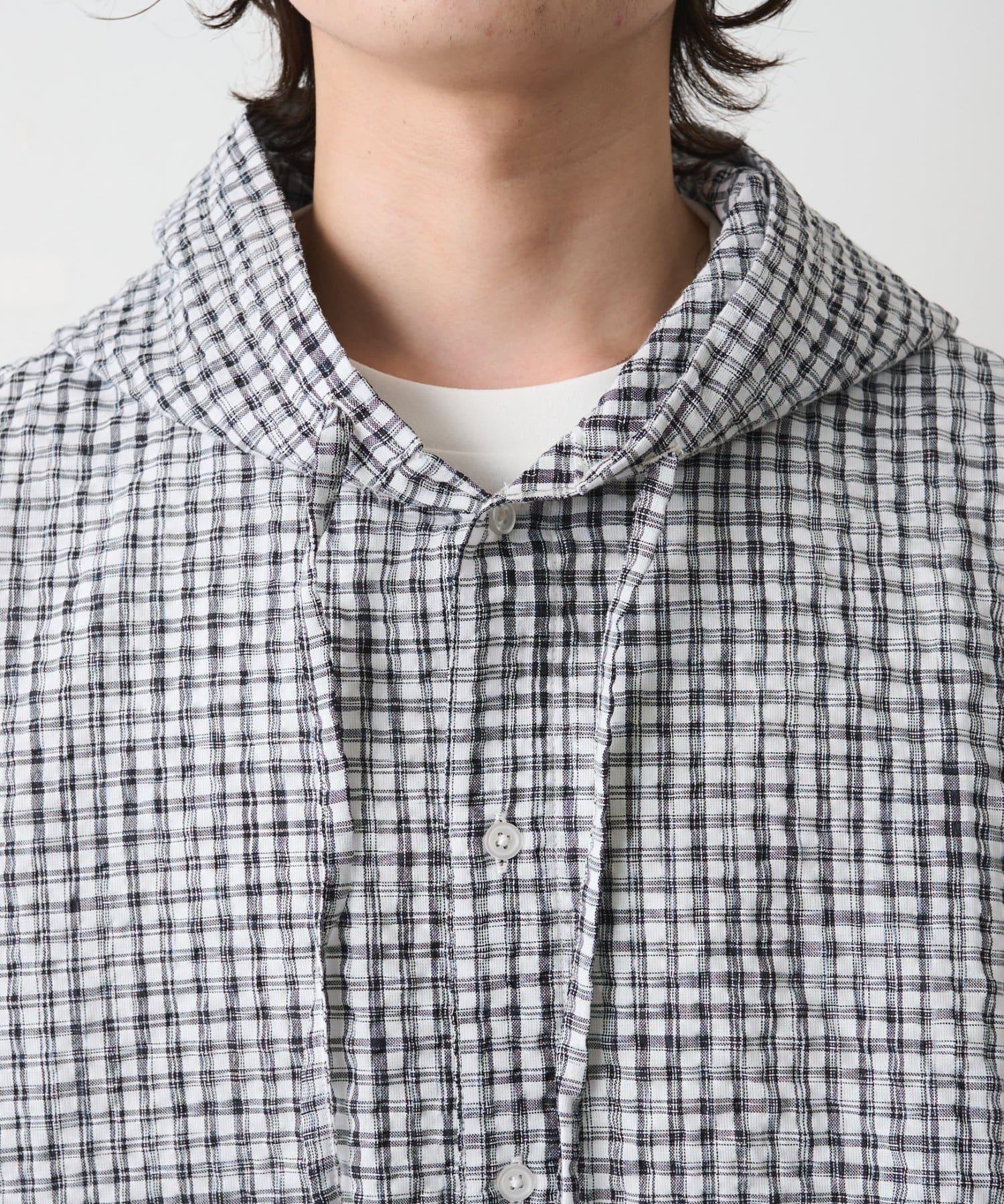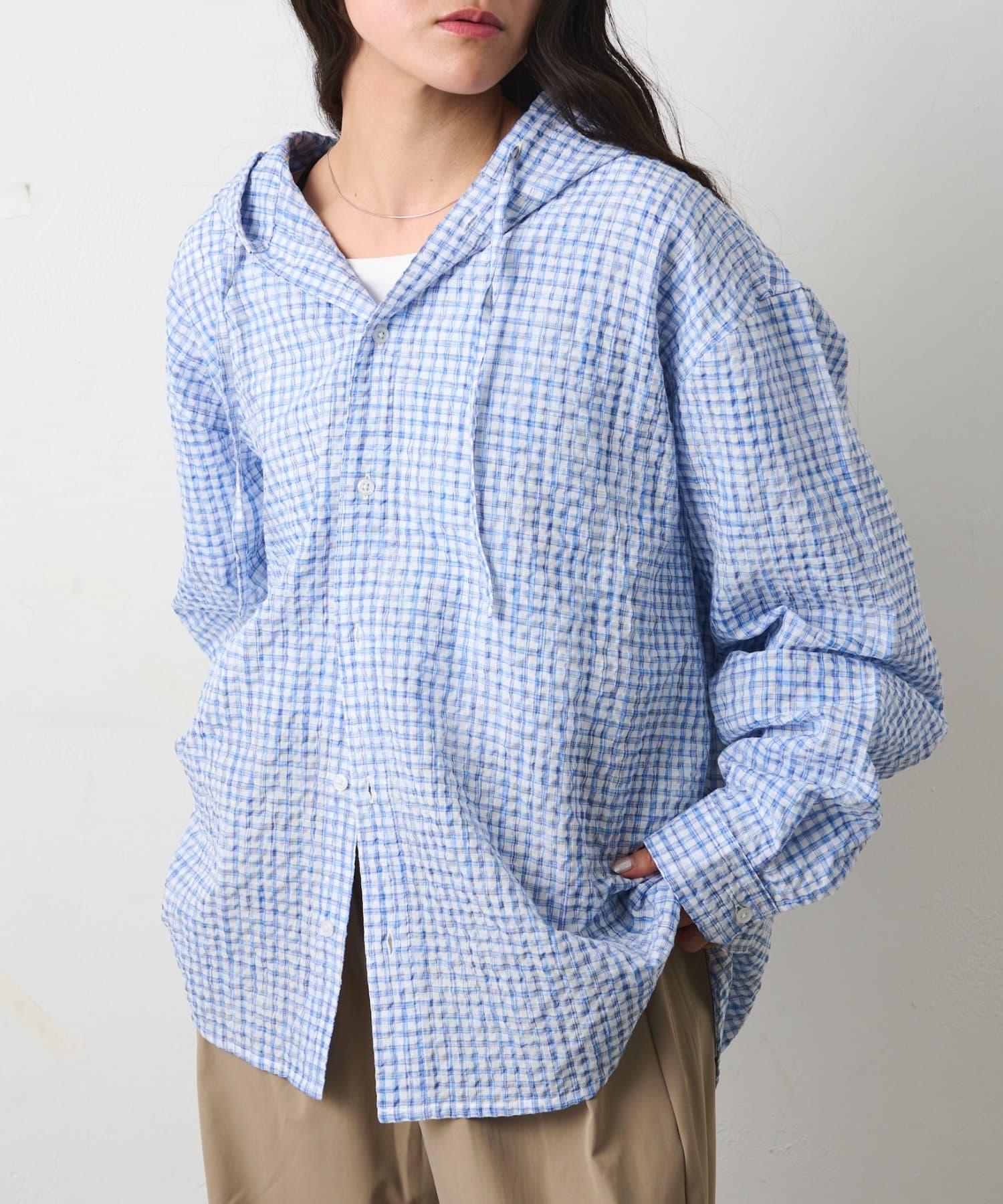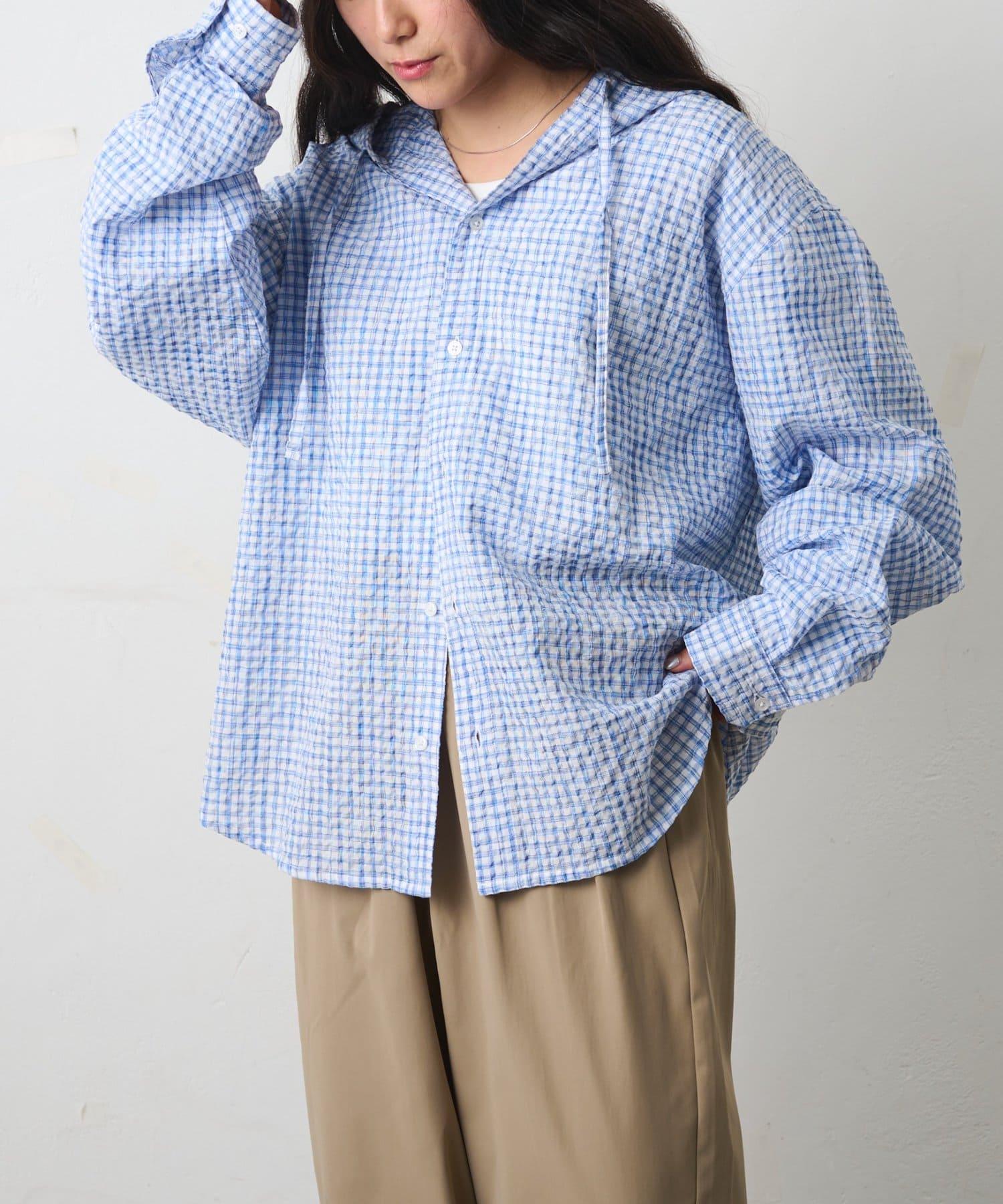 格紋泡泡紗 連帽襯衫