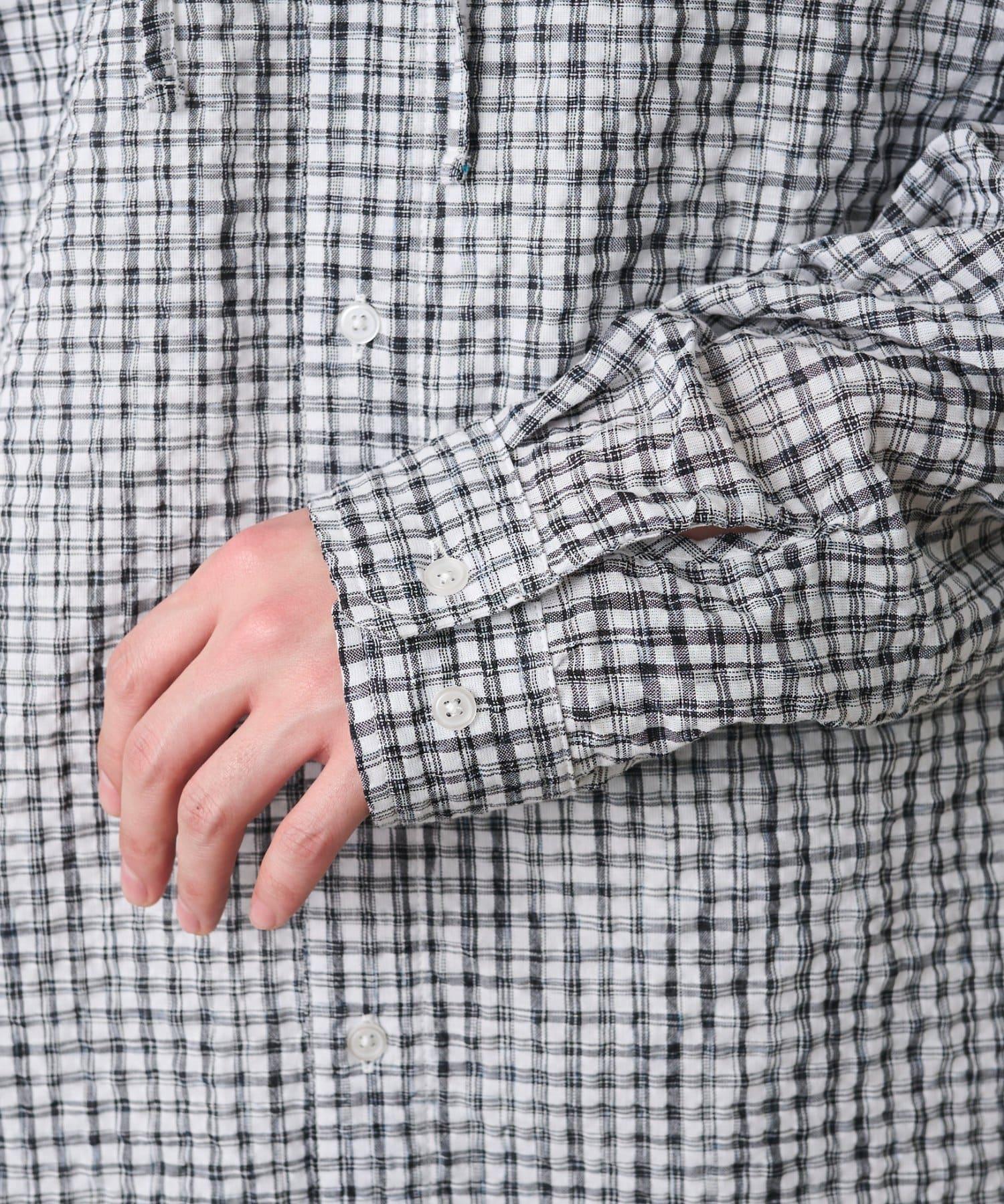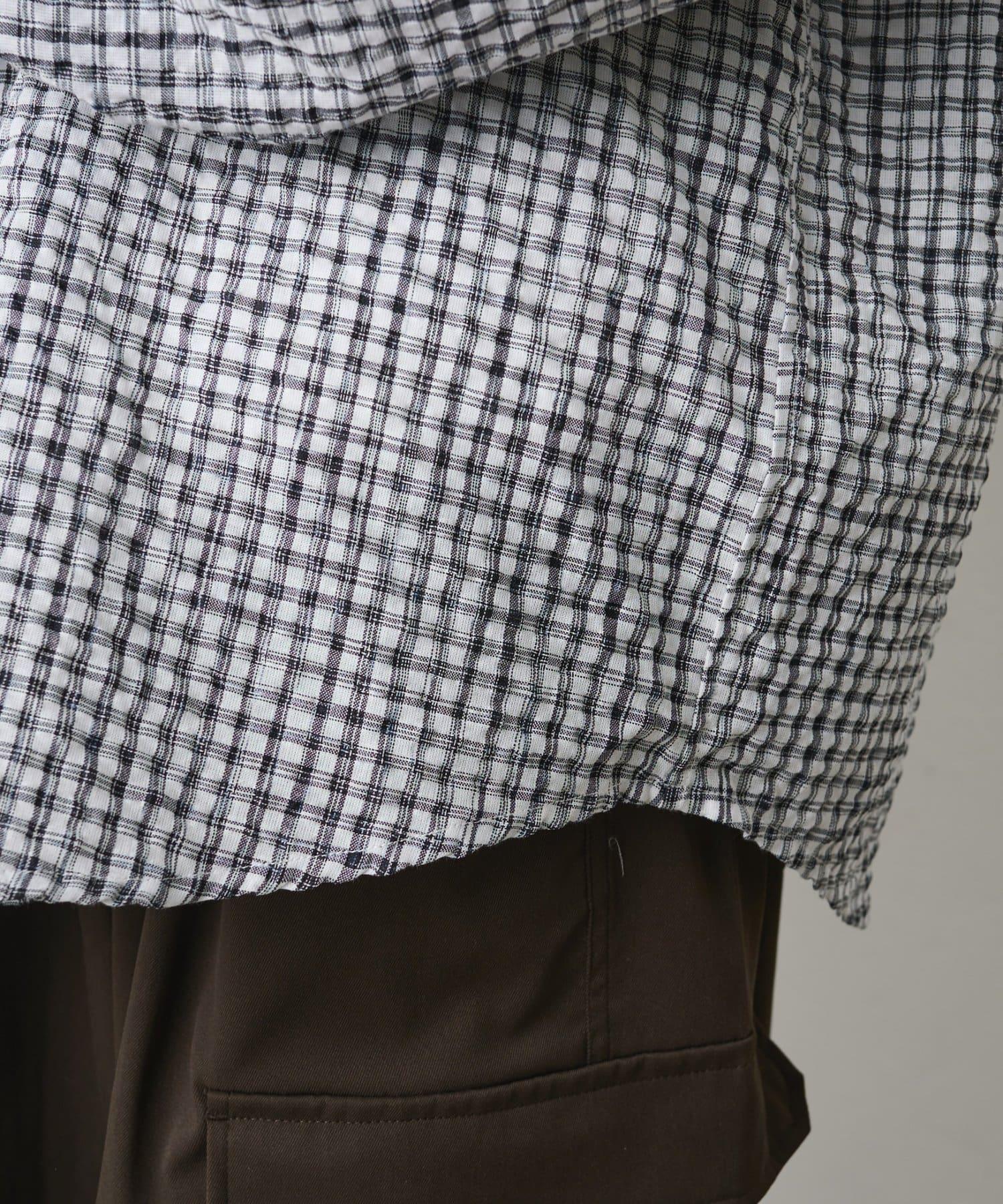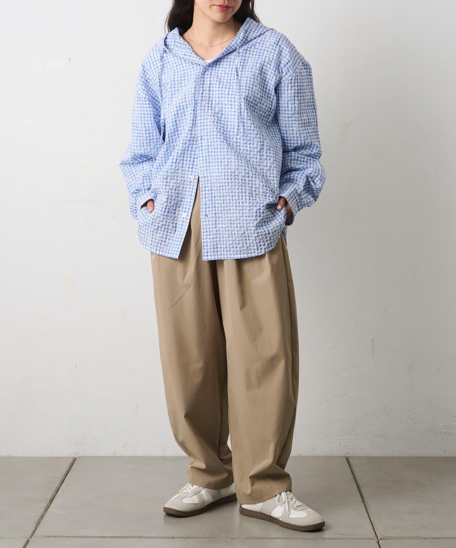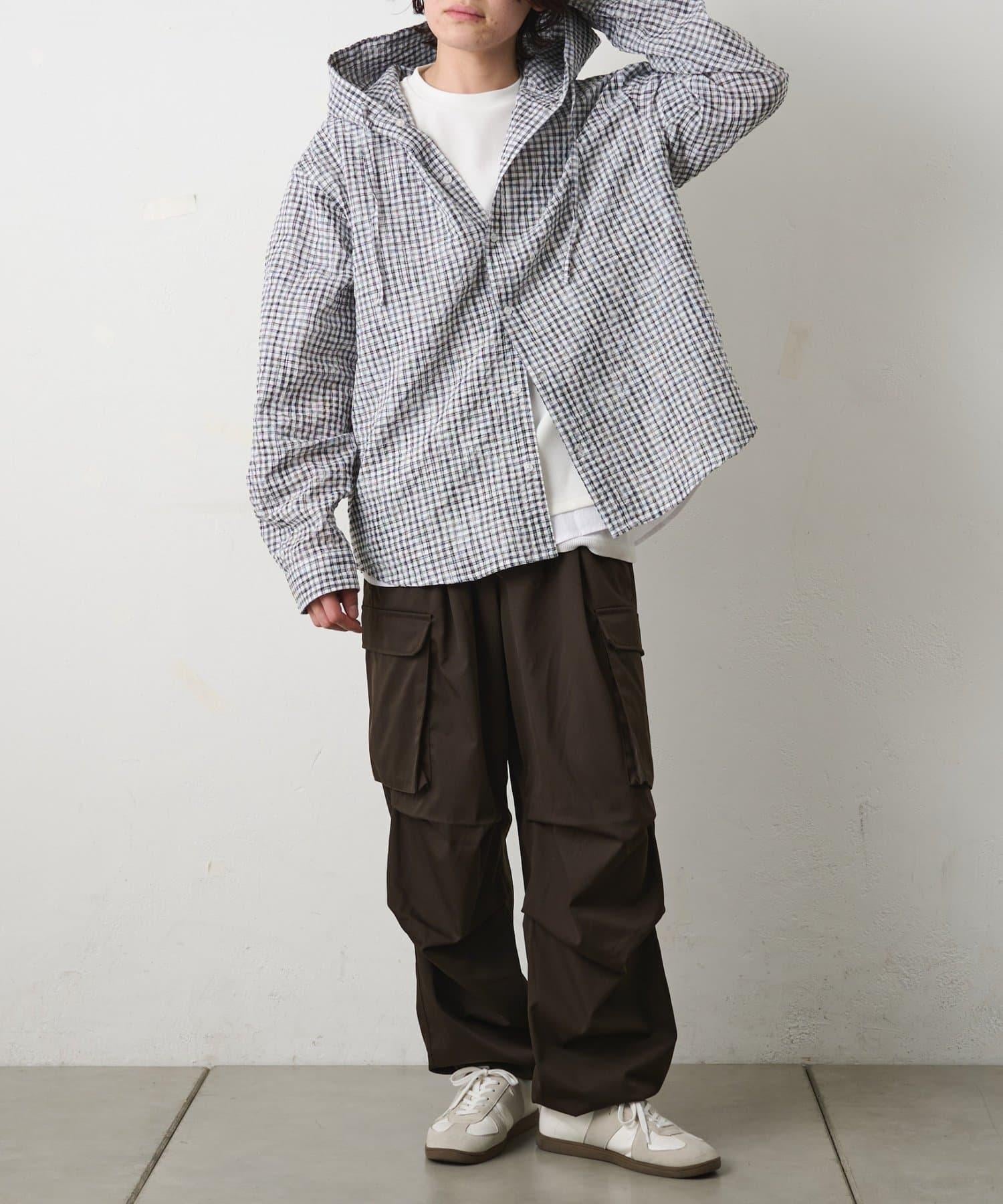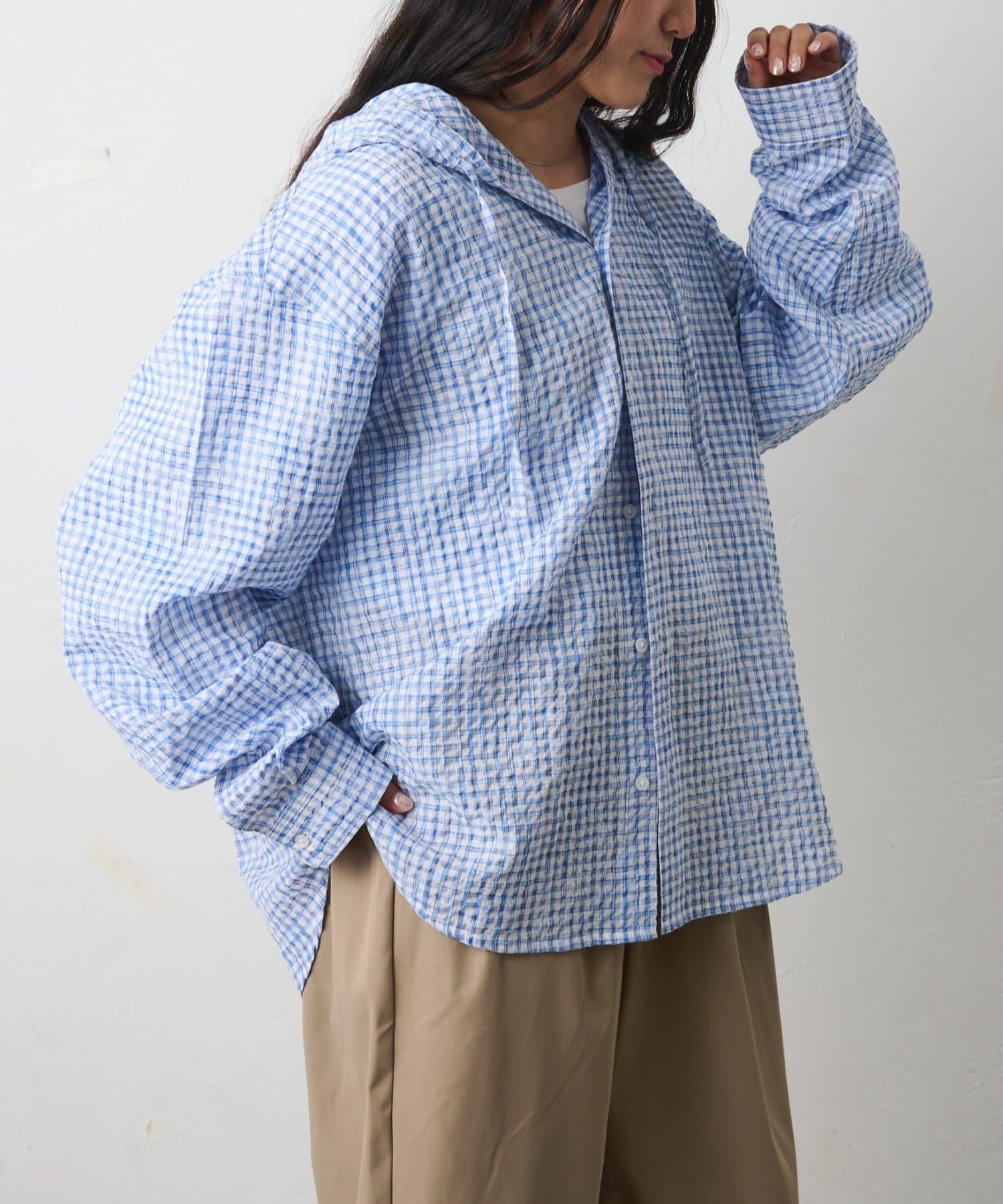 格紋泡泡紗 連帽襯衫