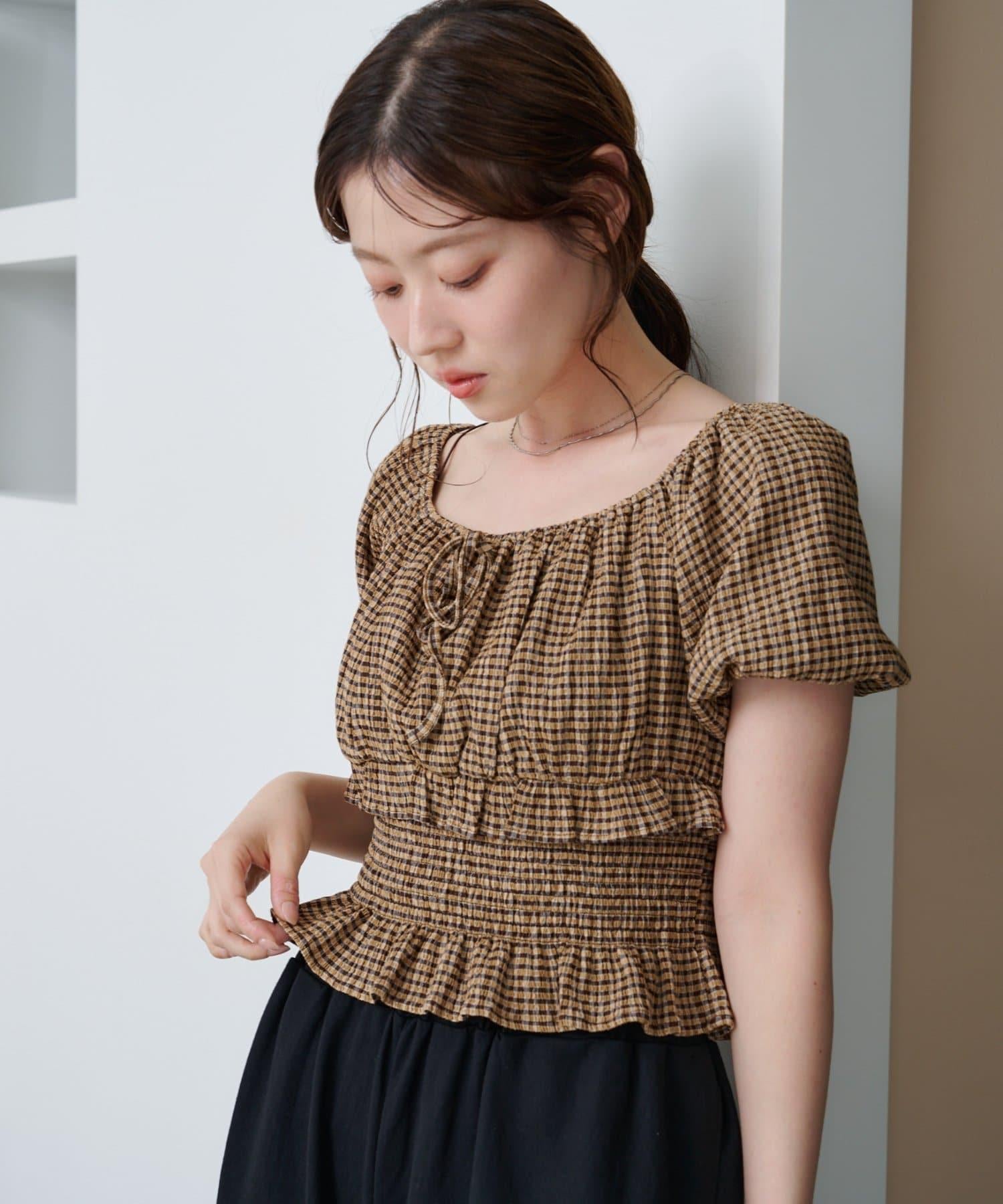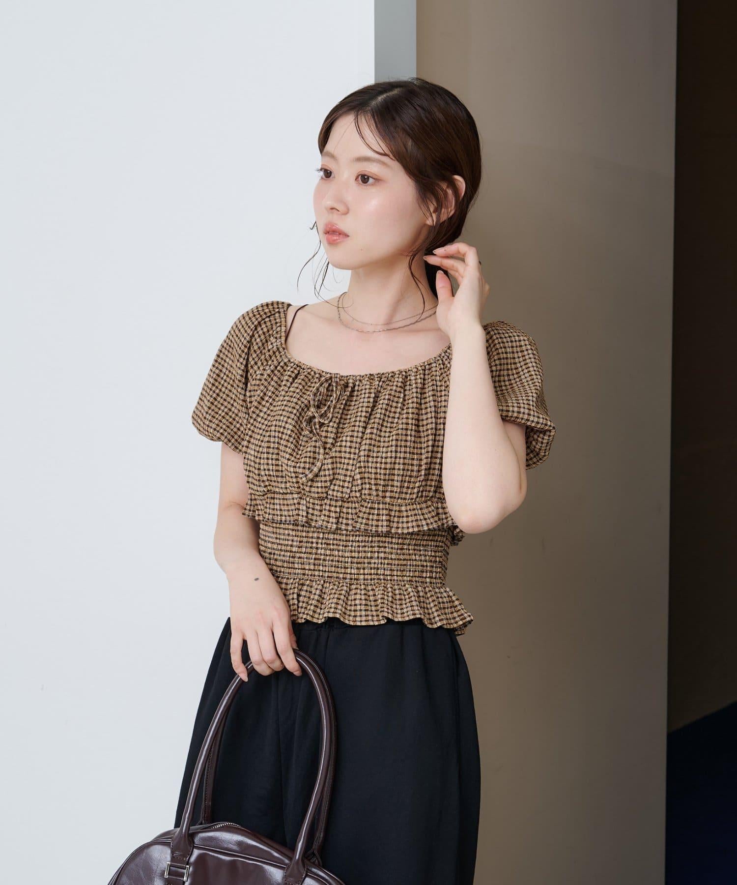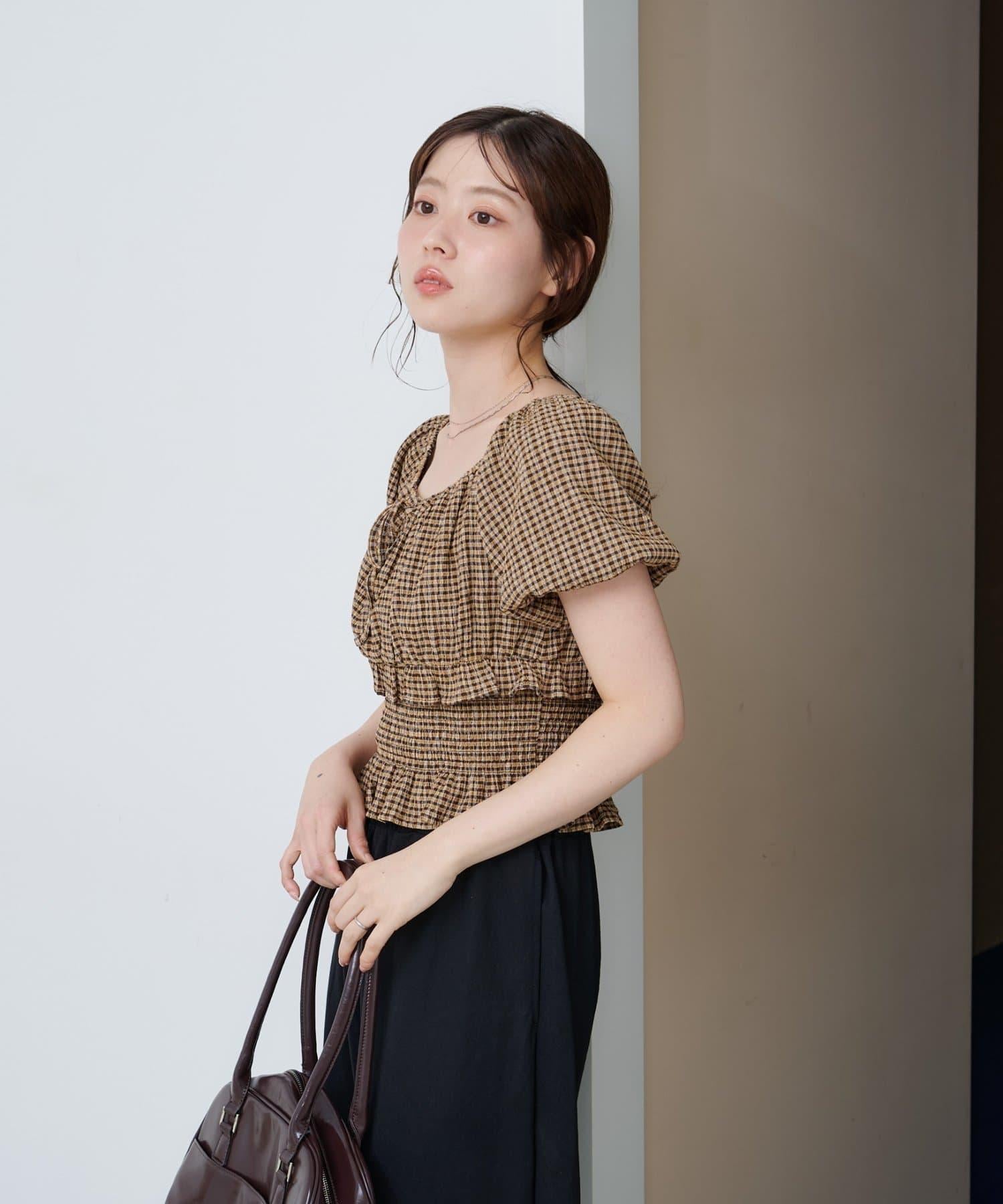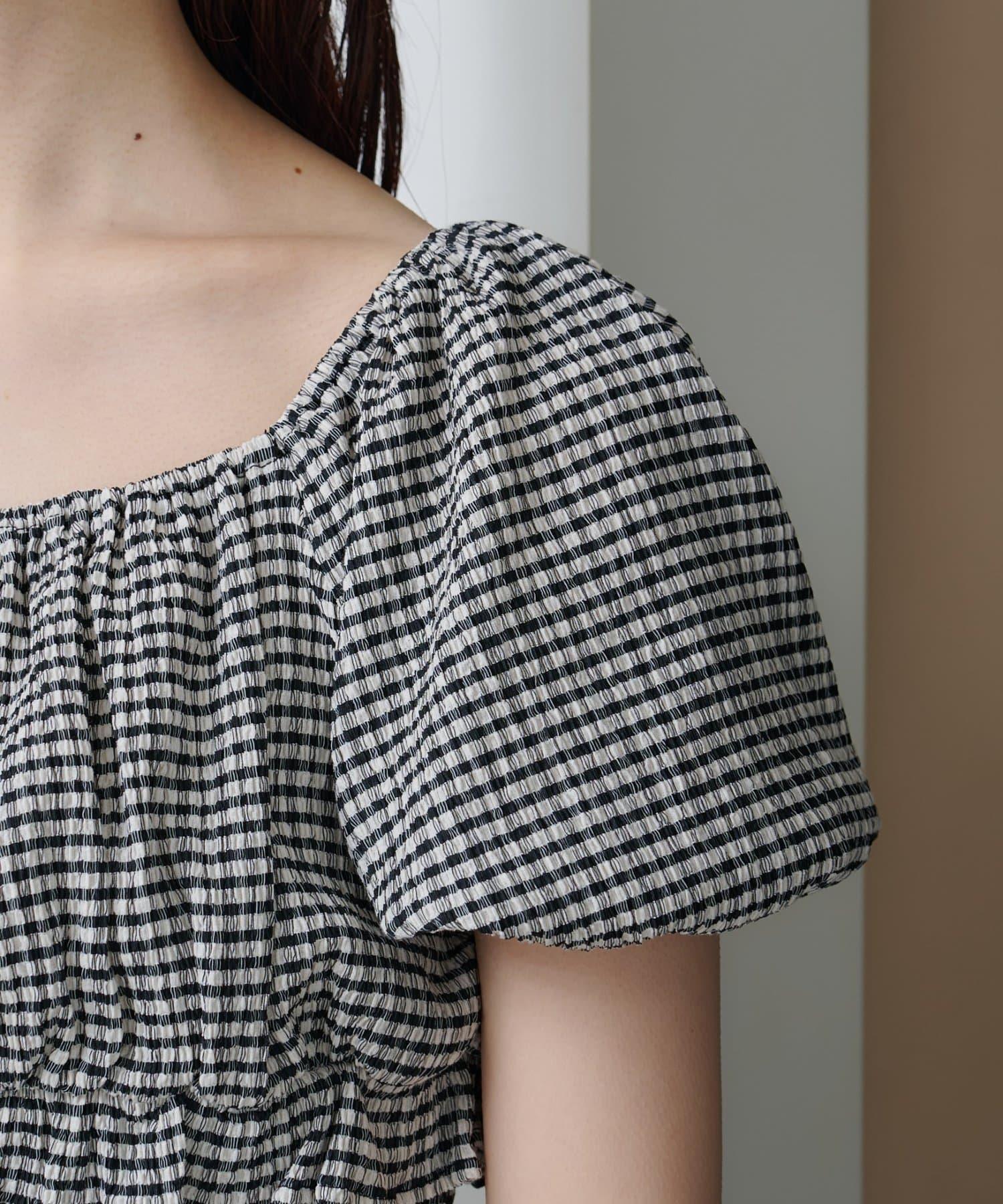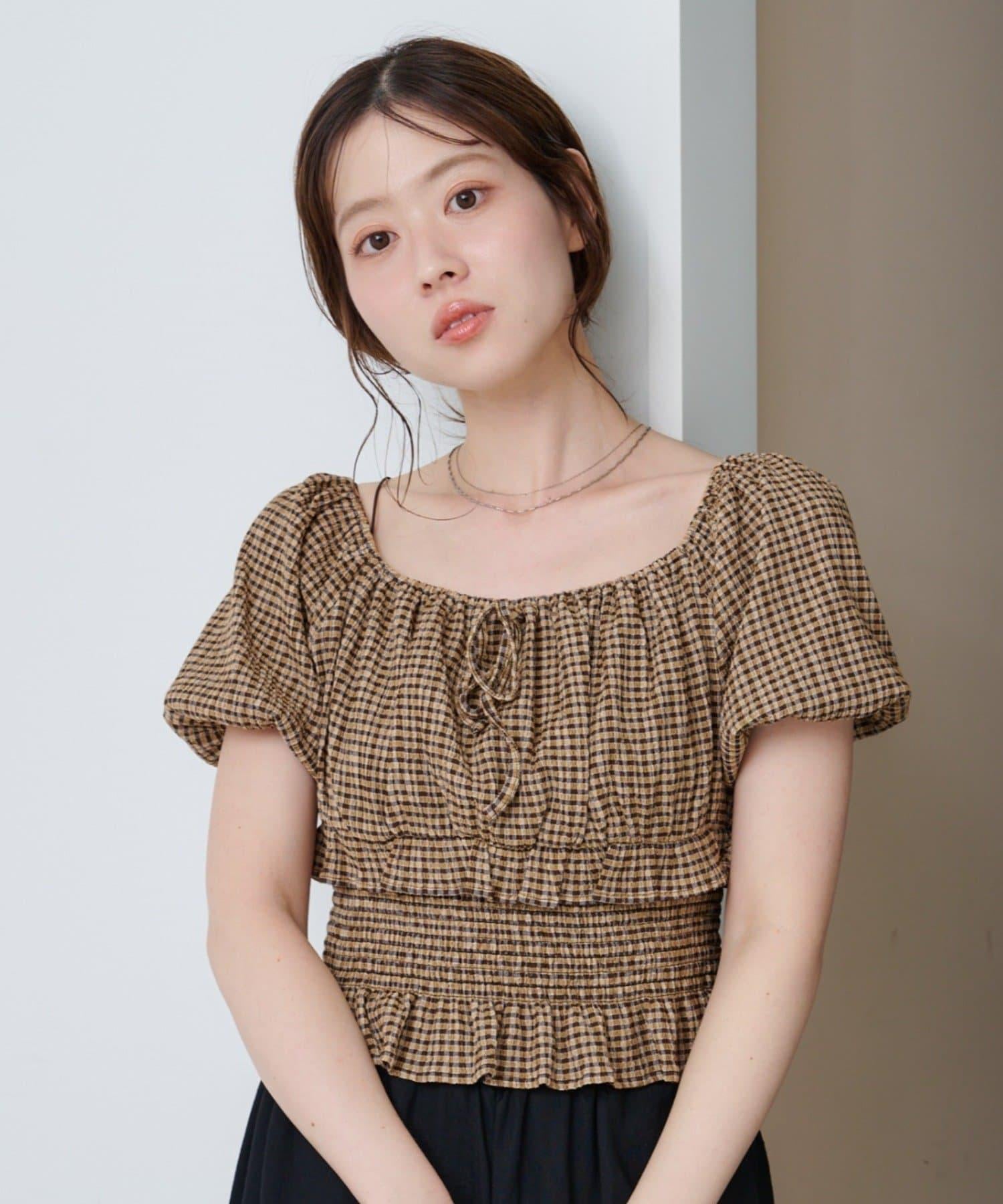 成人可愛的格子蓬蓬上衣,蓬鬆的輪廓。