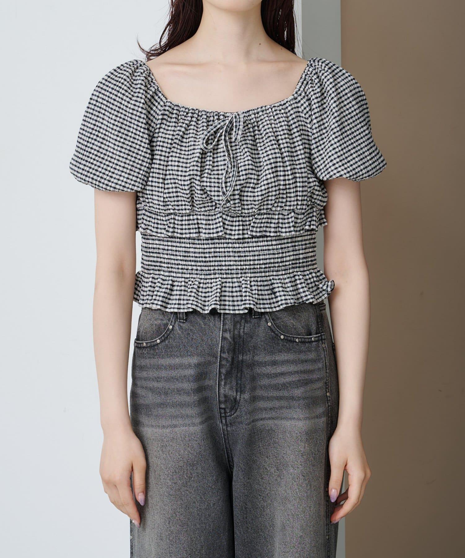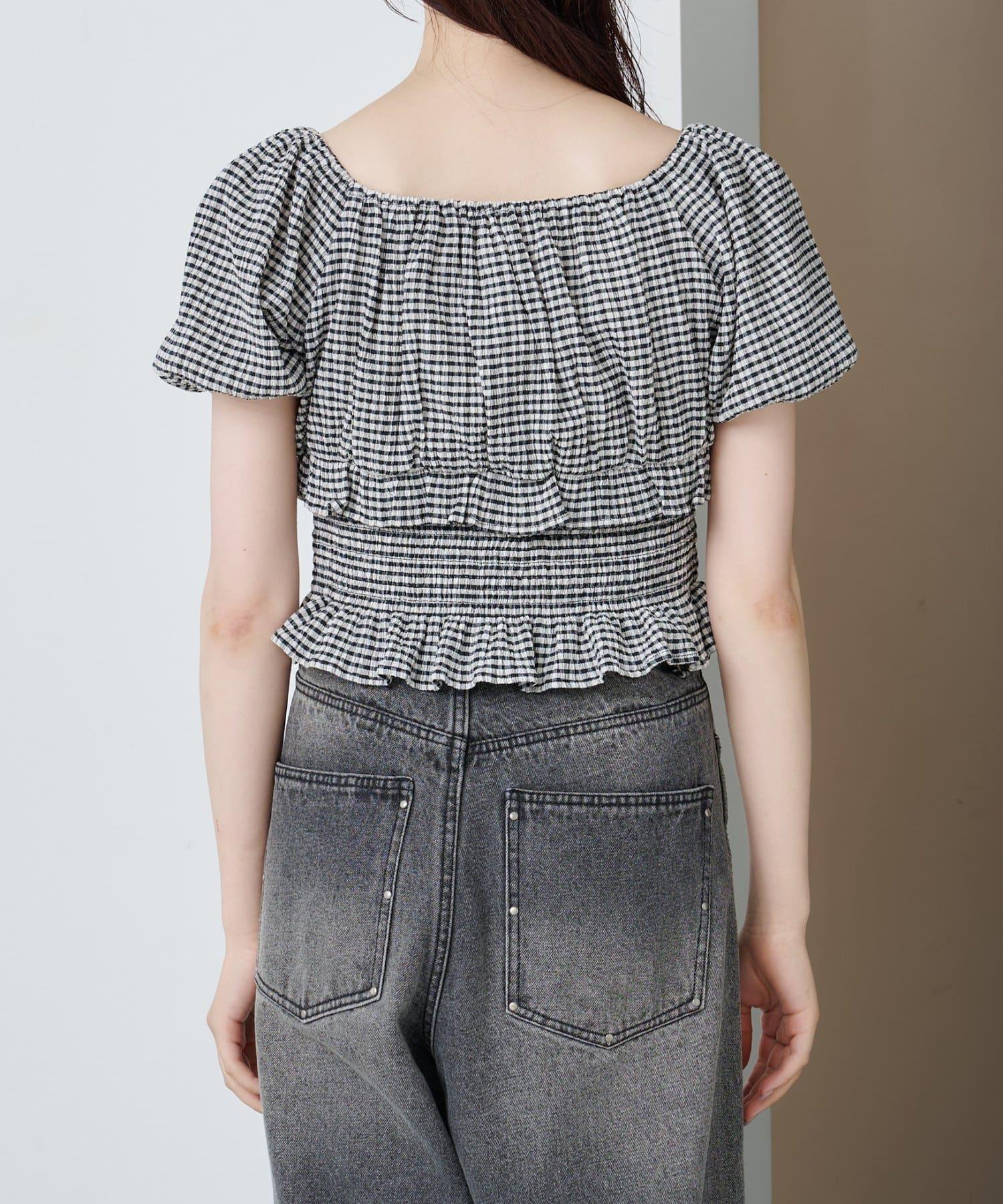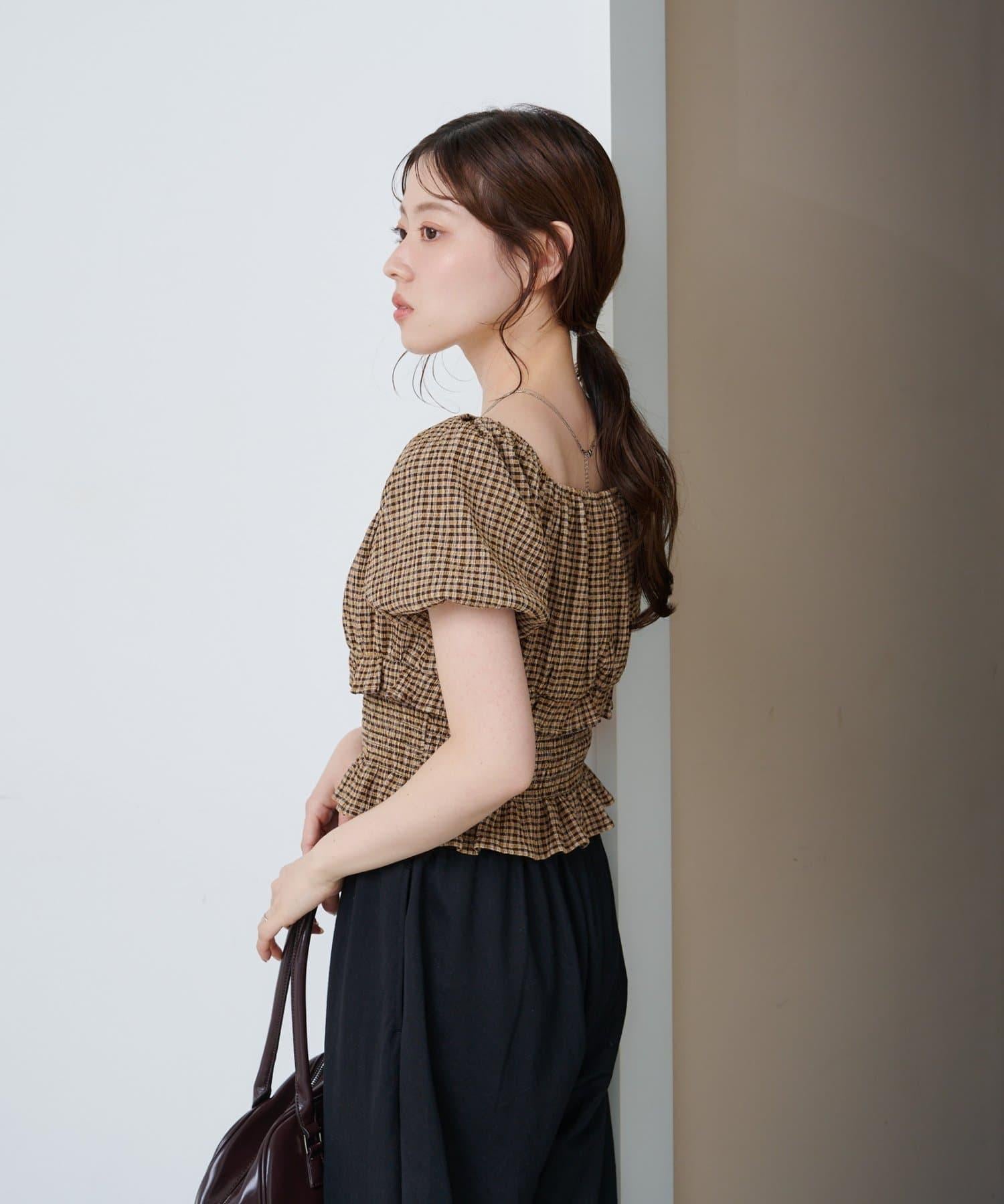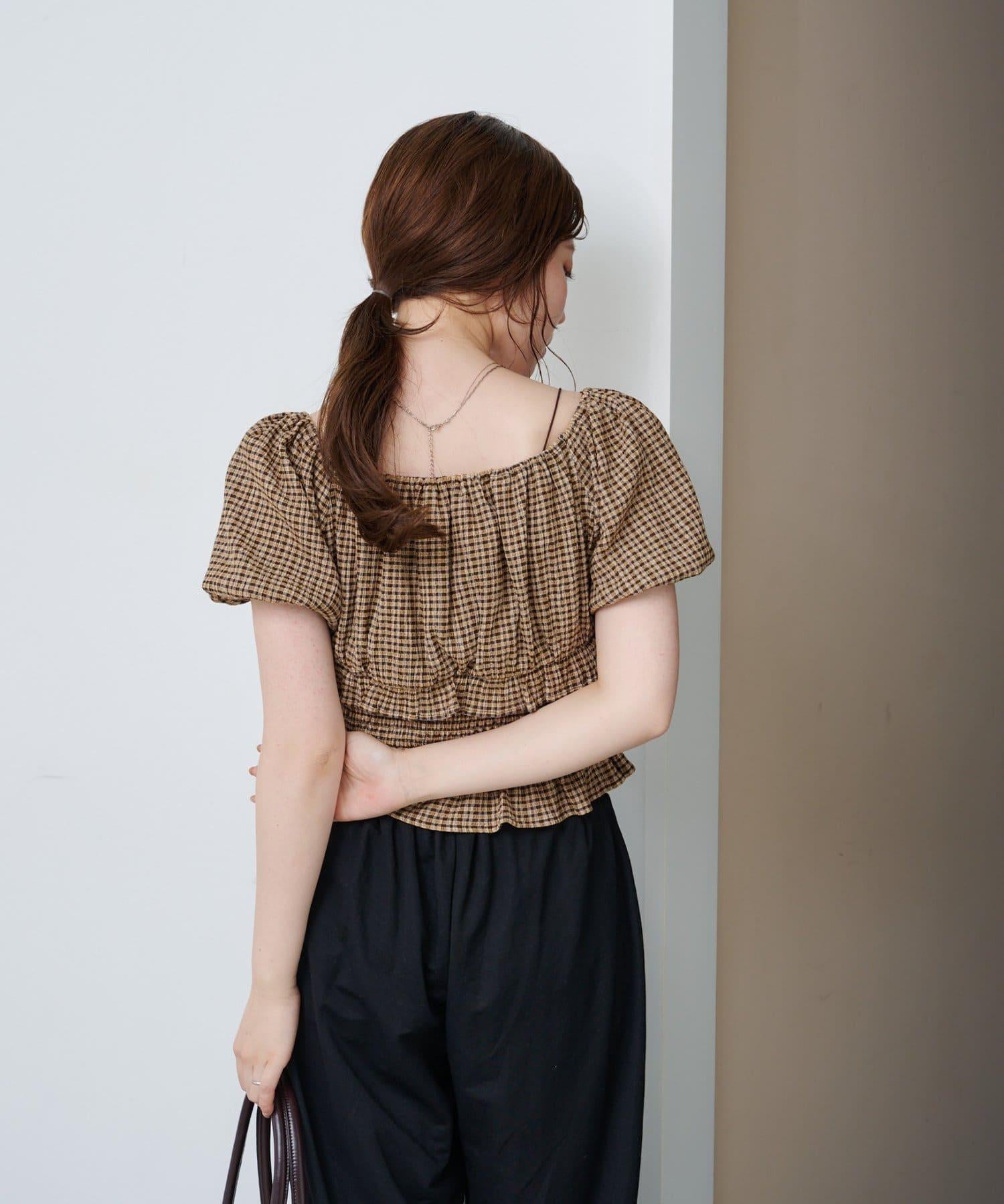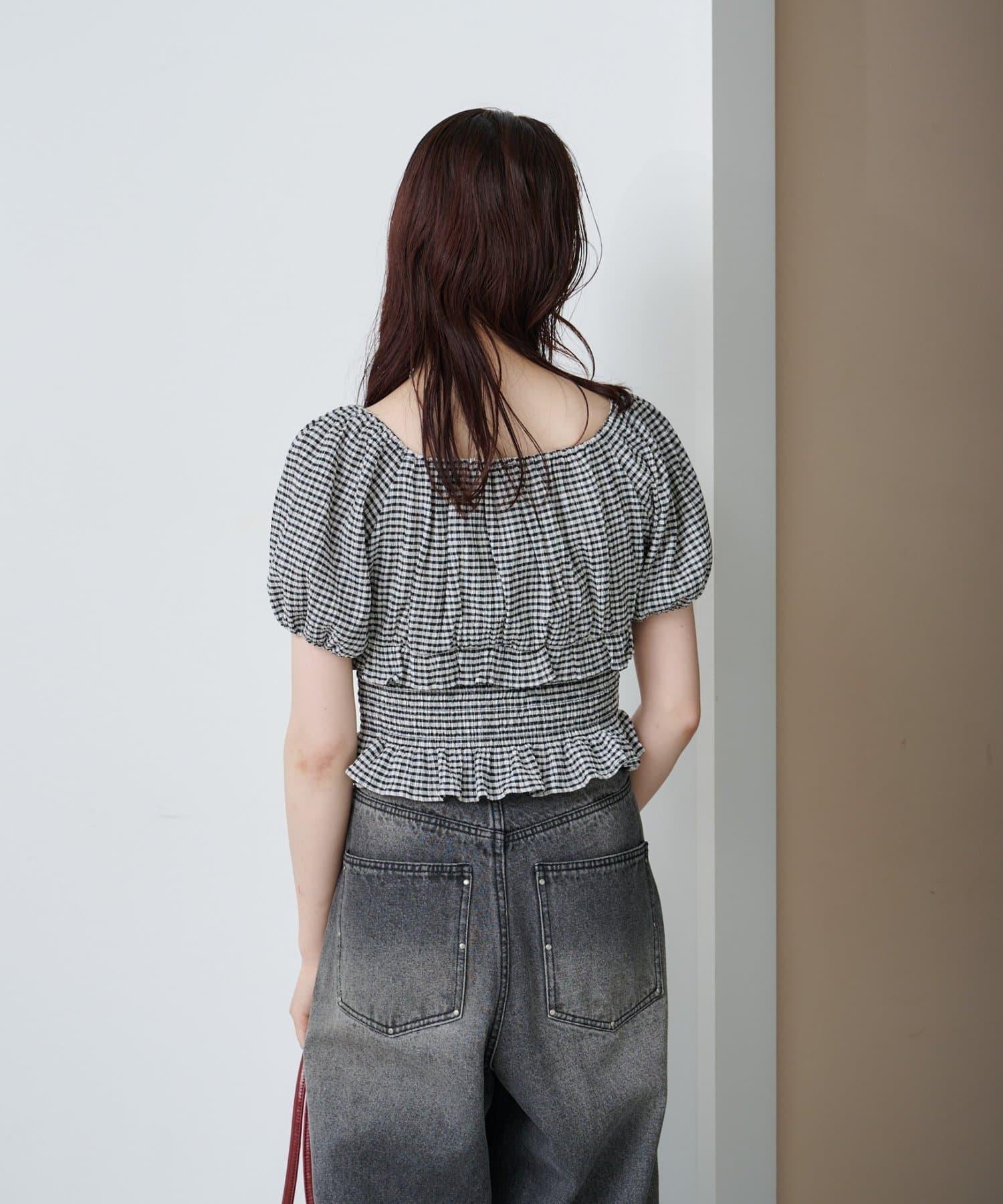 成人可愛的格子蓬蓬上衣,蓬鬆的輪廓。