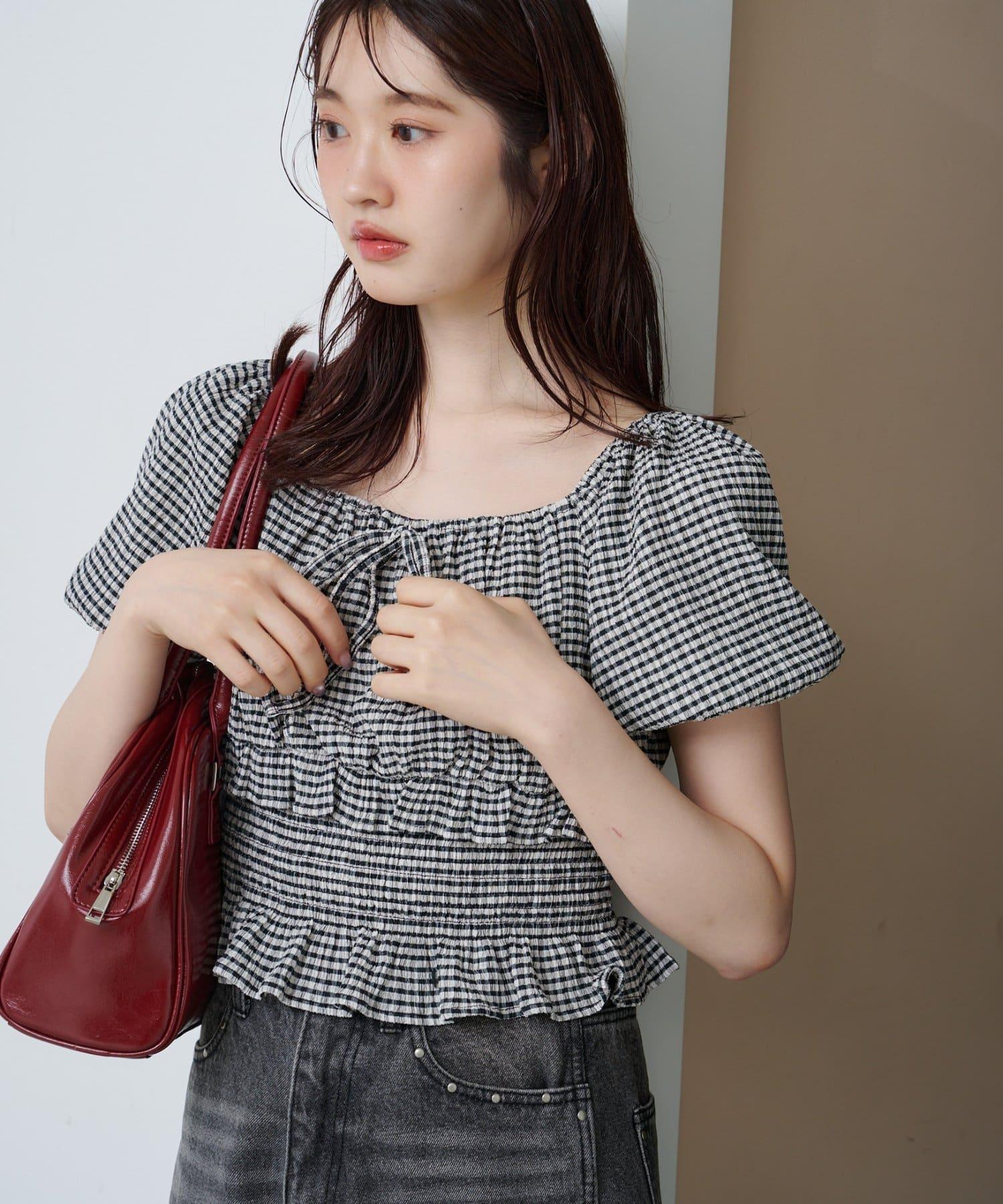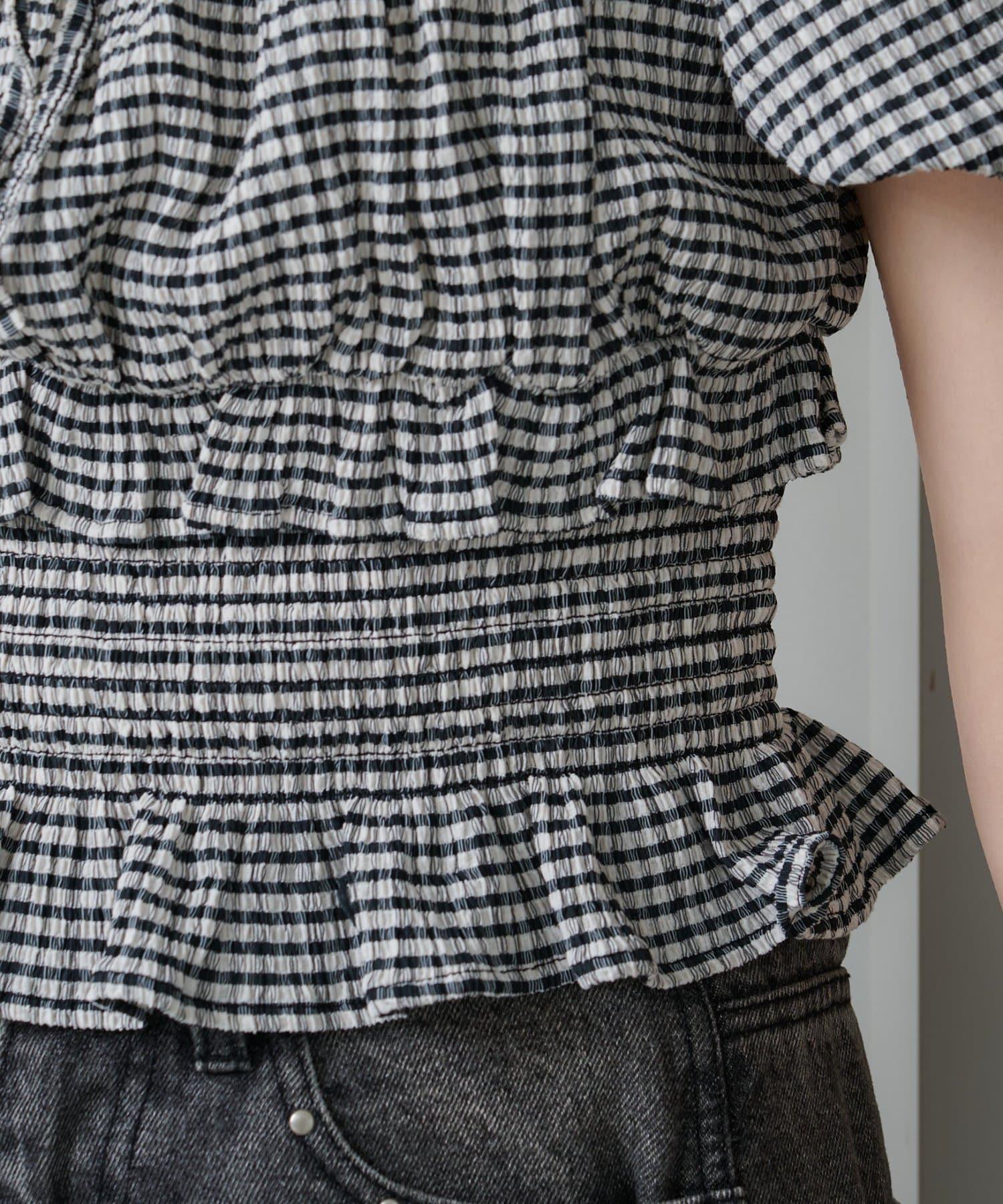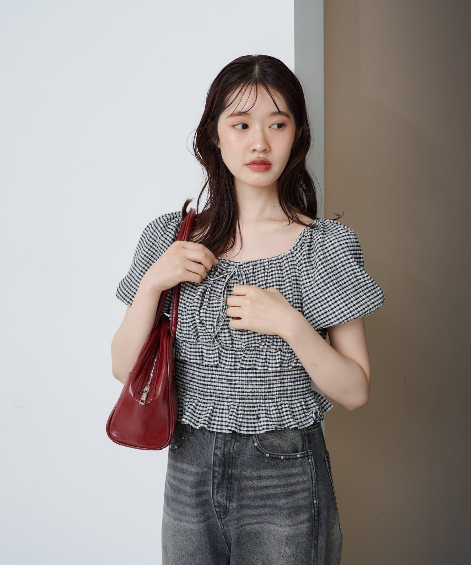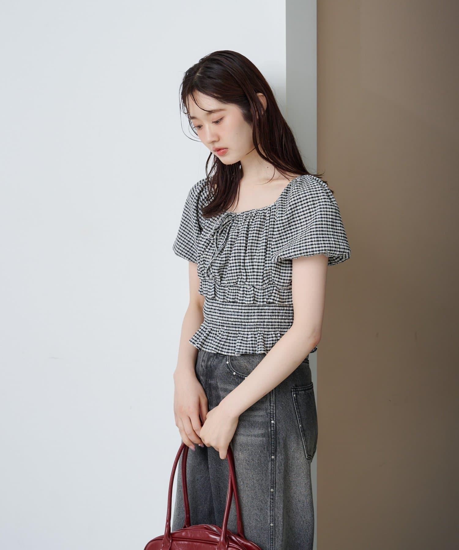 成人可愛的格子蓬蓬上衣,蓬鬆的輪廓。