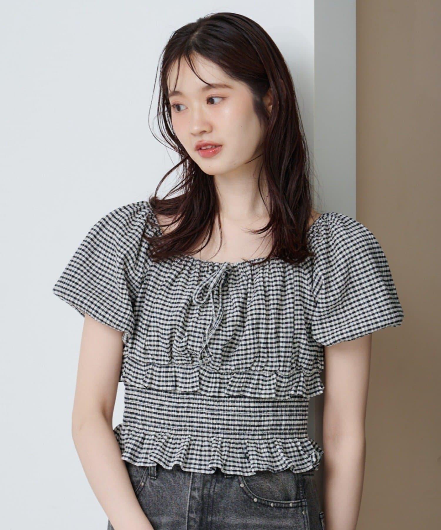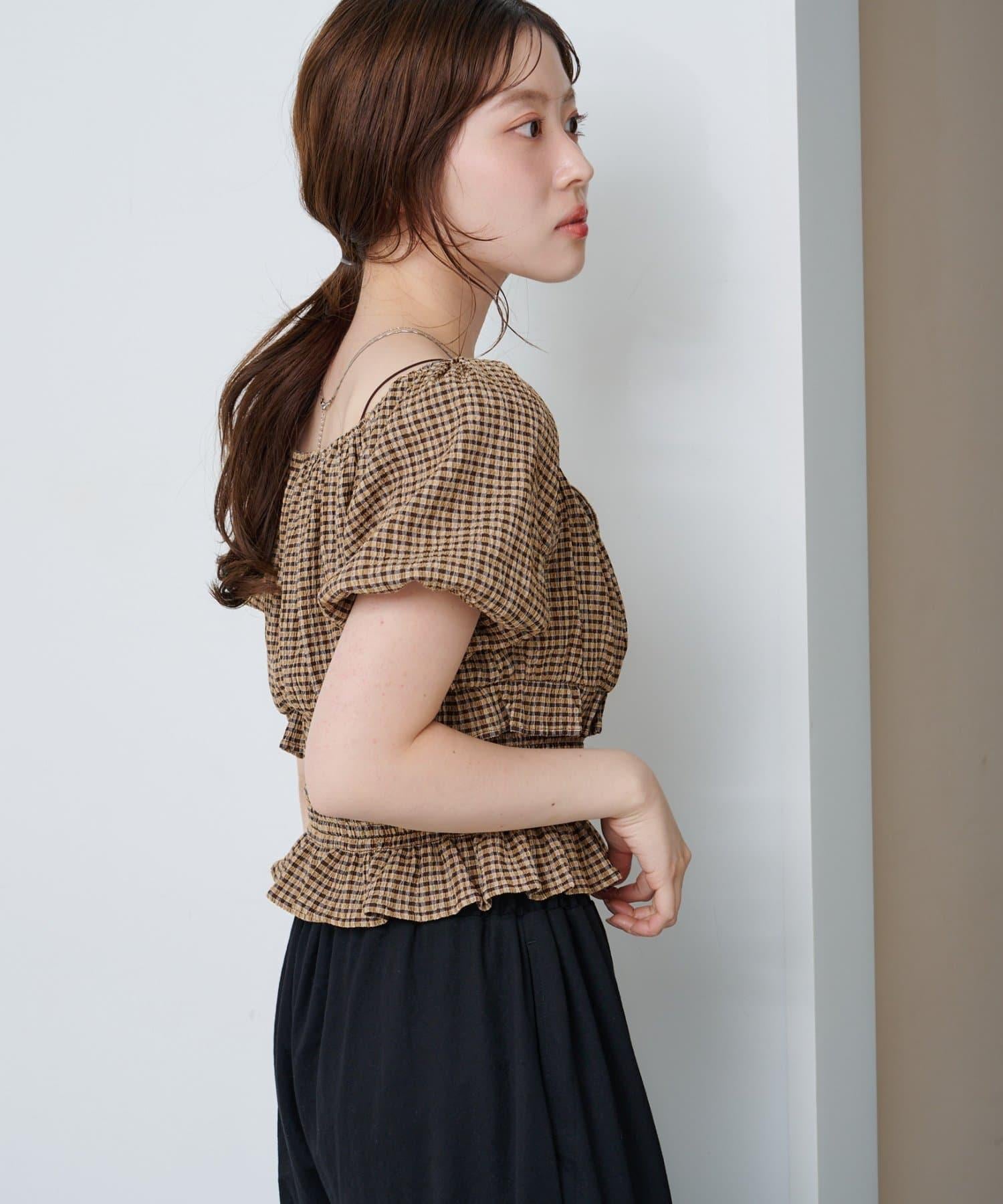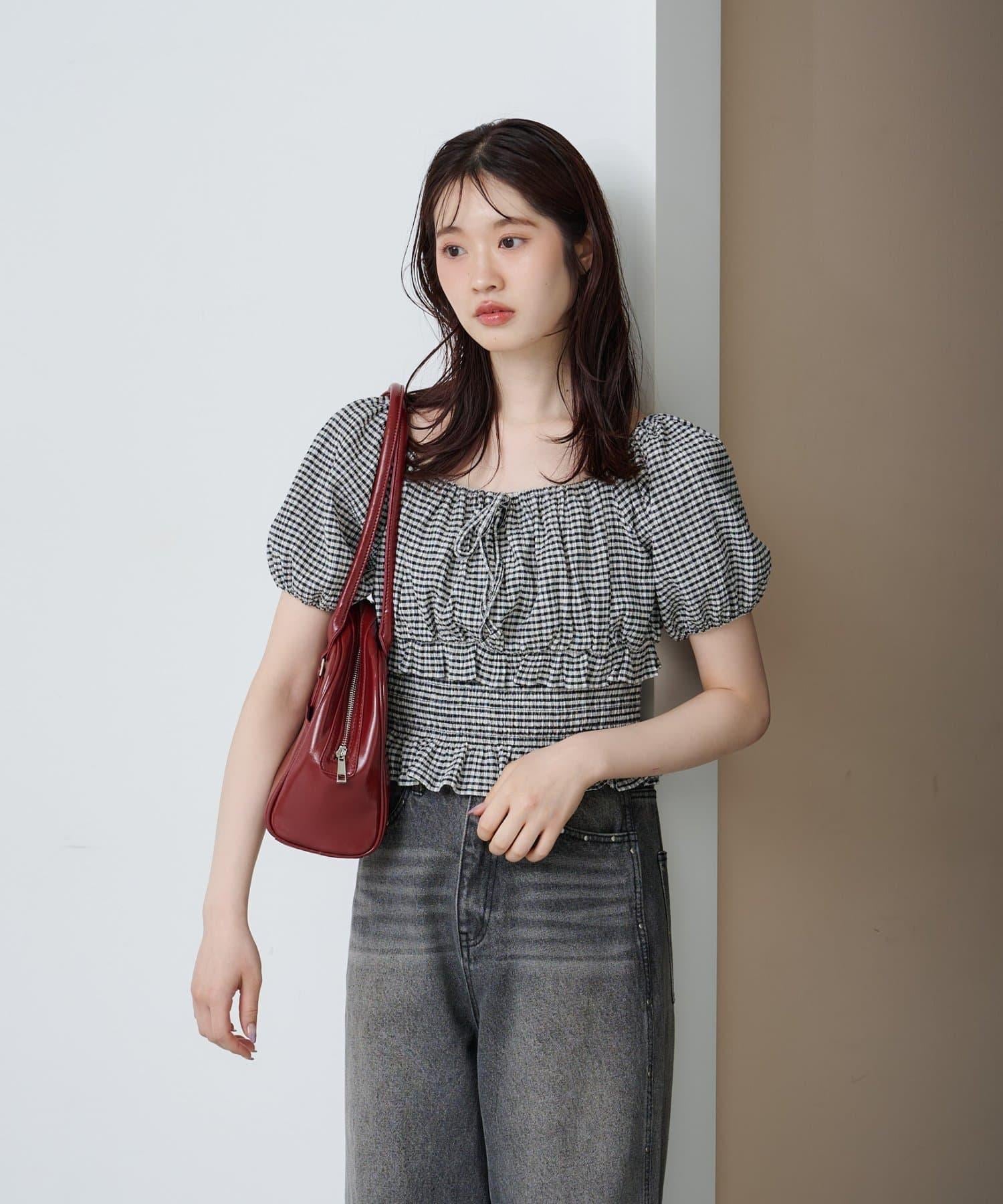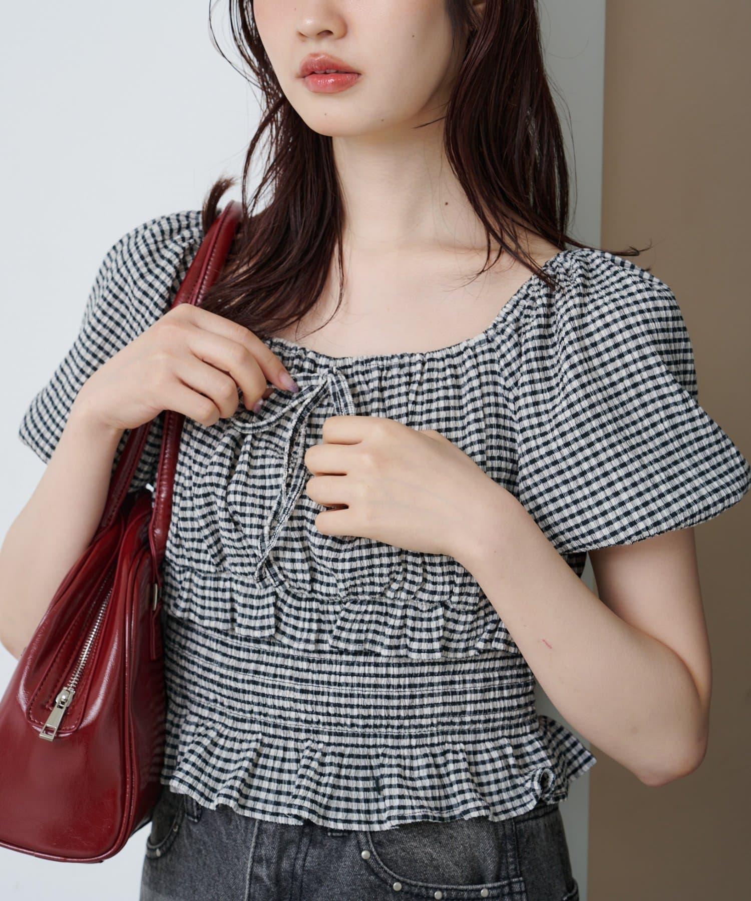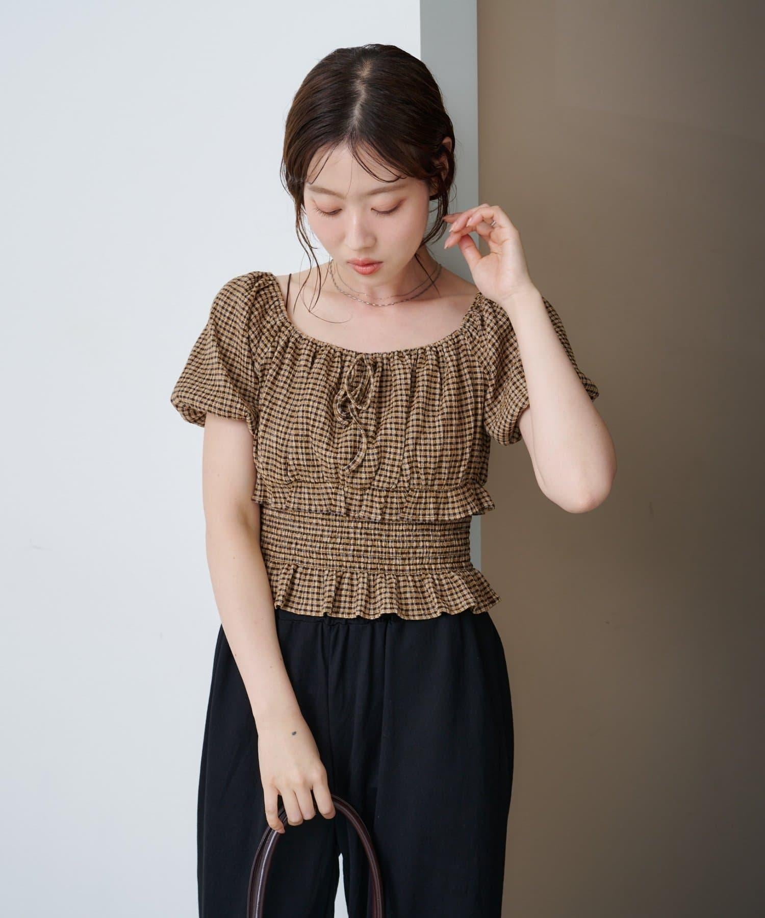 成人可愛的格子蓬蓬上衣,蓬鬆的輪廓。