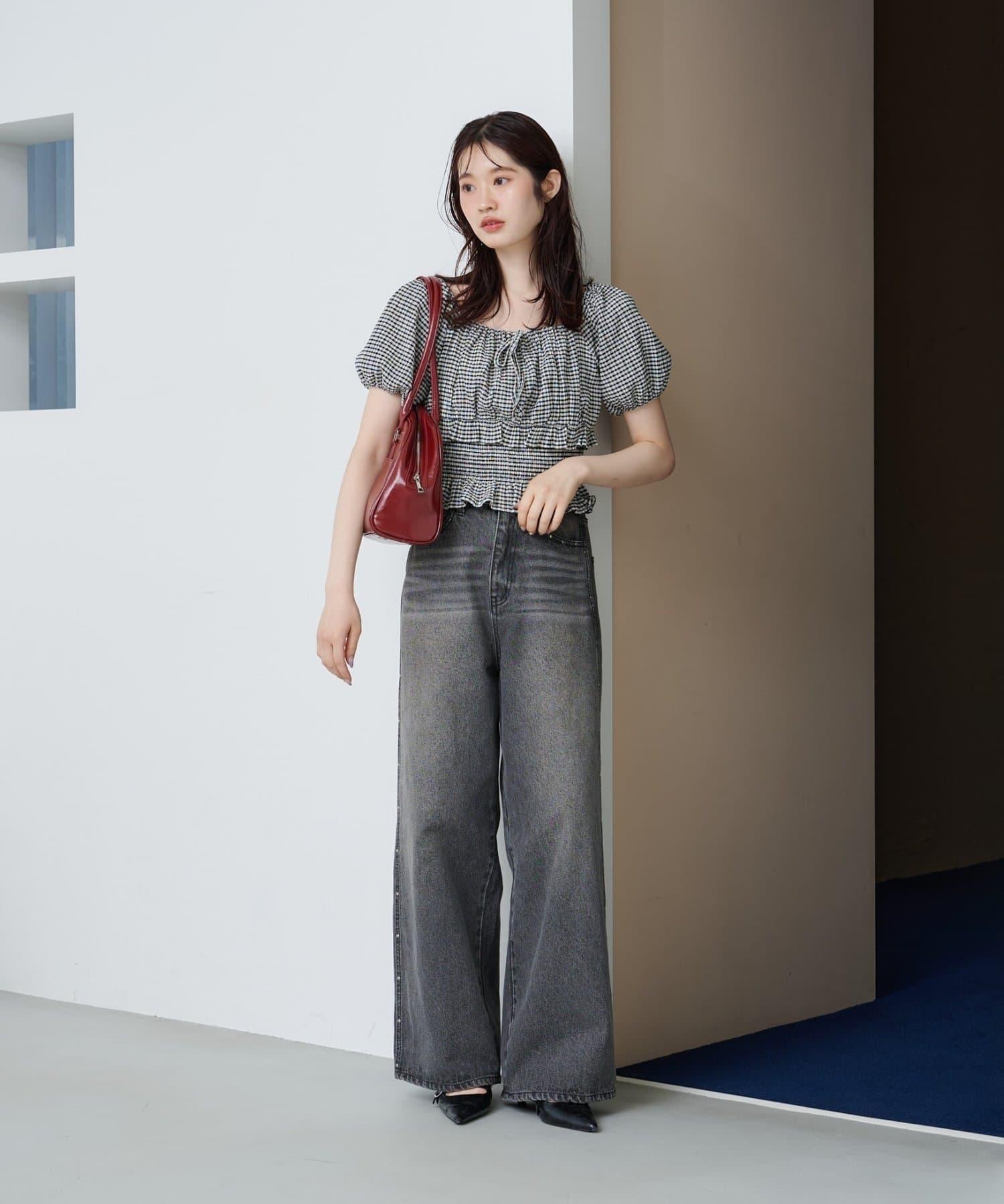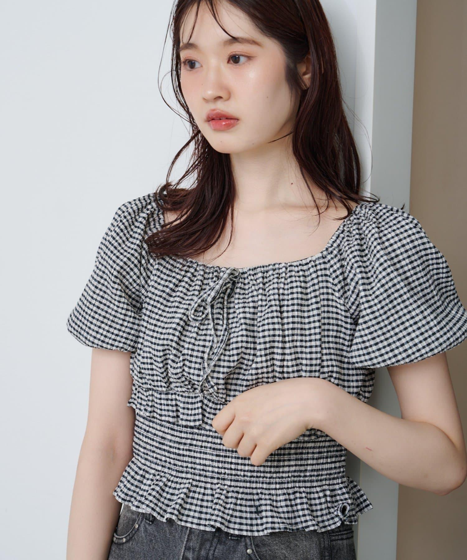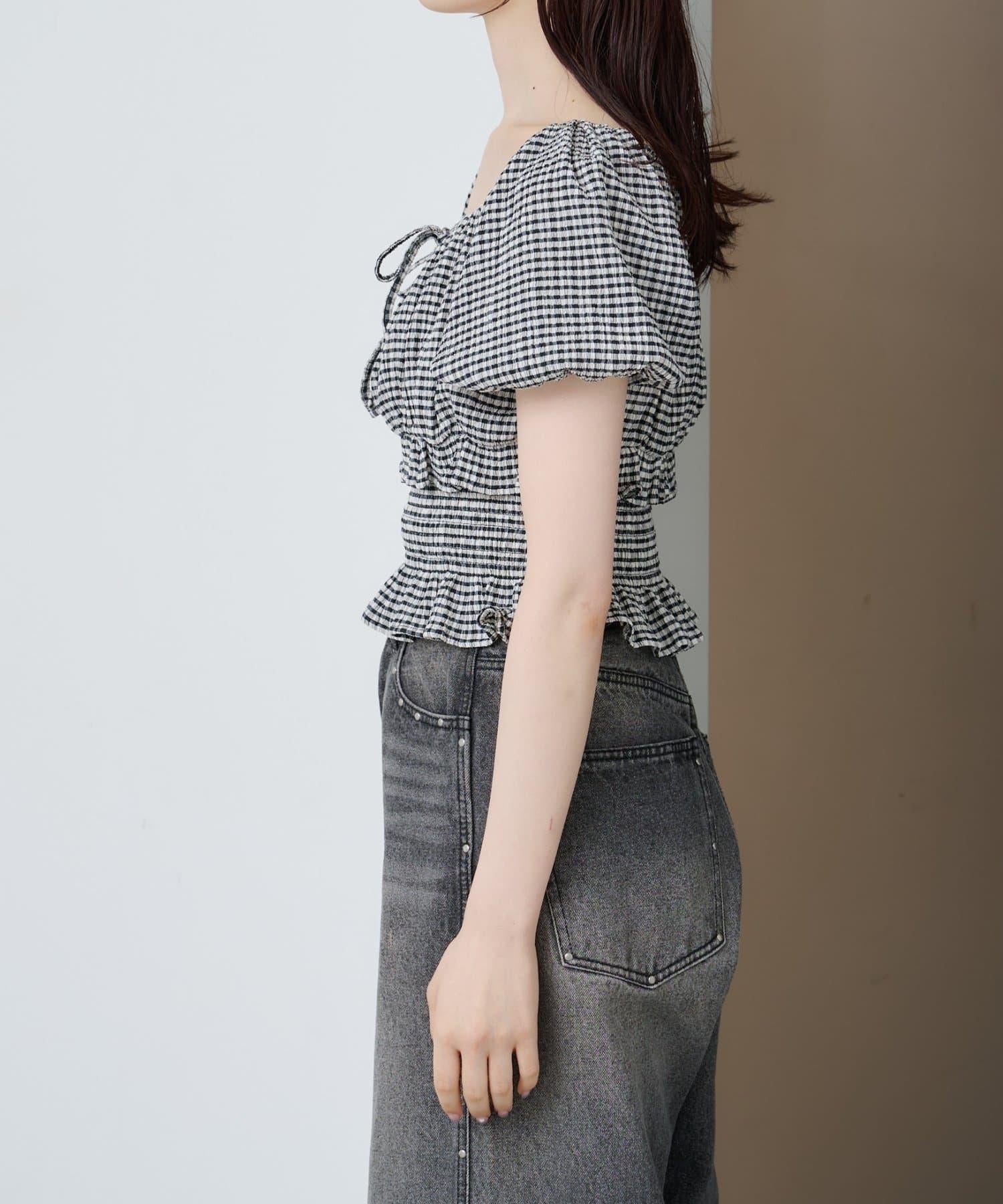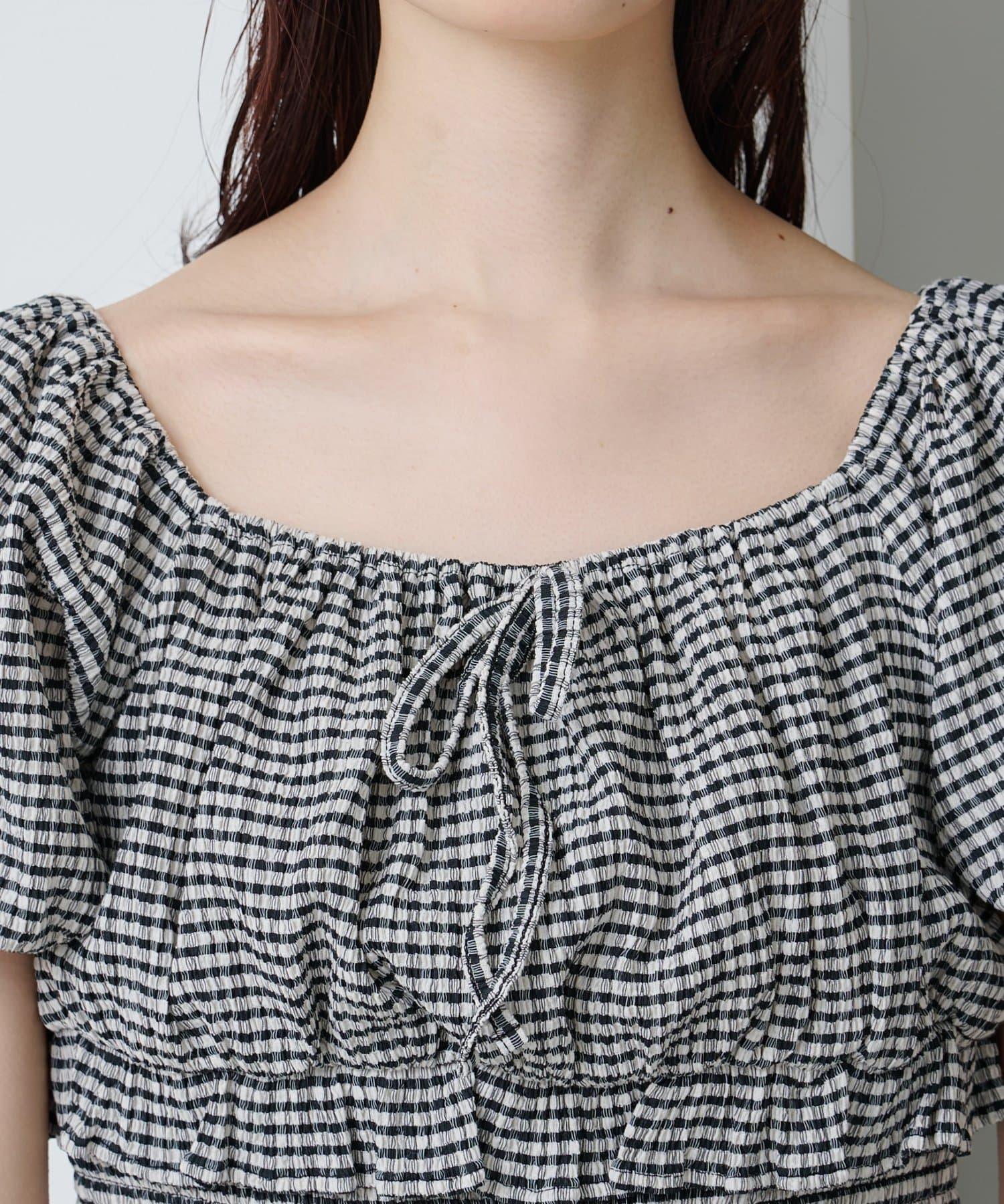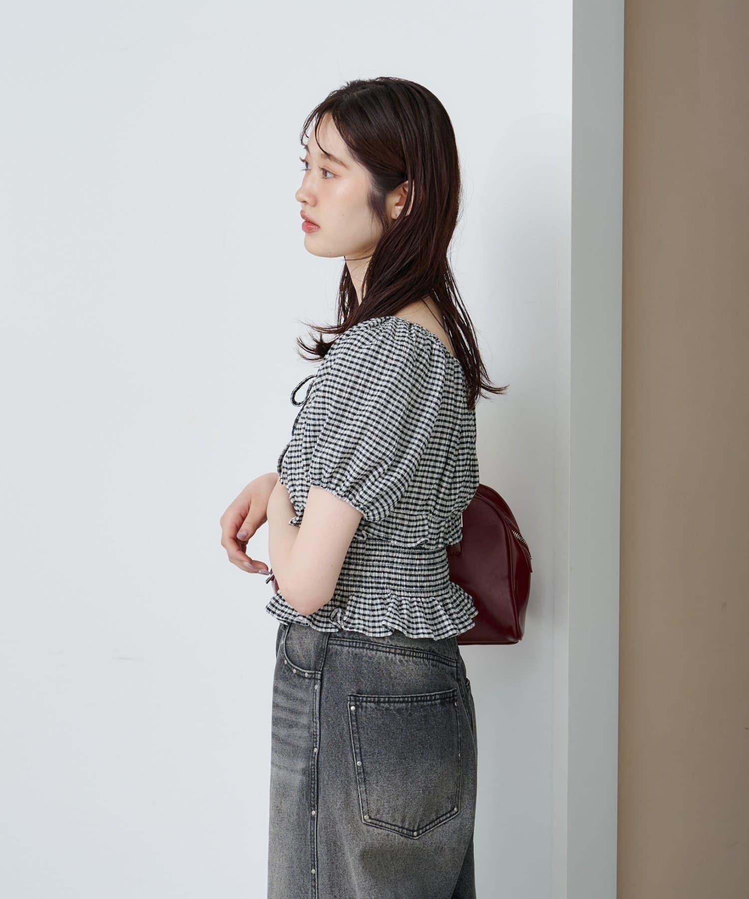 成人可愛的格子蓬蓬上衣,蓬鬆的輪廓。
