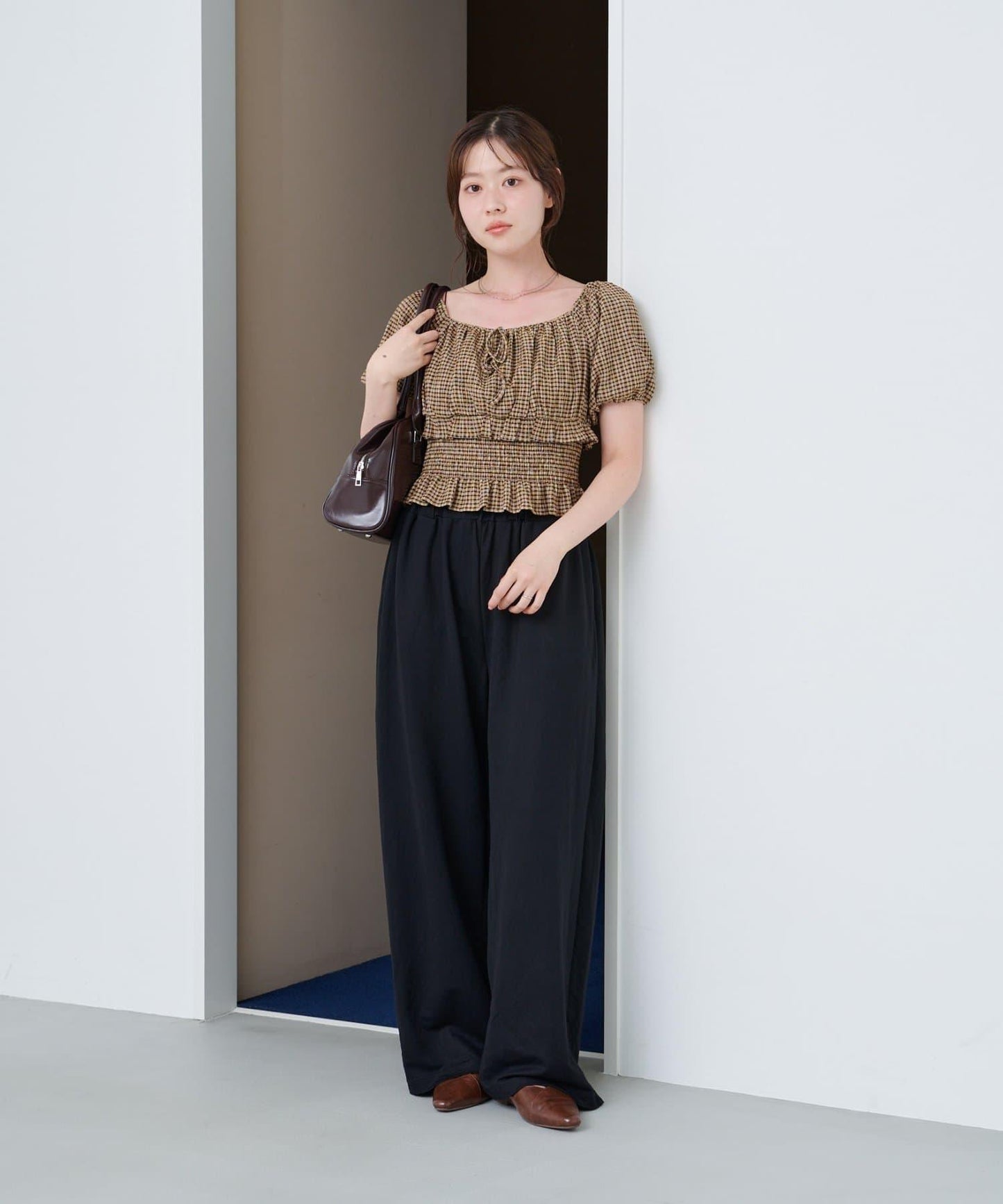 腰部的波浪形鬆緊帶確保穿著舒適,而下襬的荷葉邊則起到了提升時尚感的效果。