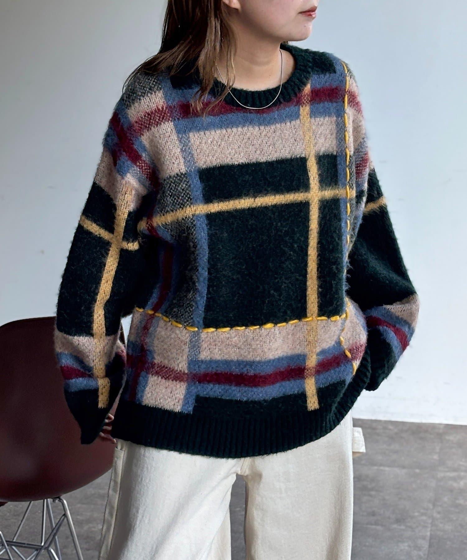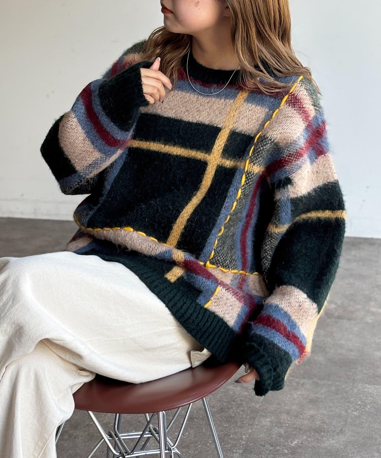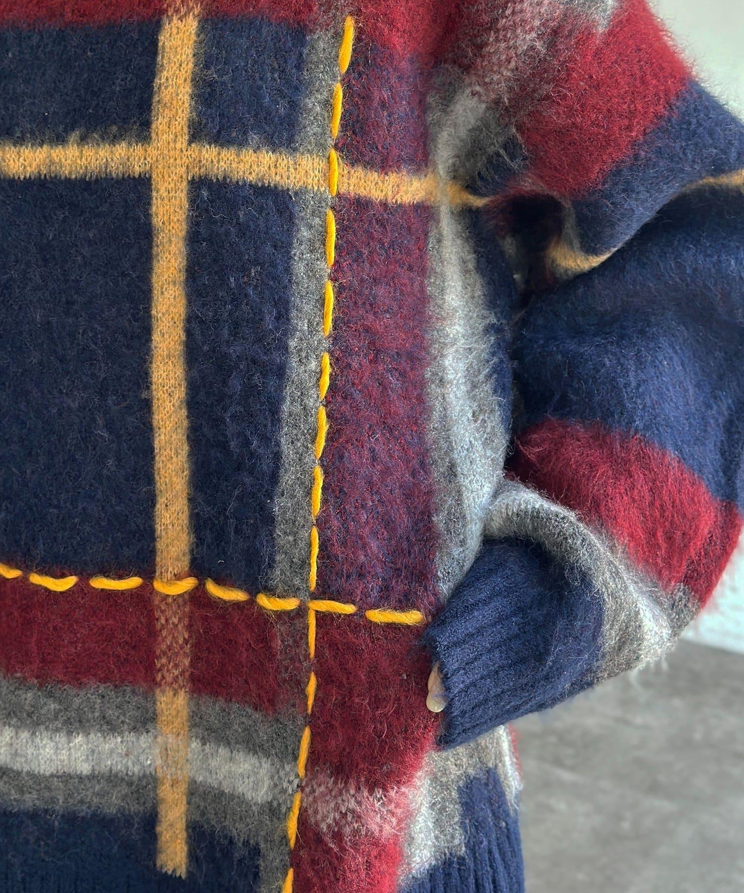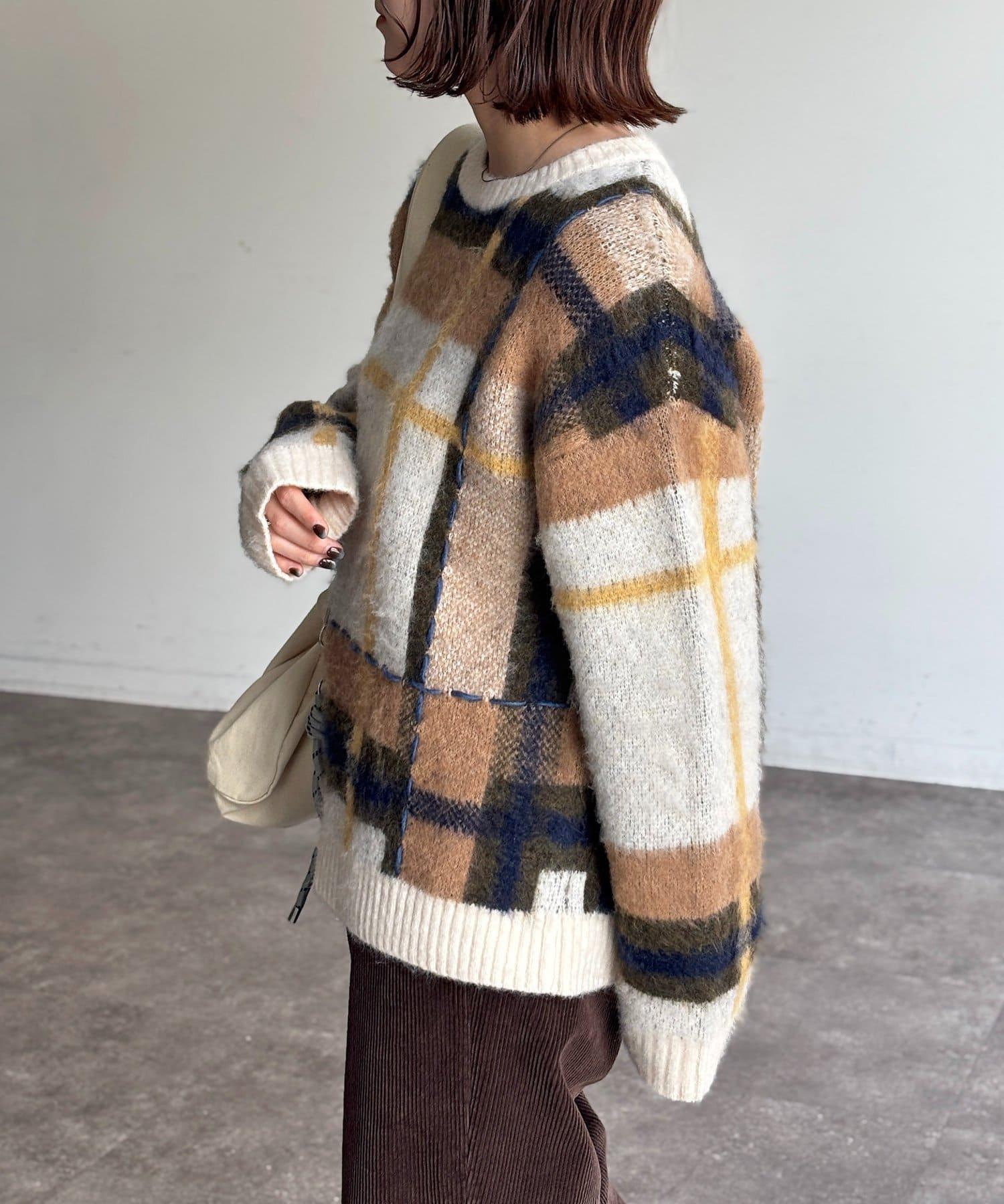 毛茸茸的針織衫,配以大格紋和溫暖的縫線裝飾!