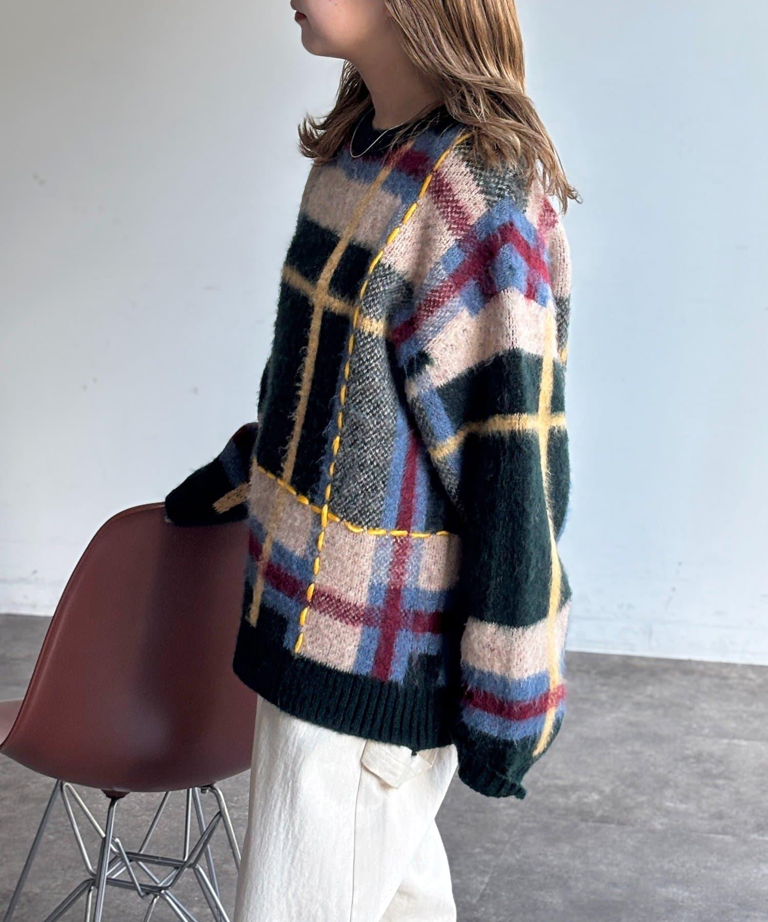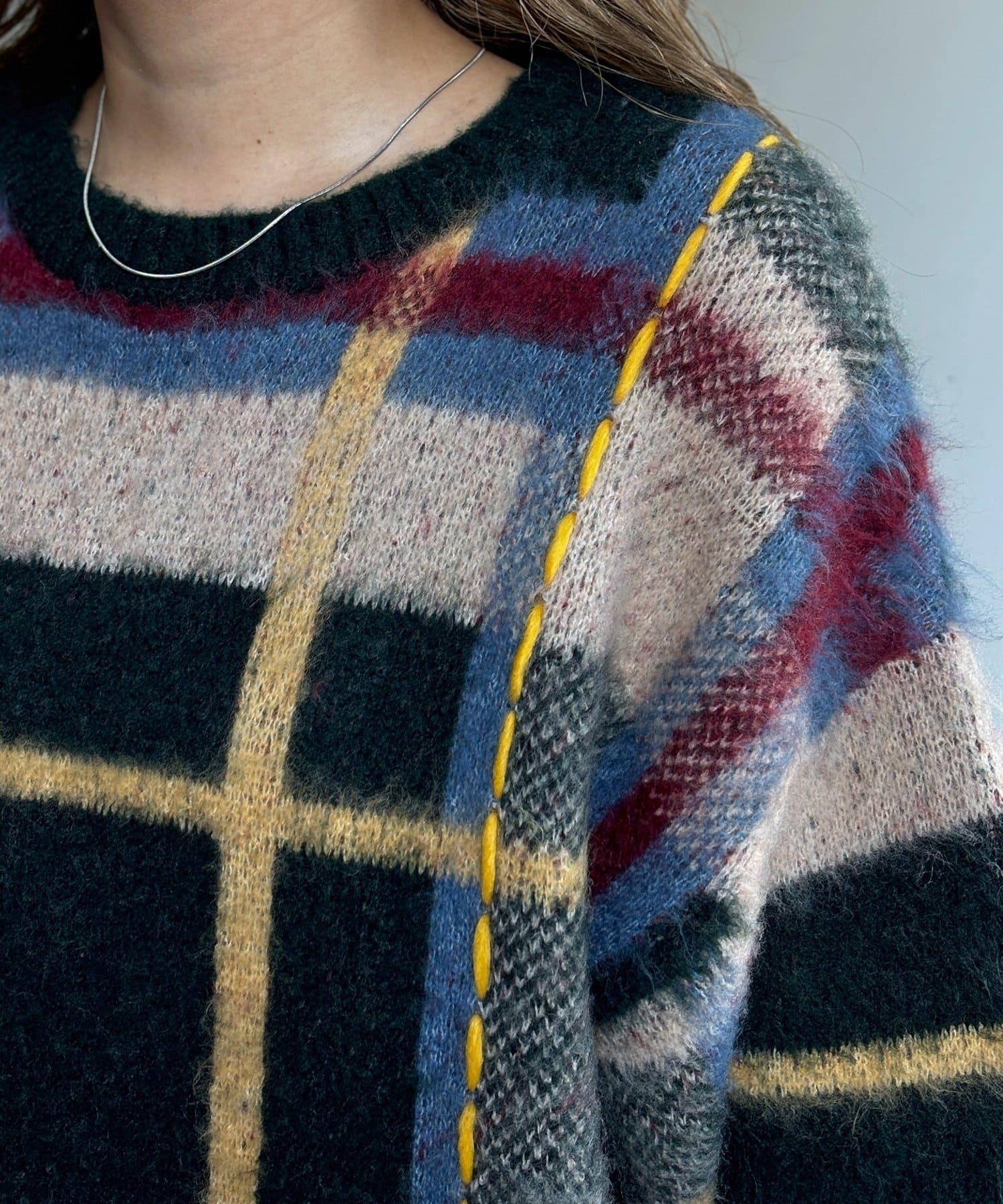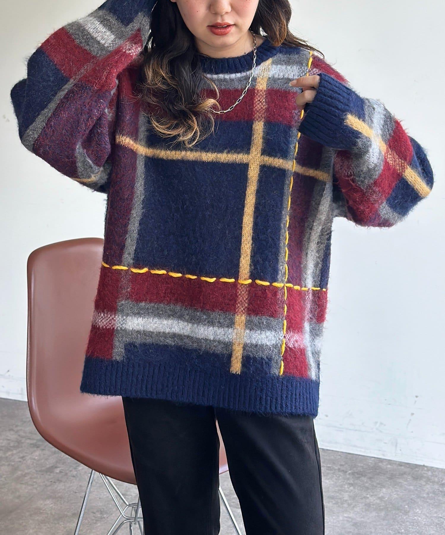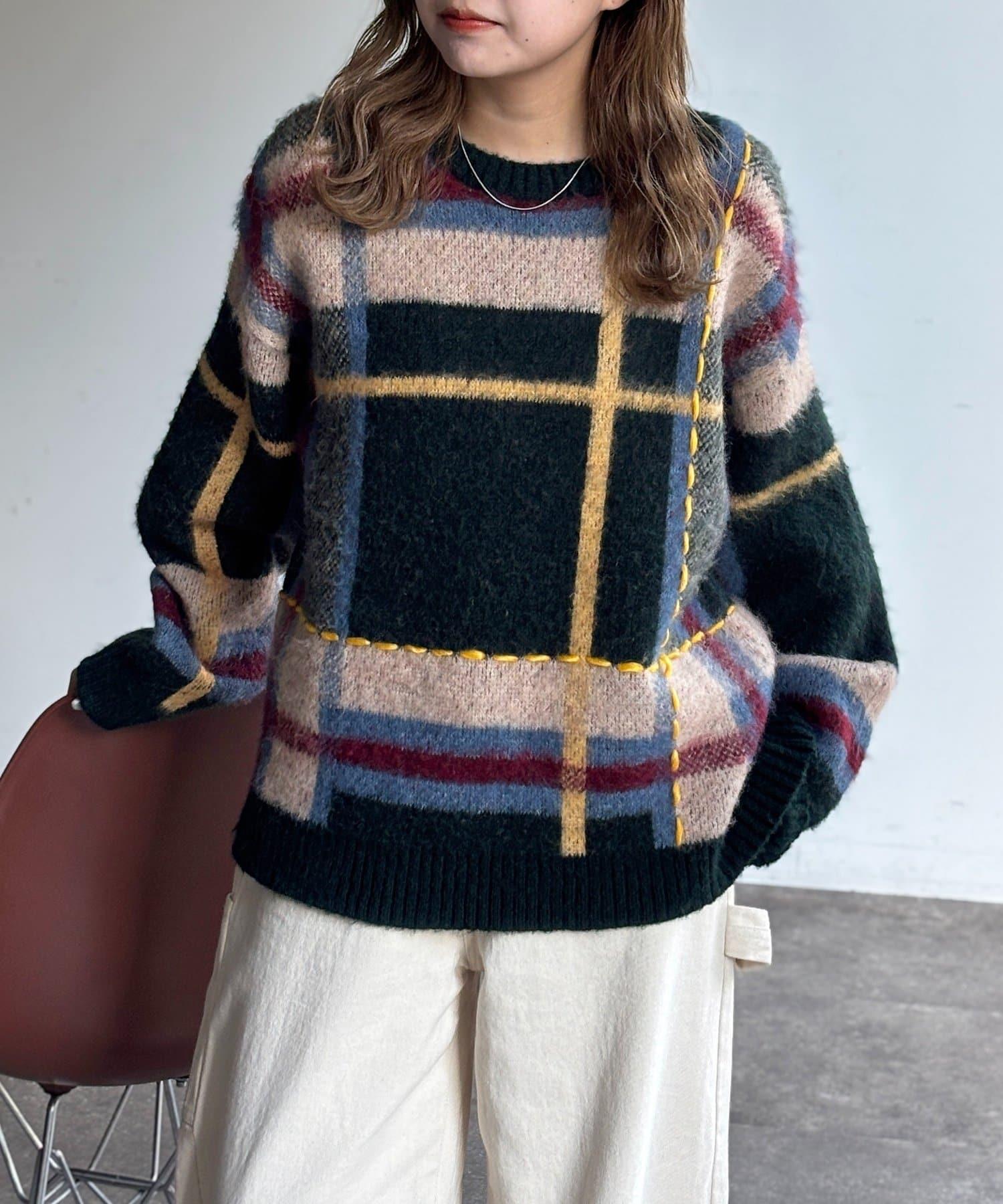毛茸茸的針織衫,配以大格紋和溫暖的縫線裝飾!