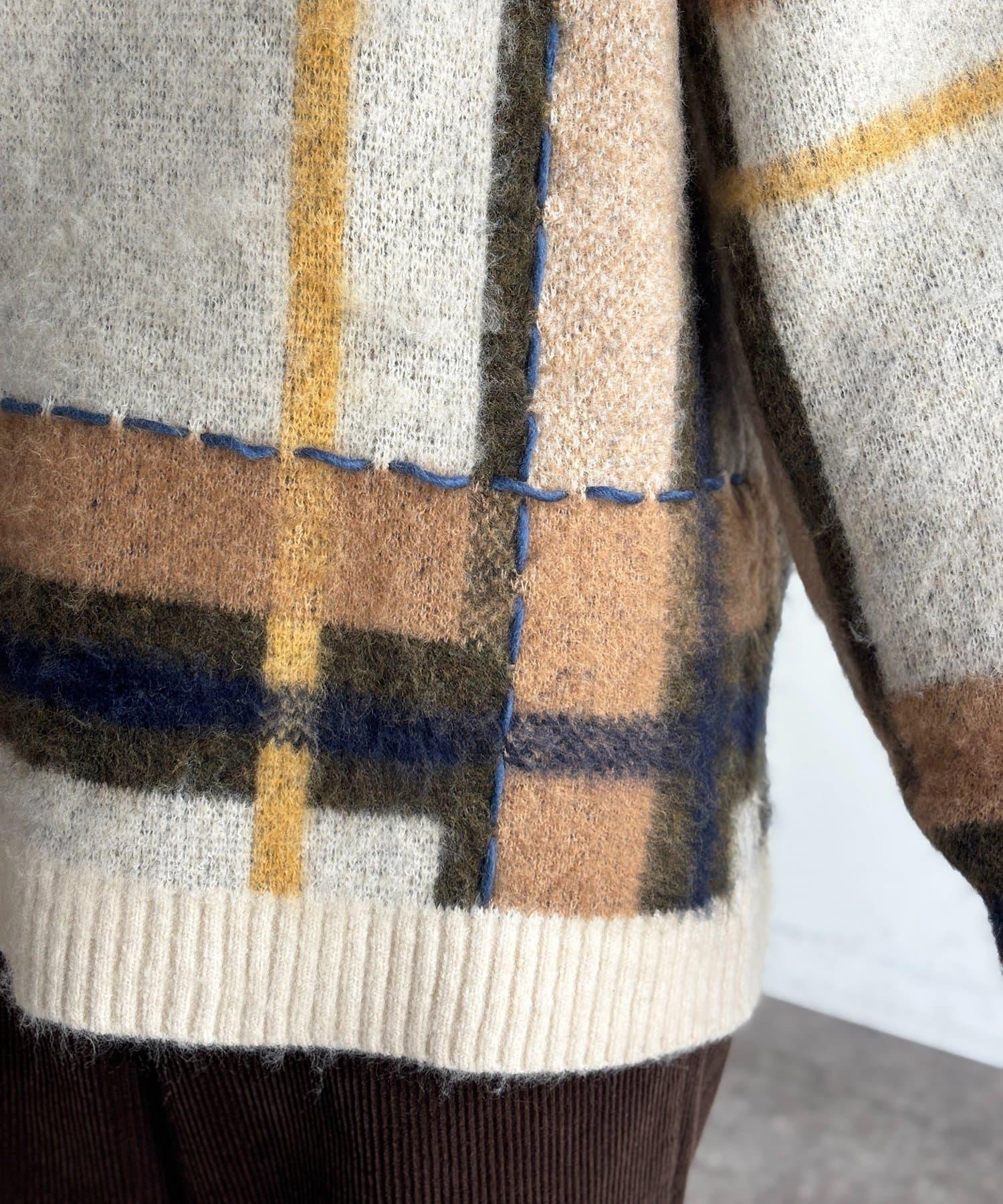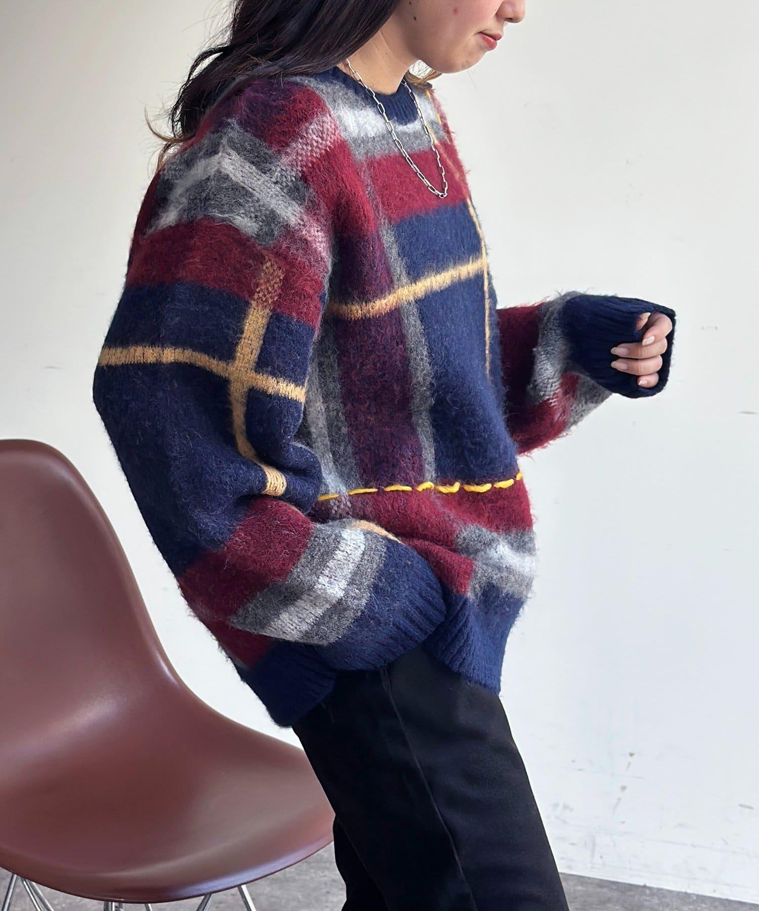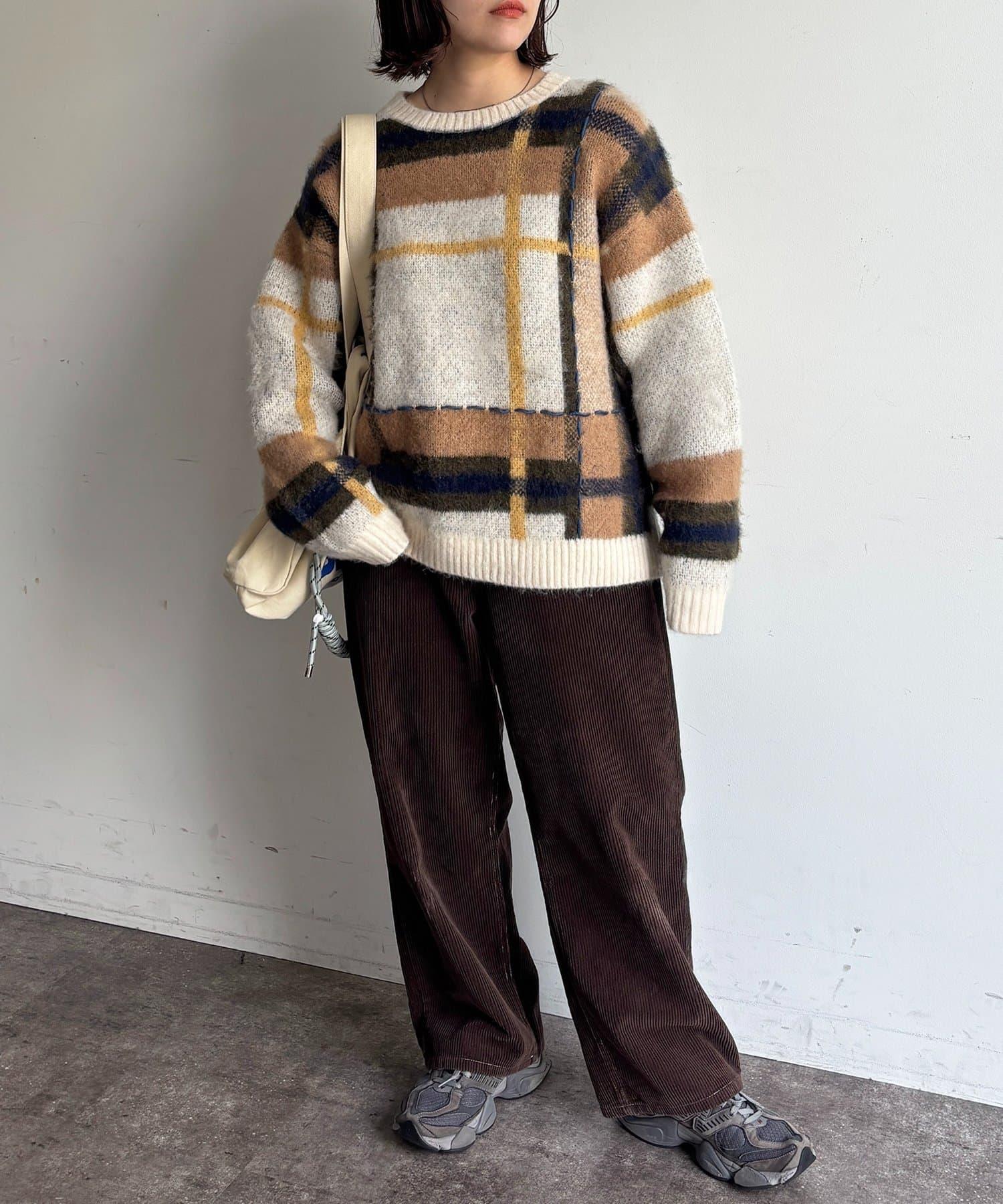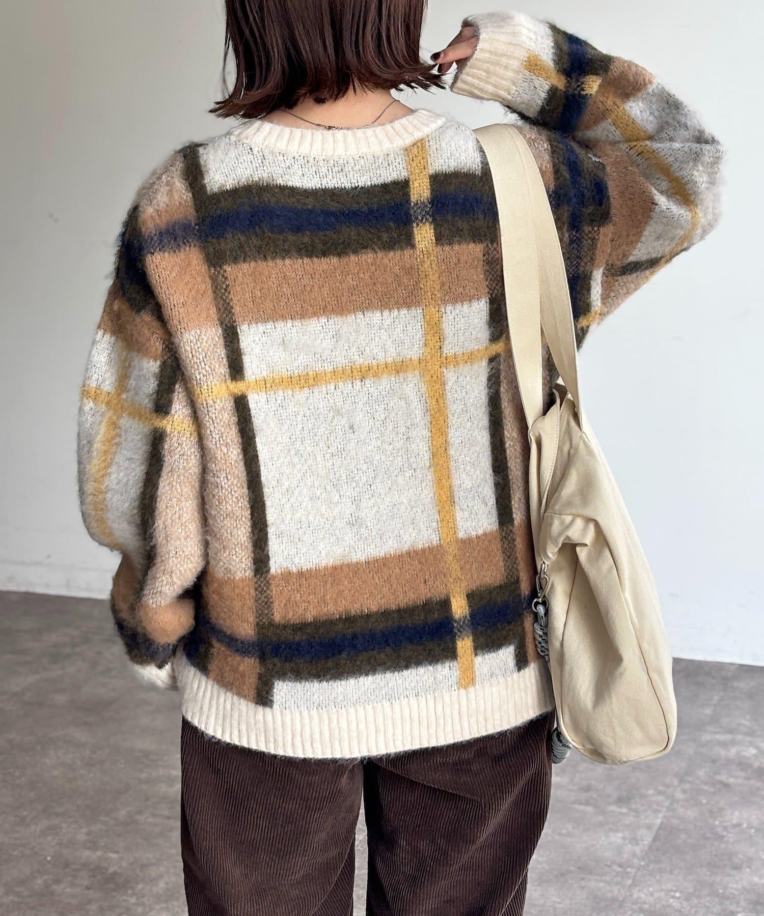 毛茸茸的針織衫,配以大格紋和溫暖的縫線裝飾!