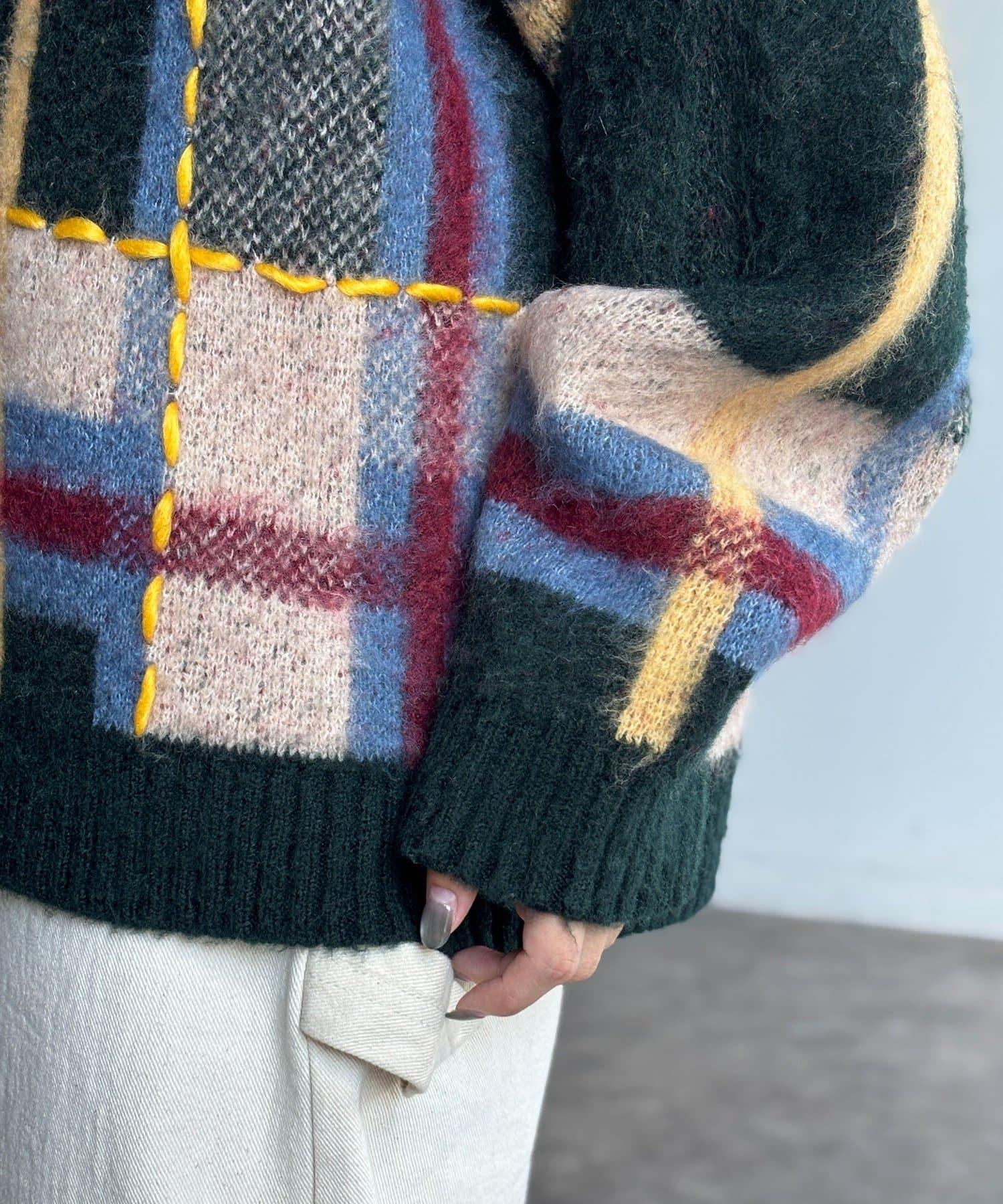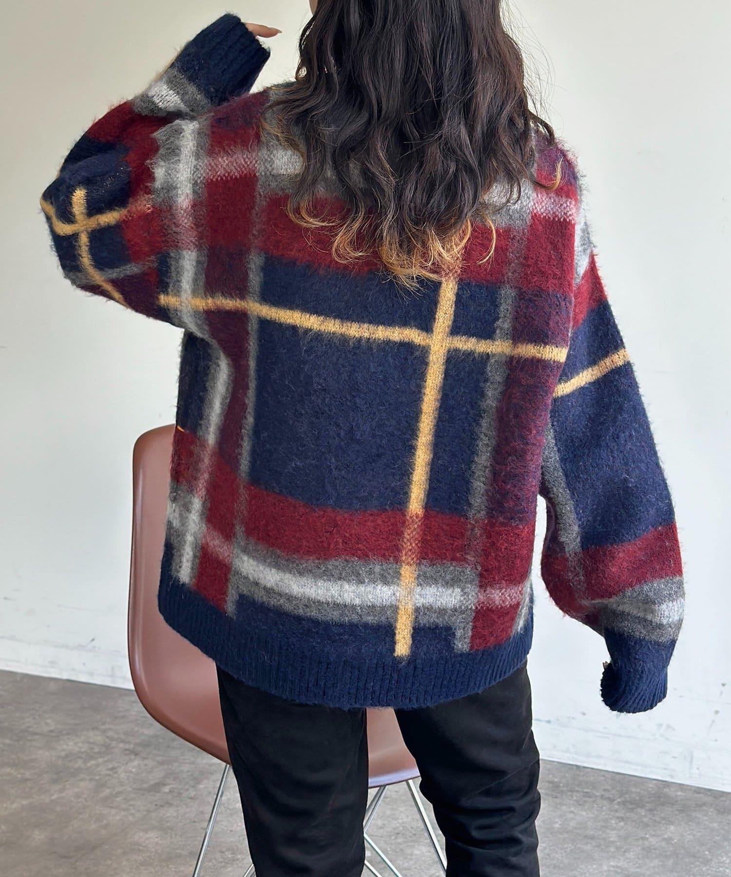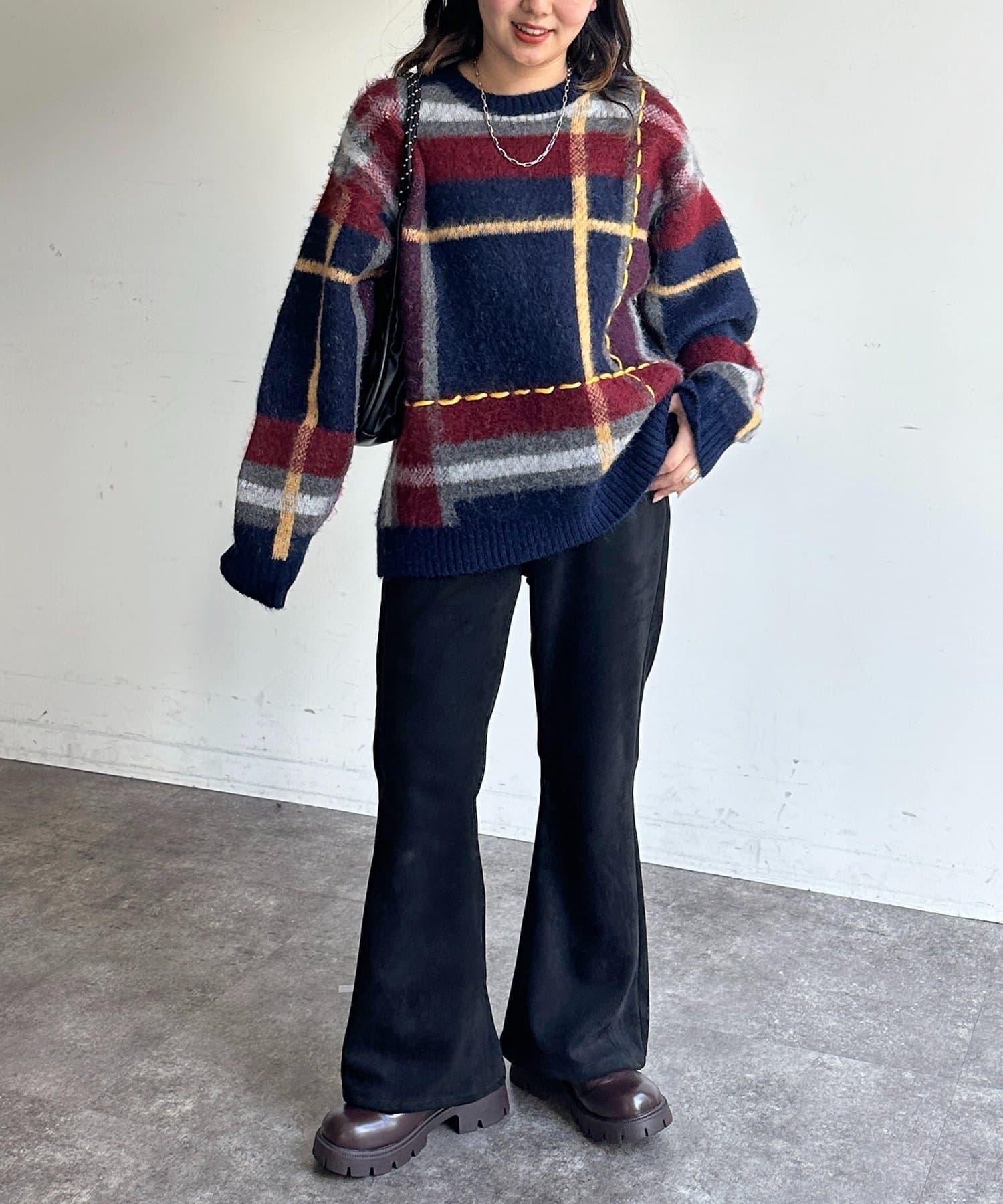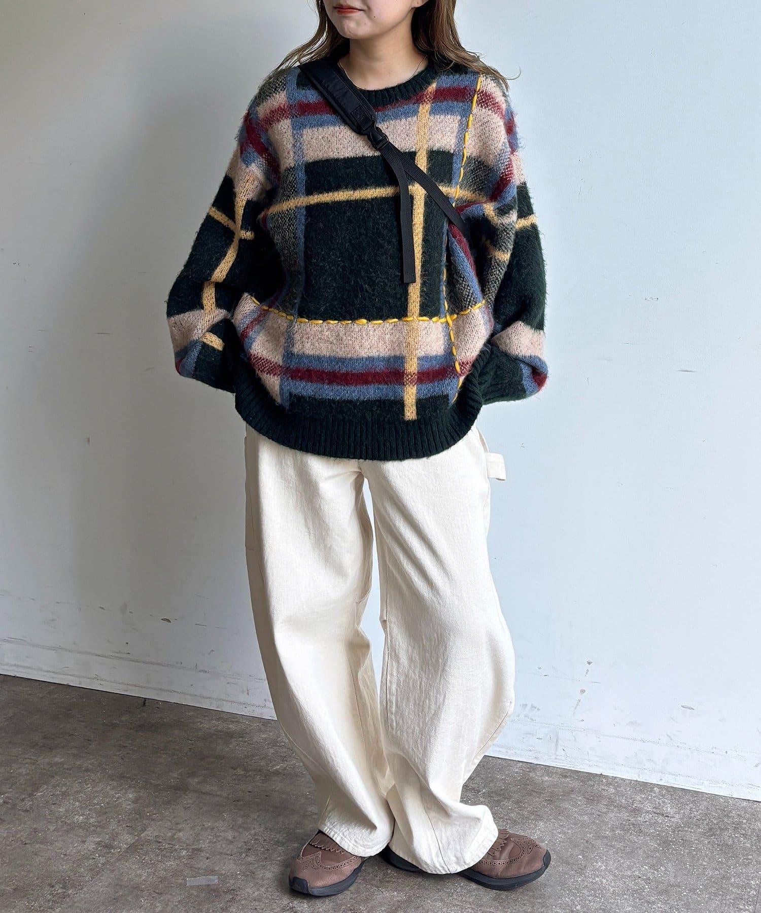 毛茸茸的針織衫,配以大格紋和溫暖的縫線裝飾!