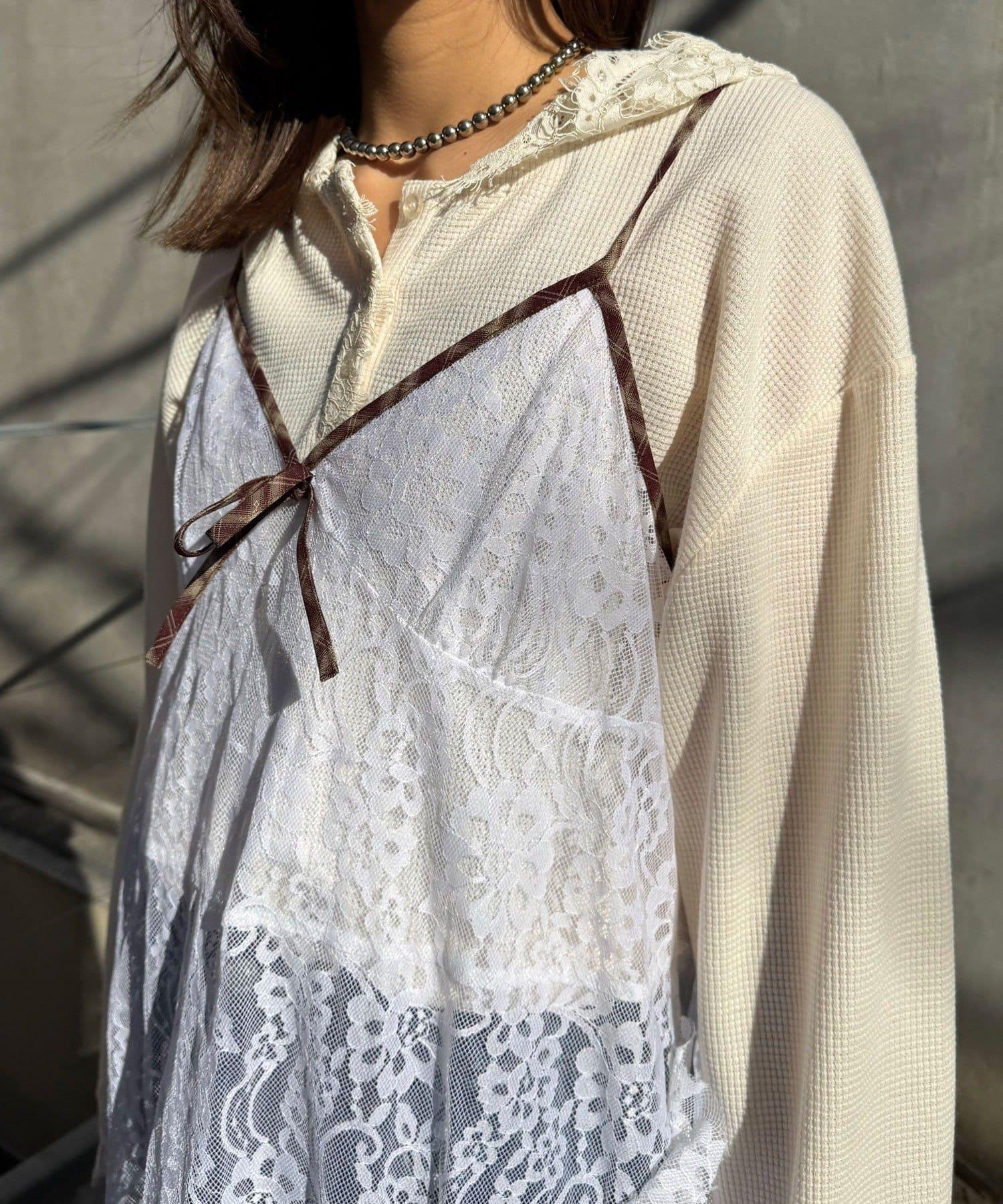 胸前的絲帶開關設計,增添了微妙的甜美感。
