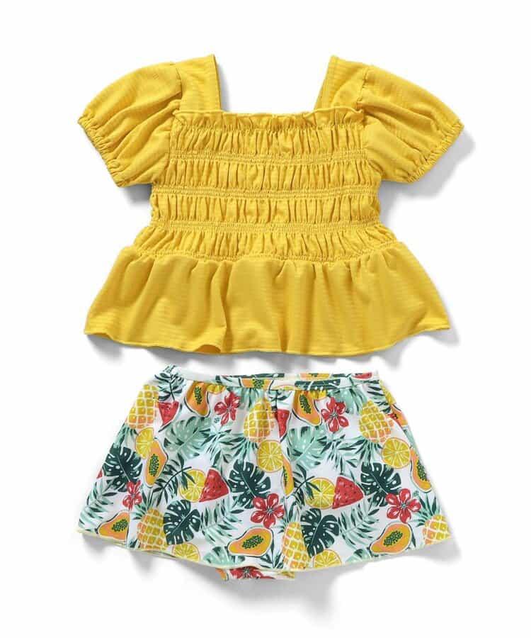 黃色:素色 x 熱帶圖案