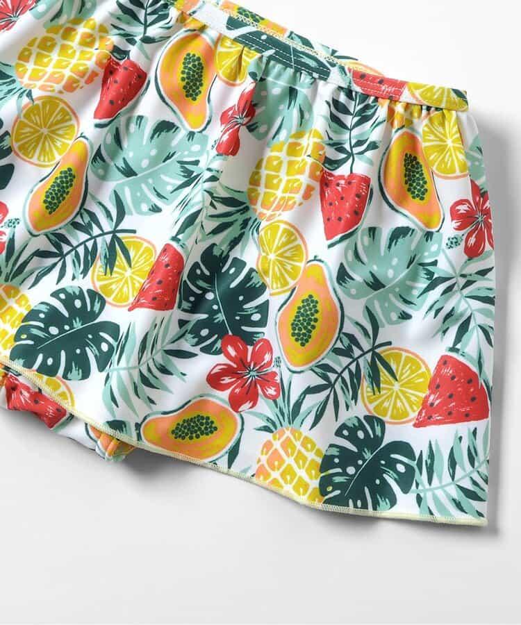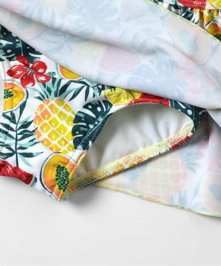 格紋熱帶花卉抽褶分體式泳裝